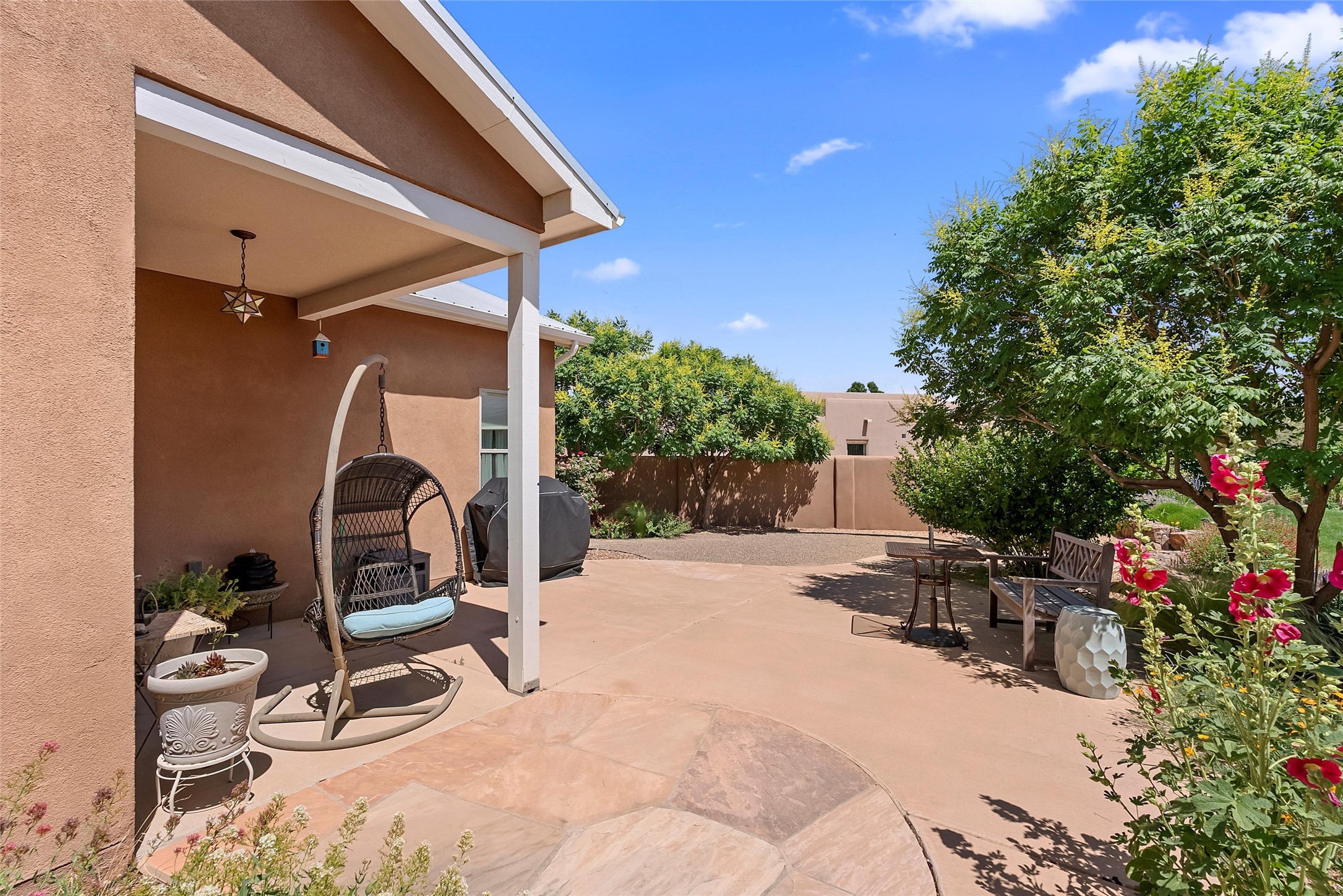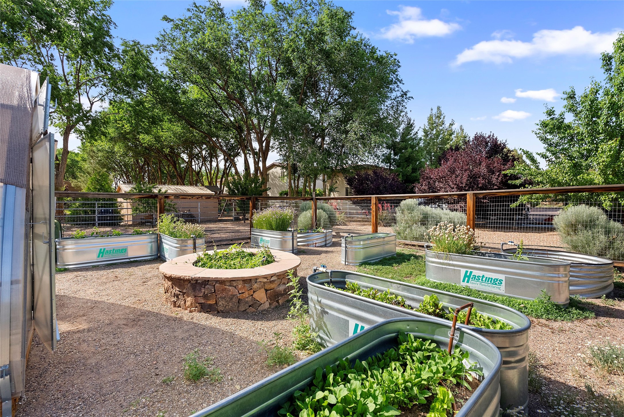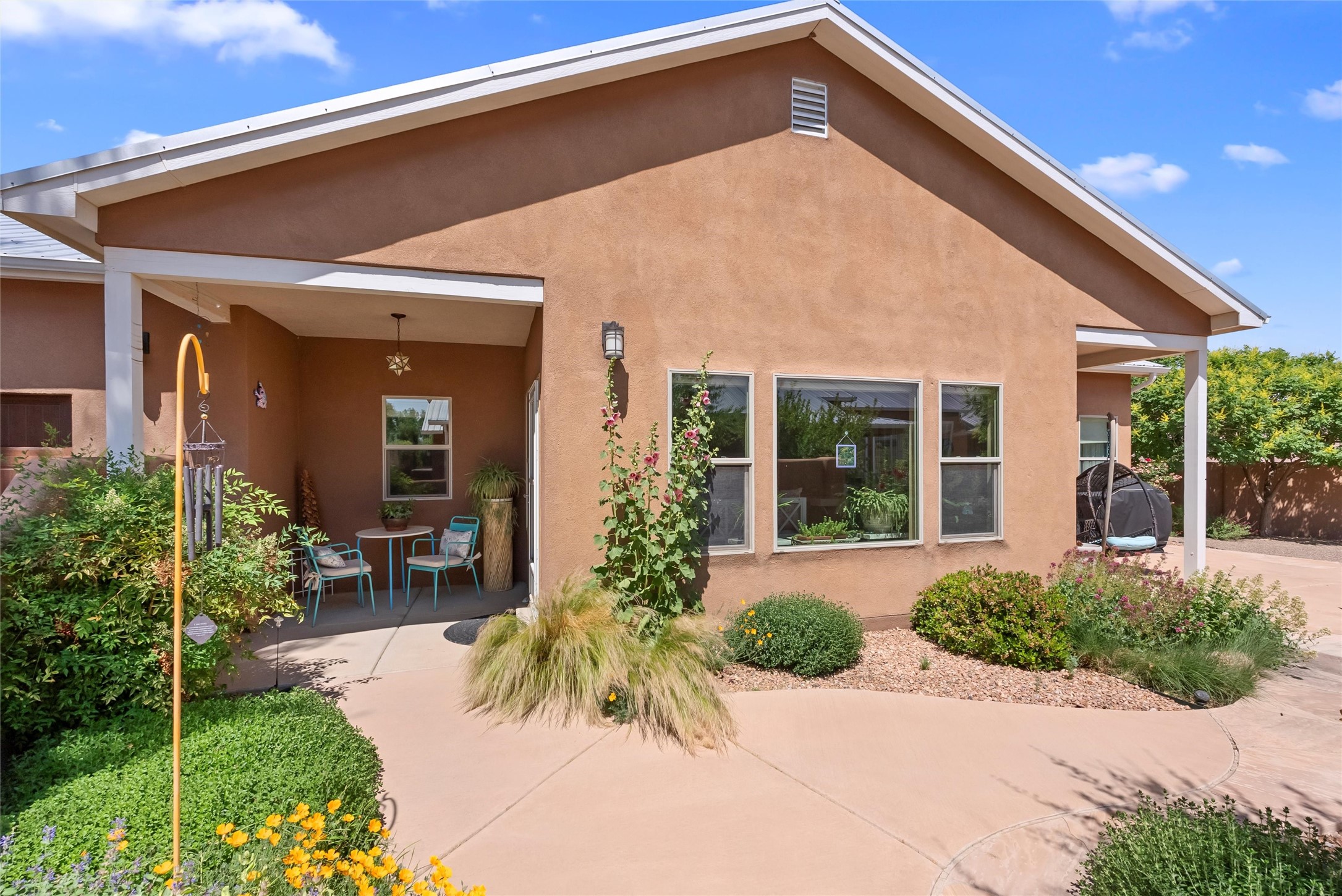 Experience refined desert living in this custom estate, nestled on 1.17 acres of artfully curated gardens and tranquil outdoor spaces. Recently renovated, the main residence blends timeless design with thoughtful upgrades--vaulted ceilings, built-ins, radiant heat, dual ovens, and a stunning remodeled kitchen with custom cabinetry and coffee nook. The fully equipped casita is ADA-compliant and ideal for guests or multigenerational living. Owned solar, deep well, epoxy garage, and extensive landscaping--every detail reflects care. This property is complete with a workshop, greenhouse and fenced in garden area, perfect for your hobbies! A rare blend of privacy, sustainability, and elegance.