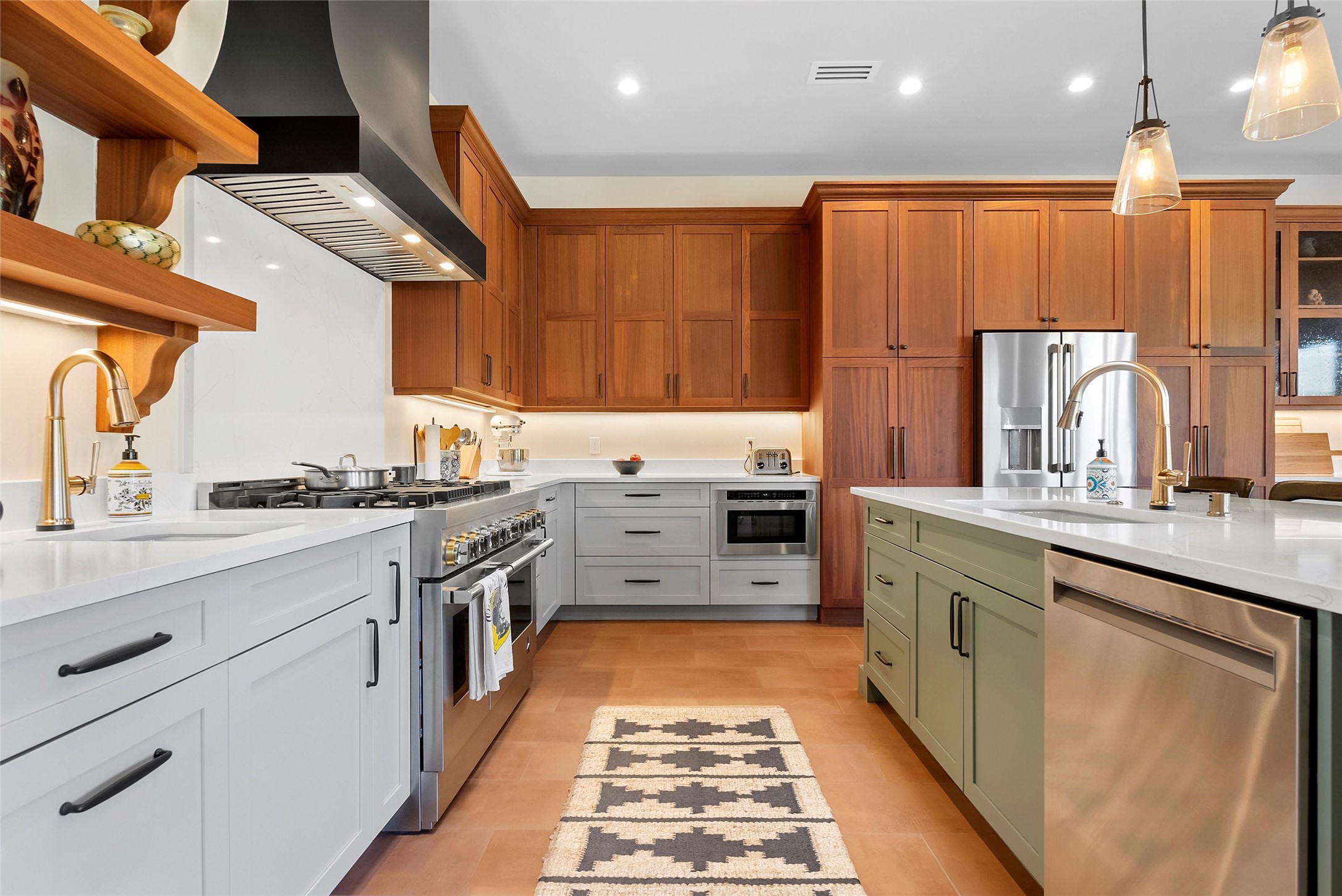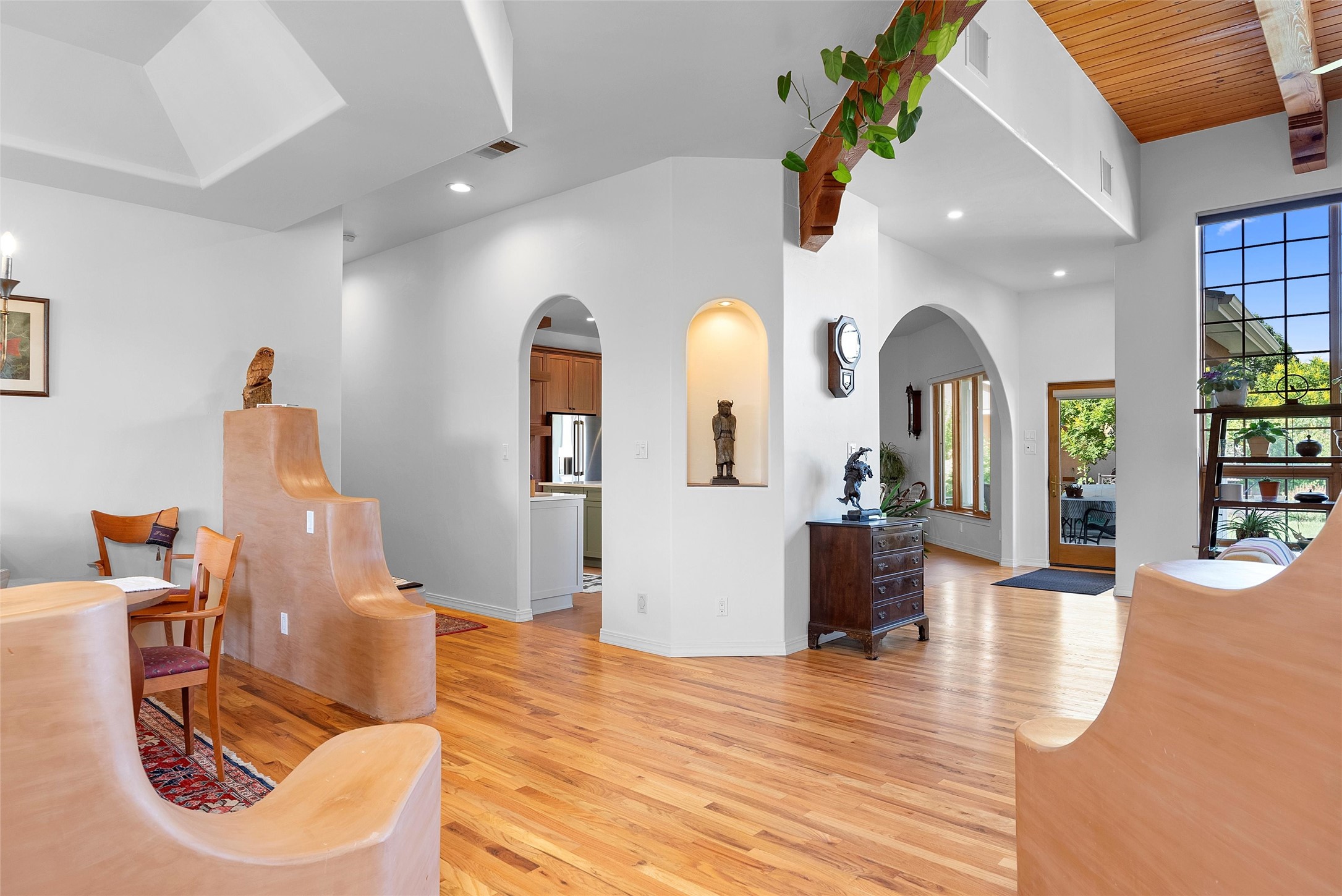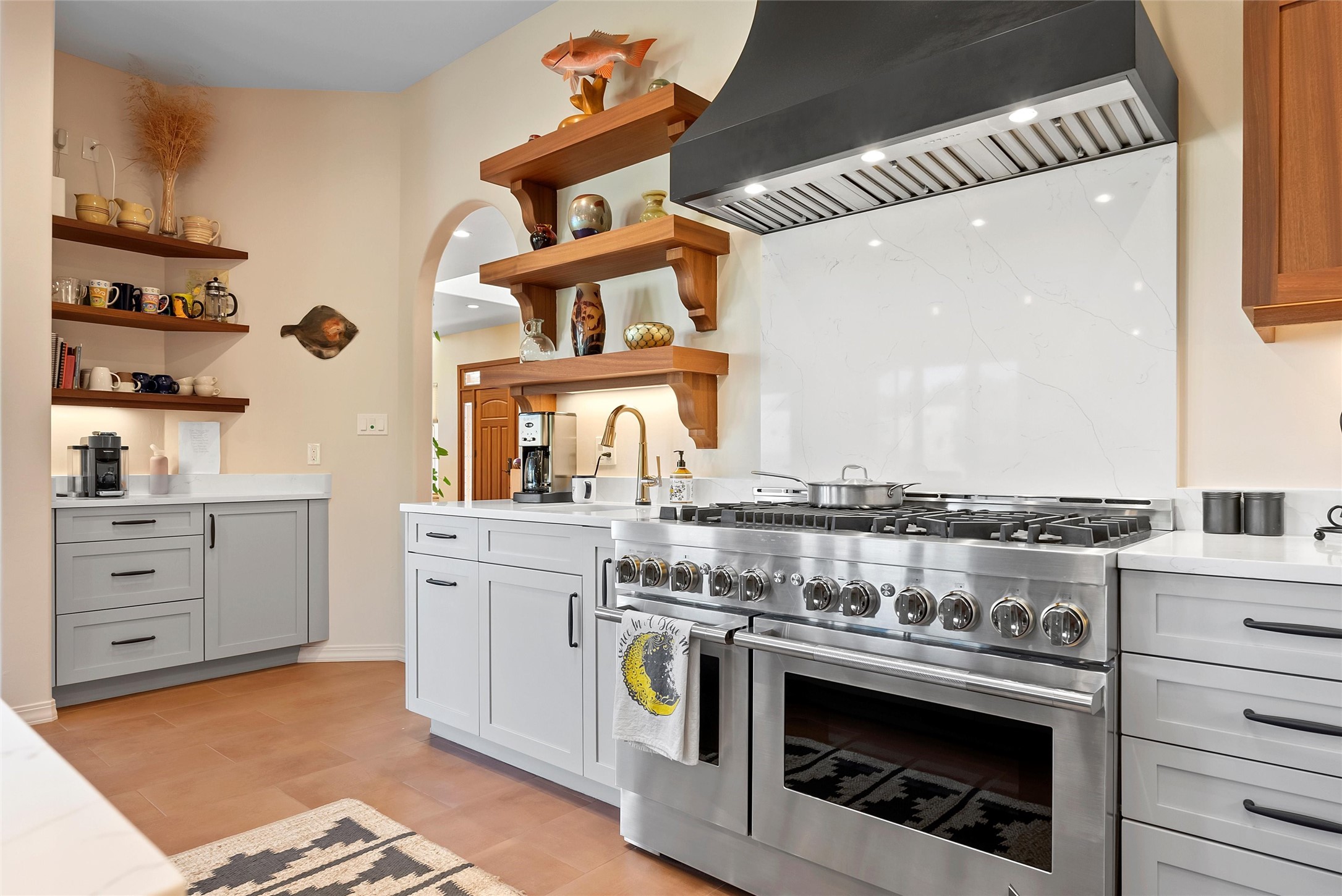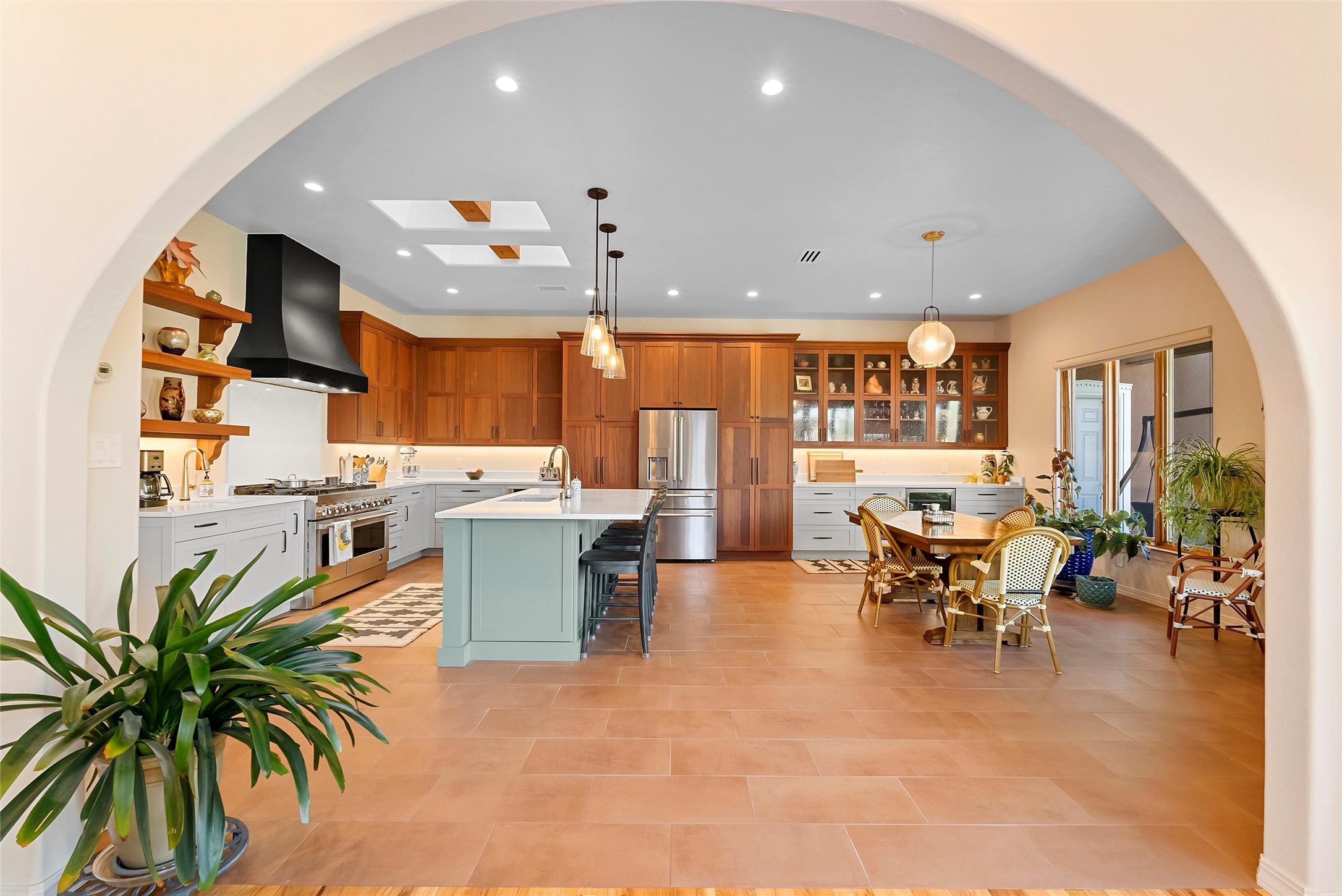 Experience refined desert living in this custom estate, nestled on 1.17 acres of artfully curated gardens and tranquil outdoor spaces. Recently renovated, the main residence blends timeless design with thoughtful upgrades--vaulted ceilings, built-ins, radiant heat, dual ovens, and a stunning remodeled kitchen with custom cabinetry and coffee nook. The fully equipped casita is ADA-compliant and ideal for guests or multigenerational living. Owned solar, deep well, epoxy garage, and extensive landscaping--every detail reflects care. This property is complete with a workshop, greenhouse and fenced in garden area, perfect for your hobbies! A rare blend of privacy, sustainability, and elegance.