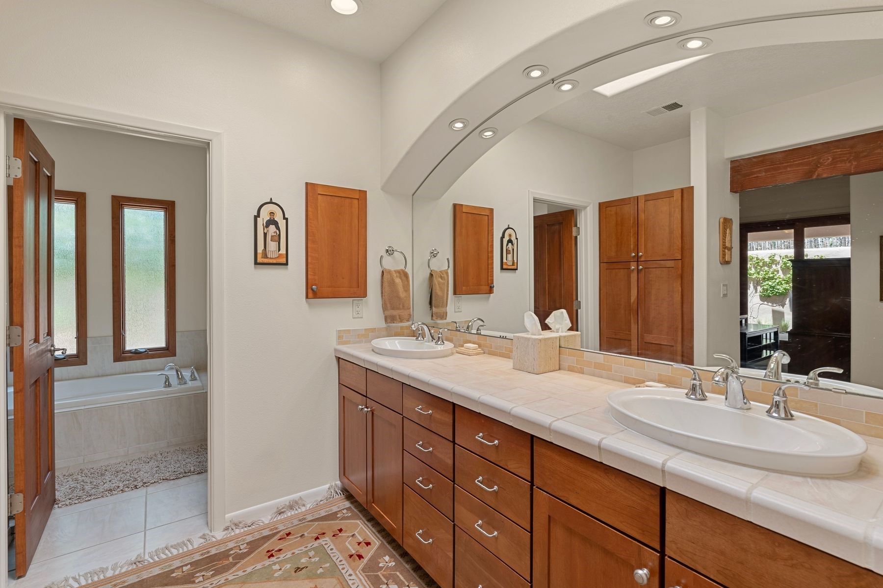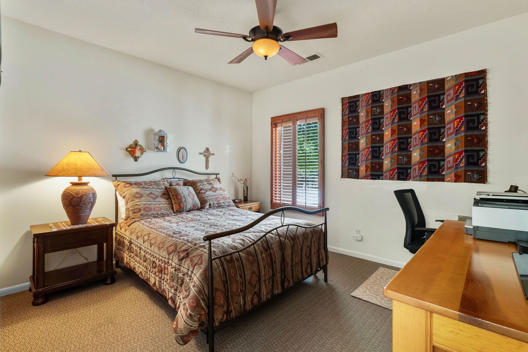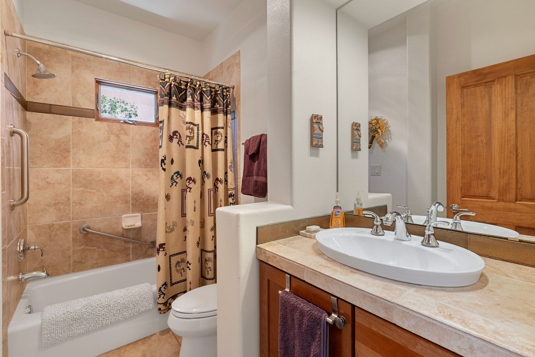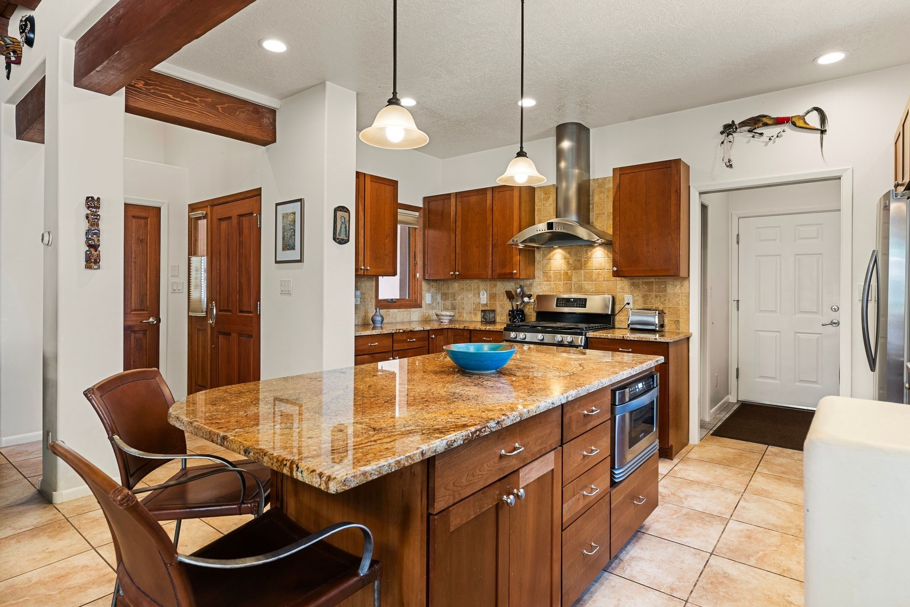 Located in the desirable Plazas at Old Pecos Trail community, this beautifully maintained 2-bedroom, 2-bath home offers a perfect blend of comfort, style, and convenience. Just a 10-minute drive to downtown Santa Fe and close to hiking trails, shopping, restaurants, and medical facilities, this home is ideally situated for both relaxation and accessibility.Inside, you'll find an open-concept layout with tall ceilings and abundant natural light. The living room features a cozy gas fireplace, built-in shelves, and seamless flow into the dining and kitchen areas. The updated kitchen boasts granite countertops, a large center island, and newer appliances, making it a functional and inviting space for cooking and entertaining.The spacious primary suite includes patio access through sliding doors, a covered portal, a walk-in shower, and a separate soaking tub. Step outside to enjoy the beautifully landscaped, low-maintenance yard complete with a water feature, a covered portal off the dining room, and an enclosed backyard with a raised privacy wall--ideal for outdoor dining or quiet retreat. An oversized two-car garage adds extra storage and convenience. Additional highlights include forced air cooling, a tankless water heater, and a washer and dryer that stay with the home.This bright and welcoming home is move-in ready and perfect for those seeking comfort and charm in a prime Santa Fe location.