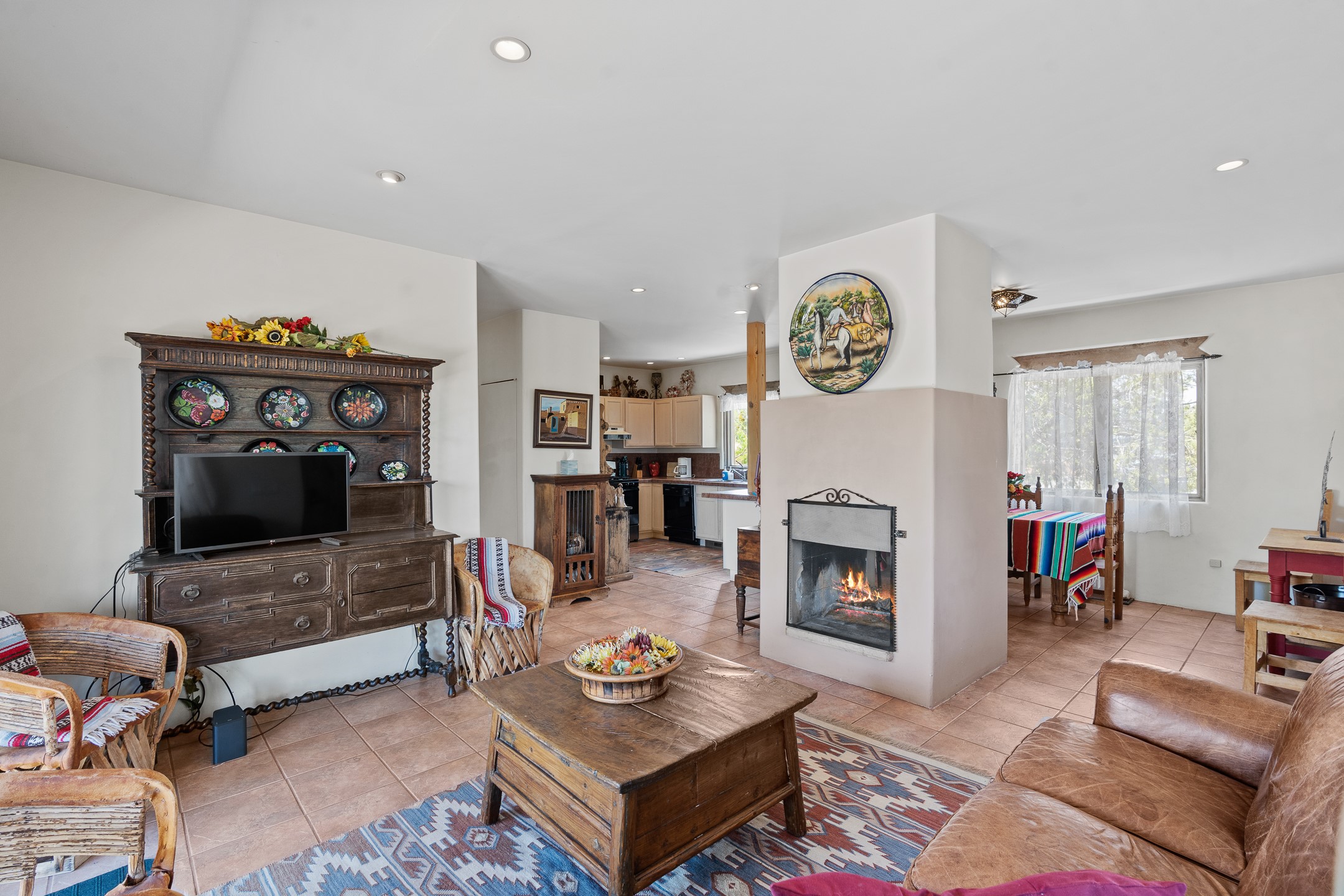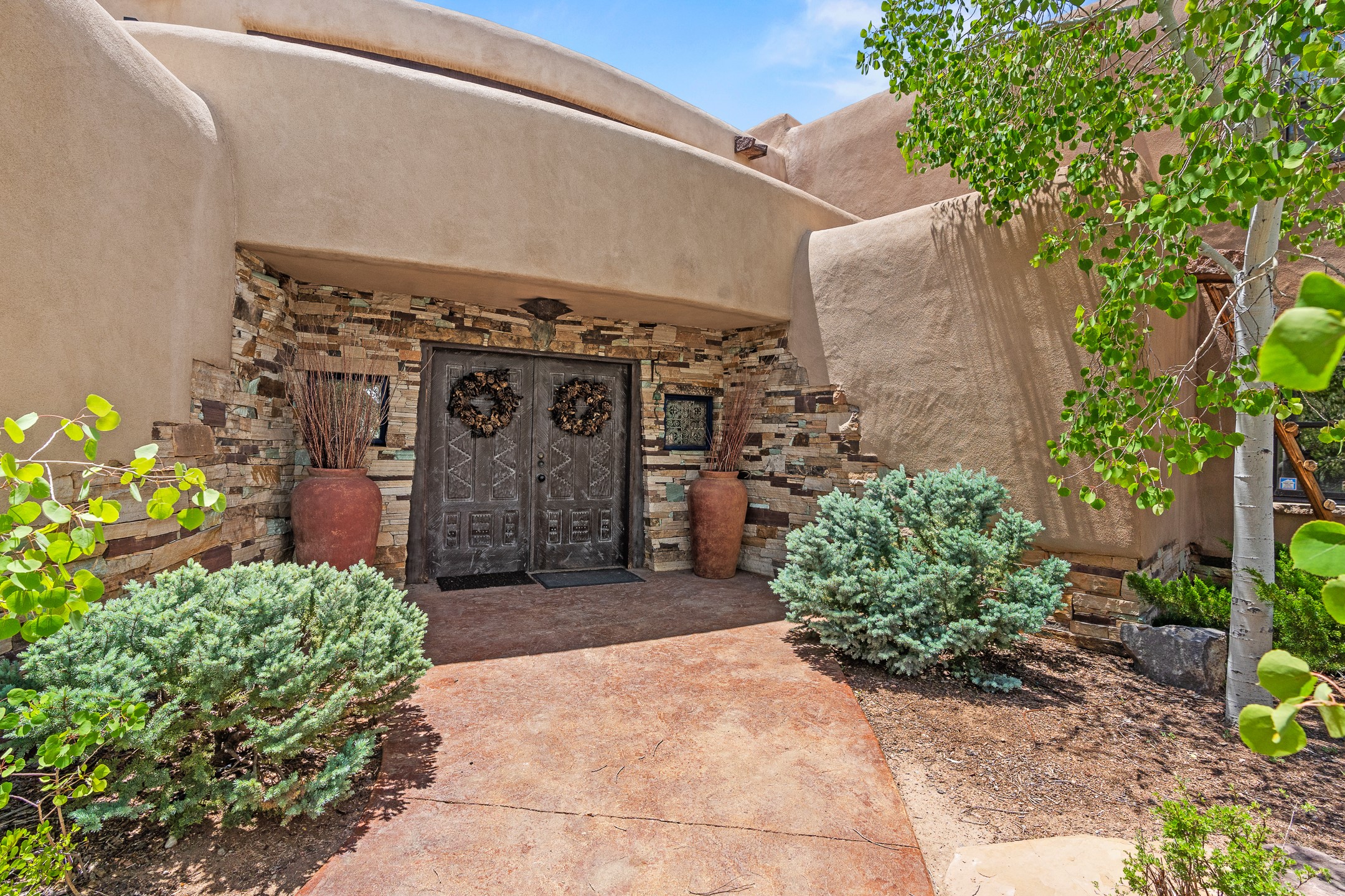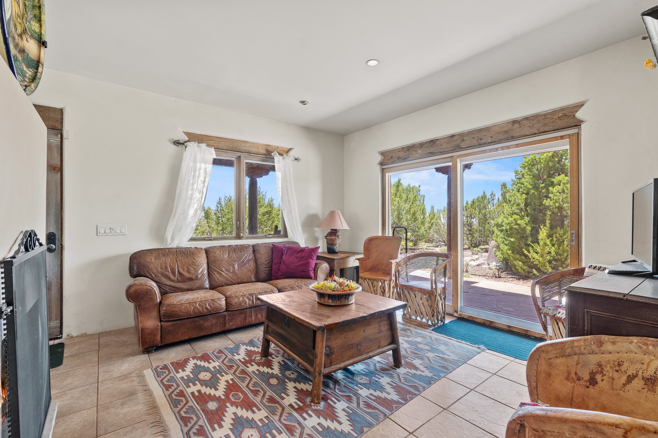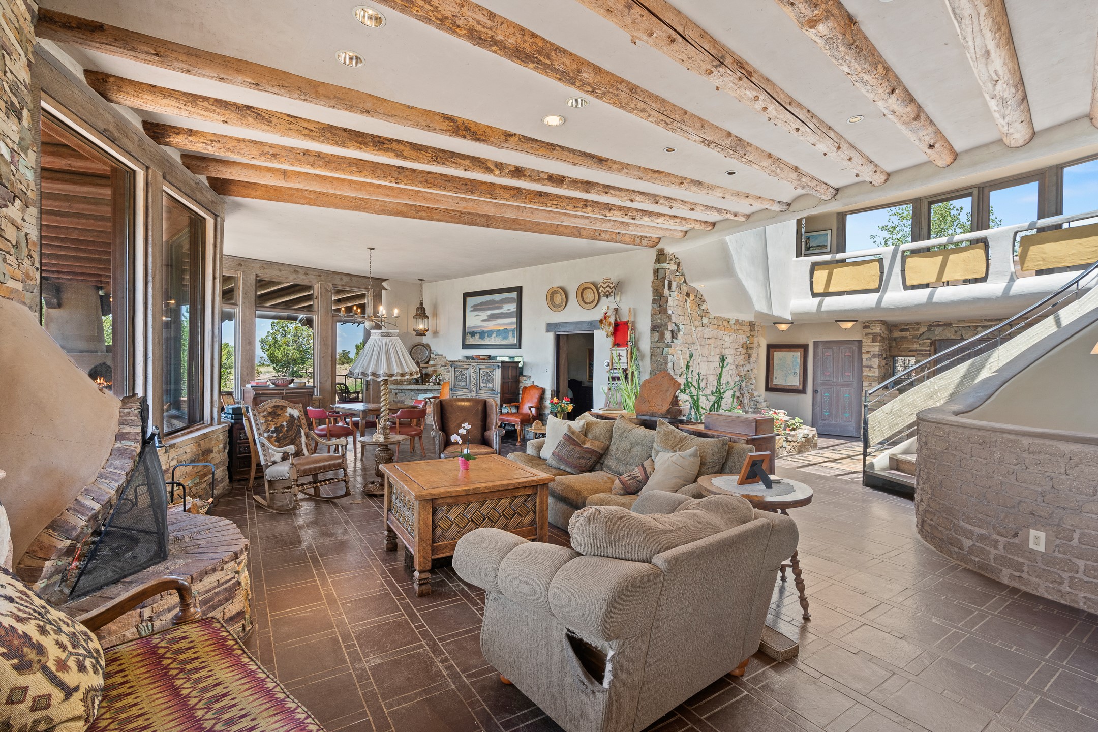 Las Campanas Gem: Timeless Character Meets Exceptional livingNestled in the prestigious Las Campanas community, this distinctive residence offers a rare opportunity to own a property brimming with authentic Santa Fe charm and unparalleled architectural character. Set on a generous 1.71-acre lot, the main home boasts approximately 4,195 sq ft of living space, complemented by a detached, pull-through two-car garage and a separate 2-bedroom guest house of about 1,031 sq ft--providing exceptional flexibility and privacy.Designed for seamless indoor/outdoor living, the expansive covered patio invites year-round entertaining with a classic kiva fireplace and built-in grill, perfect for al fresco gatherings amid breathtaking natural surroundings. An exquisite exposed adobe wall inside adds warmth and authenticity, complementing the traditional vigas and coved ceilings throughout.The property is graced by a serene Aspen grove, creating a tranquil natural setting and enhancing privacy. Panoramic 180-degree views stretch from the Sandia and Ortiz Mountains to the Sangre de Cristo range, offering an ever-changing backdrop of dramatic New Mexico landscapes.Inside, stunning rock wall accents and a light-filled indoor atrium create a unique ambiance, while large skylights flood the space with natural light. The built-in kitchen nook offers a cozy space for casual dining, and generous living areas provide a thoughtful floor plan that invites personalization and renovation.While the home offers solid bones and timeless elements, it presents an exceptional canvas for a tasteful renovation or enhancement to meet modern luxury standards.Experience the charm and promise of this captivating Las Campanas retreat--an exclusive opportunity to craft your dream home in one of Santa Fe's most coveted neighborhoods. Unlock the full potential of this one-of-a-kind residence where tradition meets possibility.