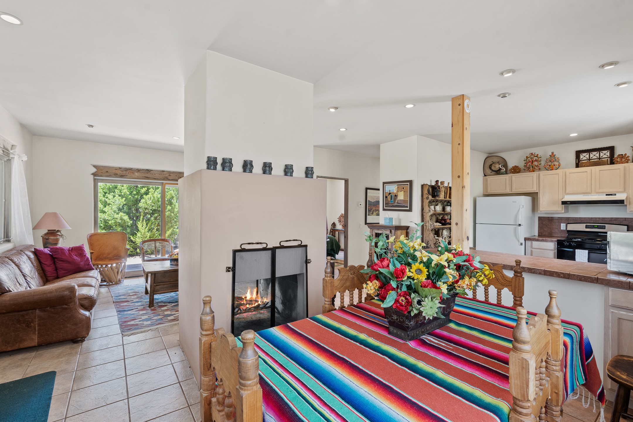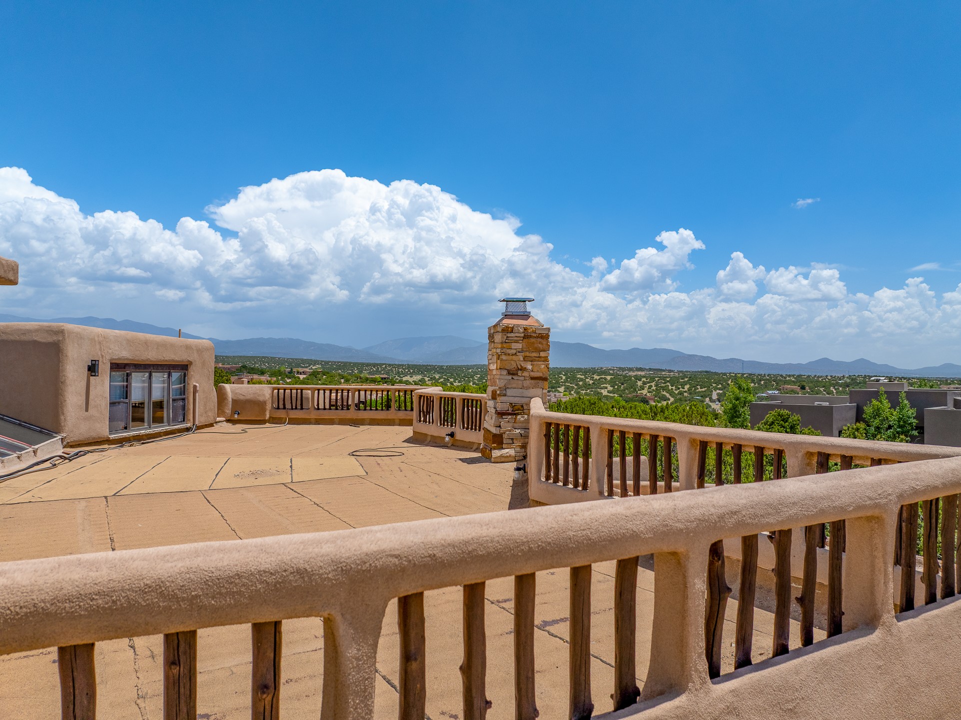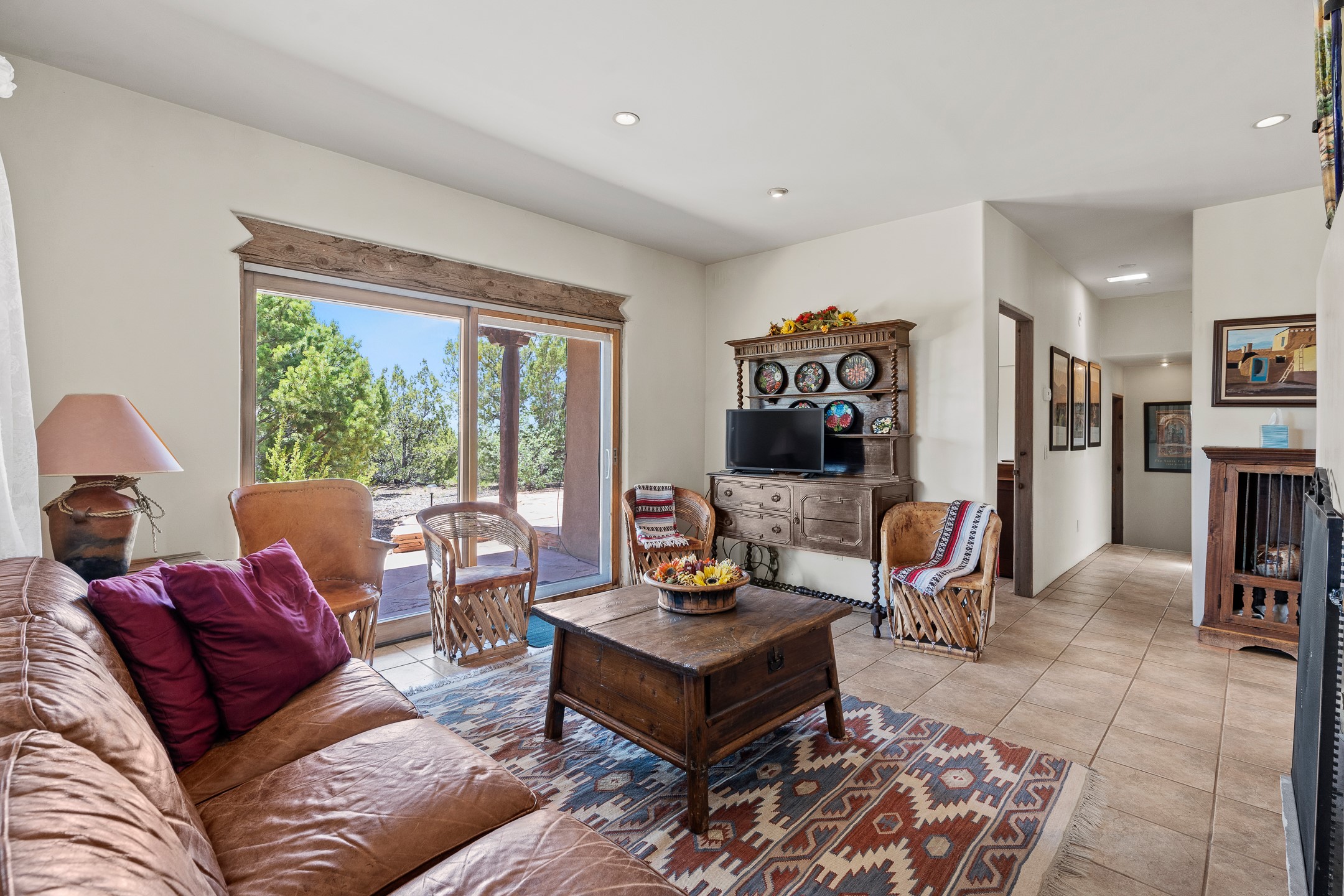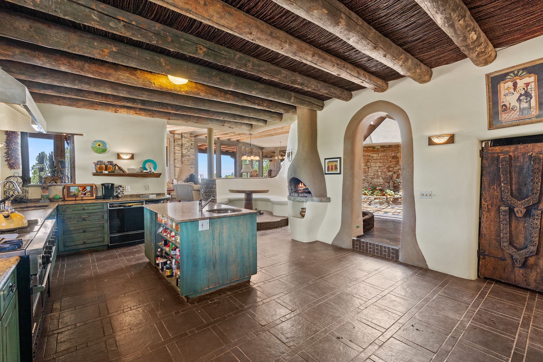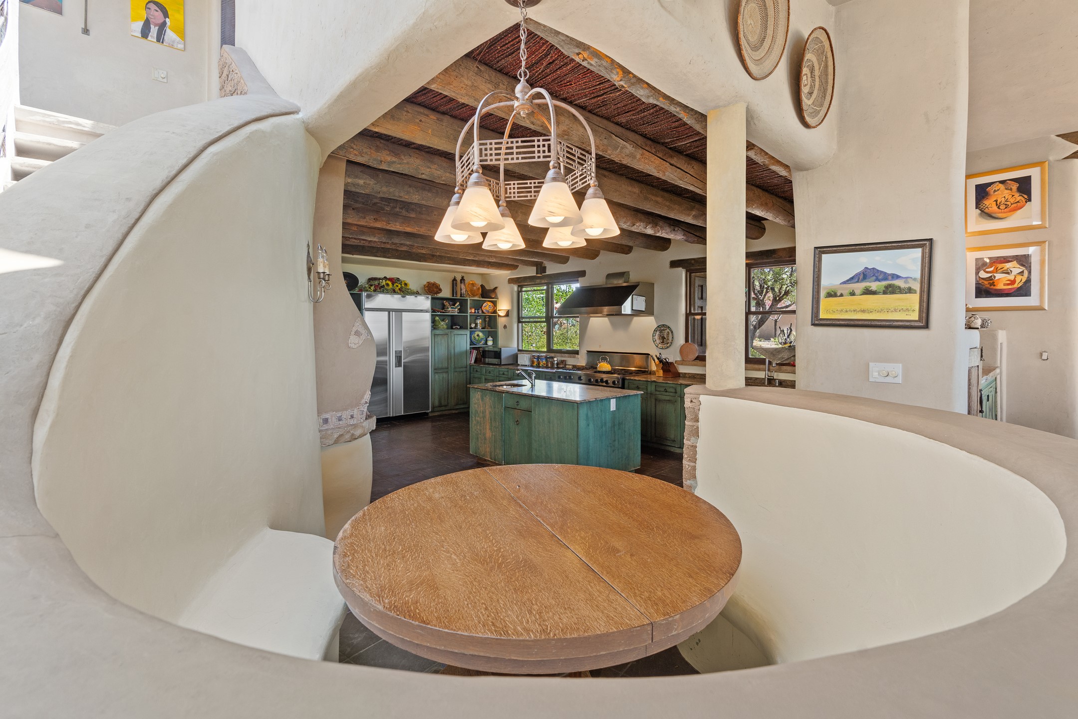 Las Campanas Gem: Timeless Character Meets Exceptional livingNestled in the prestigious Las Campanas community, this distinctive residence offers a rare opportunity to own a property brimming with authentic Santa Fe charm and unparalleled architectural character. Set on a generous 1.71-acre lot, the main home boasts approximately 4,195 sq ft of living space, complemented by a detached, pull-through two-car garage and a separate 2-bedroom guest house of about 1,031 sq ft--providing exceptional flexibility and privacy.Designed for seamless indoor/outdoor living, the expansive covered patio invites year-round entertaining with a classic kiva fireplace and built-in grill, perfect for al fresco gatherings amid breathtaking natural surroundings. An exquisite exposed adobe wall inside adds warmth and authenticity, complementing the traditional vigas and coved ceilings throughout.The property is graced by a serene Aspen grove, creating a tranquil natural setting and enhancing privacy. Panoramic 180-degree views stretch from the Sandia and Ortiz Mountains to the Sangre de Cristo range, offering an ever-changing backdrop of dramatic New Mexico landscapes.Inside, stunning rock wall accents and a light-filled indoor atrium create a unique ambiance, while large skylights flood the space with natural light. The built-in kitchen nook offers a cozy space for casual dining, and generous living areas provide a thoughtful floor plan that invites personalization and renovation.While the home offers solid bones and timeless elements, it presents an exceptional canvas for a tasteful renovation or enhancement to meet modern luxury standards.Experience the charm and promise of this captivating Las Campanas retreat--an exclusive opportunity to craft your dream home in one of Santa Fe's most coveted neighborhoods. Unlock the full potential of this one-of-a-kind residence where tradition meets possibility.