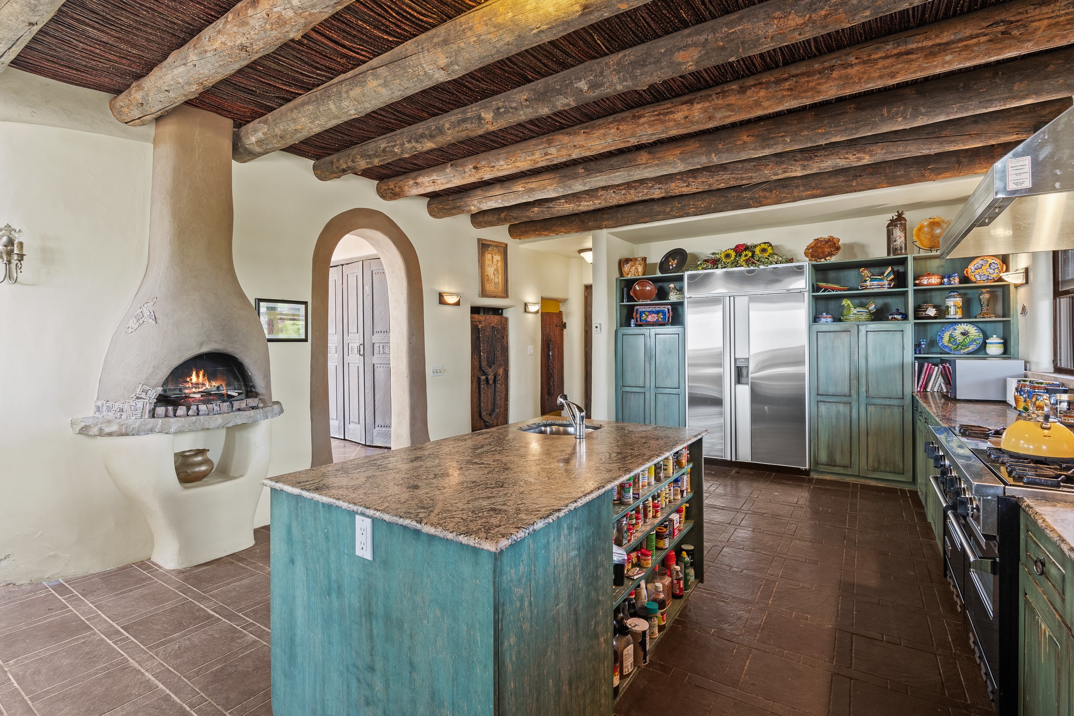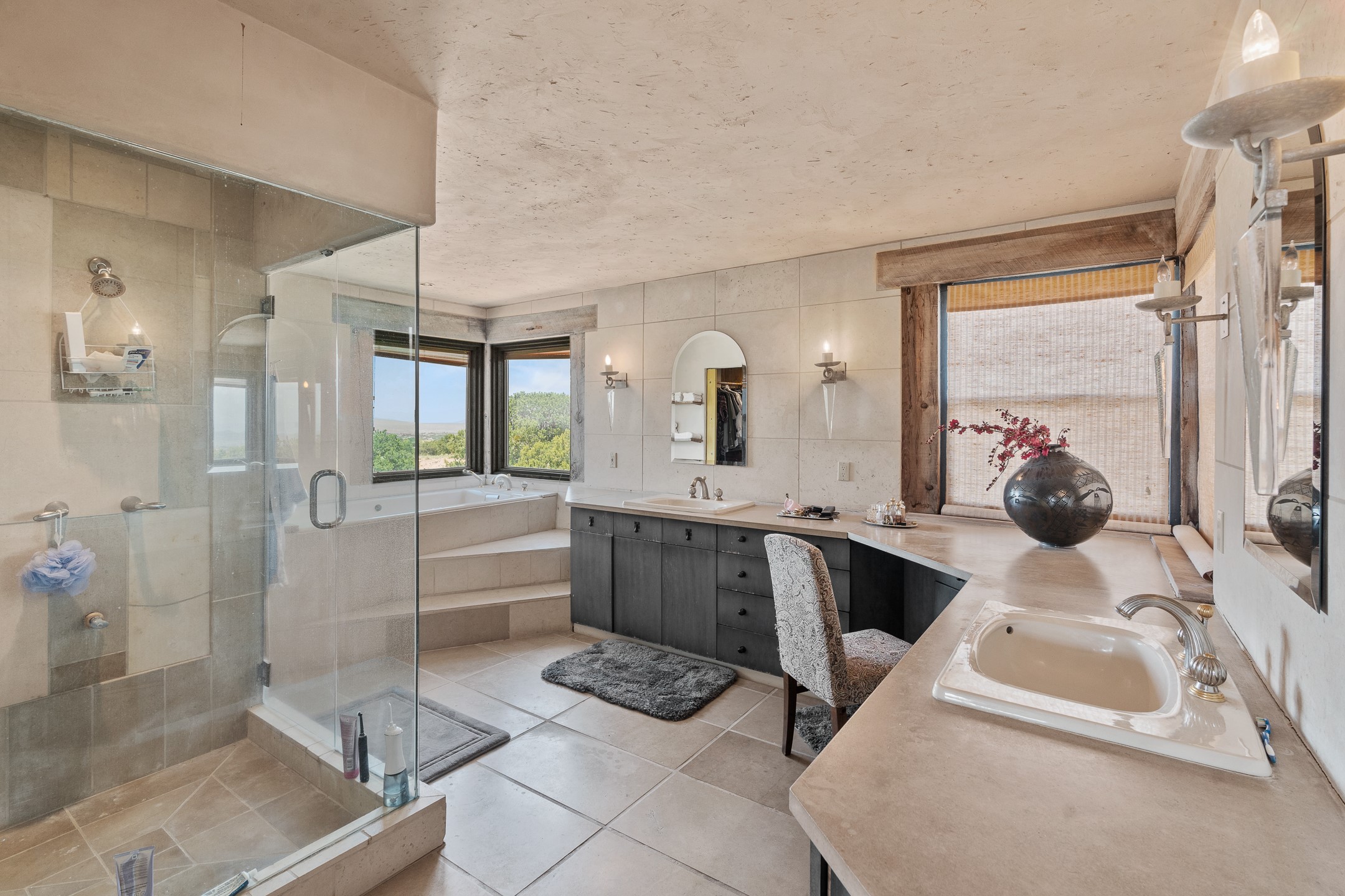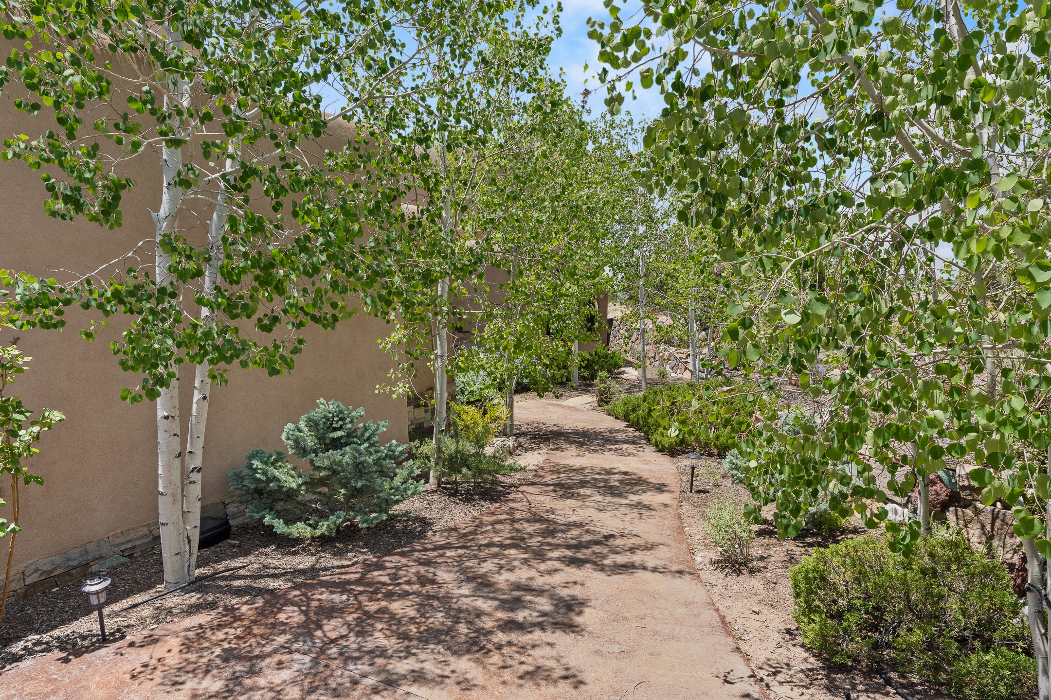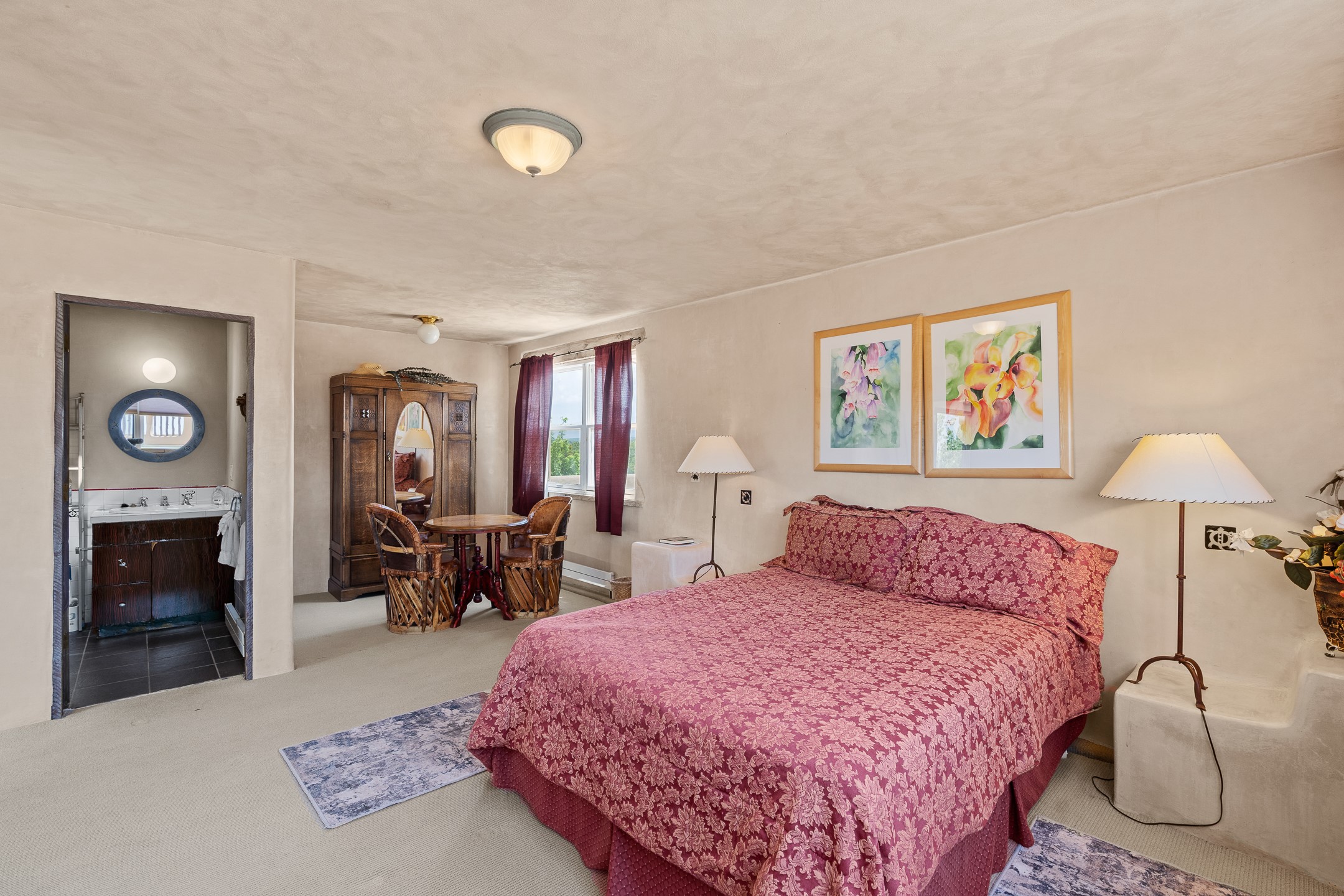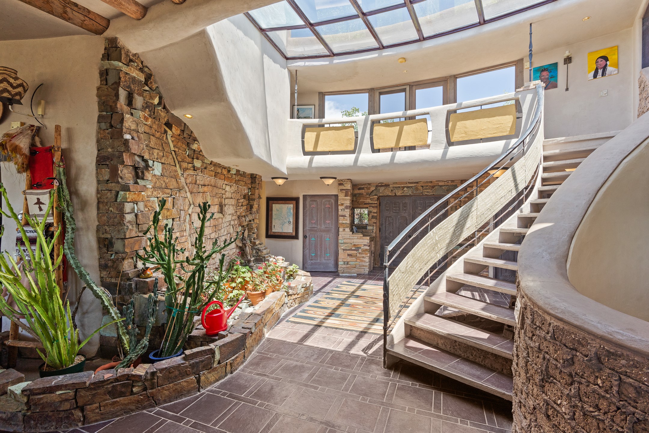 Las Campanas Gem: Timeless Character Meets Exceptional livingNestled in the prestigious Las Campanas community, this distinctive residence offers a rare opportunity to own a property brimming with authentic Santa Fe charm and unparalleled architectural character. Set on a generous 1.71-acre lot, the main home boasts approximately 4,195 sq ft of living space, complemented by a detached, pull-through two-car garage and a separate 2-bedroom guest house of about 1,031 sq ft--providing exceptional flexibility and privacy.Designed for seamless indoor/outdoor living, the expansive covered patio invites year-round entertaining with a classic kiva fireplace and built-in grill, perfect for al fresco gatherings amid breathtaking natural surroundings. An exquisite exposed adobe wall inside adds warmth and authenticity, complementing the traditional vigas and coved ceilings throughout.The property is graced by a serene Aspen grove, creating a tranquil natural setting and enhancing privacy. Panoramic 180-degree views stretch from the Sandia and Ortiz Mountains to the Sangre de Cristo range, offering an ever-changing backdrop of dramatic New Mexico landscapes.Inside, stunning rock wall accents and a light-filled indoor atrium create a unique ambiance, while large skylights flood the space with natural light. The built-in kitchen nook offers a cozy space for casual dining, and generous living areas provide a thoughtful floor plan that invites personalization and renovation.While the home offers solid bones and timeless elements, it presents an exceptional canvas for a tasteful renovation or enhancement to meet modern luxury standards.Experience the charm and promise of this captivating Las Campanas retreat--an exclusive opportunity to craft your dream home in one of Santa Fe's most coveted neighborhoods. Unlock the full potential of this one-of-a-kind residence where tradition meets possibility.
