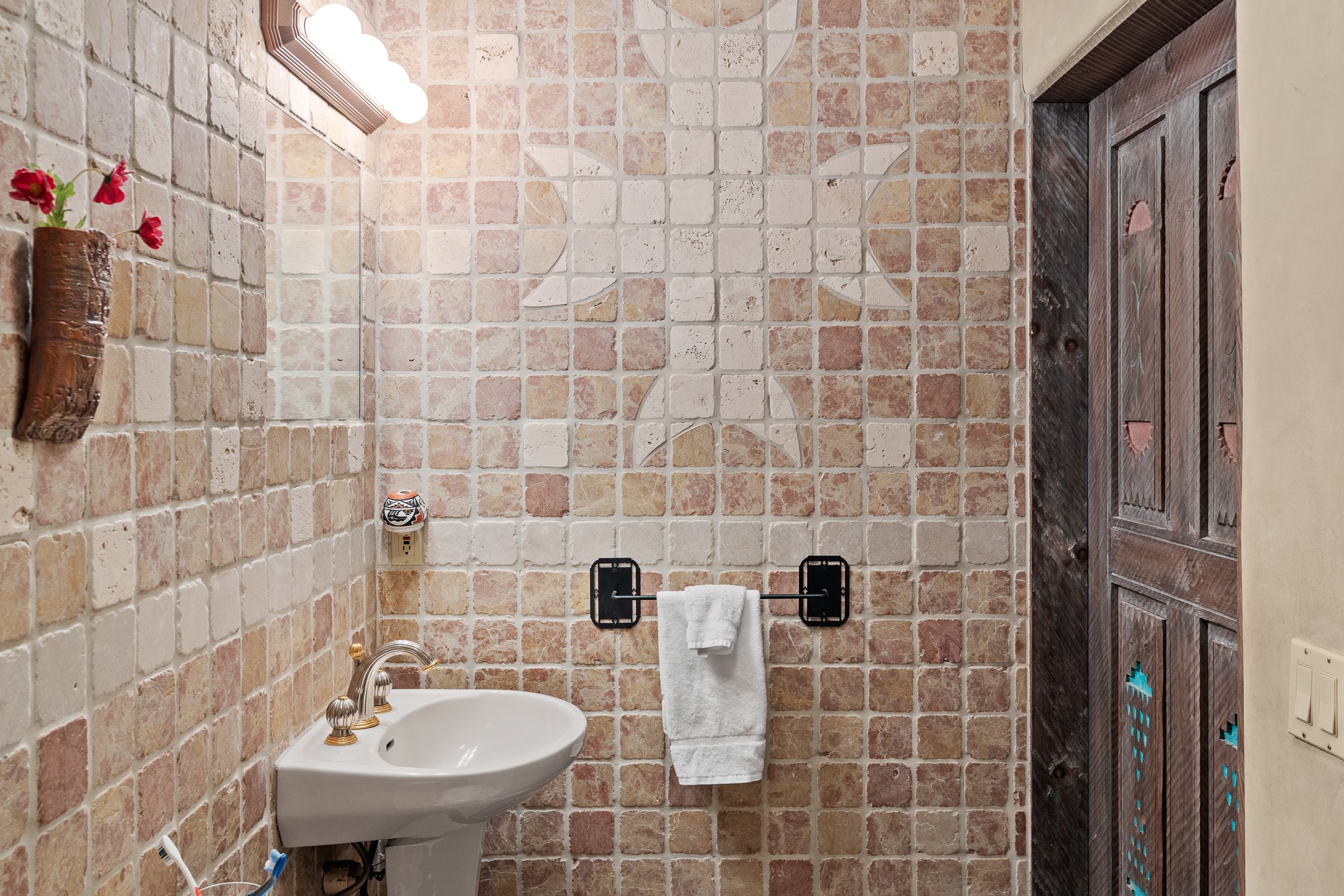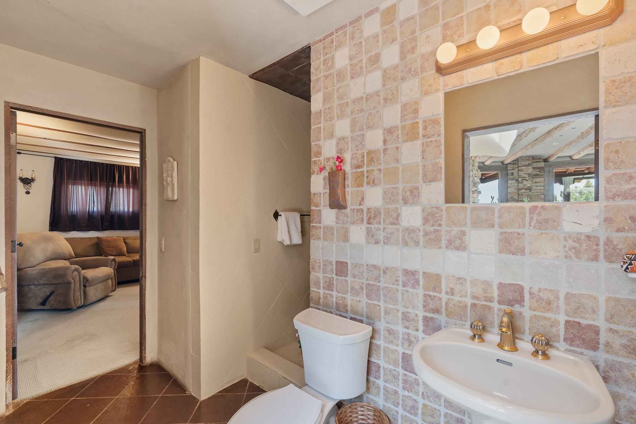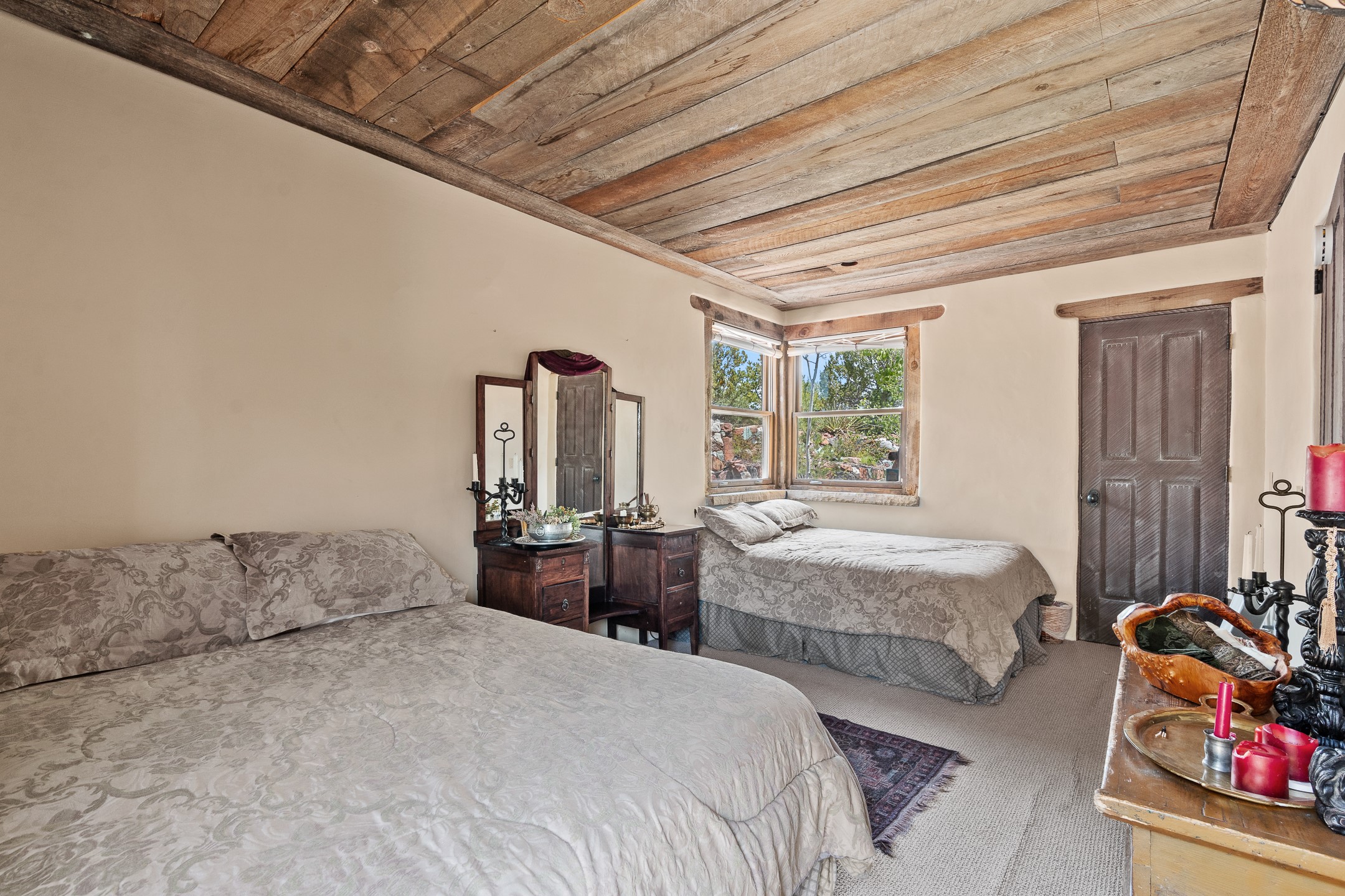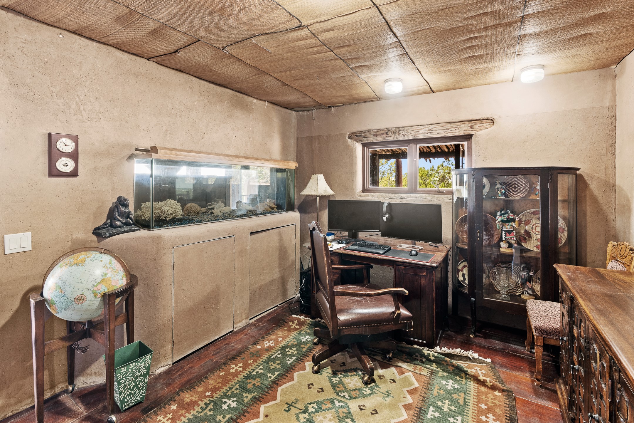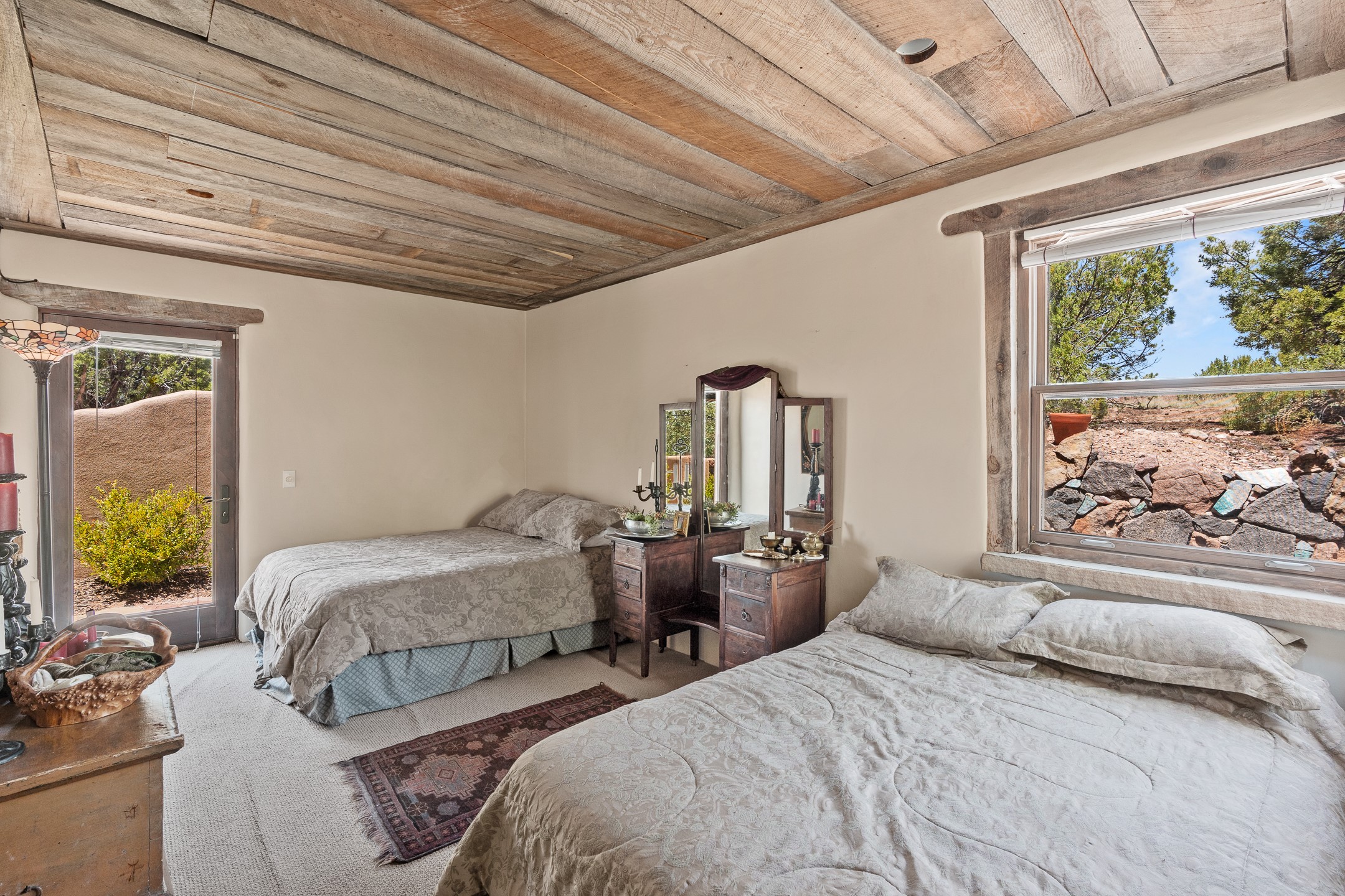 Las Campanas Gem: Timeless Character Meets Exceptional livingNestled in the prestigious Las Campanas community, this distinctive residence offers a rare opportunity to own a property brimming with authentic Santa Fe charm and unparalleled architectural character. Set on a generous 1.71-acre lot, the main home boasts approximately 4,195 sq ft of living space, complemented by a detached, pull-through two-car garage and a separate 2-bedroom guest house of about 1,031 sq ft--providing exceptional flexibility and privacy.Designed for seamless indoor/outdoor living, the expansive covered patio invites year-round entertaining with a classic kiva fireplace and built-in grill, perfect for al fresco gatherings amid breathtaking natural surroundings. An exquisite exposed adobe wall inside adds warmth and authenticity, complementing the traditional vigas and coved ceilings throughout.The property is graced by a serene Aspen grove, creating a tranquil natural setting and enhancing privacy. Panoramic 180-degree views stretch from the Sandia and Ortiz Mountains to the Sangre de Cristo range, offering an ever-changing backdrop of dramatic New Mexico landscapes.Inside, stunning rock wall accents and a light-filled indoor atrium create a unique ambiance, while large skylights flood the space with natural light. The built-in kitchen nook offers a cozy space for casual dining, and generous living areas provide a thoughtful floor plan that invites personalization and renovation.While the home offers solid bones and timeless elements, it presents an exceptional canvas for a tasteful renovation or enhancement to meet modern luxury standards.Experience the charm and promise of this captivating Las Campanas retreat--an exclusive opportunity to craft your dream home in one of Santa Fe's most coveted neighborhoods. Unlock the full potential of this one-of-a-kind residence where tradition meets possibility.