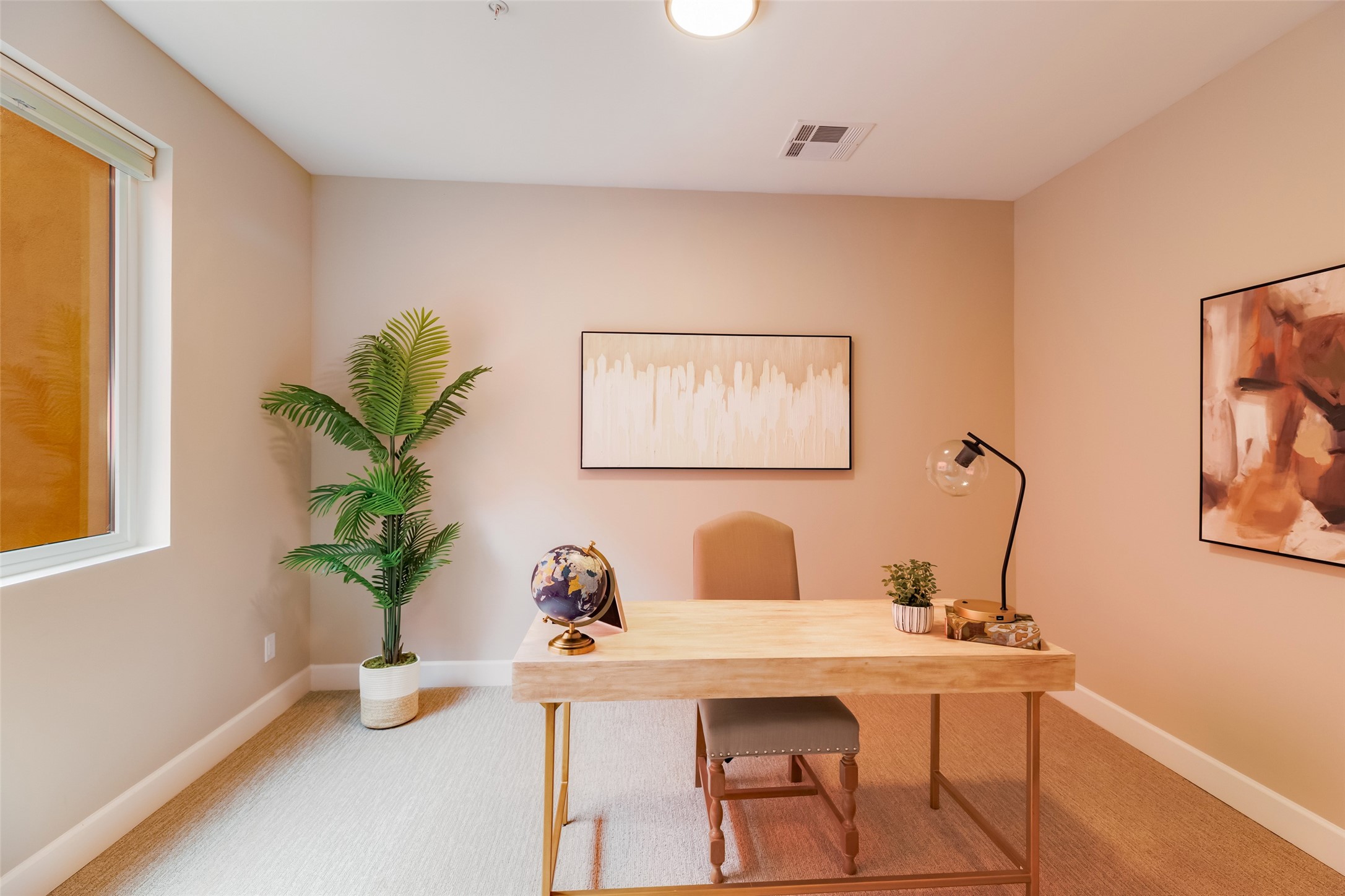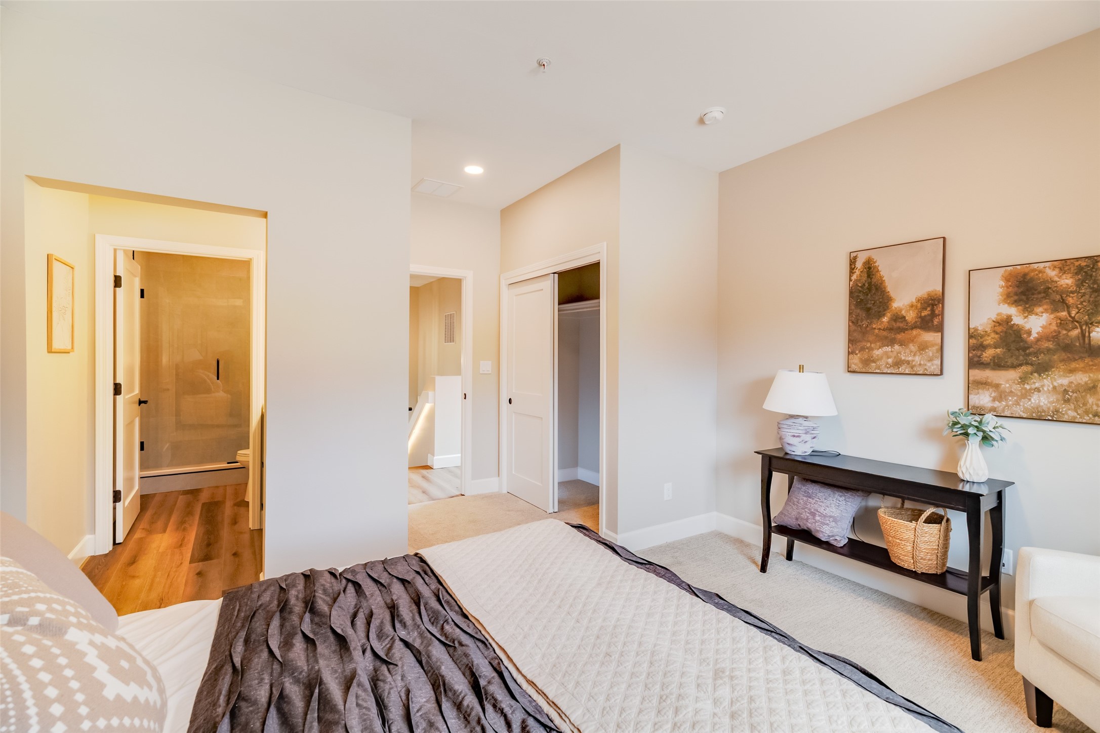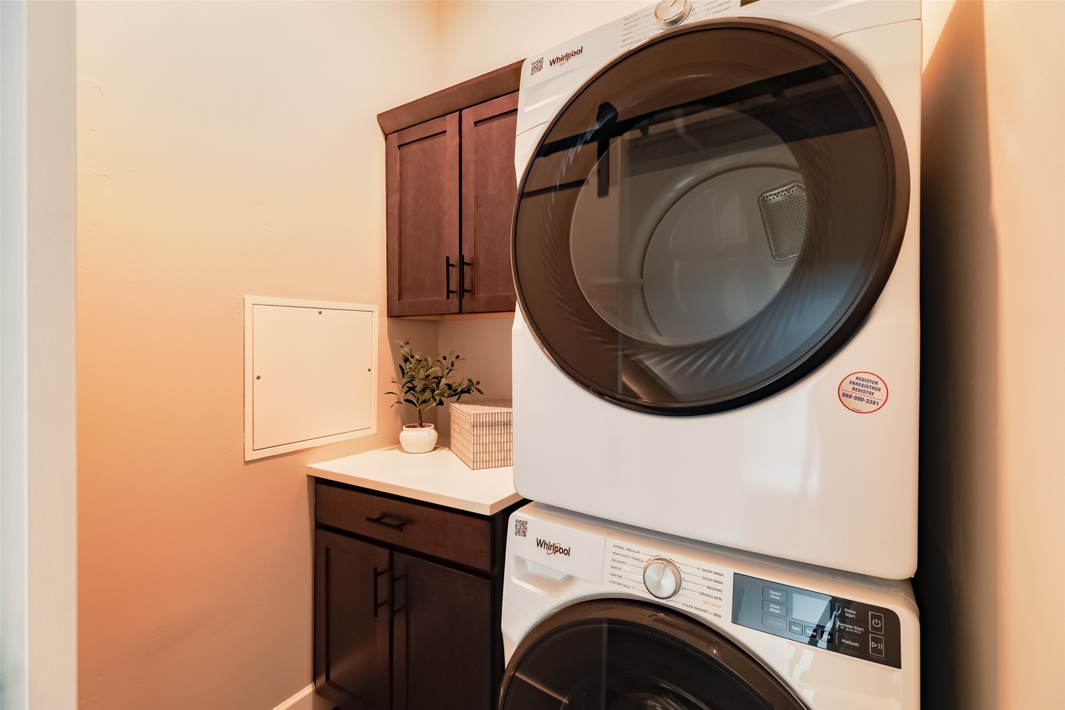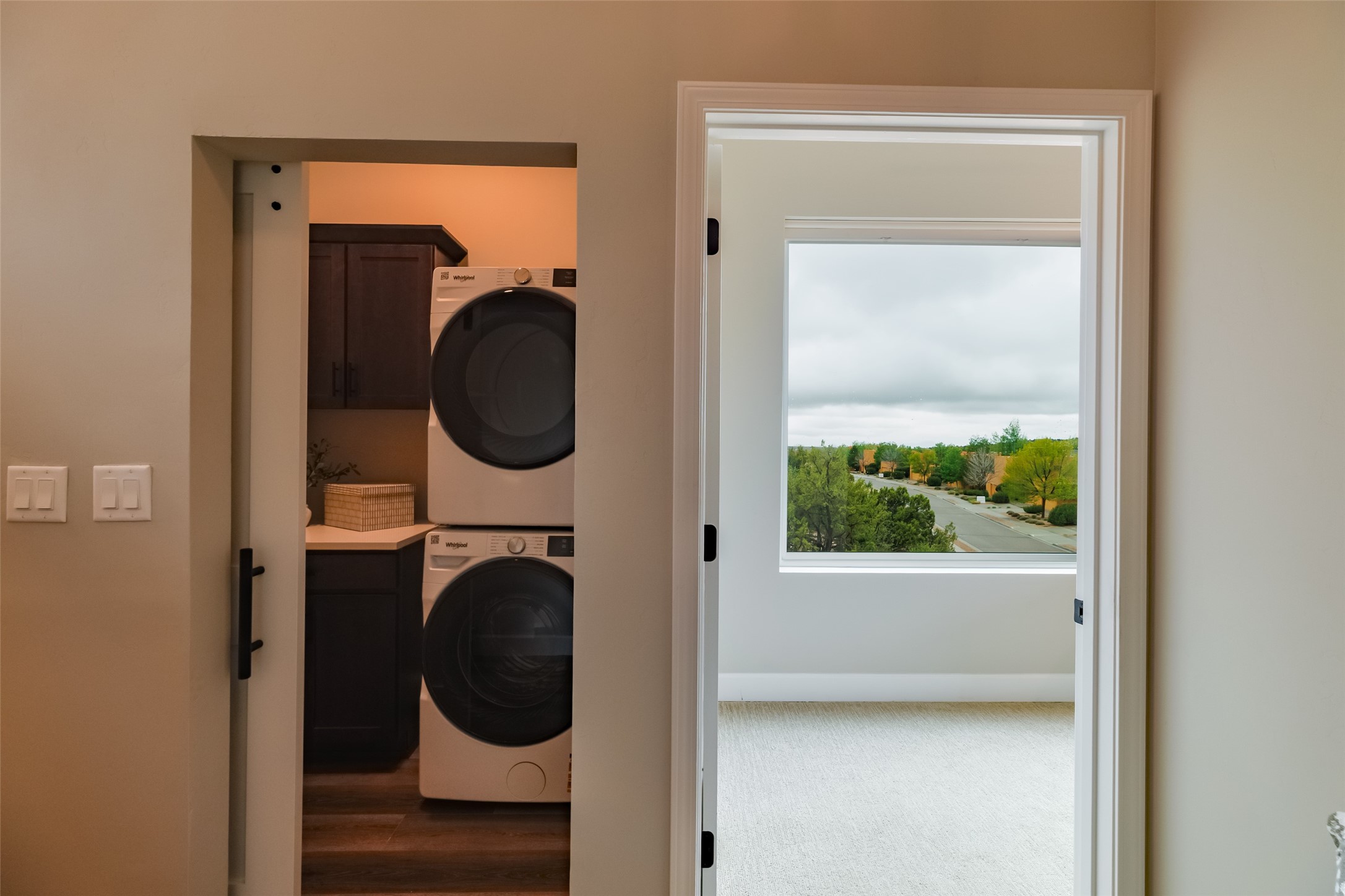 Welcome to Zocalo, Santa Fe -- This exceptional end unit is a gem within the community, combining luxury and practicality. Step into the spacious great room, featuring MODERN GRAY TONES and beautiful SPC luxury vinyl flooring. The space is enhanced by a sleek beverage bar and a contemporary fireplace, perfect for entertaining or relaxing evenings. The kitchen and bathrooms are adorned with white and grey quartz countertops, adding elegance and brightness. In the primary suite, enjoy a second fireplace, creating a luxurious retreat for restful nights. Outside, the upgraded landscaping complements the stunning Santa Fe climate, offering a peaceful setting for outdoor enjoyment.