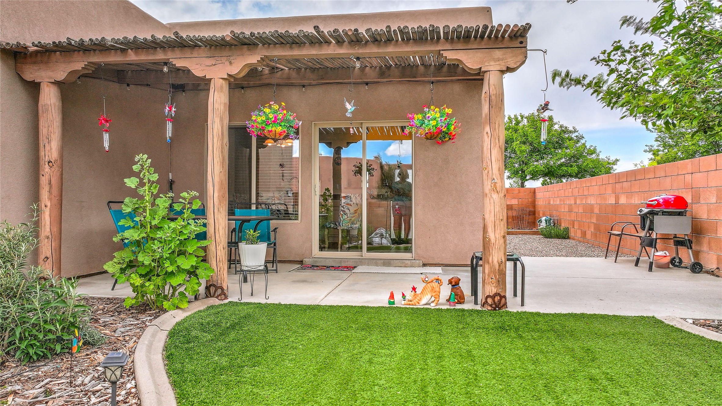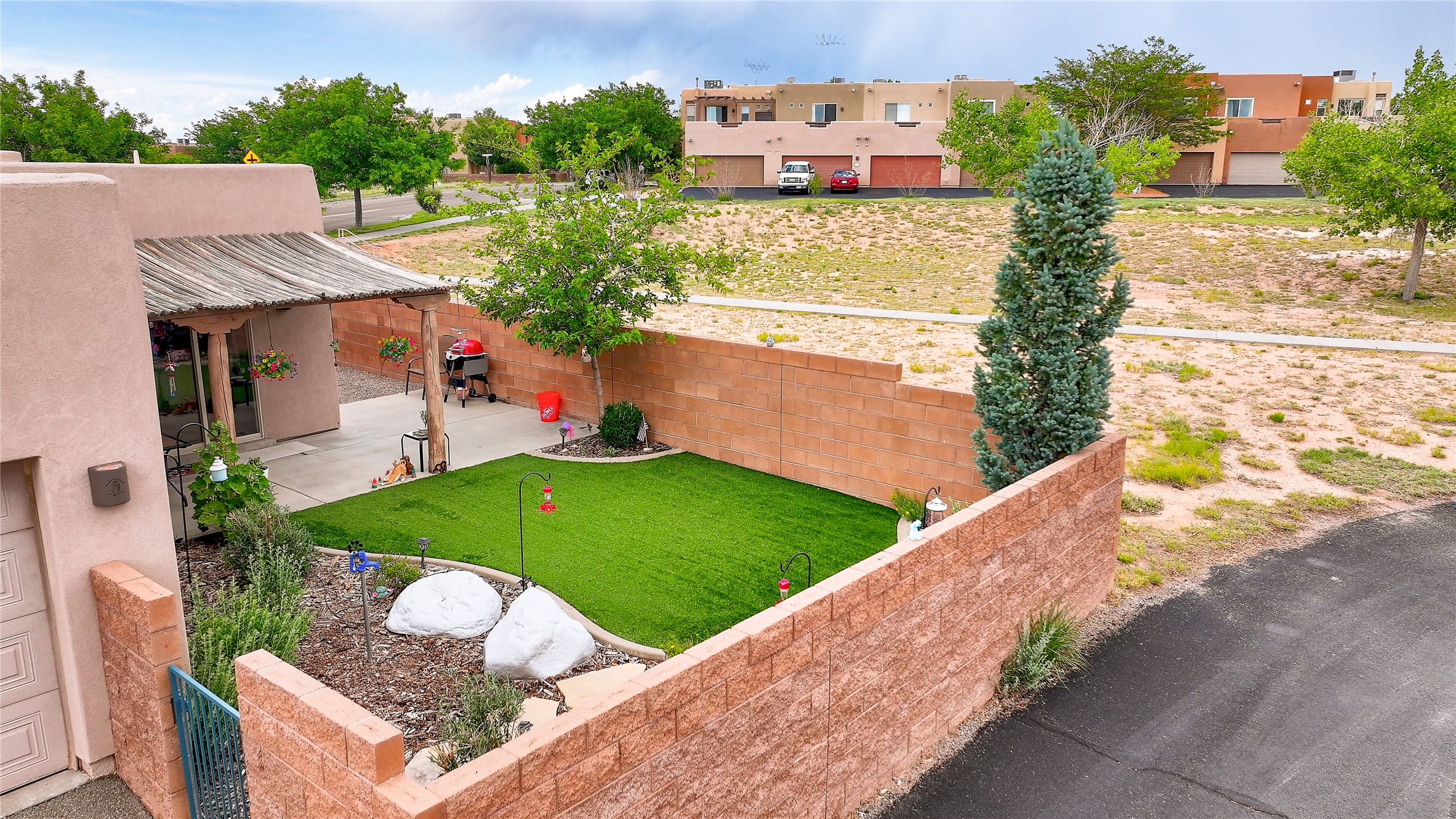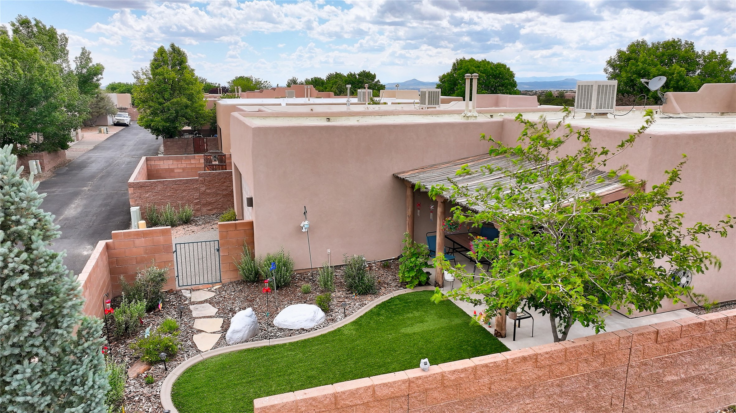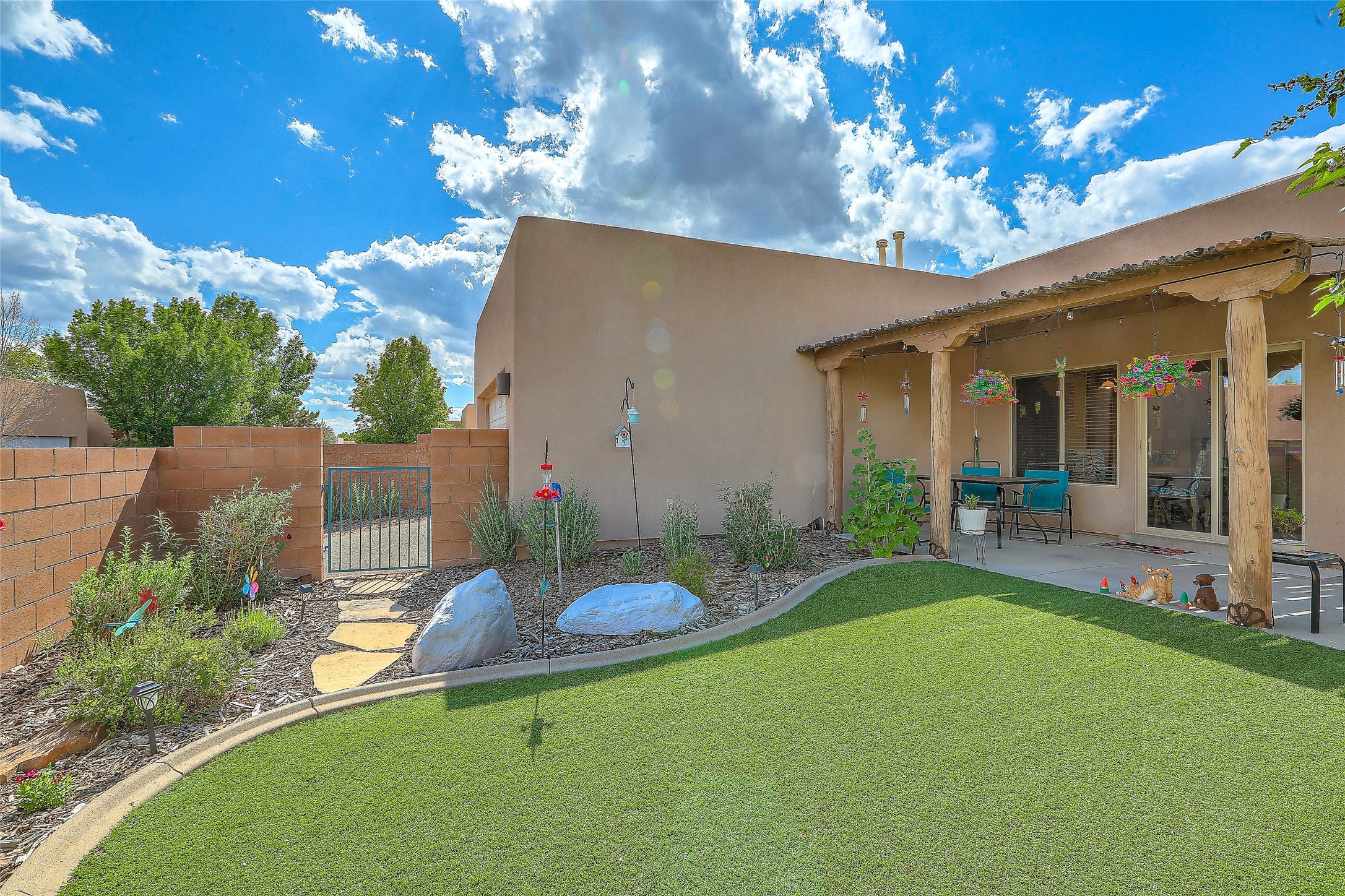 Well loved and cared for home. Move-In Ready with thoughtful touches! Why wait to build? Well designed, this updated lovely home with a newer roof, stucco, & appliances. Spacious layout and great outdoor space. Lots of privacy, end unit with open space and views surrounding it. One level, light and bright & impeccably clean. Guest parking out front of home. 2 car attached garage off alley for easy access. HOA includes trash pickup, road maintenance & snow removal. Community parks, walking, biking and hiking trails everywhere! The open-concept design combines the large kitchen dining area and the main large living room space. Outside, the covered portal showcases to a private backyard oasis enclosed by a privacy wall. Beautiful landscaping, combined with astroturf for pets, allows for beauty with low maintenance. Night time skies for relaxing while stargazing at night. Located in the highly desirable Rancho Viejo community, this home is part of a unique village concept dedicated to open space. With more than 14 miles of scenic walking trails and numerous parks, residents enjoy a serene and active lifestyle. Plus, you're roughly 14 miles from the Santa Fe Plaza, making it easy to experience all the culture, dining, & entertainment Santa Fe has to offer. Don't miss this rare opportunity to own this newly updated home in a tree filled community--schedule your showing today, this one won't be on the market long!