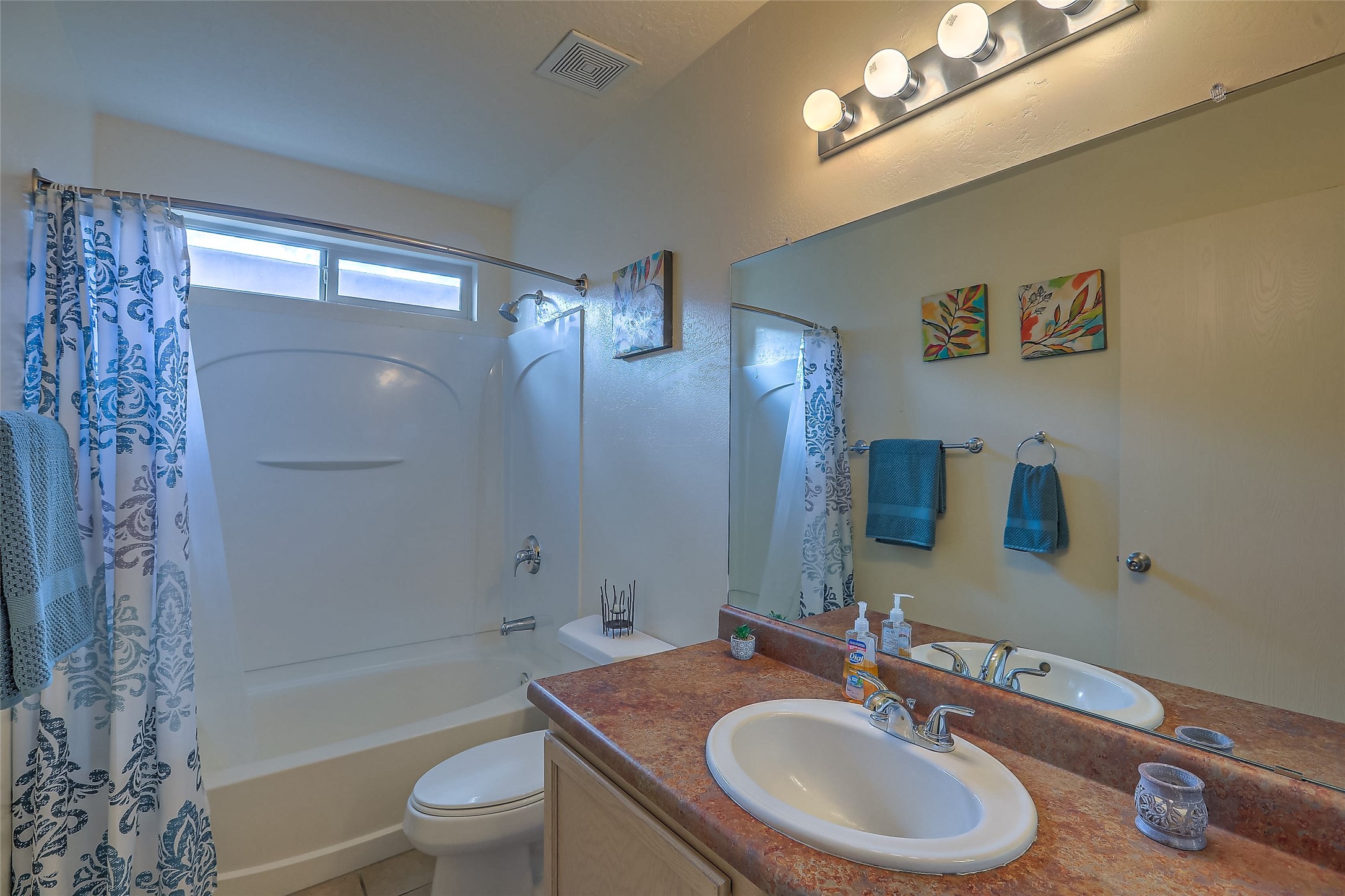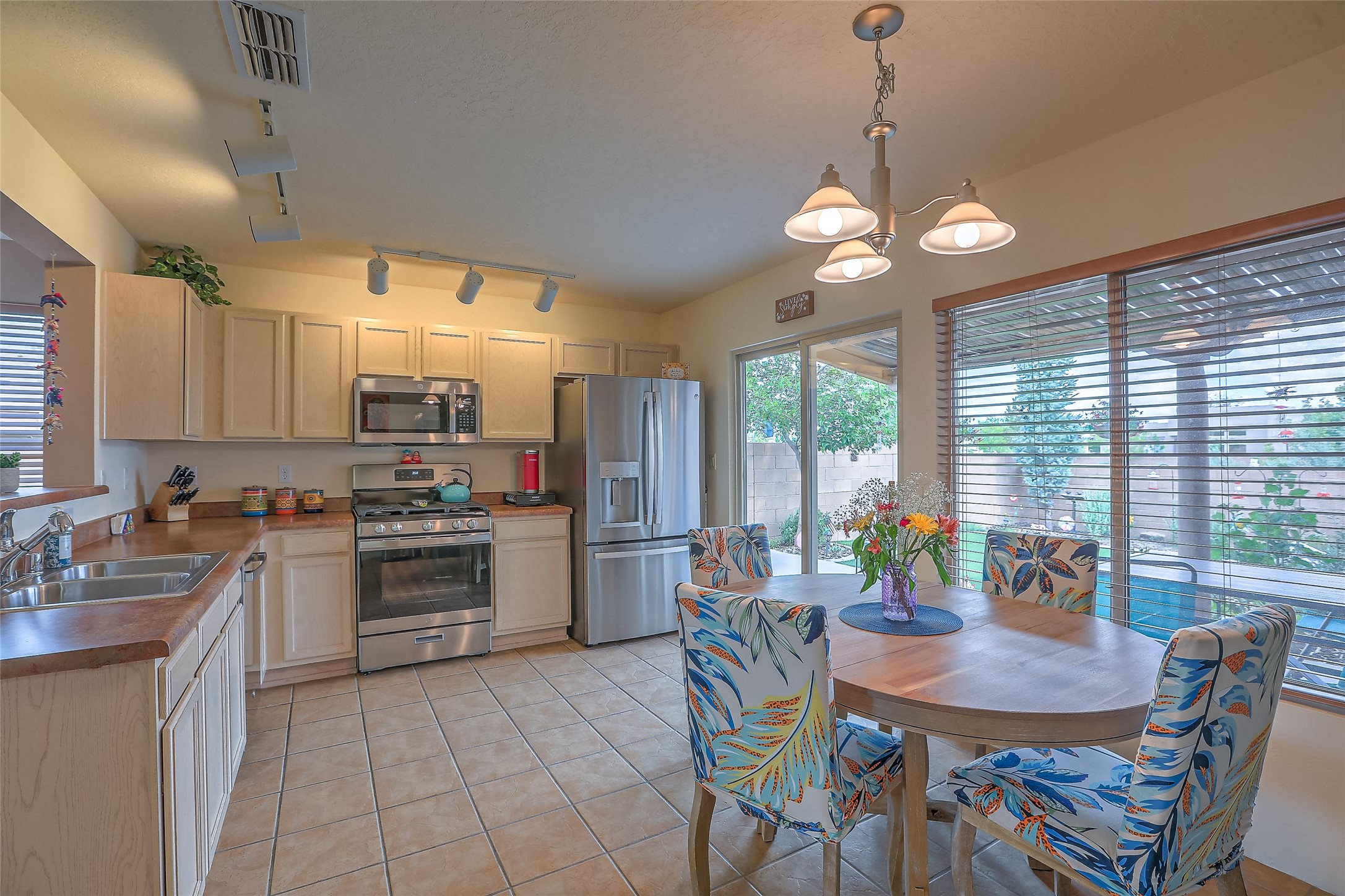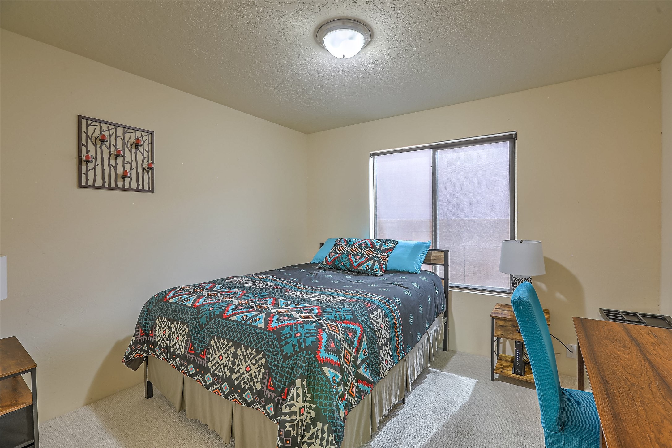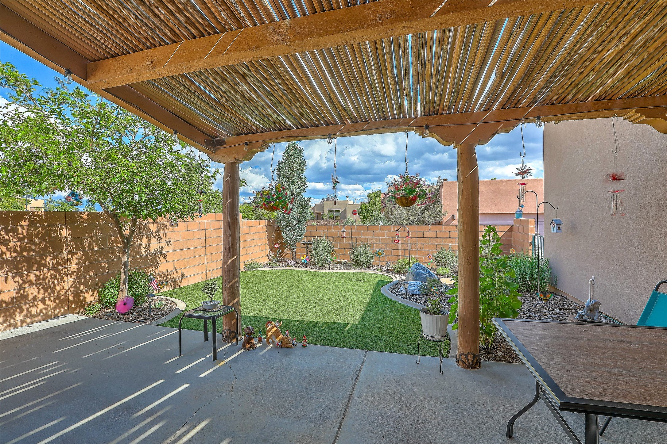 Well loved and cared for home. Move-In Ready with thoughtful touches! Why wait to build? Well designed, this updated lovely home with a newer roof, stucco, & appliances. Spacious layout and great outdoor space. Lots of privacy, end unit with open space and views surrounding it. One level, light and bright & impeccably clean. Guest parking out front of home. 2 car attached garage off alley for easy access. HOA includes trash pickup, road maintenance & snow removal. Community parks, walking, biking and hiking trails everywhere! The open-concept design combines the large kitchen dining area and the main large living room space. Outside, the covered portal showcases to a private backyard oasis enclosed by a privacy wall. Beautiful landscaping, combined with astroturf for pets, allows for beauty with low maintenance. Night time skies for relaxing while stargazing at night. Located in the highly desirable Rancho Viejo community, this home is part of a unique village concept dedicated to open space. With more than 14 miles of scenic walking trails and numerous parks, residents enjoy a serene and active lifestyle. Plus, you're roughly 14 miles from the Santa Fe Plaza, making it easy to experience all the culture, dining, & entertainment Santa Fe has to offer. Don't miss this rare opportunity to own this newly updated home in a tree filled community--schedule your showing today, this one won't be on the market long!
