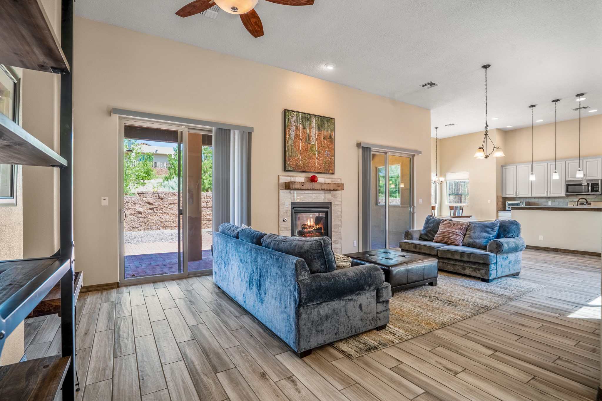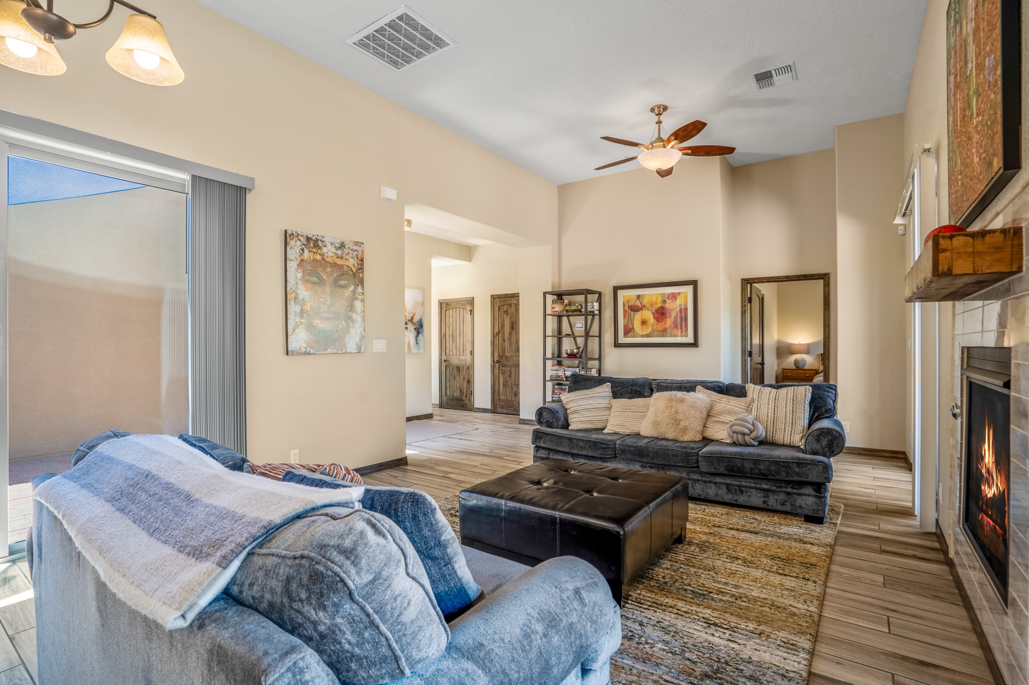 READY TO MOVE IN! Experience modern living in this beautiful La Pradera home! An open floor plan with high ceilings welcomes you into a space designed for comfort and style. The stunning kitchen, complete with a walk-in pantry, white cabinetry, granite countertops, and stainless steel appliances, is the true heart of the home, flowing effortlessly into the living and dining areas. Relax by the sleek gas fireplace or enjoy the refrigerated air on warm summer nights. Another bonus is the Kinetico water softener system. This home offers multiple outdoor spaces, including a charming interior courtyard. The primary suite is your private retreat with a luxurious bath featuring a separate tub and shower, plus a large walk-in closet. The three-car garage includes a durable epoxy floor, and the private backyard backs up to open space, offering the perfect setting for entertaining. This is a home you won't want to miss!