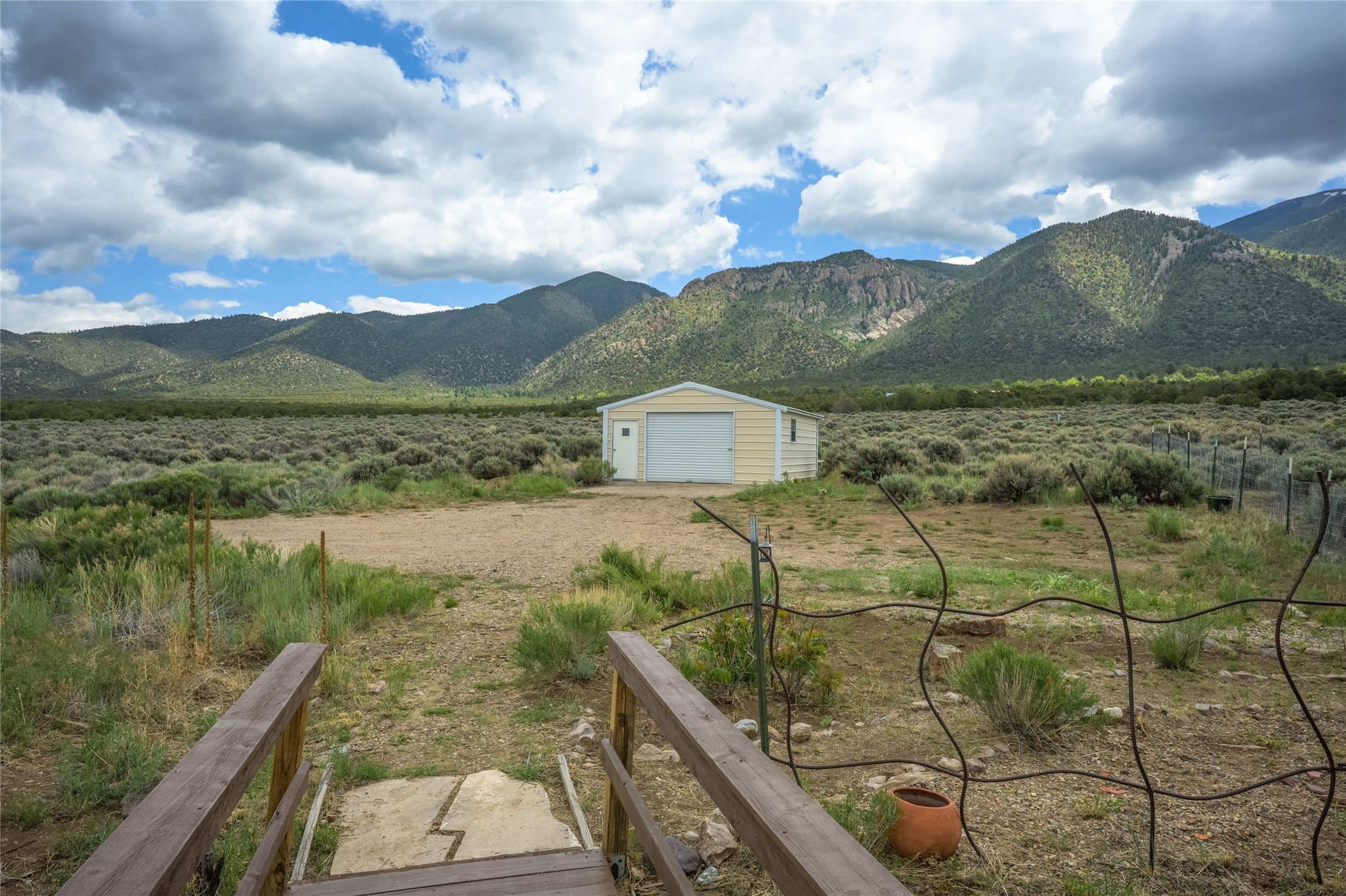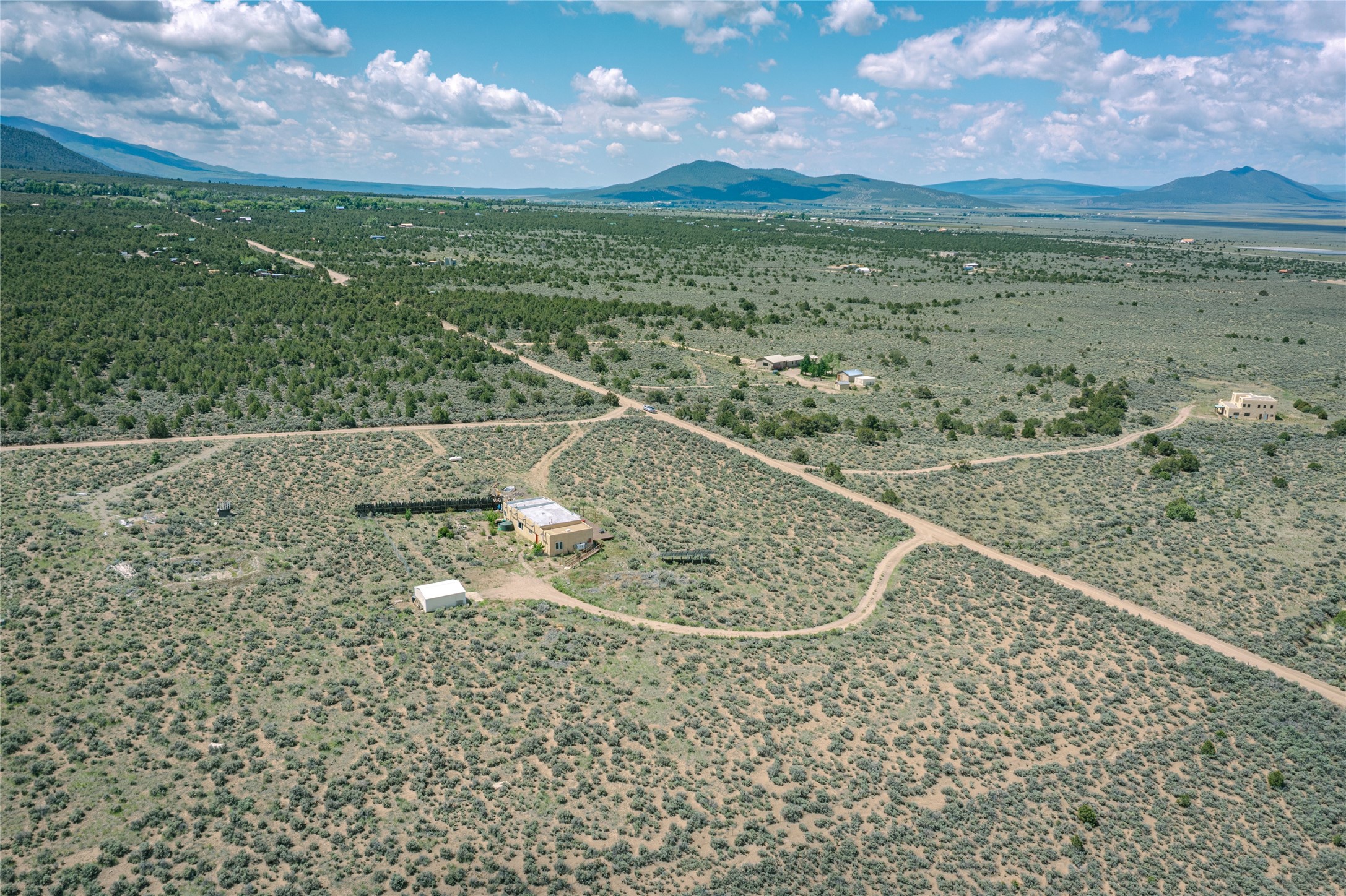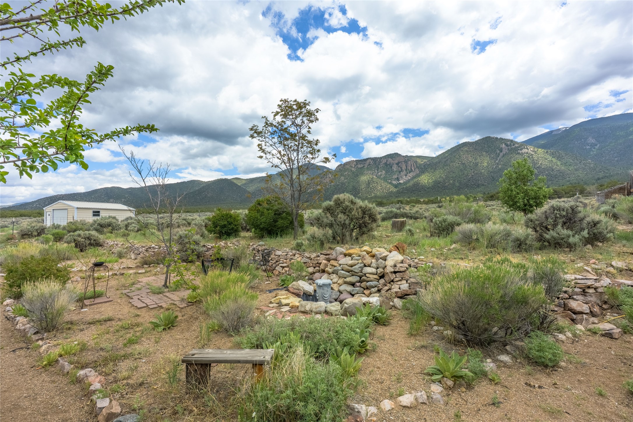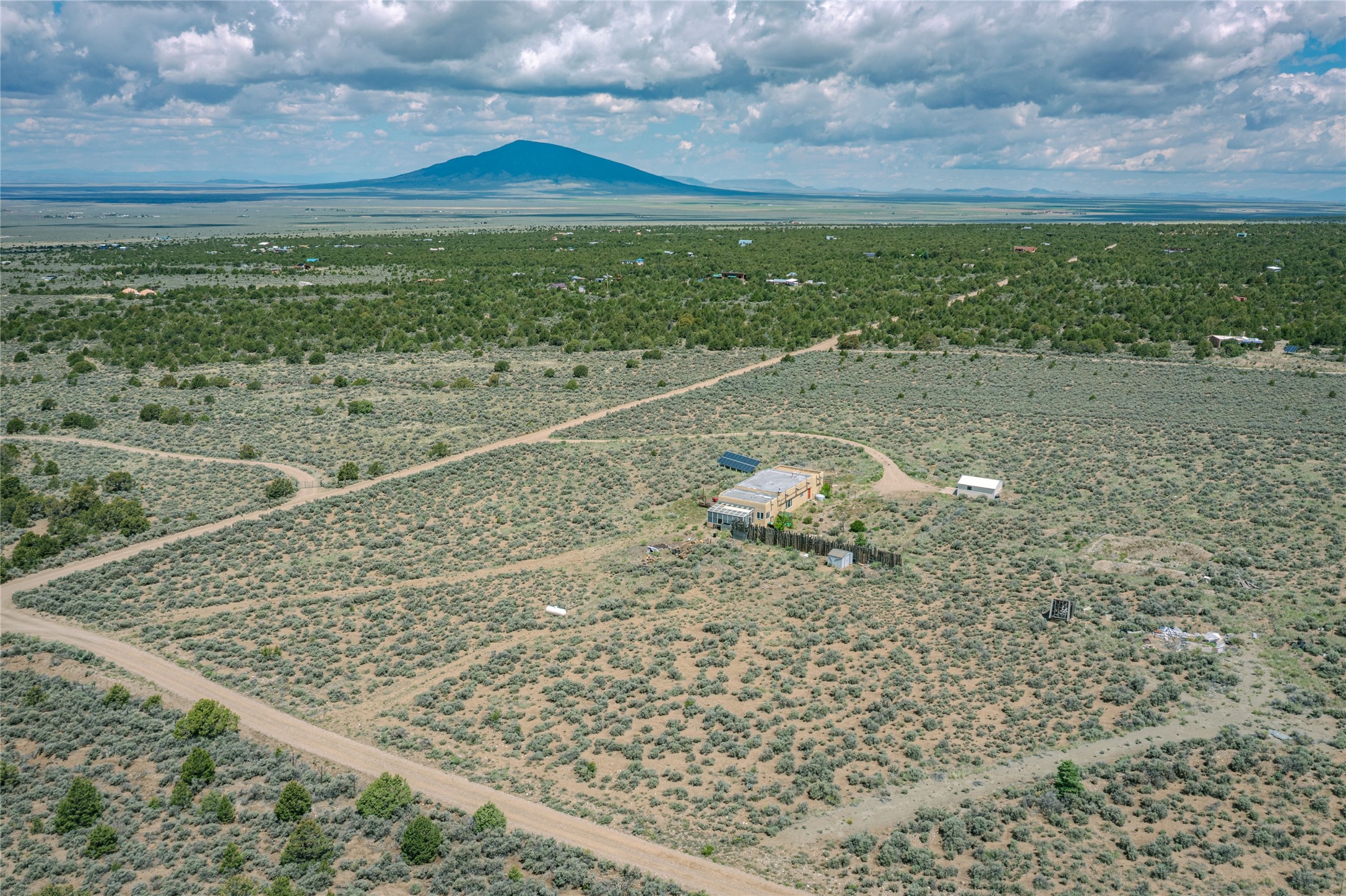 Escape to 8 acres of unparalleled solitude and serenity at the base of the stunning Latir cliffs. This unique property, located just north of Questa in the heart of the famous Taos sage, offers profound peace with breathtaking views in every direction. Greet the day with sunrise over the Latirs to the east and enjoy expansive views of Ute Mountain and San Antonio Mountain to the north.This well-maintained, single-level home is designed for comfort and sustainability. A photovoltaic solar array provides backup to your most essential conveniences, and a private well is complemented by an extensive water catchment system that nourishes fruit trees and gardens.Inside, the home is flooded with natural light, with views from every window. The fairly open living, kitchen, and dining areas offer a sense of connection while maintaining a separation of space. A welcoming indoor planter greets you at the entry, and a cozy kiva fireplace with an insert anchors the living area.The 3-bedroom, 2-bathroom layout includes a master suite with a unique greenhouse, providing passive solar heat and a beautiful wash of natural light.Step outside onto the large deck to witness spectacular sunsets over the vast Taos Mesa and Cerro de la Olla to the west. A detached garage provides ample space for vehicles and storage. Experience true tranquility in this thoughtfully designed 1996 off-site built home, where sustainable living meets the raw beauty of Northern New Mexico.