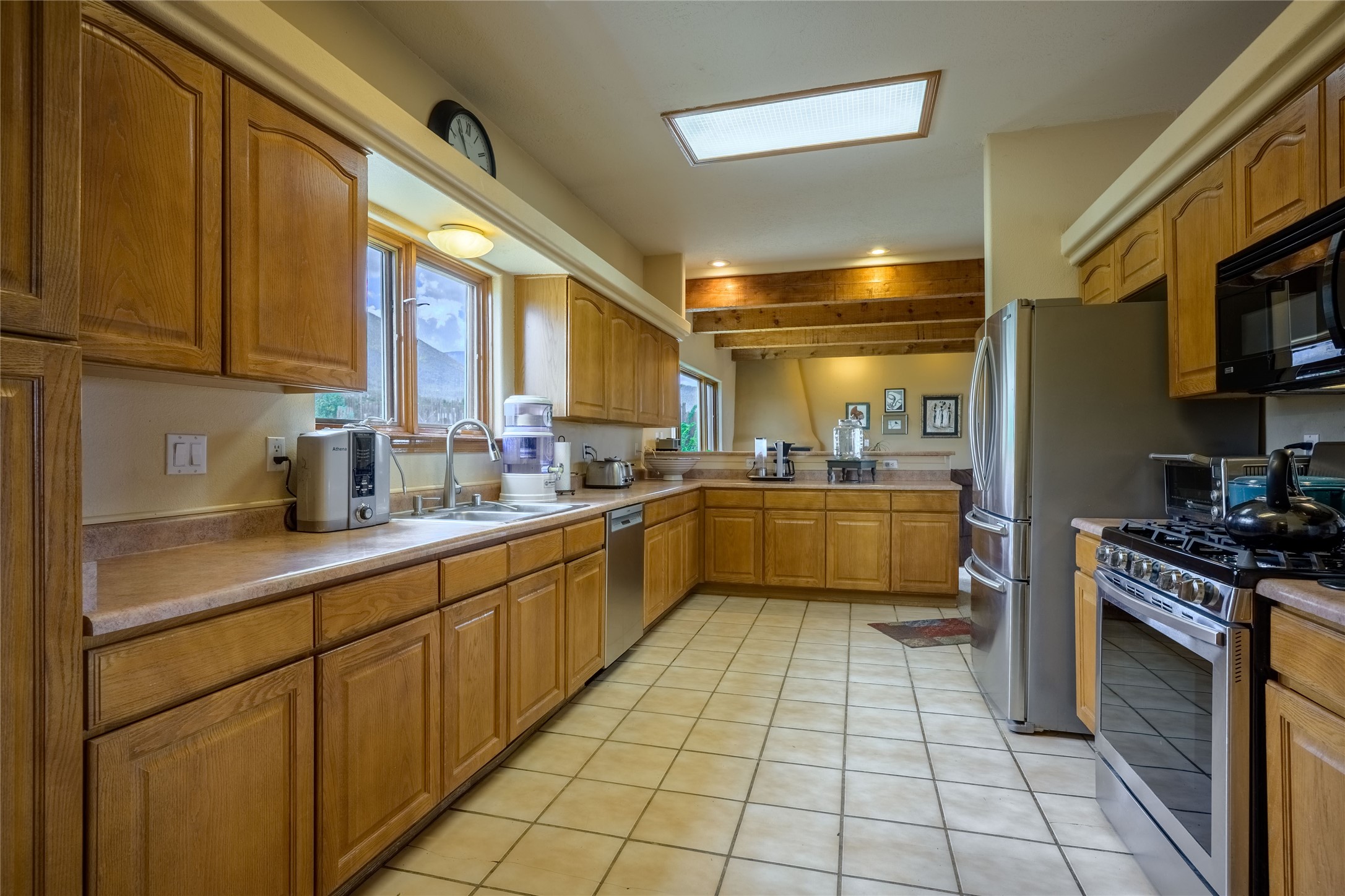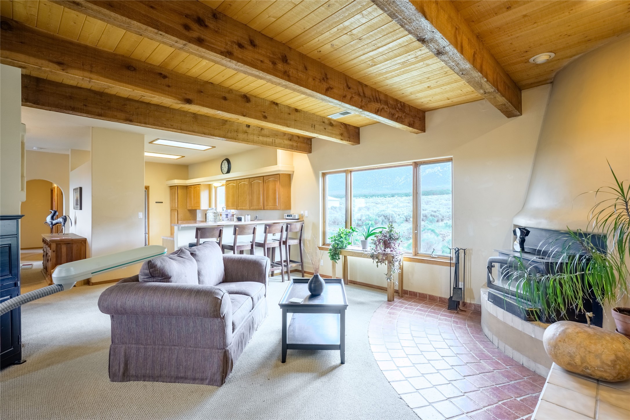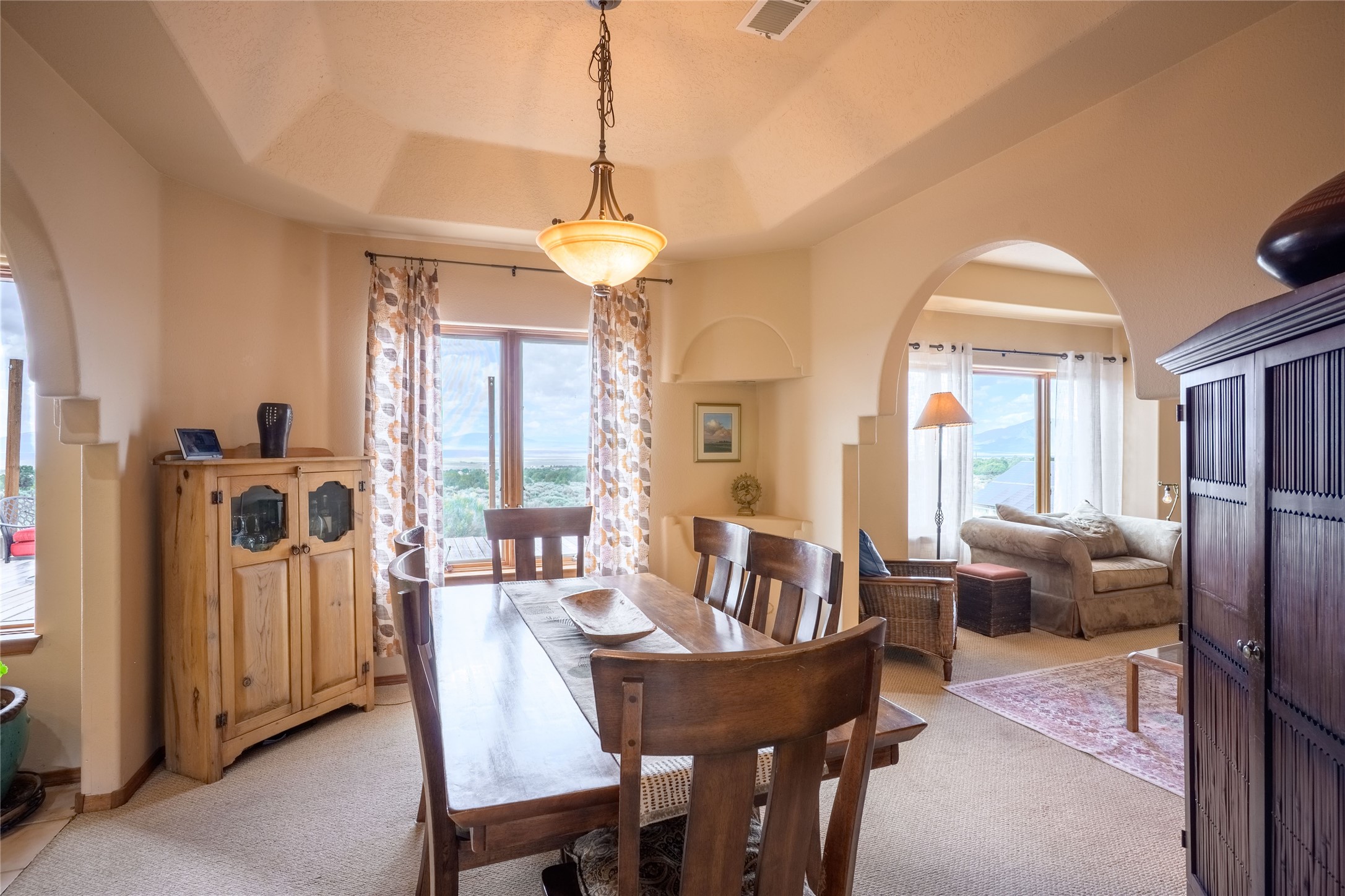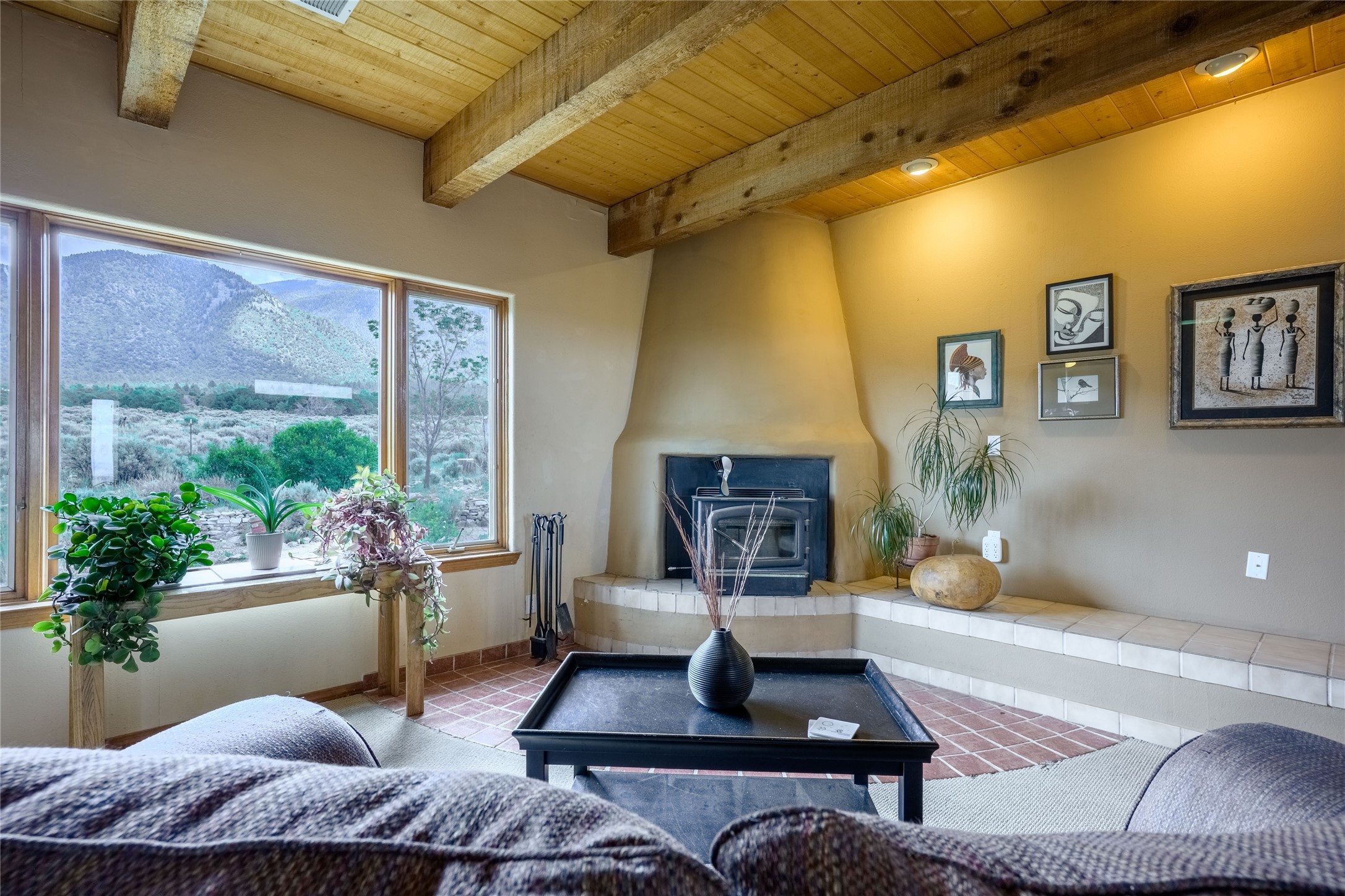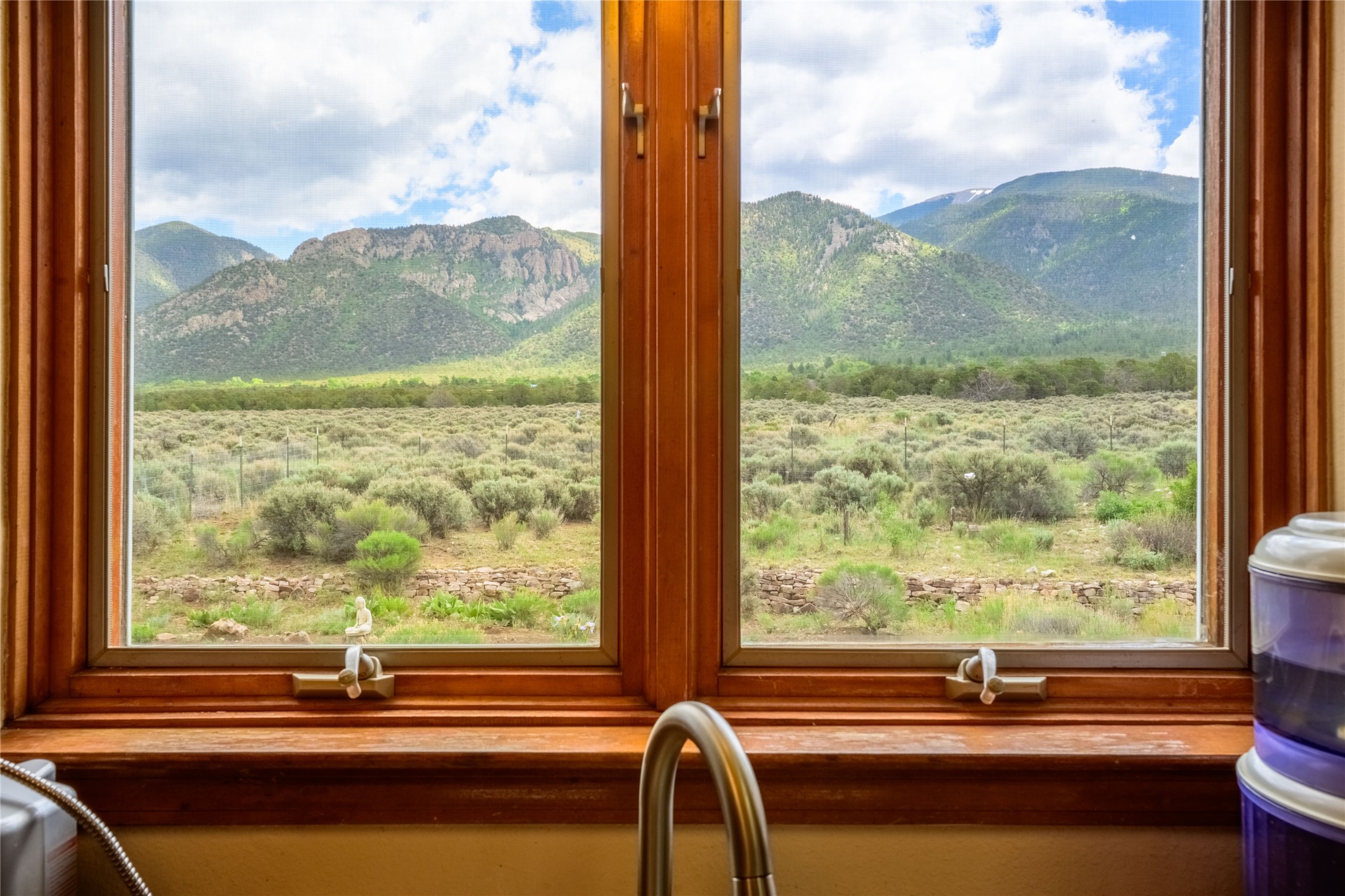 Escape to 8 acres of unparalleled solitude and serenity at the base of the stunning Latir cliffs. This unique property, located just north of Questa in the heart of the famous Taos sage, offers profound peace with breathtaking views in every direction. Greet the day with sunrise over the Latirs to the east and enjoy expansive views of Ute Mountain and San Antonio Mountain to the north.This well-maintained, single-level home is designed for comfort and sustainability. A photovoltaic solar array provides backup to your most essential conveniences, and a private well is complemented by an extensive water catchment system that nourishes fruit trees and gardens.Inside, the home is flooded with natural light, with views from every window. The fairly open living, kitchen, and dining areas offer a sense of connection while maintaining a separation of space. A welcoming indoor planter greets you at the entry, and a cozy kiva fireplace with an insert anchors the living area.The 3-bedroom, 2-bathroom layout includes a master suite with a unique greenhouse, providing passive solar heat and a beautiful wash of natural light.Step outside onto the large deck to witness spectacular sunsets over the vast Taos Mesa and Cerro de la Olla to the west. A detached garage provides ample space for vehicles and storage. Experience true tranquility in this thoughtfully designed 1996 off-site built home, where sustainable living meets the raw beauty of Northern New Mexico.