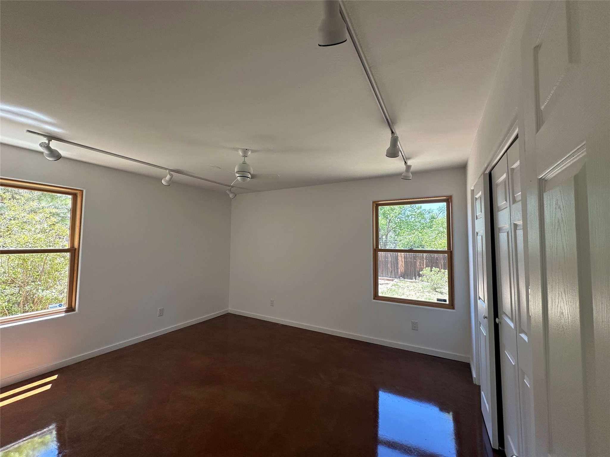 Nestled in one of the most walkable and bike-friendly neighborhoods in town, this beautifully designed 2-bedroom, 2-bathroom home with a spacious loft sits on a generously sized lot surrounded by mature trees. Just a short stroll to local favorites like Bread Shop, OZU, and Iconik Coffee Roasters, you'll love the convenience of living close to Santa Fe's best. The main home offers approximately 1,500 square feet of living space, featuring a pitched roof, radiant heat floors, abundant natural light, and soaring ceilings that create an open, airy feel. There's plenty of room to garden, entertain, or simply relax outdoors under the trees. An attached 823+/- square foot casita provides additional flexibility -- ideal for guests, rental income, or a workspace. The casita is currently rented but can be delivered vacant depending on your needs. A detached two-car garage adds storage and parking. A versatile property in a prime location.