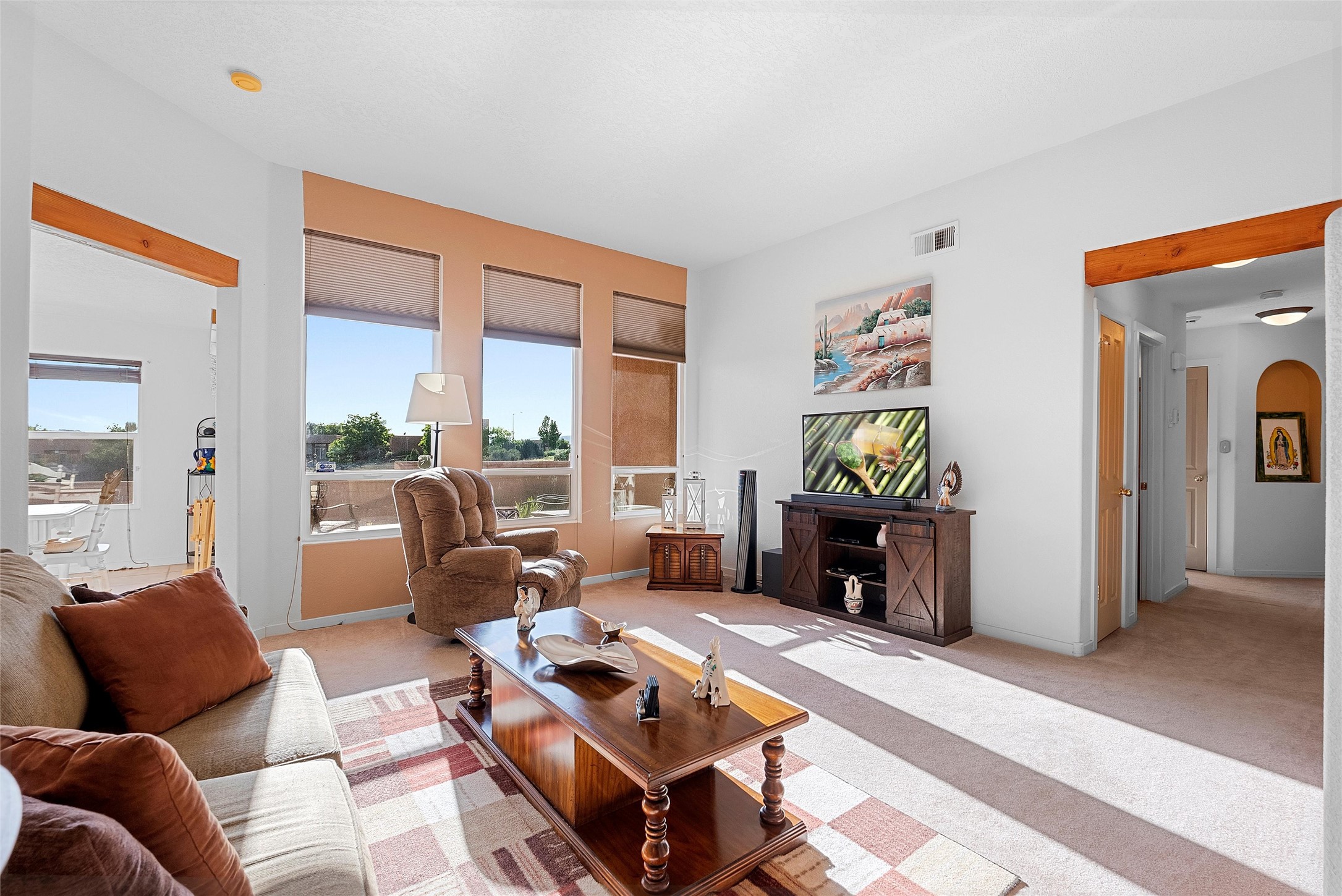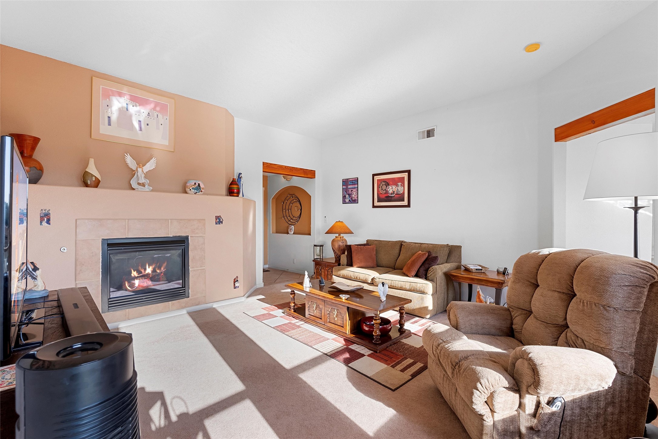 Affordable Santa Fe living with flexible space! This charming home offers 4 bedrooms and 2 full baths, with one bedroom currently being used as an office--ideal for remote work or creative pursuits. Bright and welcoming, the interior is filled with natural light. The living room features a cozy gas fireplace, and the spacious eat-in kitchen includes a large pantry/laundry room, offering excellent flow for both everyday living and entertaining. The primary suite boasts a walk-in closet and double sinks, while the other bedrooms offer generous closets and share a full bath with dual sinks. Step outside to a beautifully landscaped, walled backyard with Southwest-style touches, synthetic lawn, roses, Russian sage, and no immediate neighbor behind--perfect for peaceful mornings or evening gatherings under the New Mexico sky. Located in the desirable Tierra Contenta neighborhood, with easy access to parks, trails, schools, libraries, and Veterans Memorial Highway, this home is a fantastic opportunity to own in Santa Fe at an accessible price!