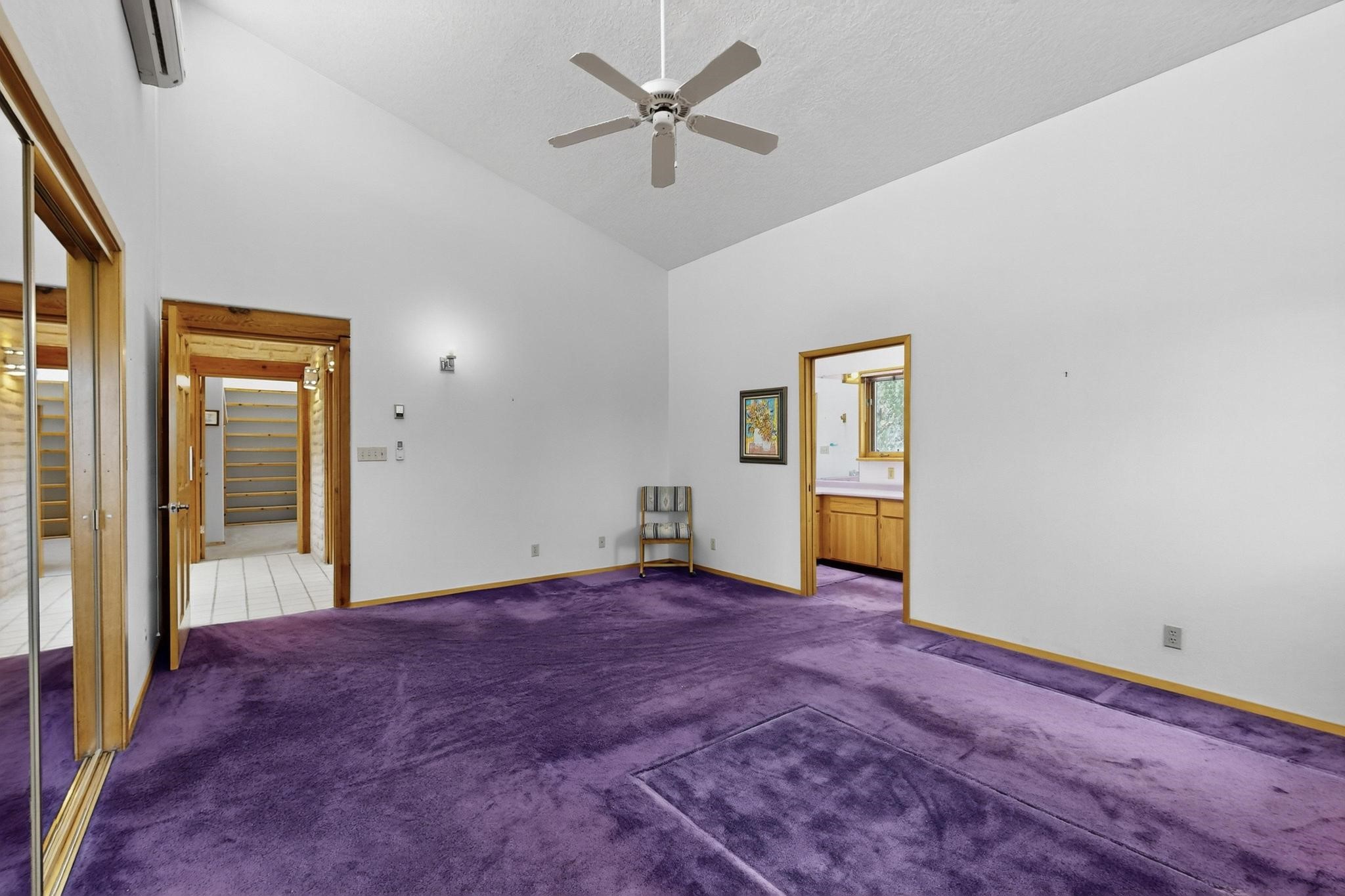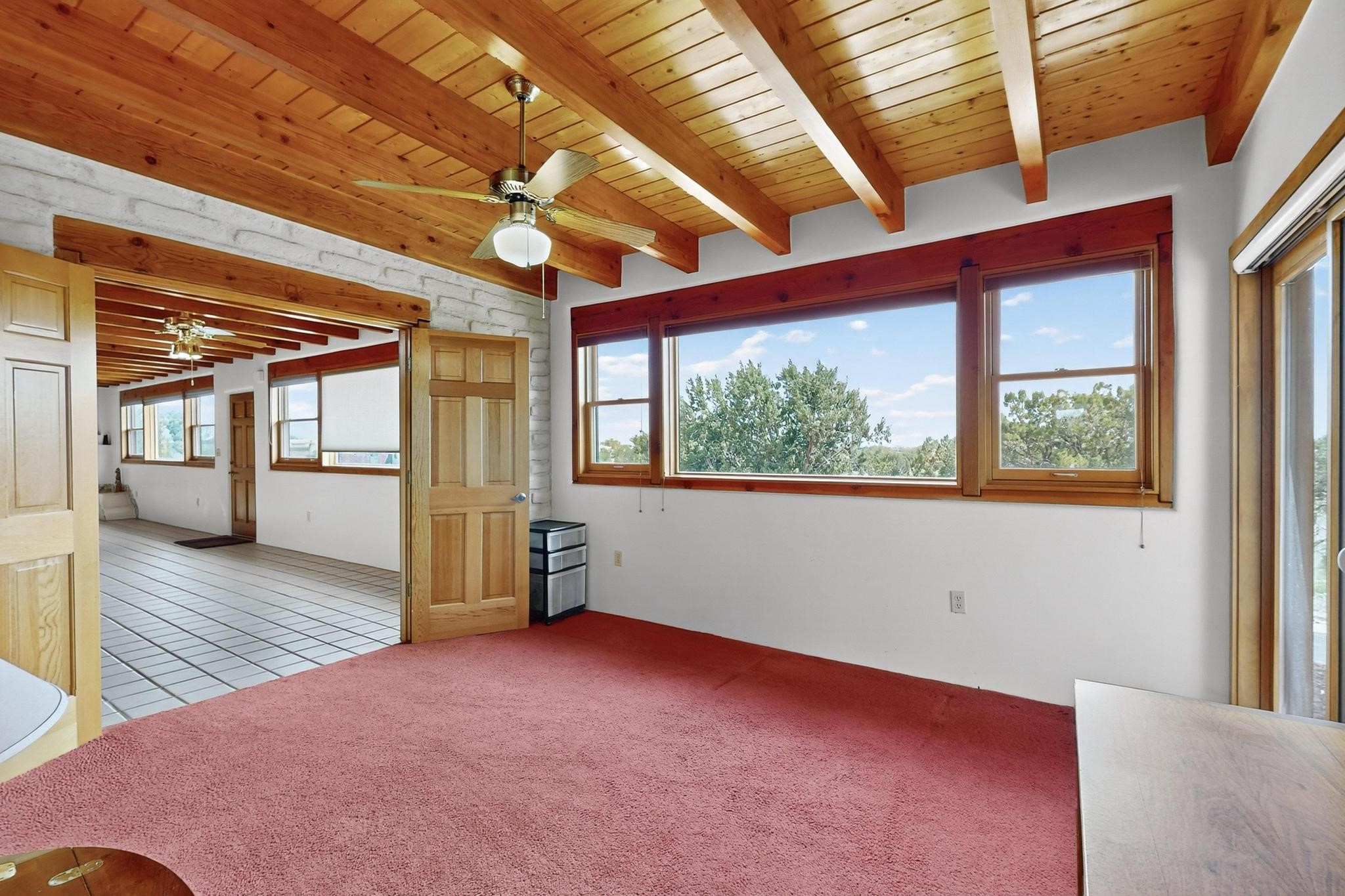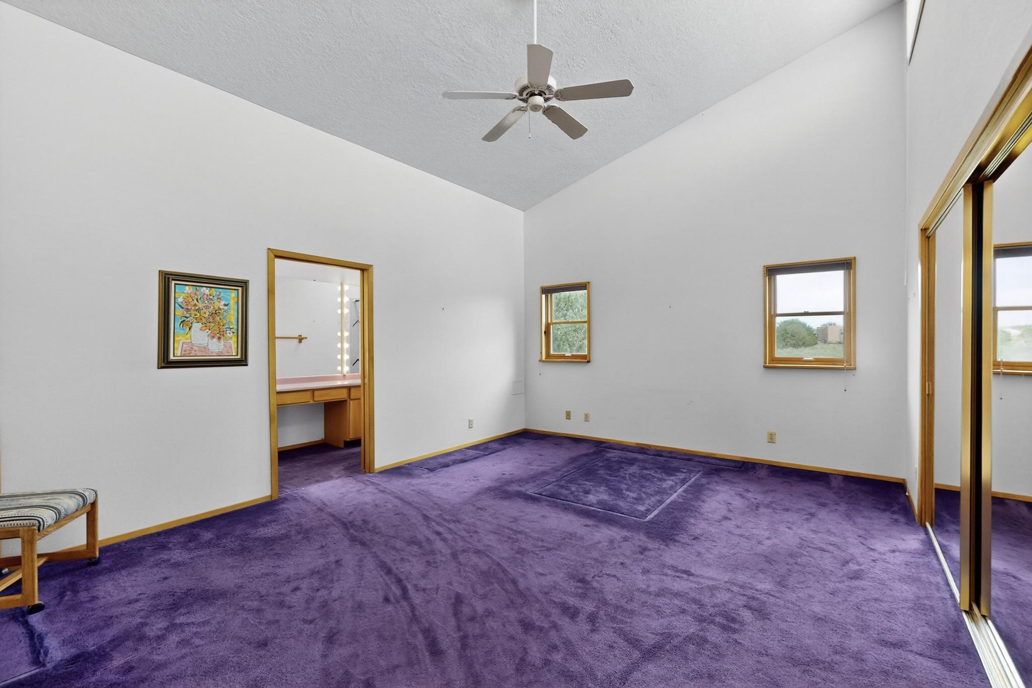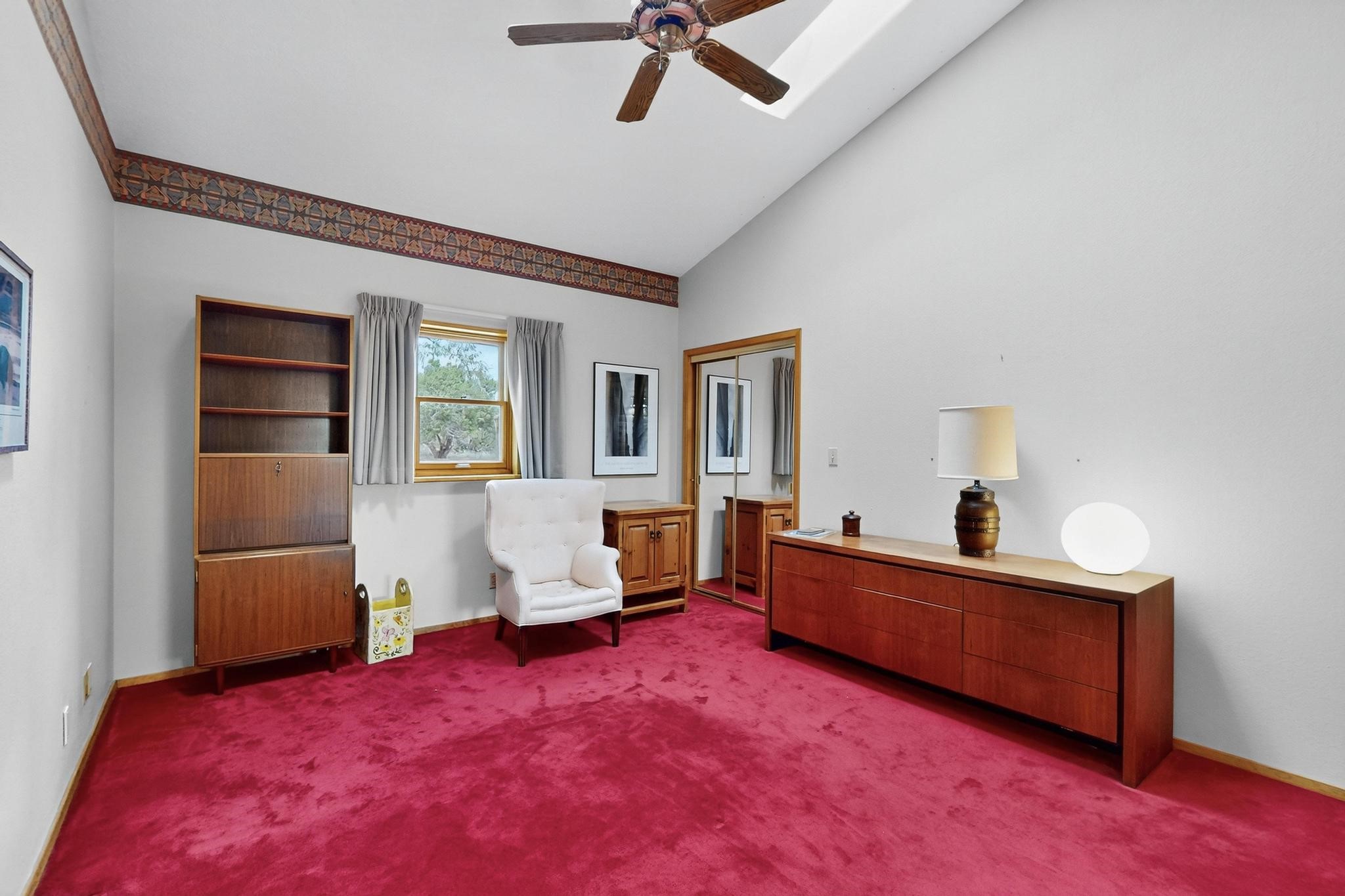Priced to Sell! First time on the market, grand one owner home custom built by Sierra Homes bordering a large greenbelt, on a cul de sac close to the Eldorado community center and amenities. The passive solar open great room combines kitchen, dining and living room with Kiva fireplace and a mini split. Separate guest bedroom with bathroom off the living room, plus another guest bedroom and full bath, plus an office/library with walk in closet/storage room with extra access from the garage.. A spacious owners suite with large bathroom and mini split for comfortable living. There is an oversized 600sf finished 2 car garage with plenty of storage space and plenty of guest parking. All this close to Eldorado amenities, local shopping, schools, parks, trails, library and senior center, and only minutes into Santa Fe