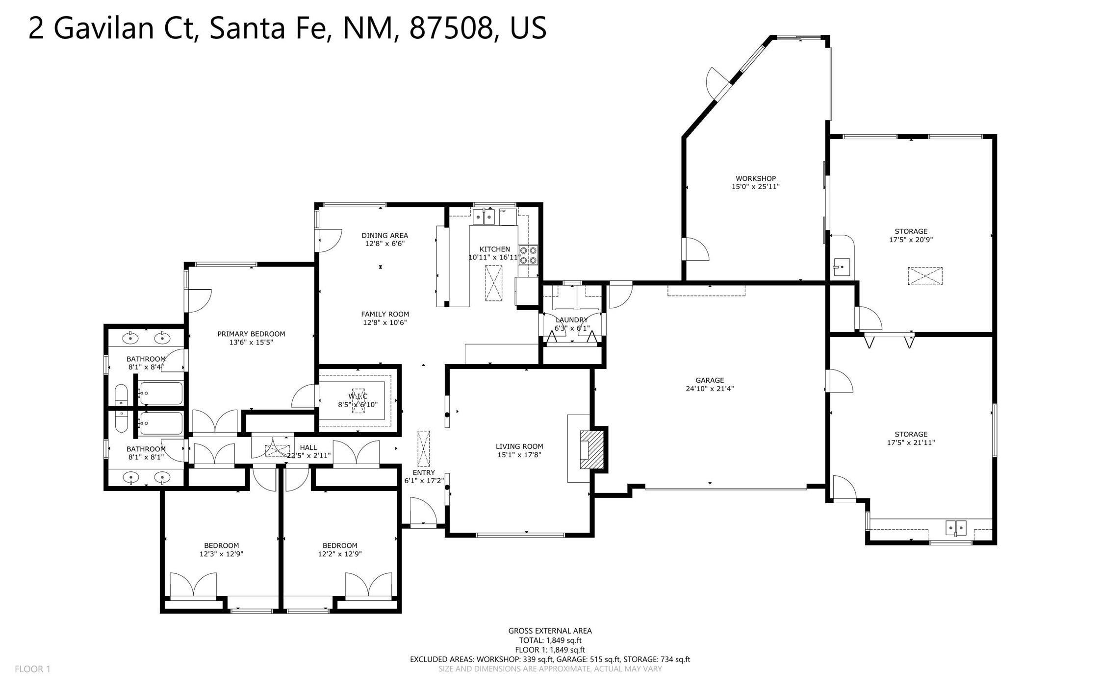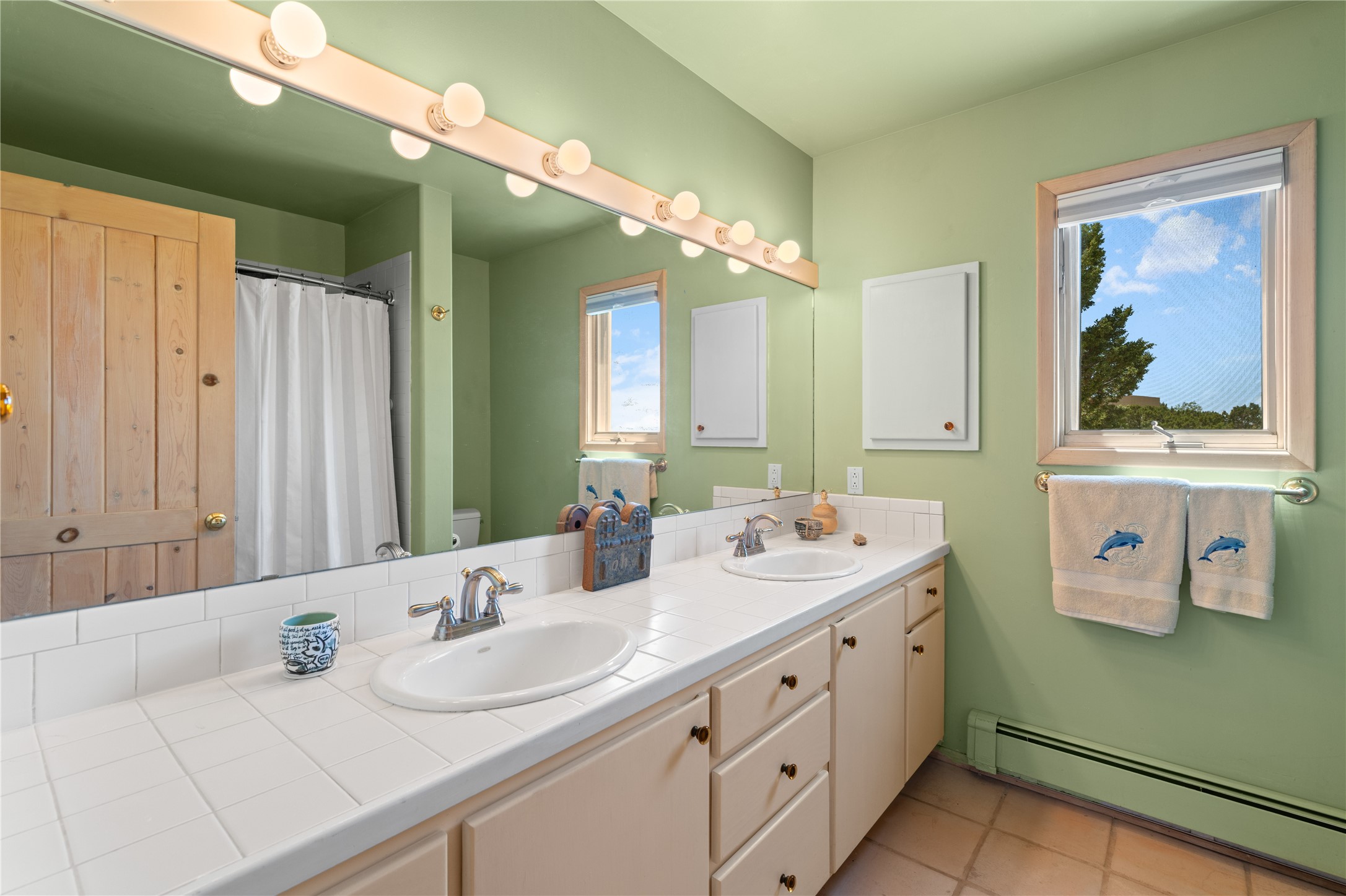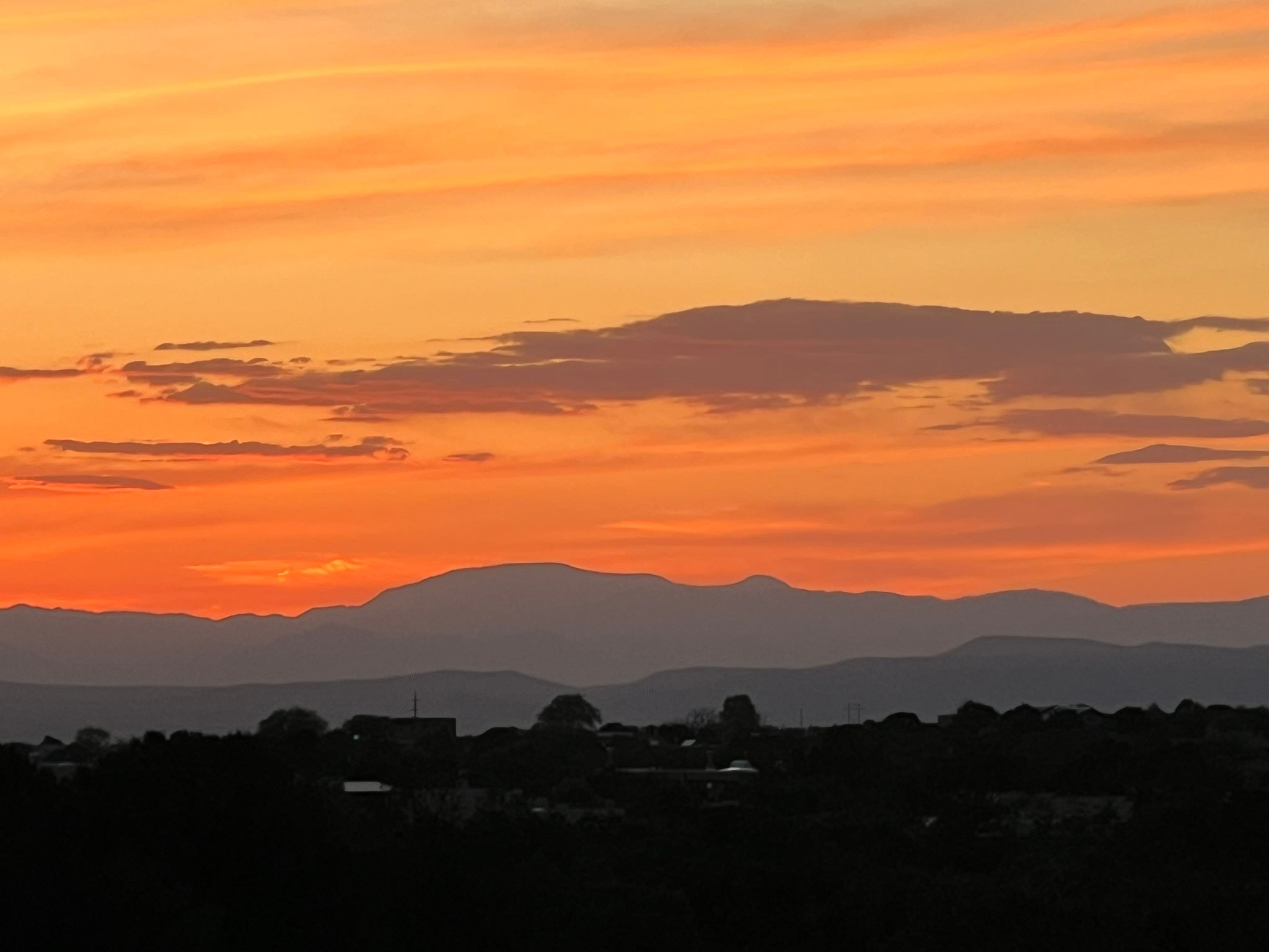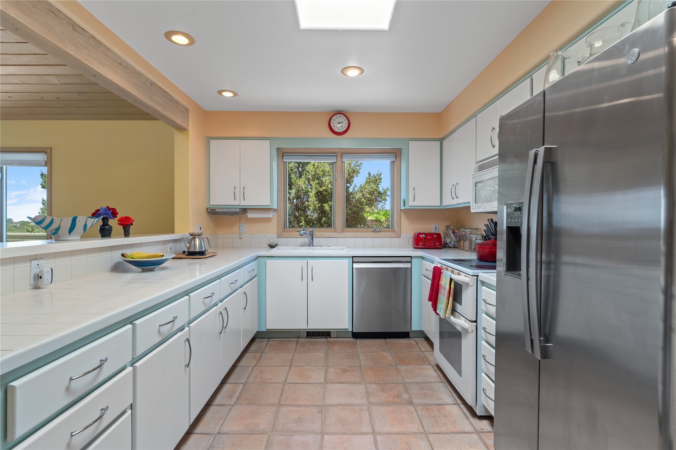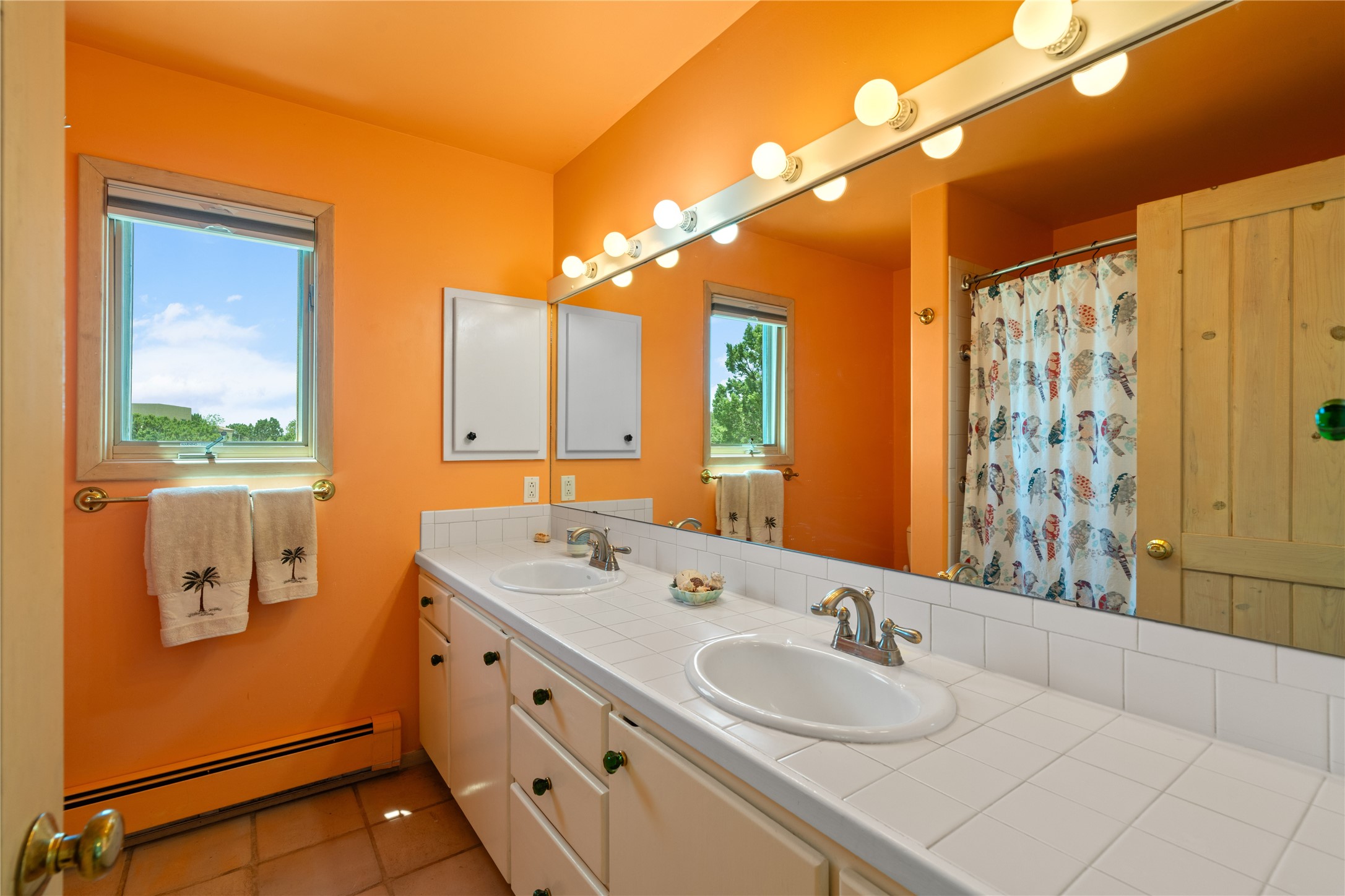 This charming 1,701 square foot, single-level Eldorado home with three bedrooms and two bathrooms blends southwestern character with privacy and artistic potential. A light and bright 1,095 sq. ft. professional artist studio, workshop provides ample space for artistic pursuits. The studio space boasts high ceilings, a bath, concrete floor, and clerestory windows. With its separate entrance and driveway, it could easily be converted into an additional living area. This beautiful home offers abundant natural light, clerestory windows, tile and newly refinished natural wood flooring, vigas, a cozy wood-burning fireplace and beautifully crafted wooden doors throughout. The primary bedroom, with ensuite bathroom, opens to an expansive deck with mountain views. The spacious kitchen has new stainless-steel appliances plus generous counter space and ample storage. The primary bedroom, dining room and kitchen all offer Jemez Mountain views. The art studio or workshop has a second driveway, is outfitted with high ceilings, two sinks, a half bathroom, refrigerator, 300 AMP power, insulated glass garage door and generous storage. The deck, studio and garage are freshly painted. Nestled on 1.61 acres bordering the greenbelt in the sought-after Eldorado community, amenities include the community center, tennis/pickleball courts, swimming pool, dog park and an expansive trail system for hiking, biking and horseback riding. Updates include newly refinished wood flooring (2025), fresh paint and a full exterior stucco refresh (2022), refurbished double-paned insulated windows (2016), new water heater (2017), new metal roof, skylights and gutters (2021), roof maintenance (2021), new flagstone patio in front entrance (2022) and new double cellular insulated shades (2025). Approved ILR with lot corners flagged (July 2025) and septic serviced and inspection completed (July 2025).