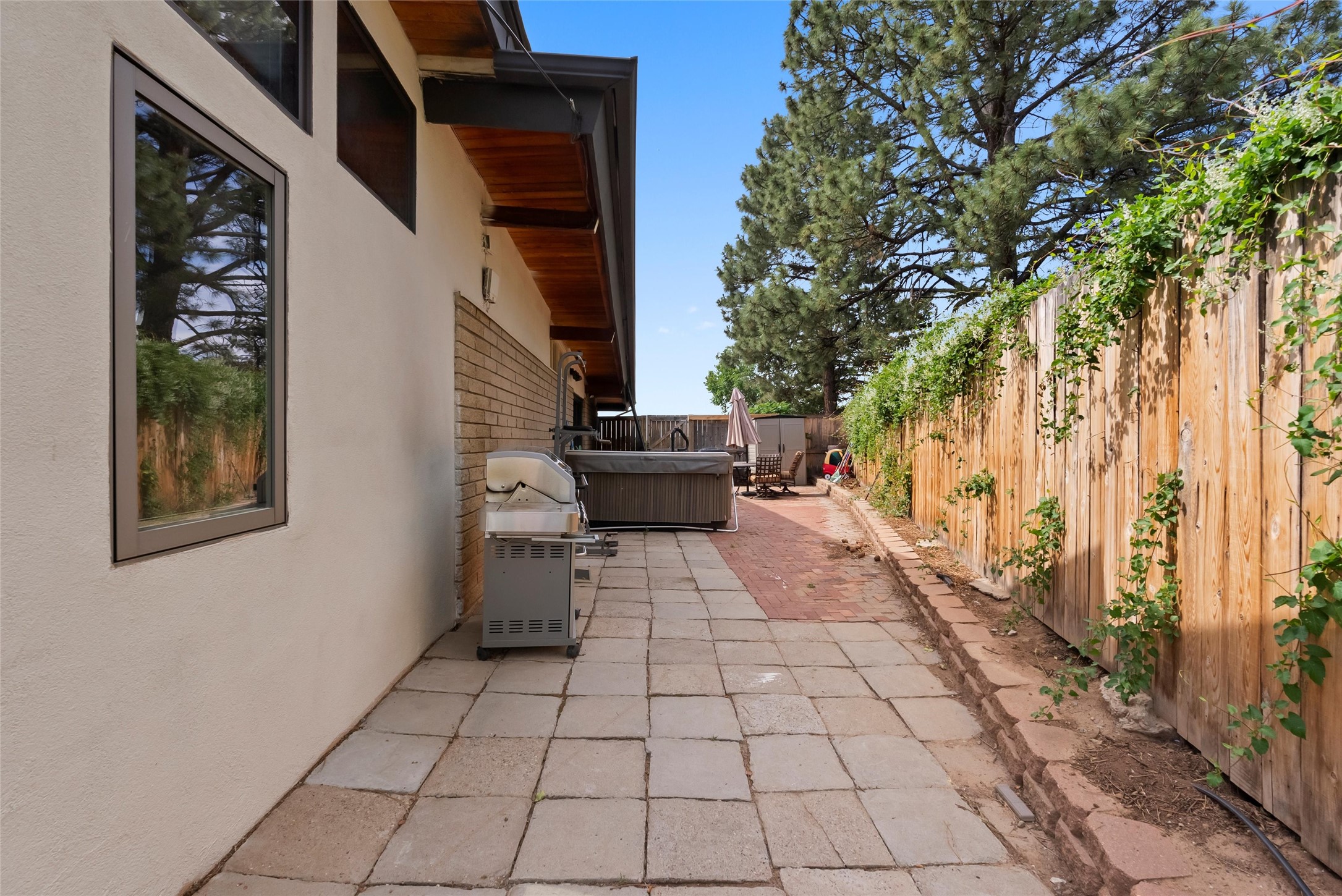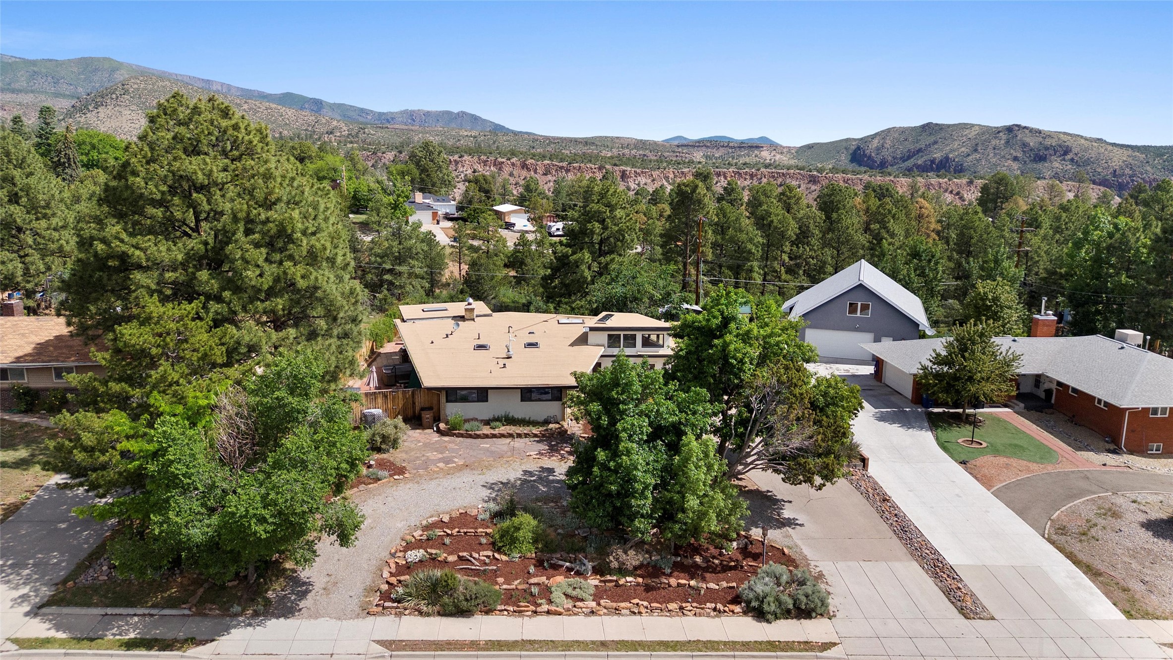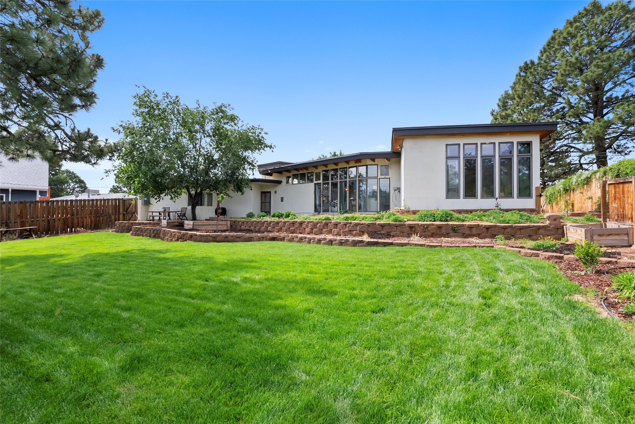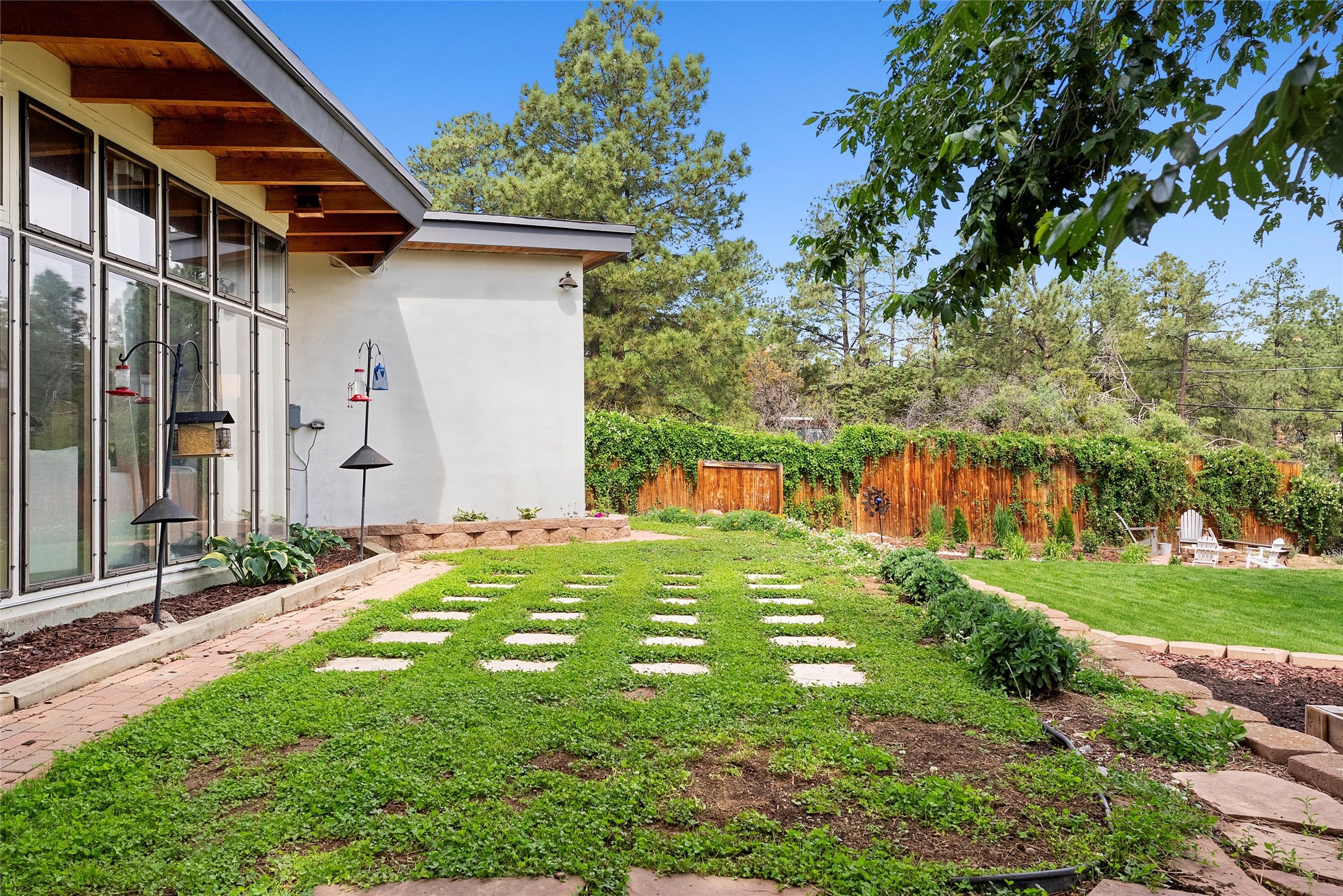 This stunning mid-century modern home on Barranca Mesa blends timeless architecture with thoughtful, high-quality updates. From the moment you step inside, floor-to-ceiling windows draw you in with natural light and stunning views, perfectly framing the beautifully renovated fireplace mantle at the heart of the open living space. High wood ceilings add warmth and dimension, making the space feel inviting and effortlessly cool.New flooring runs throughout the home, tying each room together with a clean, modern touch. The kitchen features newer appliances and a functional layout that complements the home's classic aesthetic. Central A/C keeps things comfortable year-round.The bedrooms are well-sized and versatile, with the fourth featuring a built-in Murphy bed, ideal for guests, a home office, or a flex space. The primary suite is a standout with a beautifully remodeled, spa-like bathroom and a convenient loft-style storage area accessible by ladder -- a clever and practical use of space.Step outside to a beautifully landscaped backyard, complete with a brand-new fence and a hot tub for relaxing under the stars. The walk-in basement, accessible from the exterior, offers ample storage for gear, tools, or hobbies. A circular driveway and a long, straight drive keep the home set back from the road, enhancing privacy and curb appeal.With its iconic design, smart updates, and seamless indoor-outdoor flow, this Barranca Mesa home is the perfect blend of character, comfort, and mid-century charm.