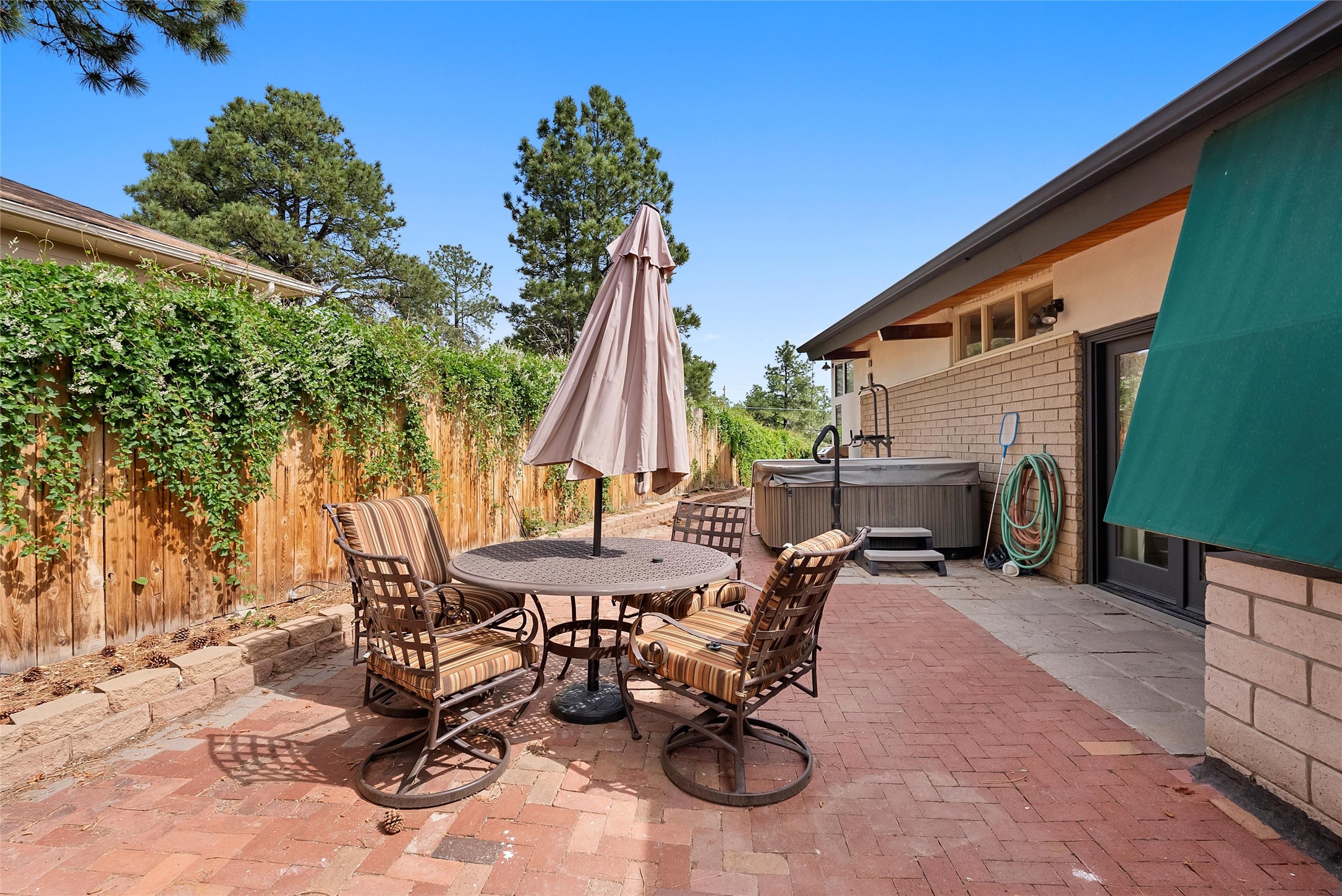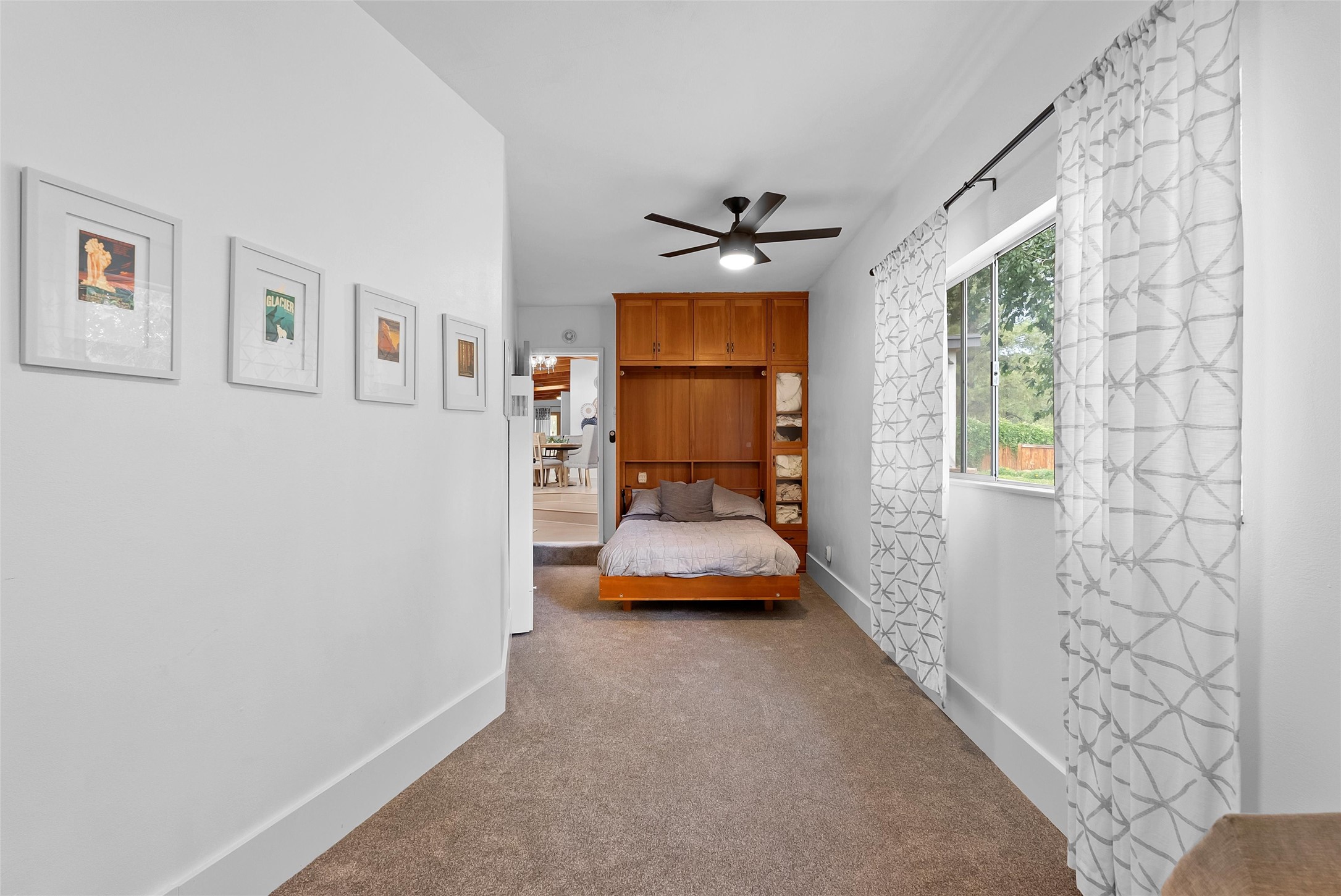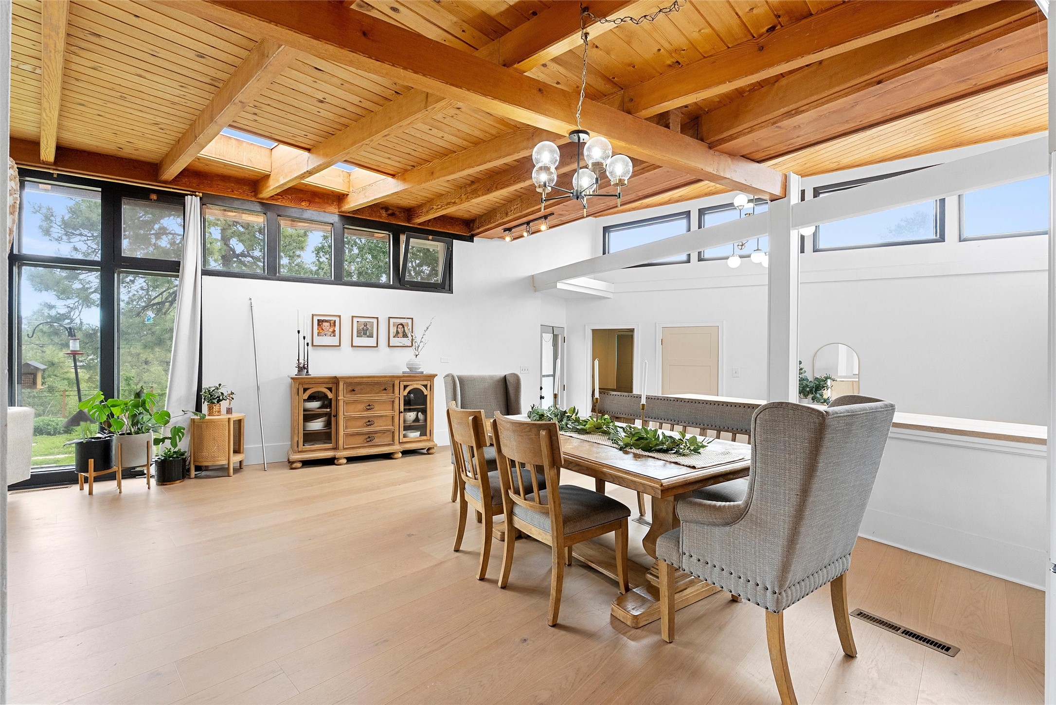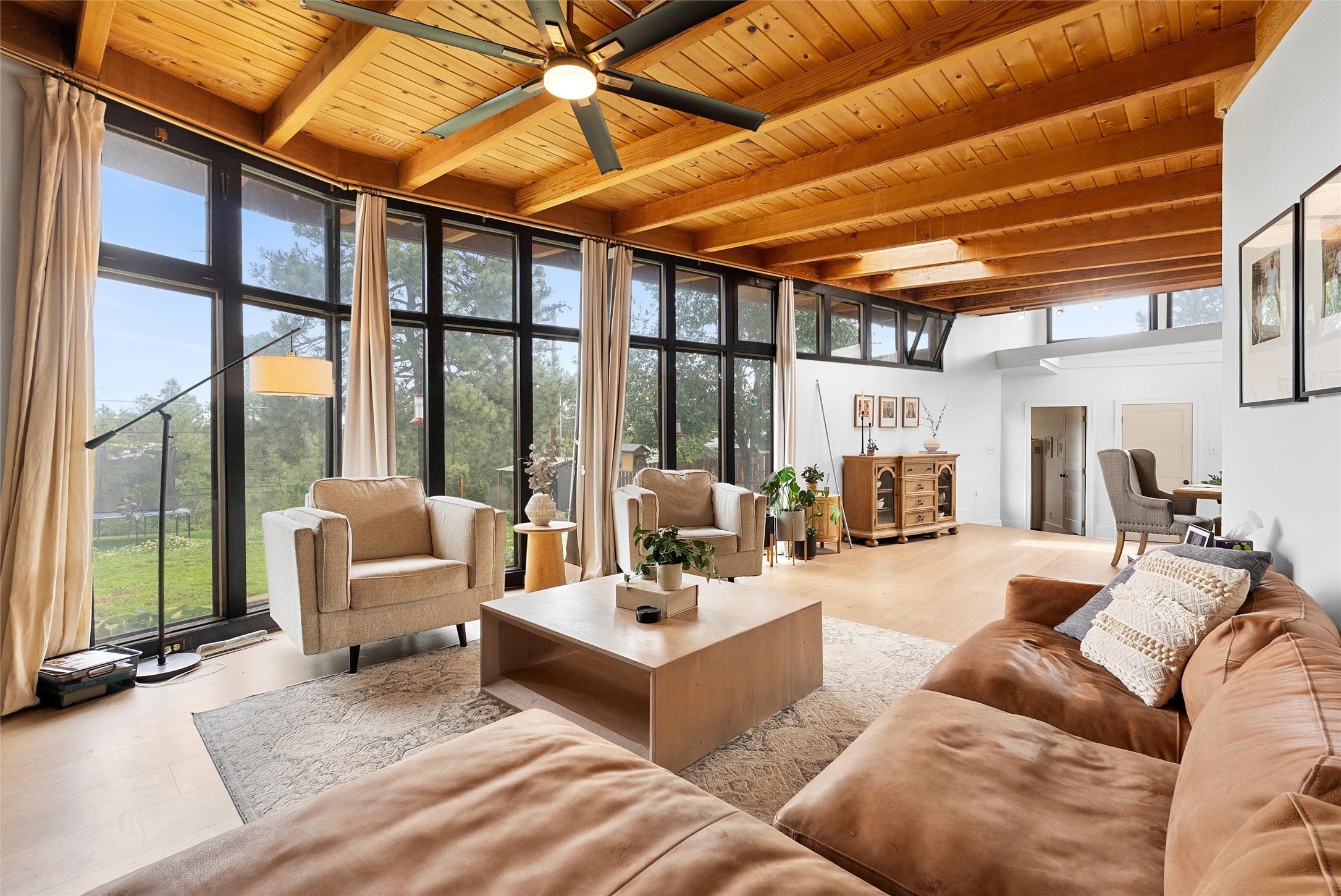 This stunning mid-century modern home on Barranca Mesa blends timeless architecture with thoughtful, high-quality updates. From the moment you step inside, floor-to-ceiling windows draw you in with natural light and stunning views, perfectly framing the beautifully renovated fireplace mantle at the heart of the open living space. High wood ceilings add warmth and dimension, making the space feel inviting and effortlessly cool.New flooring runs throughout the home, tying each room together with a clean, modern touch. The kitchen features newer appliances and a functional layout that complements the home's classic aesthetic. Central A/C keeps things comfortable year-round.The bedrooms are well-sized and versatile, with the fourth featuring a built-in Murphy bed, ideal for guests, a home office, or a flex space. The primary suite is a standout with a beautifully remodeled, spa-like bathroom and a convenient loft-style storage area accessible by ladder -- a clever and practical use of space.Step outside to a beautifully landscaped backyard, complete with a brand-new fence and a hot tub for relaxing under the stars. The walk-in basement, accessible from the exterior, offers ample storage for gear, tools, or hobbies. A circular driveway and a long, straight drive keep the home set back from the road, enhancing privacy and curb appeal.With its iconic design, smart updates, and seamless indoor-outdoor flow, this Barranca Mesa home is the perfect blend of character, comfort, and mid-century charm.