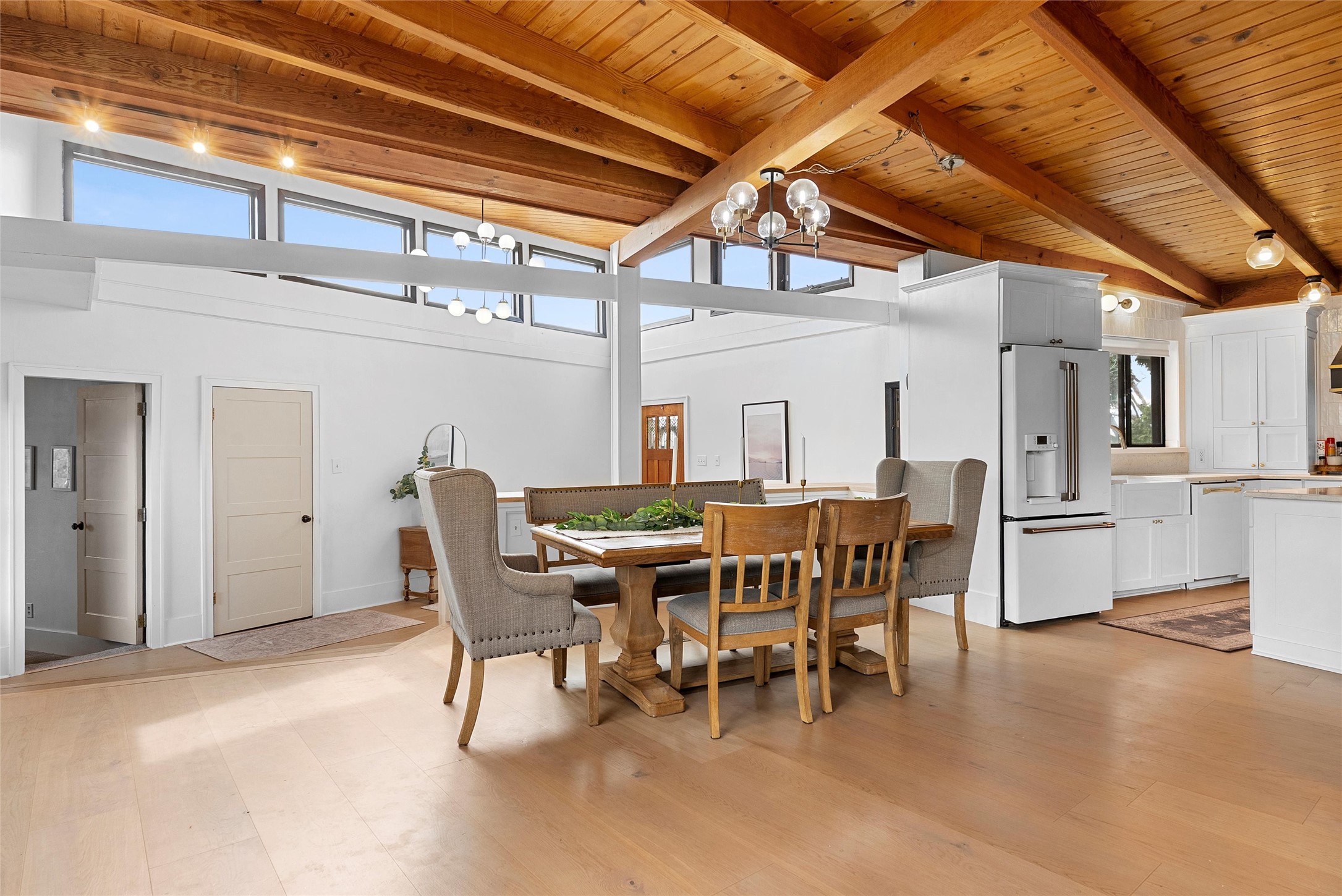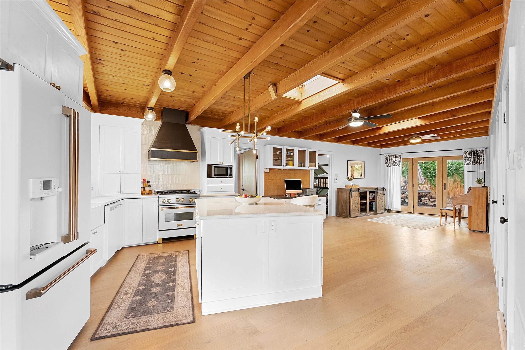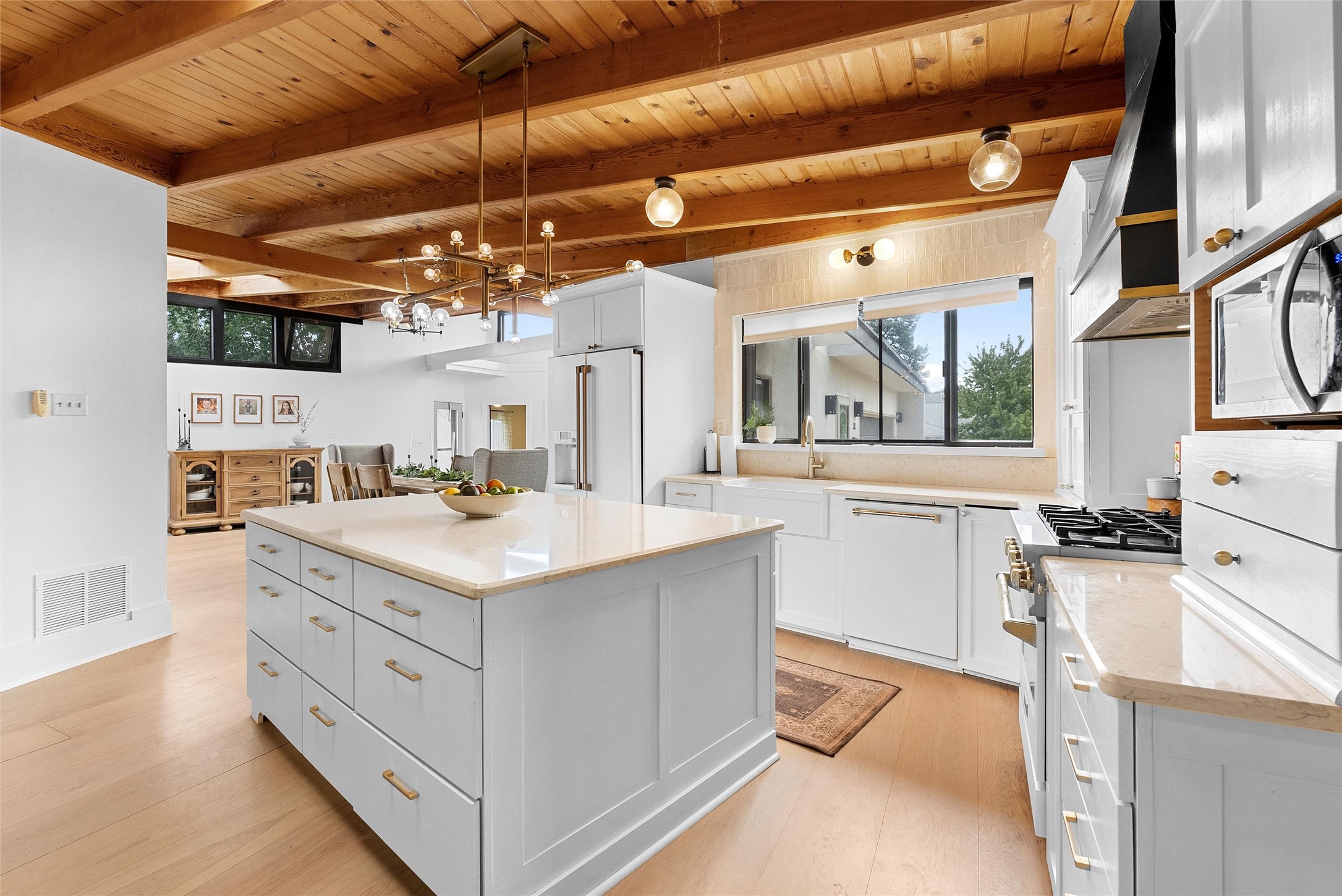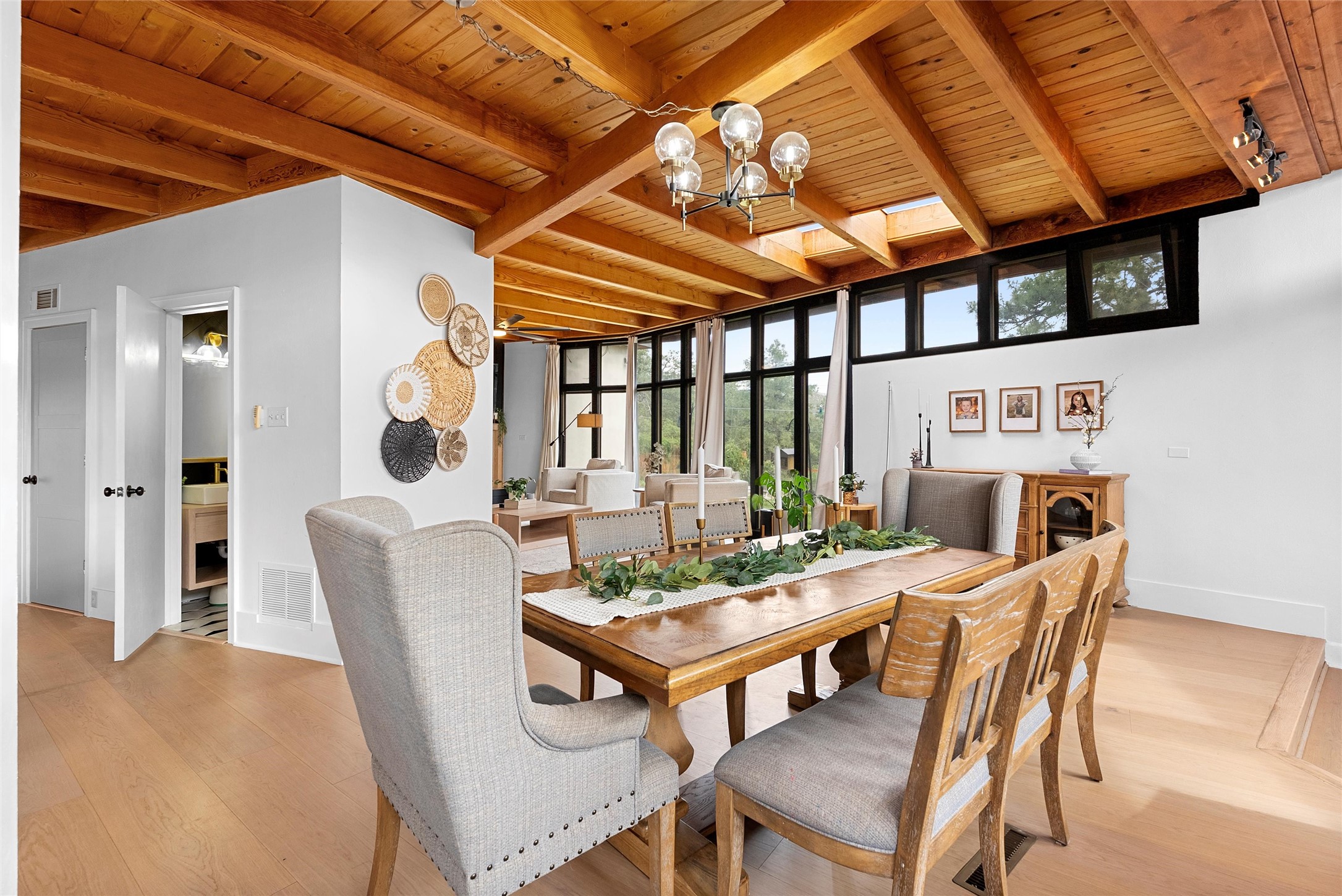 This stunning mid-century modern home on Barranca Mesa blends timeless architecture with thoughtful, high-quality updates. From the moment you step inside, floor-to-ceiling windows draw you in with natural light and stunning views, perfectly framing the beautifully renovated fireplace mantle at the heart of the open living space. High wood ceilings add warmth and dimension, making the space feel inviting and effortlessly cool.New flooring runs throughout the home, tying each room together with a clean, modern touch. The kitchen features newer appliances and a functional layout that complements the home's classic aesthetic. Central A/C keeps things comfortable year-round.The bedrooms are well-sized and versatile, with the fourth featuring a built-in Murphy bed, ideal for guests, a home office, or a flex space. The primary suite is a standout with a beautifully remodeled, spa-like bathroom and a convenient loft-style storage area accessible by ladder -- a clever and practical use of space.Step outside to a beautifully landscaped backyard, complete with a brand-new fence and a hot tub for relaxing under the stars. The walk-in basement, accessible from the exterior, offers ample storage for gear, tools, or hobbies. A circular driveway and a long, straight drive keep the home set back from the road, enhancing privacy and curb appeal.With its iconic design, smart updates, and seamless indoor-outdoor flow, this Barranca Mesa home is the perfect blend of character, comfort, and mid-century charm.