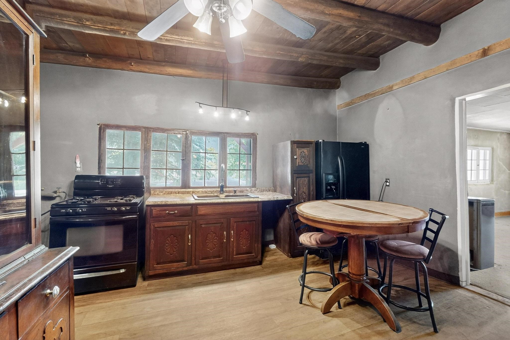 Opportunity awaits with this 3-bedroom, 1-bath home offering 1,272 square feet of potential on just under an acre of land. Nestled on a quiet dead-end street that leads directly into the Carson National Forest, this property is perfect for those seeking privacy, nature, and room to grow. This charming home captures the beauty and tranquility of northern New Mexico mountain living. Perfectly suited as a base for fishing, hunting, vacationing, or year-round living in the mountains.Enjoy community water, valuable water rights, and a carport tall enough for an RV, ideal for outdoor enthusiasts or full-time adventurers. The home is a livable fixer-upper, giving you a head start to customize and renovate at your own pace. Whether you're looking for a serene getaway, investment opportunity, or a forever home base near the forest, this property delivers charm, mountain views, and potential. Home is offered in as-is condition, with no repairs or alterations to be made by the seller.
