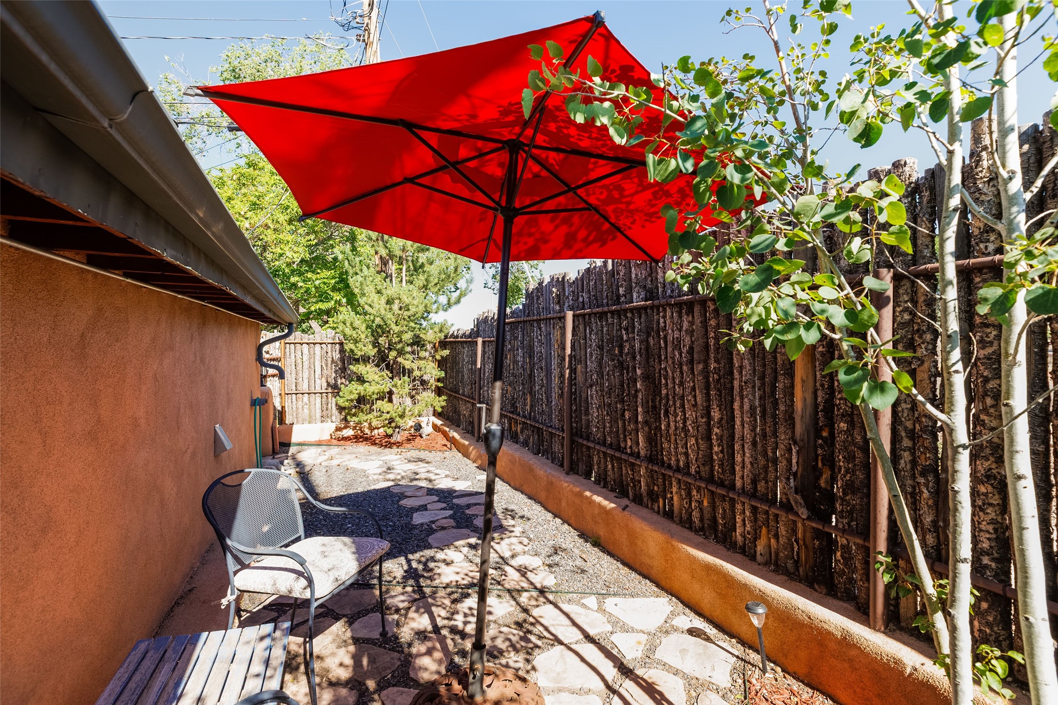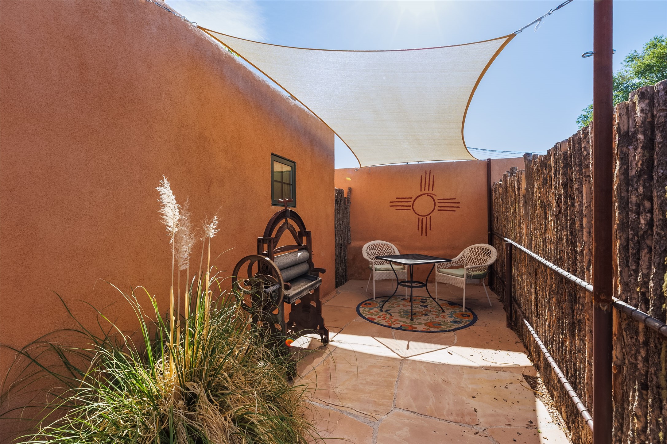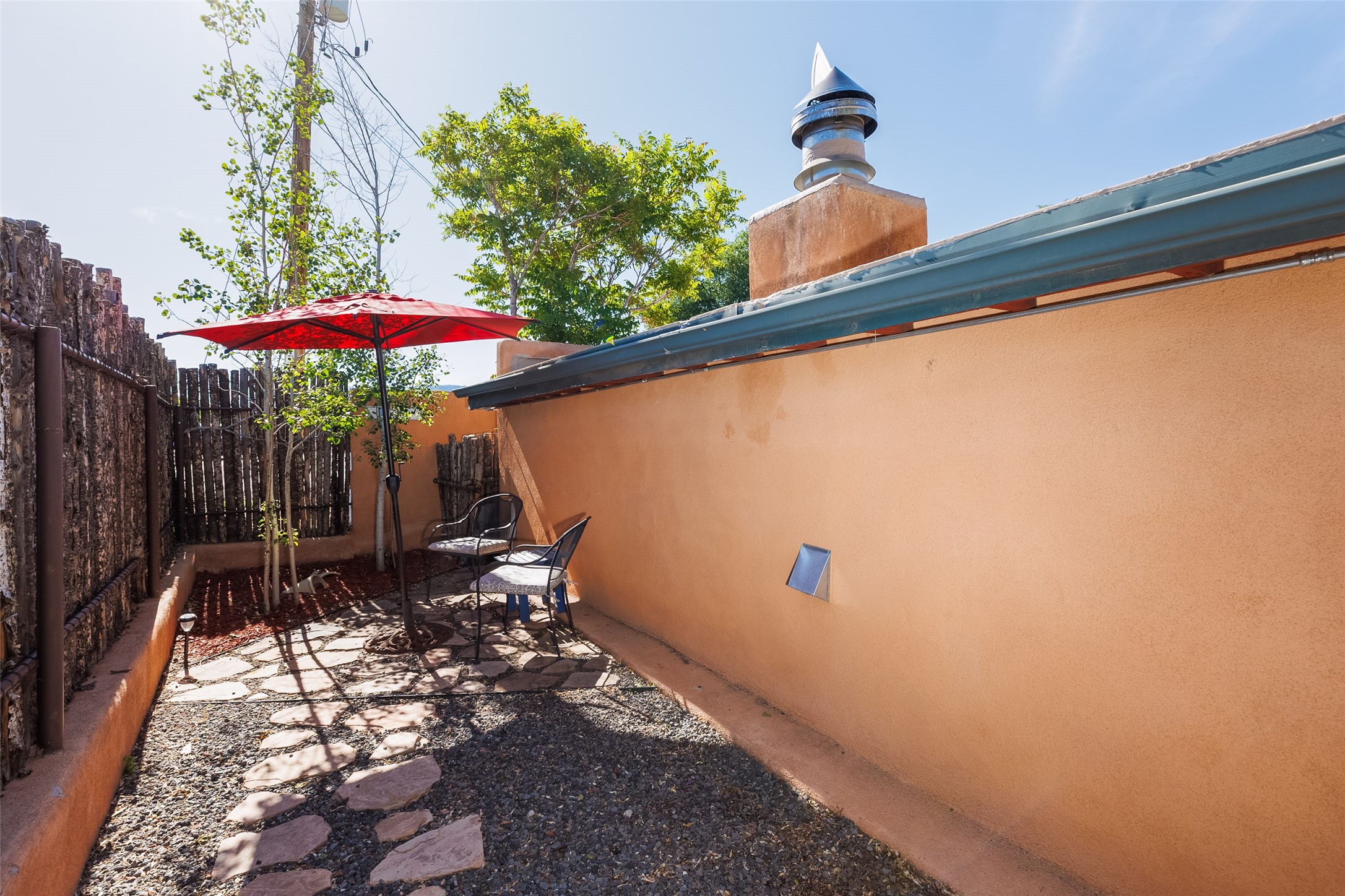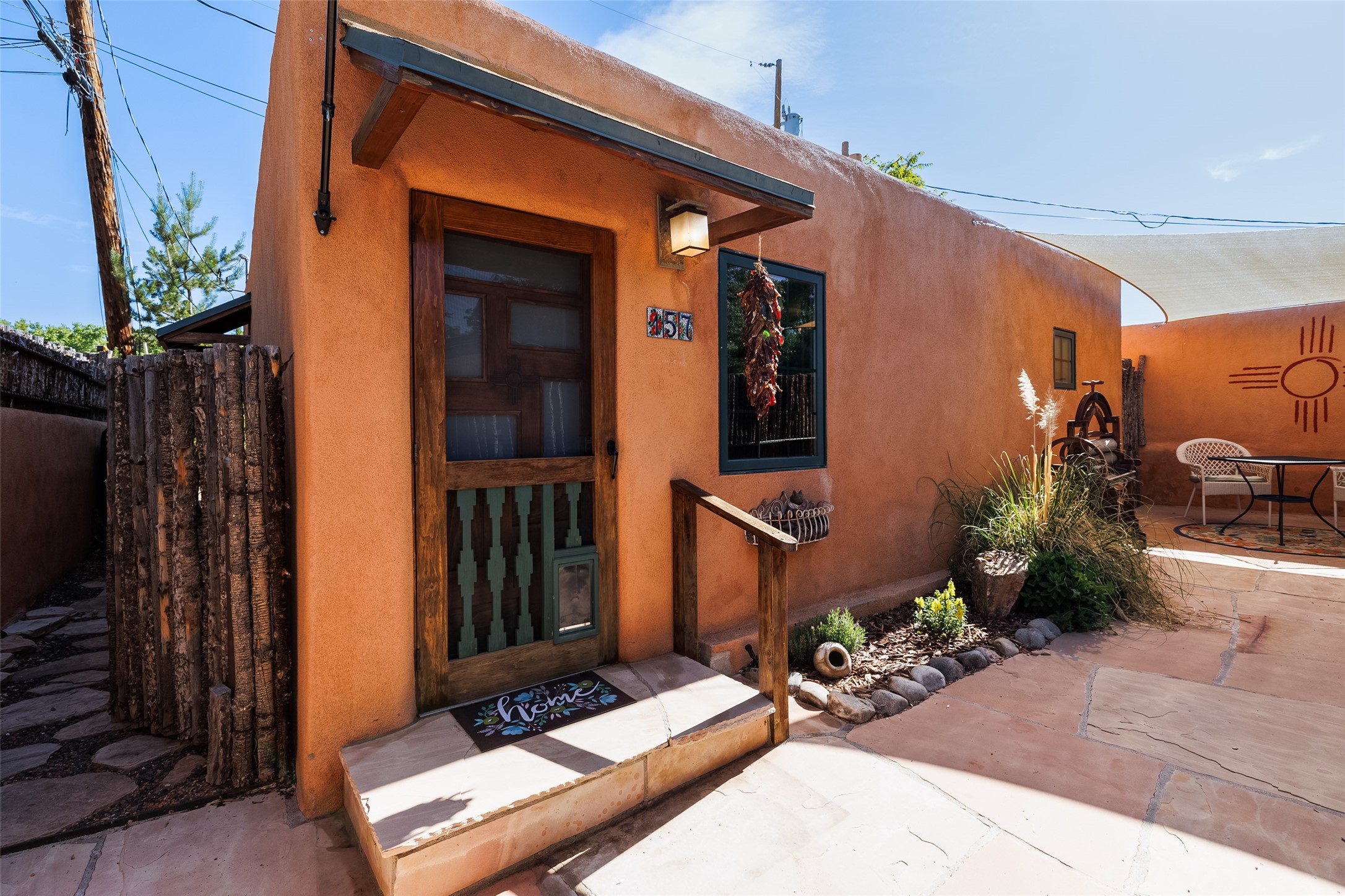 Charming Casita in the Heart of Santa Fe's Guadalupe Historic DistrictWalk to the Plaza | 1 Bed | 1 Bath | Private Courtyard | Off-Street ParkingLocated at the end of a quiet lane in the desirable Guadalupe Historic District, this beautifully updated 1BD/1BA casita offers classic Santa Fe charm, modern amenities, and an unbeatable walkable location. Just 0.8 miles from the Plaza, minutes from the Railyard, Canyon Road, markets, and top restaurants, it's ideal as a turn-key vacation getaway or a low-maintenance home.This property may also be suitable for short-term rental use, subject to the buyer obtaining all necessary permits and adhering to the City of Santa Fe's current short-term rental ordinances, which are subject to specific limitations and requirements.Enter through a serene flagstone courtyard with coyote fencing and a custom sail canopy for shade from the desert sun. A hand-carved front door with Zia symbols welcomes you into a warm, inviting interior featuring a wood-burning Kiva fireplace, hand-troweled diamond plaster walls, and radiant-heated stone floors. Ductless A/C and a recently updated tar and gravel roof add year-year comfort and peace of mind.The kitchen is equipped with stainless steel appliances, granite countertops, and ample storage. The updated bathroom includes a hammered copper vessel sink and custom vanity.Enjoy two private outdoor spaces--a front courtyard and a back patio. Don't miss the hand-painted mountain mural tucked away on the stucco wall, adding a unique artistic touch.Rare for downtown, this home includes two off-street parking spaces, enhancing its convenience and value. Plus, the unbeatable walkability lets you leave the car behind and enjoy everything Santa Fe has to offer on foot.