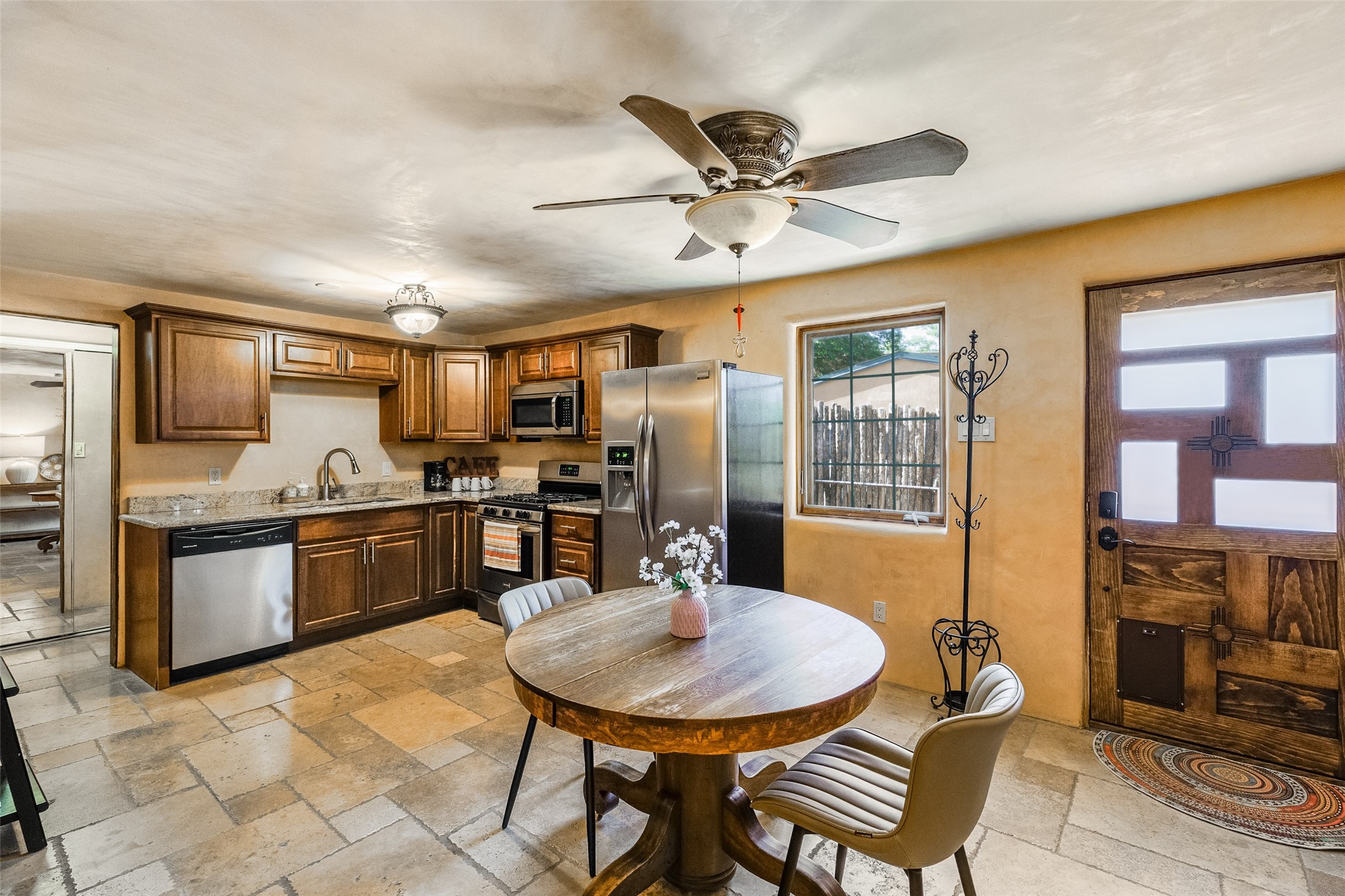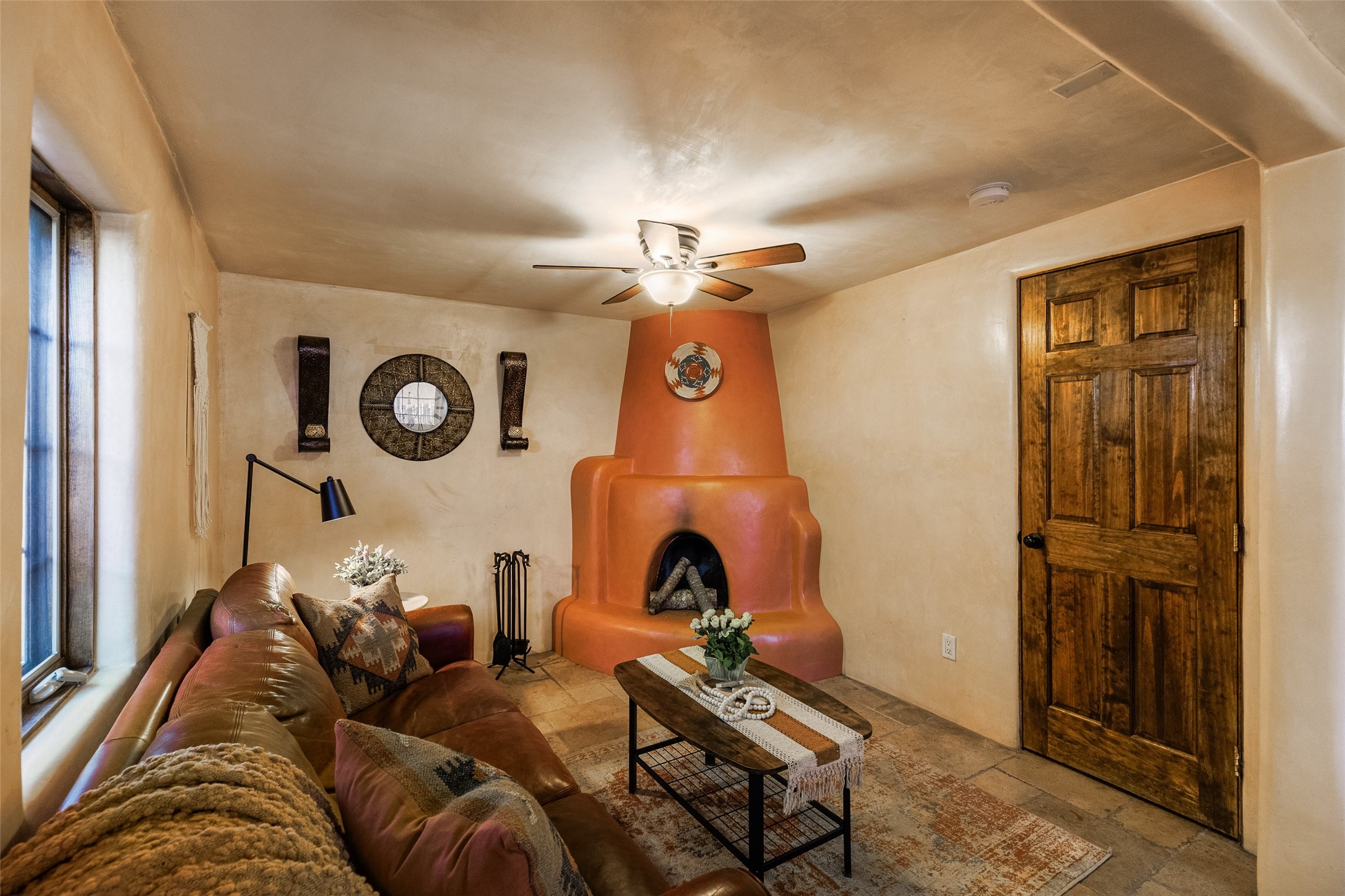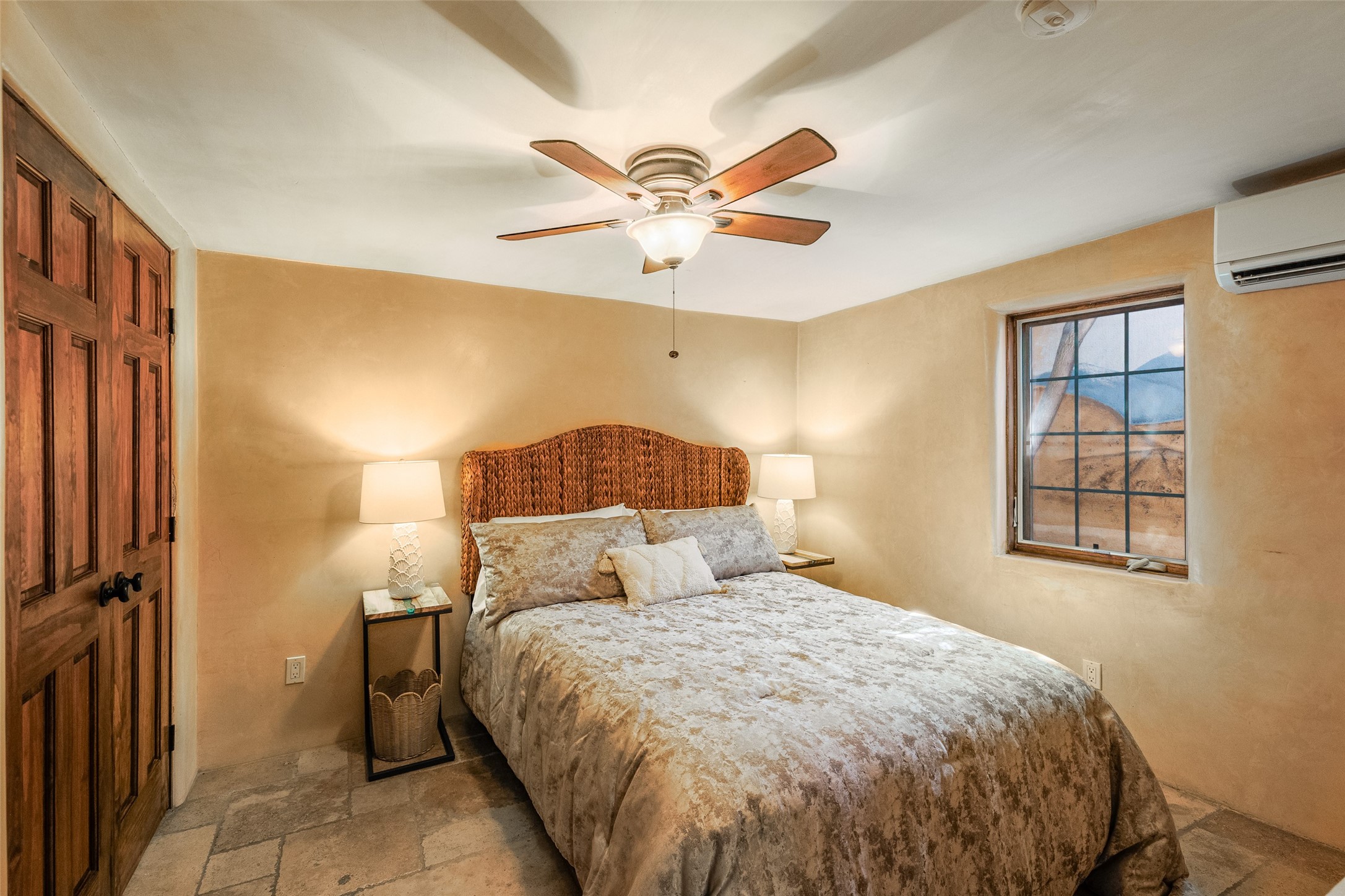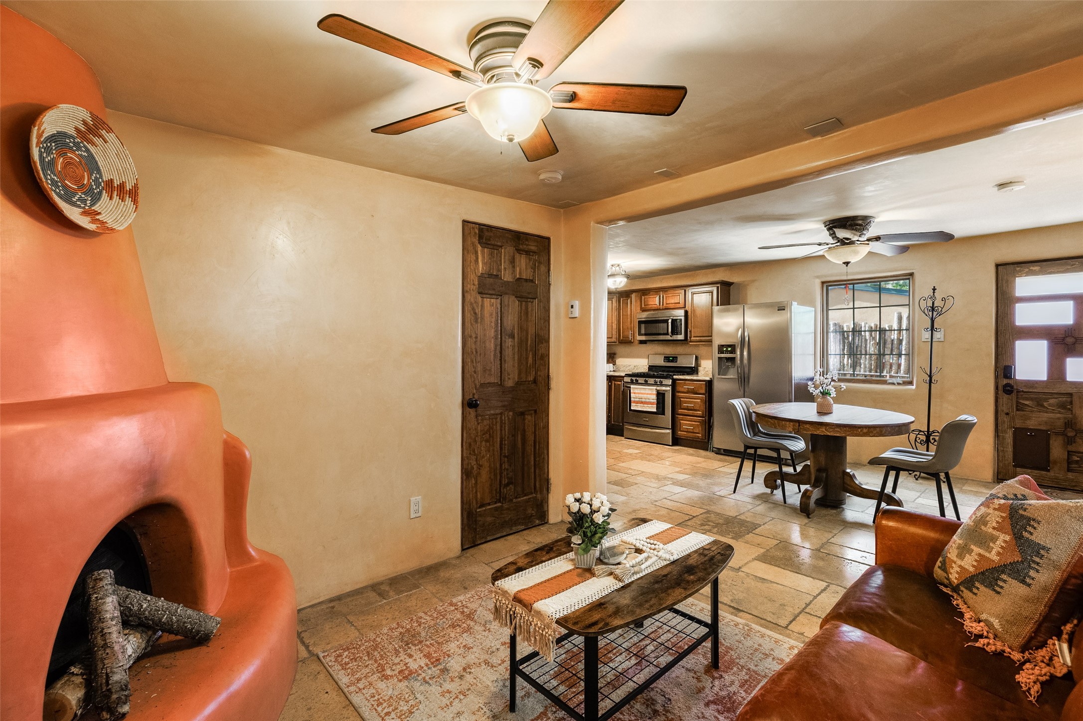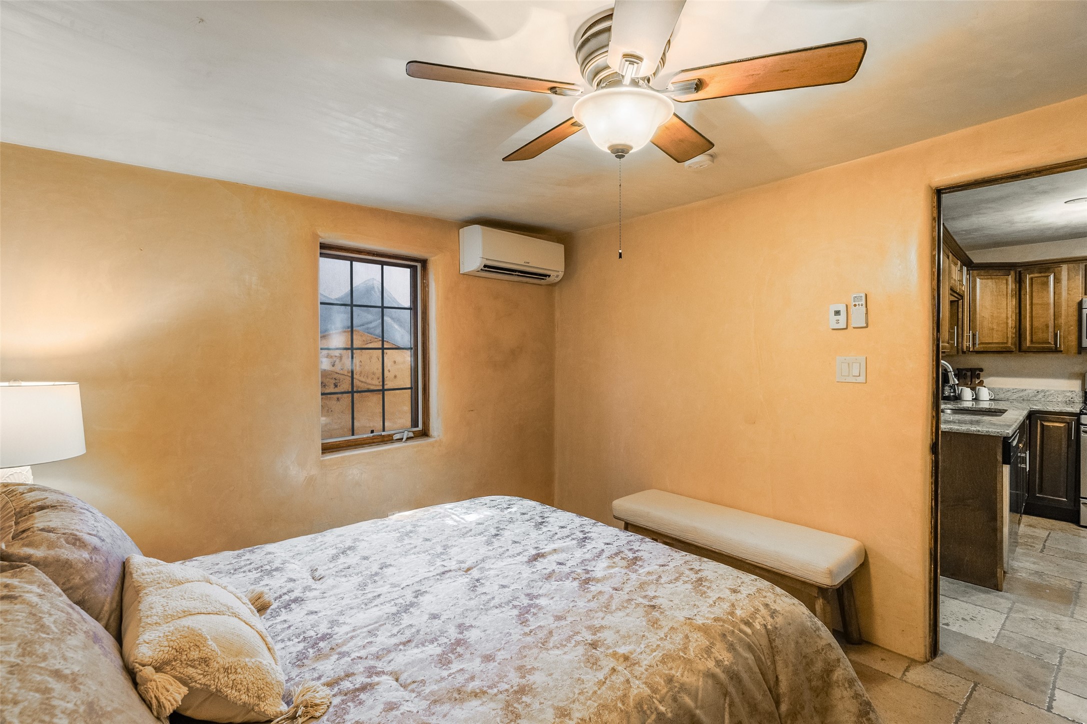 Charming Casita in the Heart of Santa Fe's Guadalupe Historic DistrictWalk to the Plaza | 1 Bed | 1 Bath | Private Courtyard | Off-Street ParkingLocated at the end of a quiet lane in the desirable Guadalupe Historic District, this beautifully updated 1BD/1BA casita offers classic Santa Fe charm, modern amenities, and an unbeatable walkable location. Just 0.8 miles from the Plaza, minutes from the Railyard, Canyon Road, markets, and top restaurants, it's ideal as a turn-key vacation getaway or a low-maintenance home.This property may also be suitable for short-term rental use, subject to the buyer obtaining all necessary permits and adhering to the City of Santa Fe's current short-term rental ordinances, which are subject to specific limitations and requirements.Enter through a serene flagstone courtyard with coyote fencing and a custom sail canopy for shade from the desert sun. A hand-carved front door with Zia symbols welcomes you into a warm, inviting interior featuring a wood-burning Kiva fireplace, hand-troweled diamond plaster walls, and radiant-heated stone floors. Ductless A/C and a recently updated tar and gravel roof add year-year comfort and peace of mind.The kitchen is equipped with stainless steel appliances, granite countertops, and ample storage. The updated bathroom includes a hammered copper vessel sink and custom vanity.Enjoy two private outdoor spaces--a front courtyard and a back patio. Don't miss the hand-painted mountain mural tucked away on the stucco wall, adding a unique artistic touch.Rare for downtown, this home includes two off-street parking spaces, enhancing its convenience and value. Plus, the unbeatable walkability lets you leave the car behind and enjoy everything Santa Fe has to offer on foot.