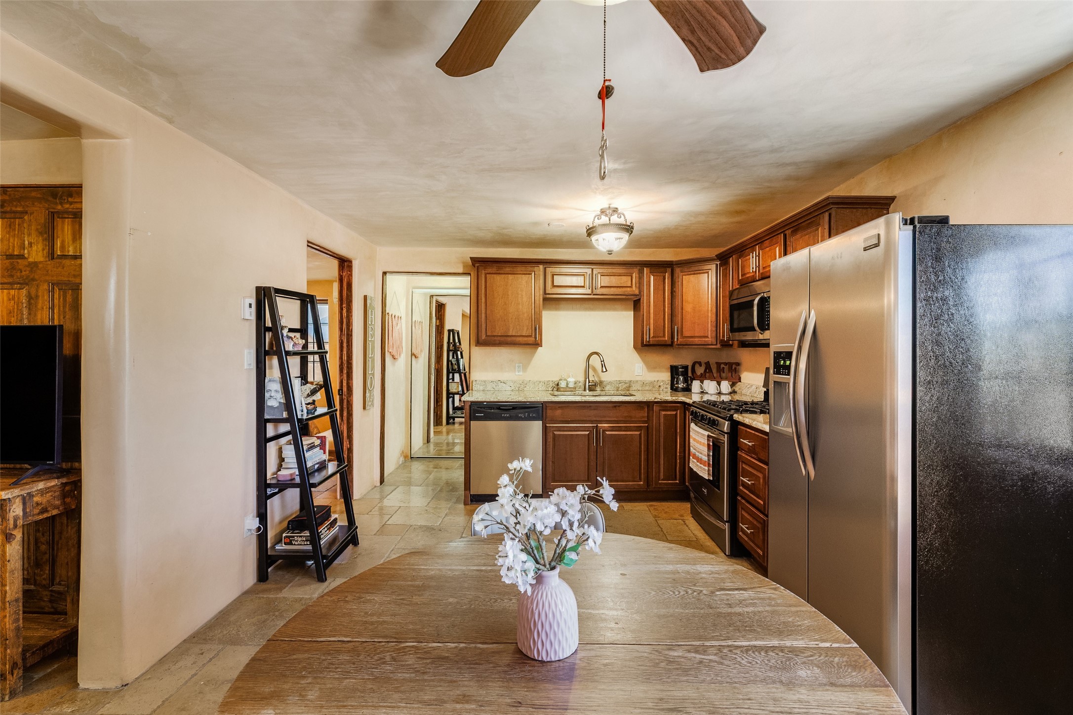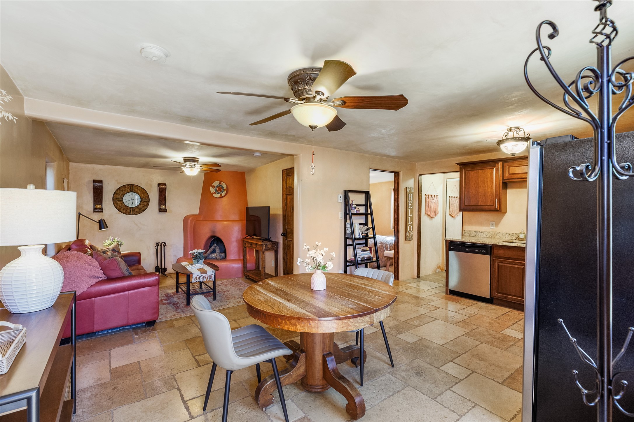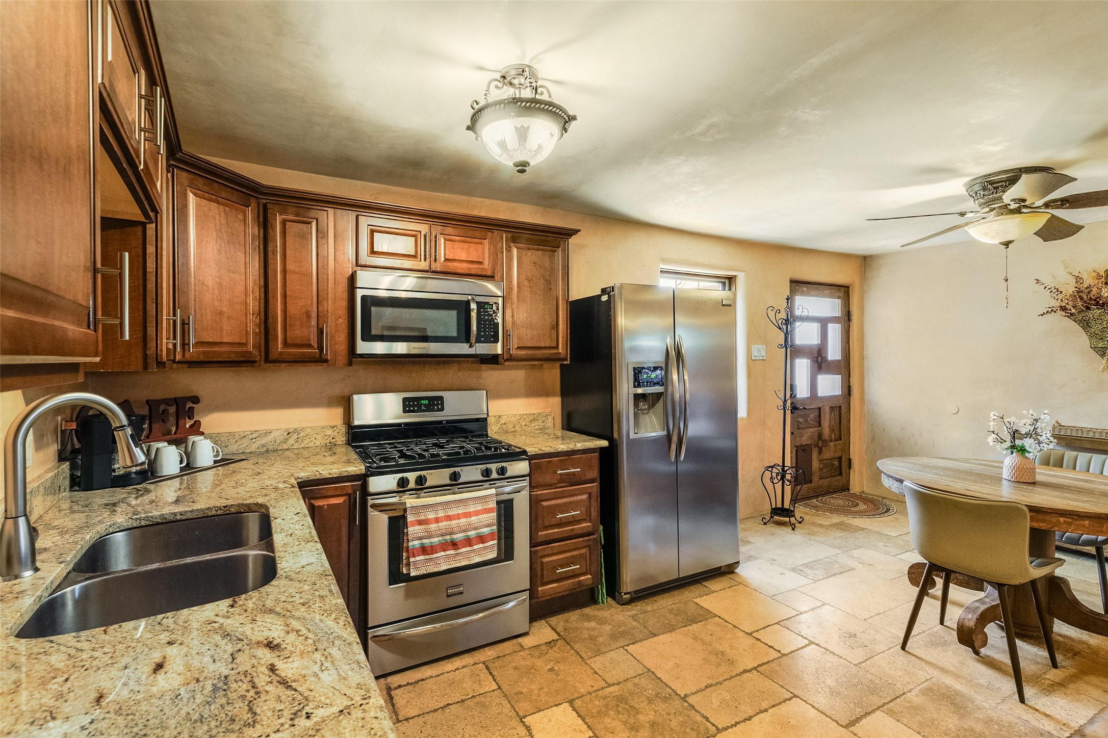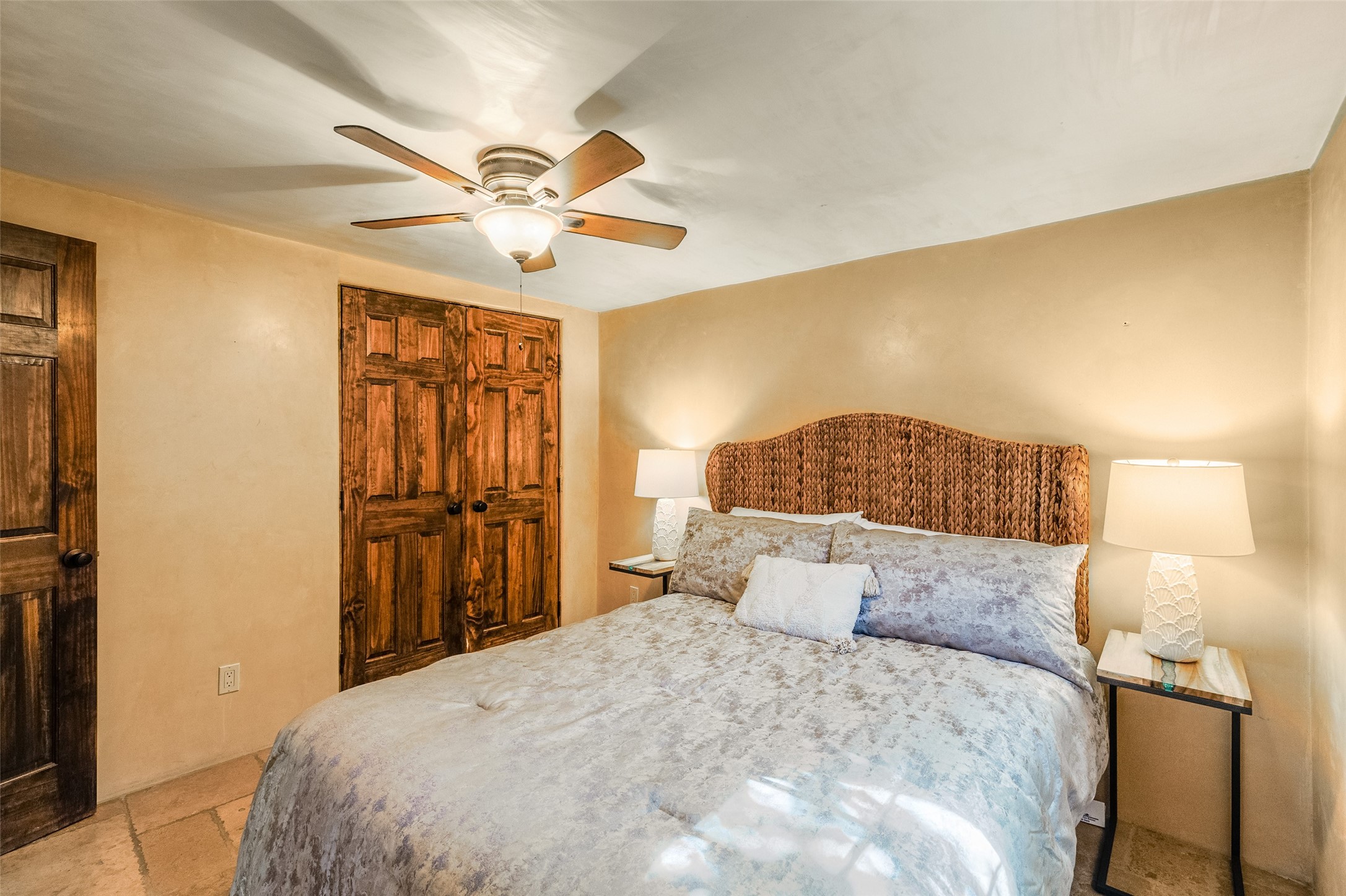 Charming Casita in the Heart of Santa Fe's Guadalupe Historic DistrictWalk to the Plaza | 1 Bed | 1 Bath | Private Courtyard | Off-Street ParkingLocated at the end of a quiet lane in the desirable Guadalupe Historic District, this beautifully updated 1BD/1BA casita offers classic Santa Fe charm, modern amenities, and an unbeatable walkable location. Just 0.8 miles from the Plaza, minutes from the Railyard, Canyon Road, markets, and top restaurants, it's ideal as a turn-key vacation getaway or a low-maintenance home.This property may also be suitable for short-term rental use, subject to the buyer obtaining all necessary permits and adhering to the City of Santa Fe's current short-term rental ordinances, which are subject to specific limitations and requirements.Enter through a serene flagstone courtyard with coyote fencing and a custom sail canopy for shade from the desert sun. A hand-carved front door with Zia symbols welcomes you into a warm, inviting interior featuring a wood-burning Kiva fireplace, hand-troweled diamond plaster walls, and radiant-heated stone floors. Ductless A/C and a recently updated tar and gravel roof add year-year comfort and peace of mind.The kitchen is equipped with stainless steel appliances, granite countertops, and ample storage. The updated bathroom includes a hammered copper vessel sink and custom vanity.Enjoy two private outdoor spaces--a front courtyard and a back patio. Don't miss the hand-painted mountain mural tucked away on the stucco wall, adding a unique artistic touch.Rare for downtown, this home includes two off-street parking spaces, enhancing its convenience and value. Plus, the unbeatable walkability lets you leave the car behind and enjoy everything Santa Fe has to offer on foot.