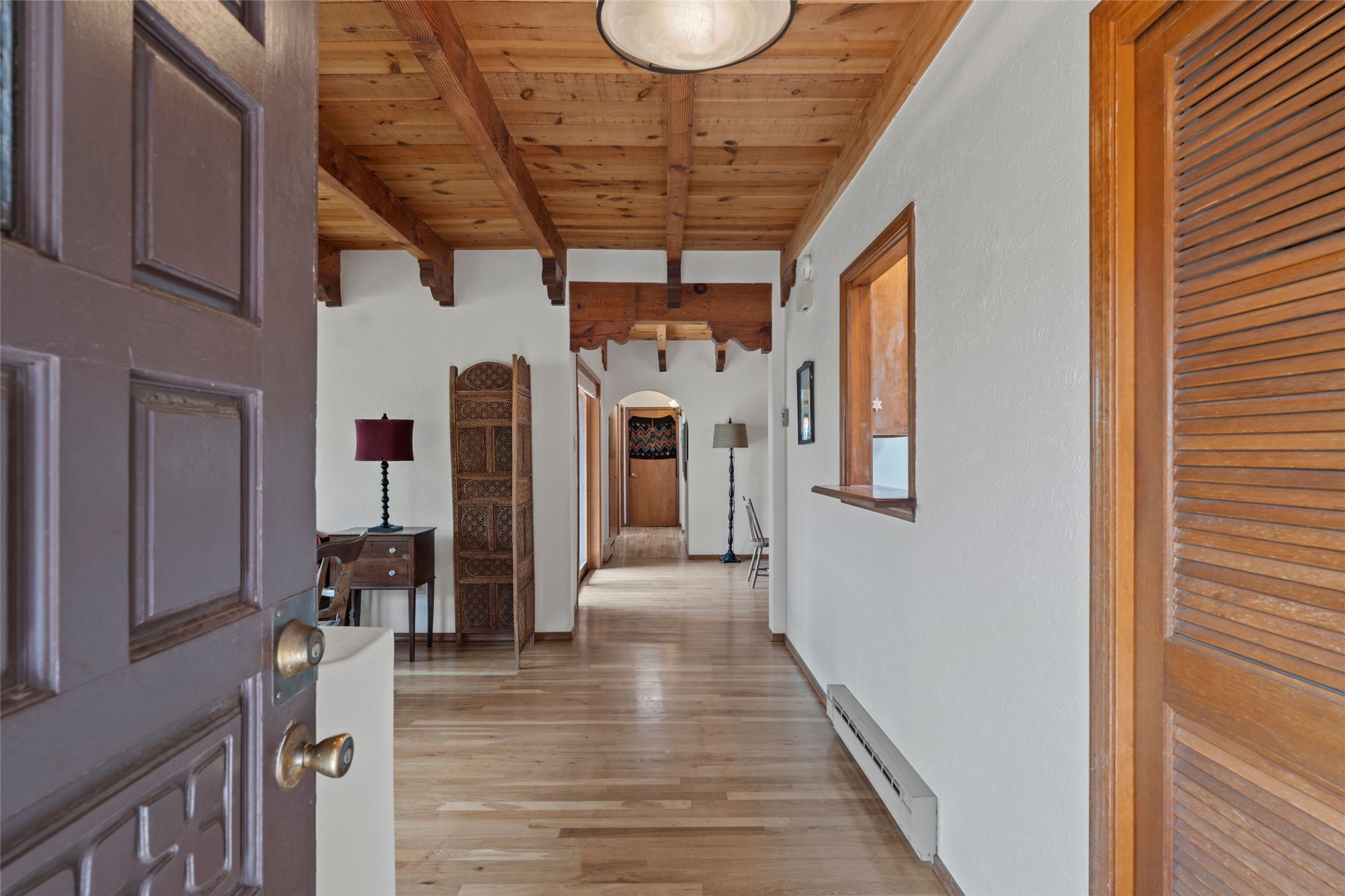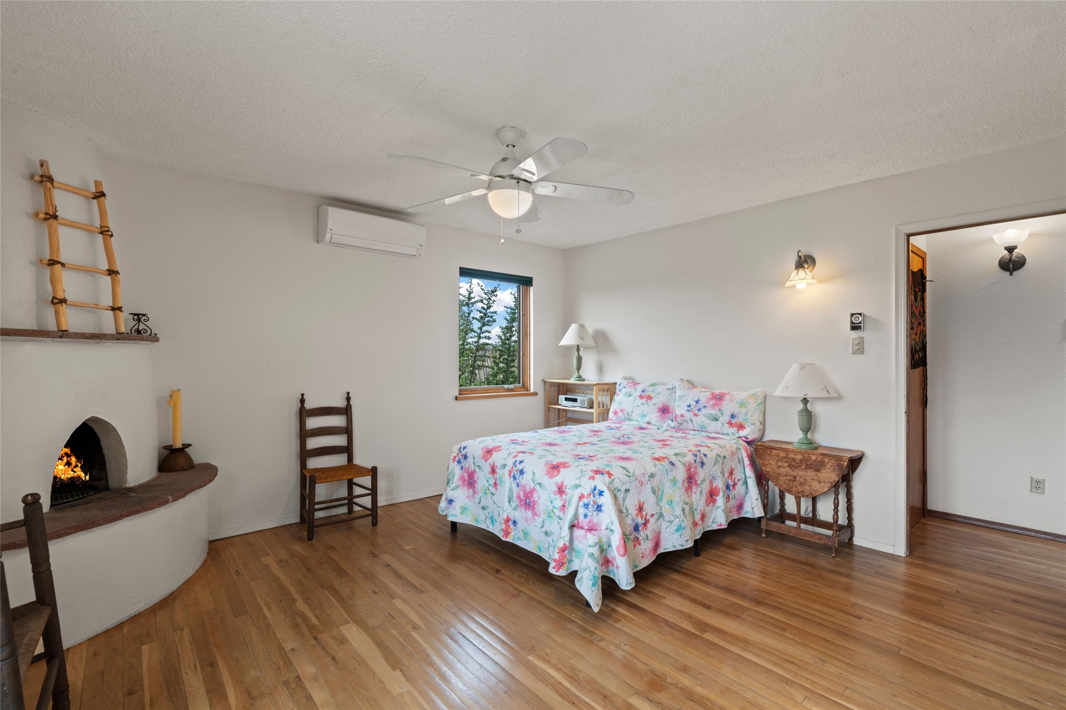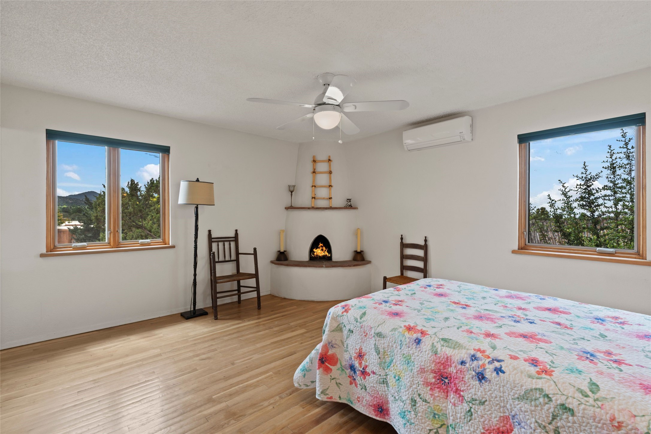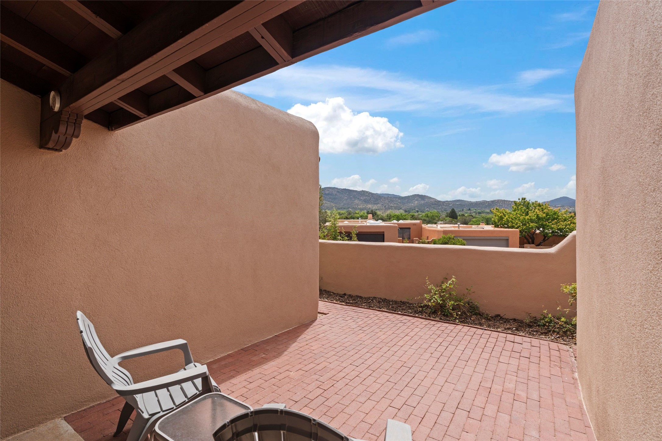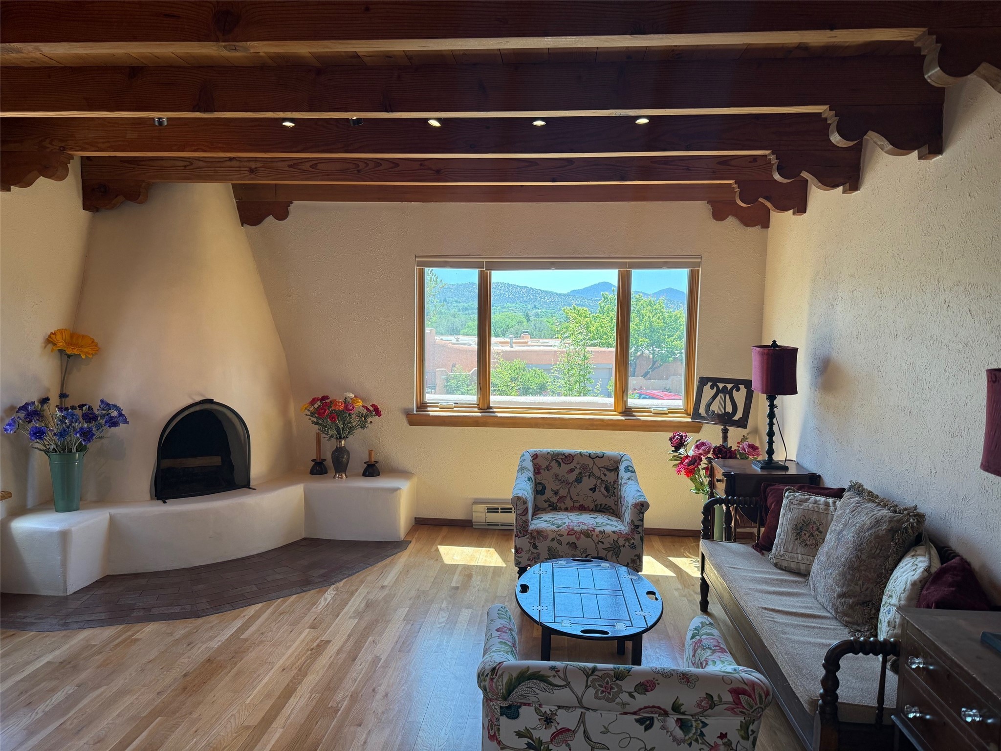Nestled in a serene enclave with views of Sun and Moon Mountain, this charming 2-bedroom, 2-bath townhouse radiates timeless charm with wood floors, rustic ceiling beams, and authentic Southwestern character throughout.Located in the heart of Santa Fe in the Wood-Gormley School district, you're minutes from the historic Plaza, Museum Hill, and neighborhood cafes. The attached two-car garage provides convenient parking and storage, while mini-splits ensure year-round comfort.Complete with two wood-burning Kiva fireplaces and an attached 2-car garage offering ample storage, this home is a rare gem where charm meets functionality. Whether you're sipping coffee on the patio at sunrise or enjoying a sunset glow on the mountains, this is where desert beauty and refined living come together.