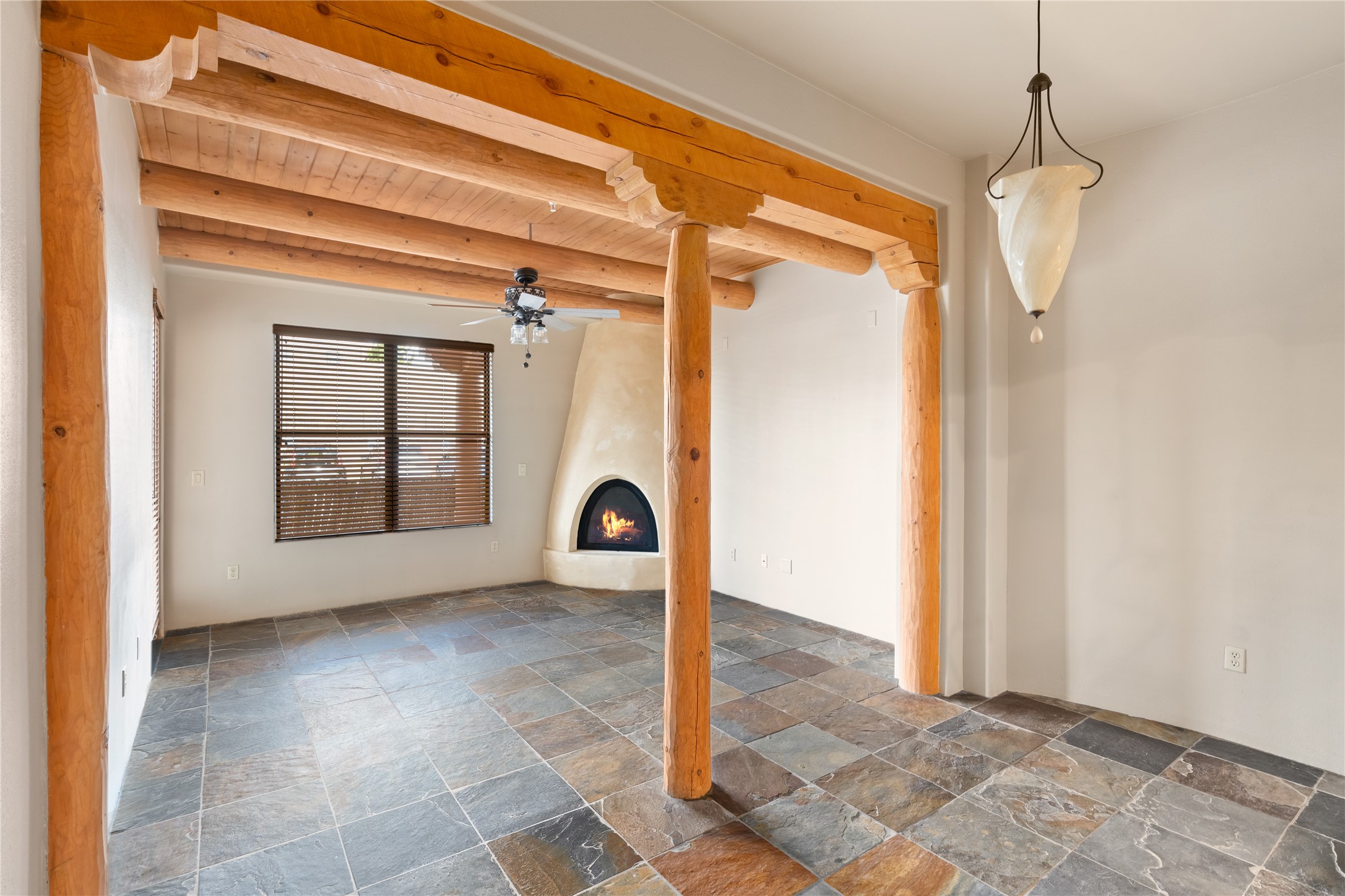 Welcome to 1405 Vegas Verdes #136, a beautifully maintained 1-bedroom, 1.5-bath condo located in the gated community of The Alameda. This ground-floor unit offers the perfect blend of Southwest character and everyday functionality, with features like wood vigas, a cozy corner fireplace, and a spacious open layout that flows from the kitchen to the living area. Step through the glass door to your private patio an ideal space for relaxing, dining al fresco, or unloading groceries. This unit has a storage unit as well, providing ample space for your vehicle, bikes, or extra belongings. Inside, you'll find a well-appointed kitchen with granite countertops and stainless steel appliances, a comfortable primary suite with full bath, and a separate powder room for guests. Additional conveniences include an in-unit washer and dryer, central air, and plenty of natural light throughout. Residents of The Alameda enjoy resort-style amenities including a swimming pool, fitness center, clubhouse, beautifully landscaped grounds, and secure gated access. Located near Santa Fe Place Mall, grocery stores, restaurants, and with easy access to Hwy 599, this condo offers low-maintenance living in one of Santa Fe's most desirable communities. Whether you're looking for a full-time residence, a lock-and-leave home, or a smart investment, this one has it all.
