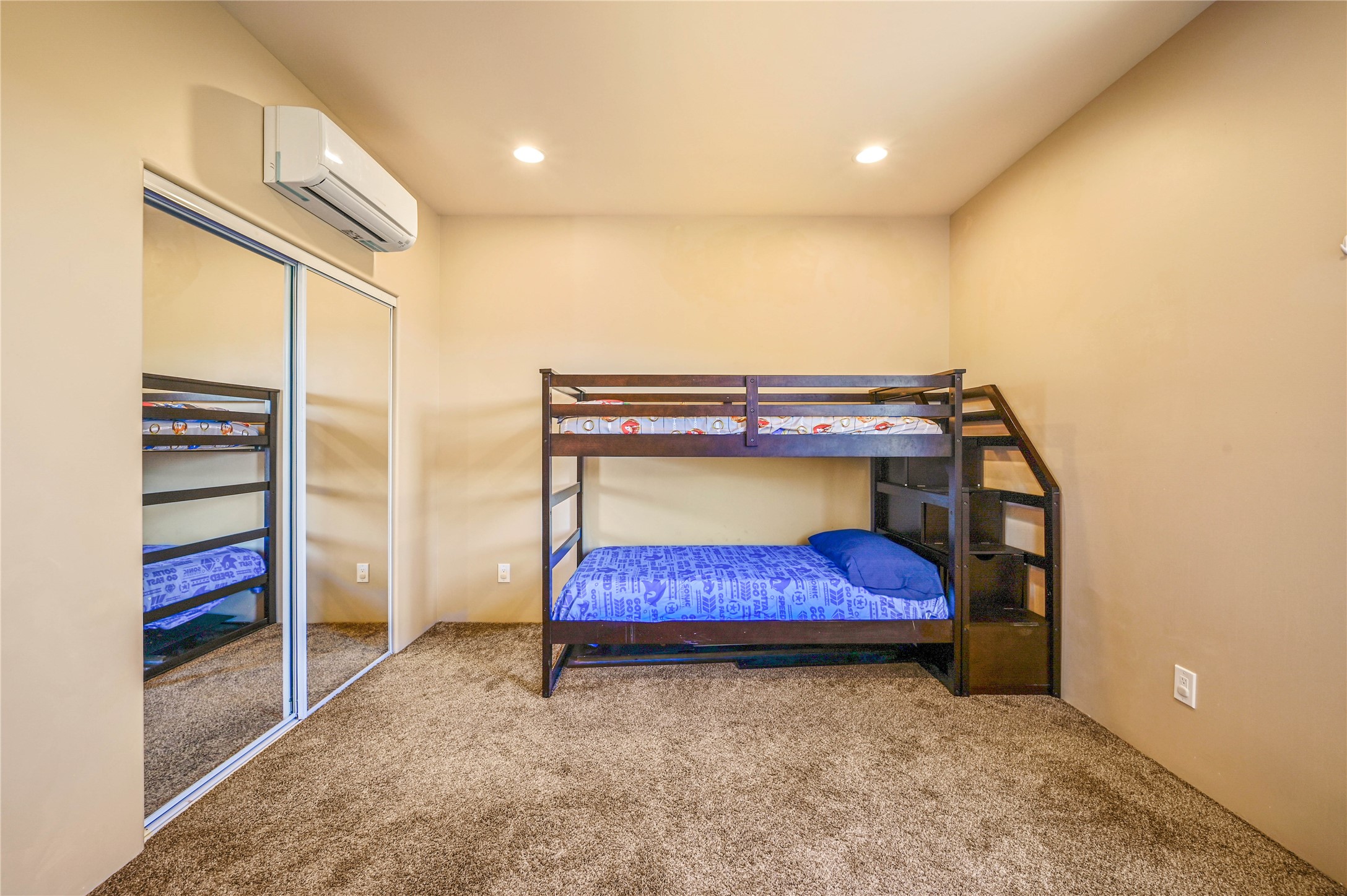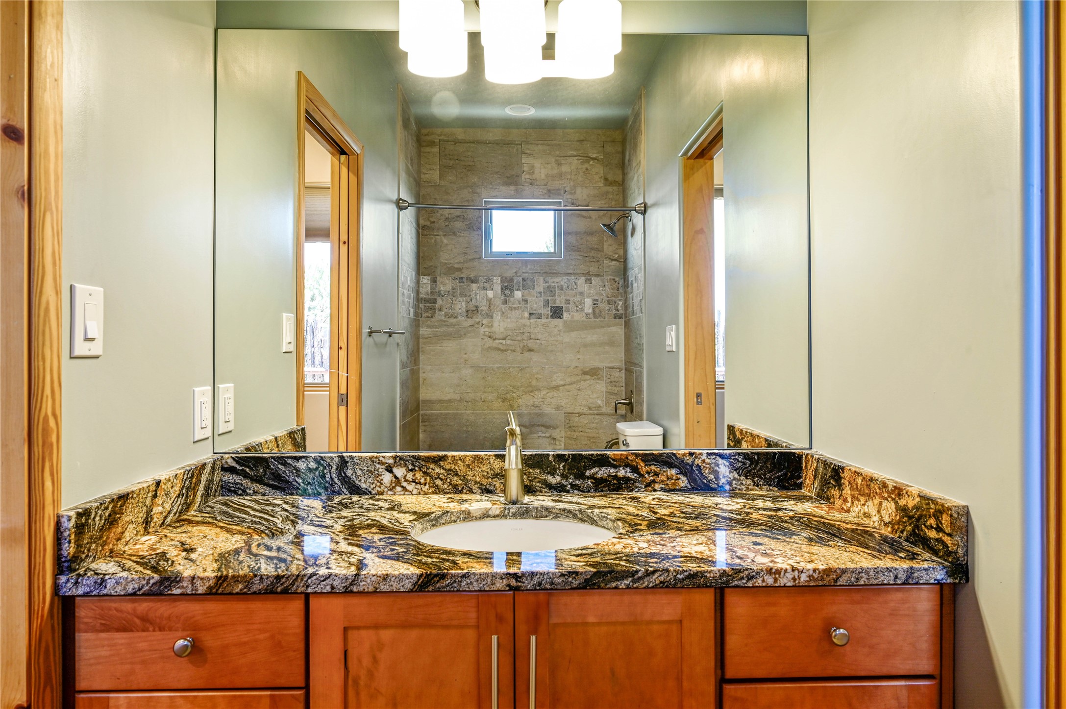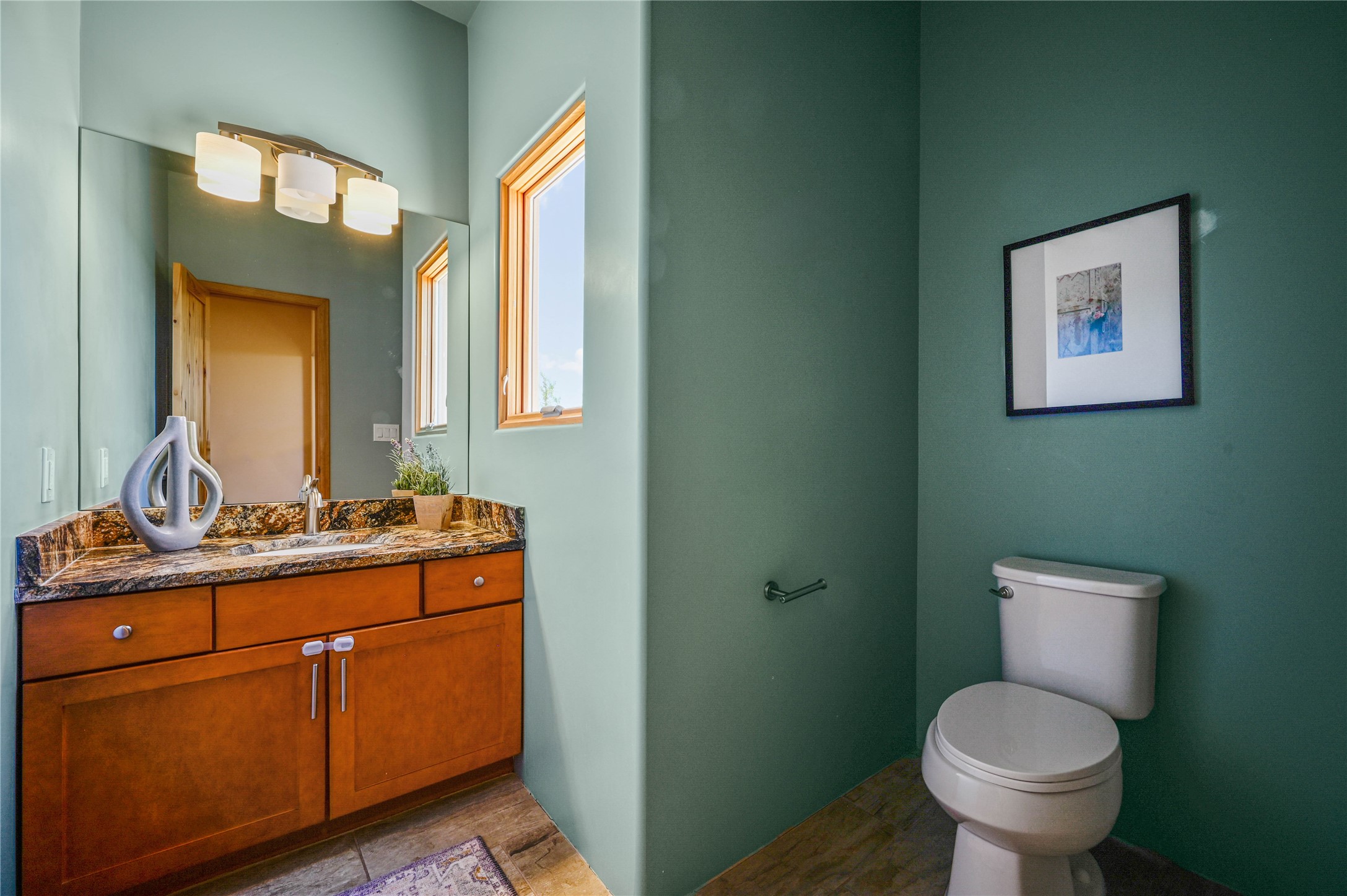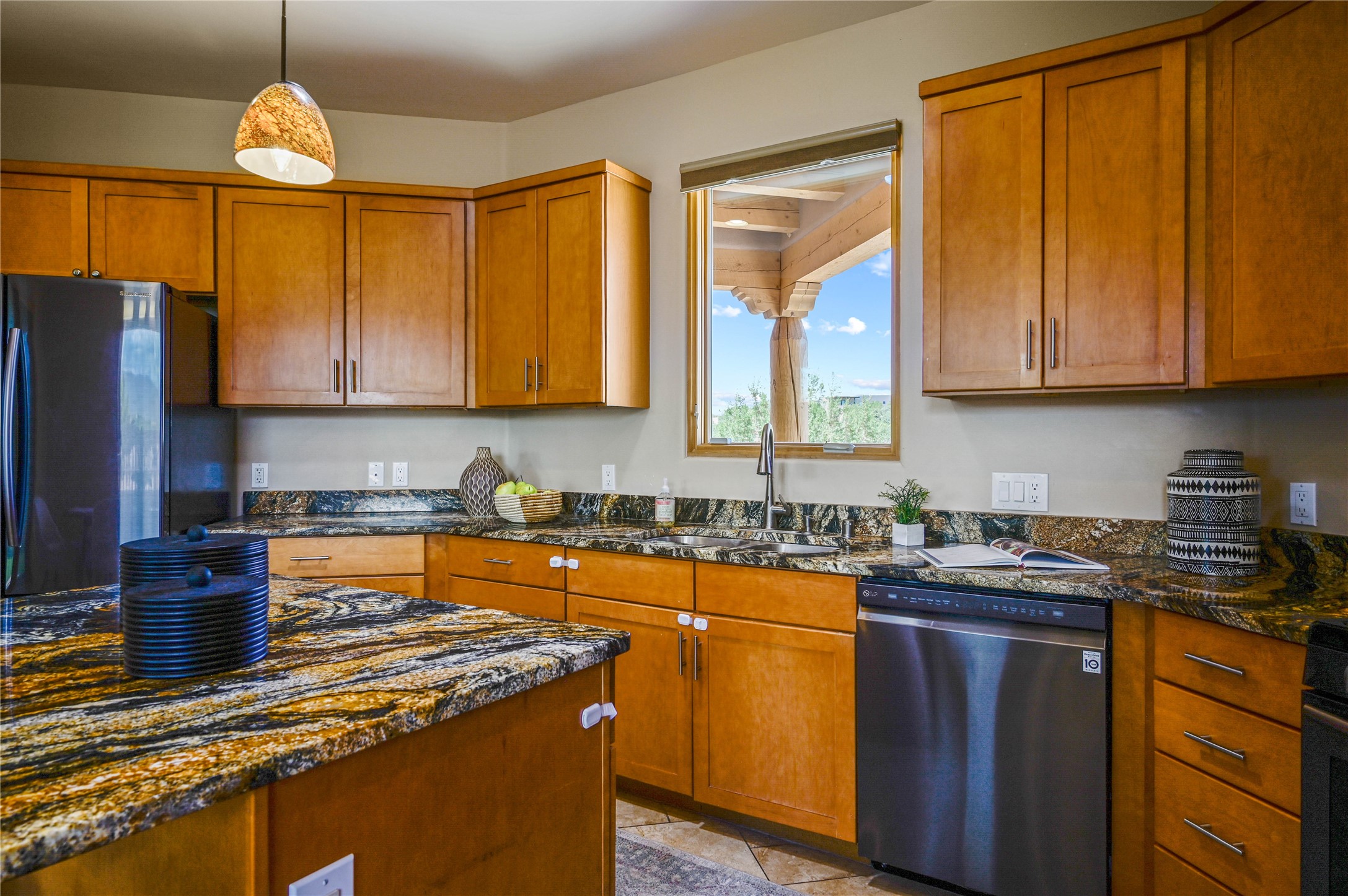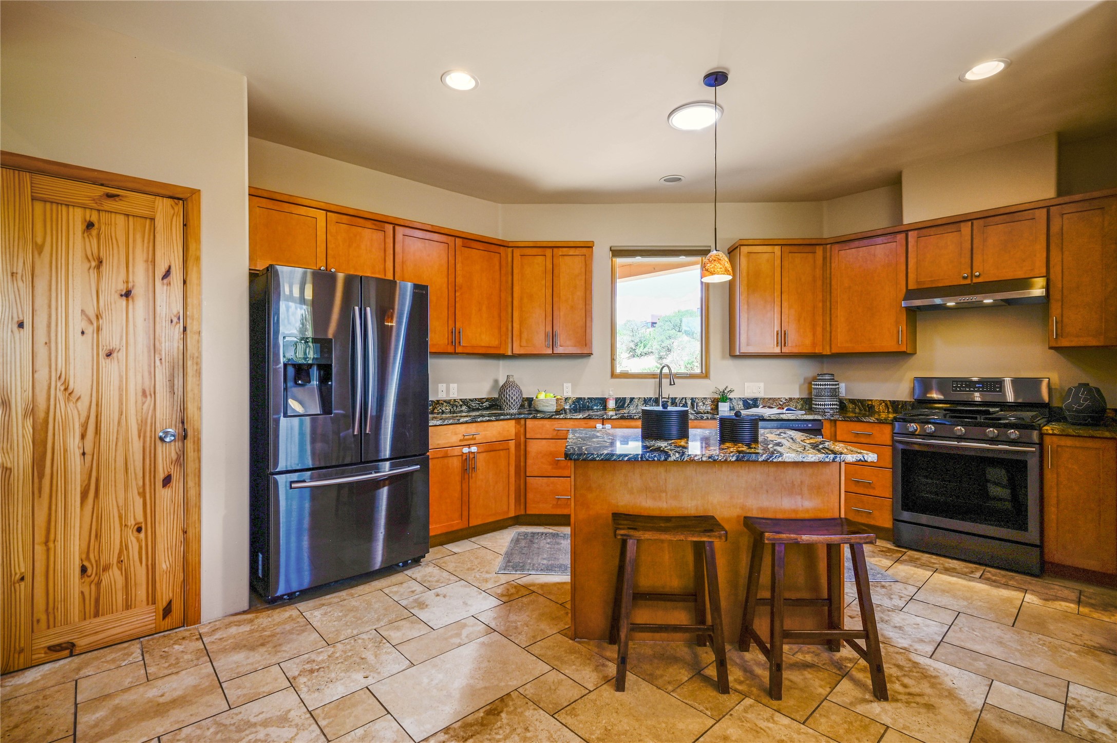 Perched at the top of the desirable Pion Bluffs subdivision, this charming three-bedroom, two-bath contemporary home offers breathtaking views of the Sangre de Cristos. Ideally located with easy access to downtown Santa Fe, Albuquerque, and Los Alamos, this home is perfect for those seeking both convenience and a great Santa fe vibe. The open-concept kitchen and dining area flow seamlessly onto a spacious outdoor patio--an ideal setting for entertaining or enjoying spectacular mountain sunsets. The inviting living room features a wood-burning fireplace, creating a cozy space for gathering. The primary suite includes a lovely en suite bath and French doors that open onto a private yard and patio, perfect for morning coffee with a view. Just minutes from Santa Fe's vibrant Plaza, you'll have quick access to summer markets, live music, and all the cultural richness the city has to offer. Owned solar panels (not leased) offer the next owner the benefit of reduced electric bills and energy independence. Don't miss this opportunity to own a beautifully situated home with comfort, style, and unbeatable views.