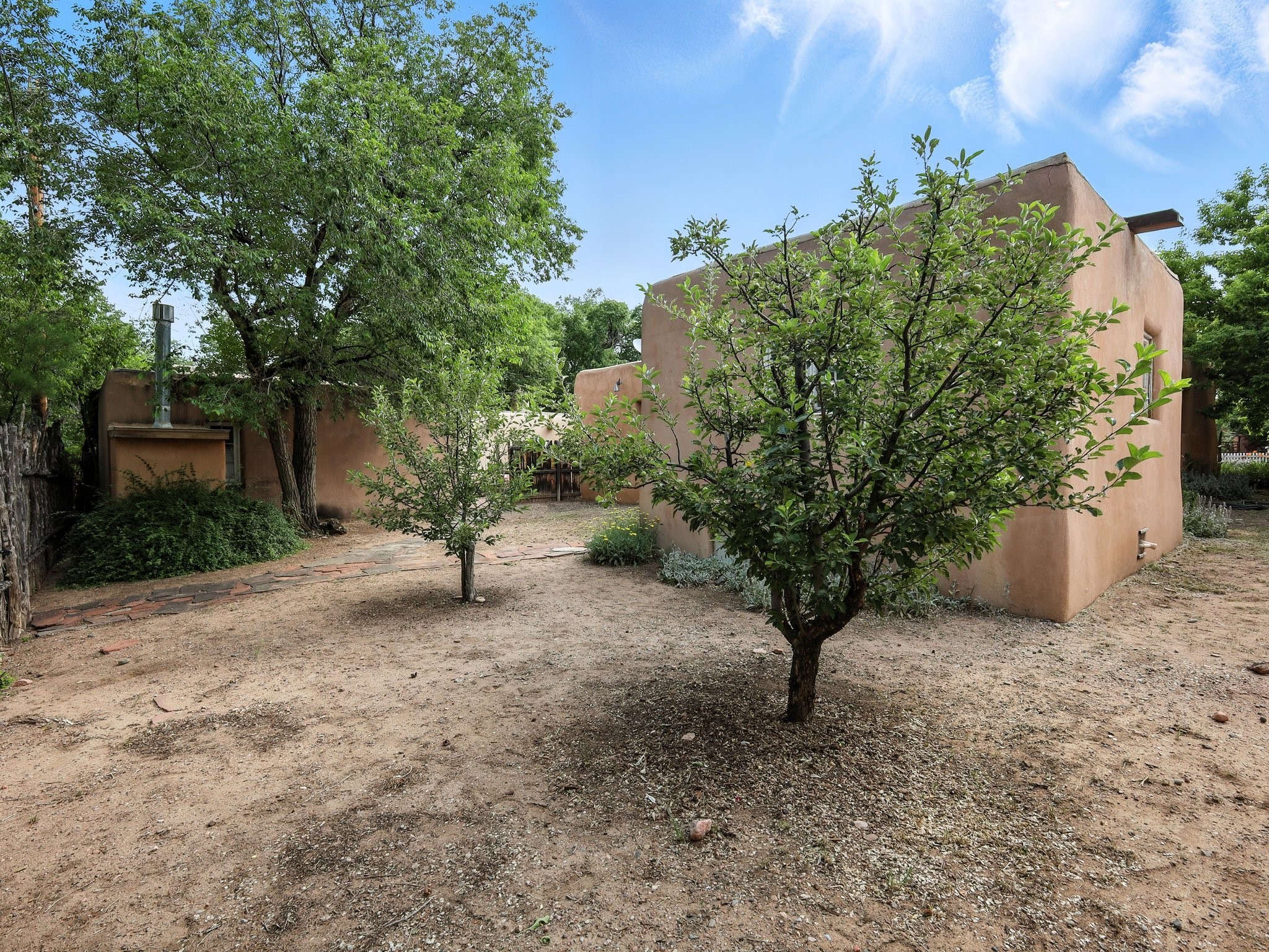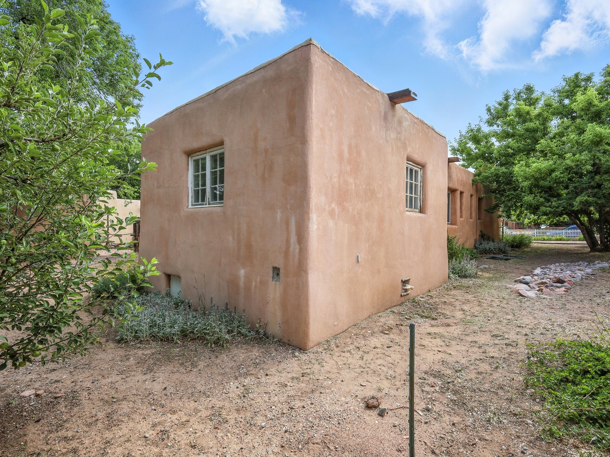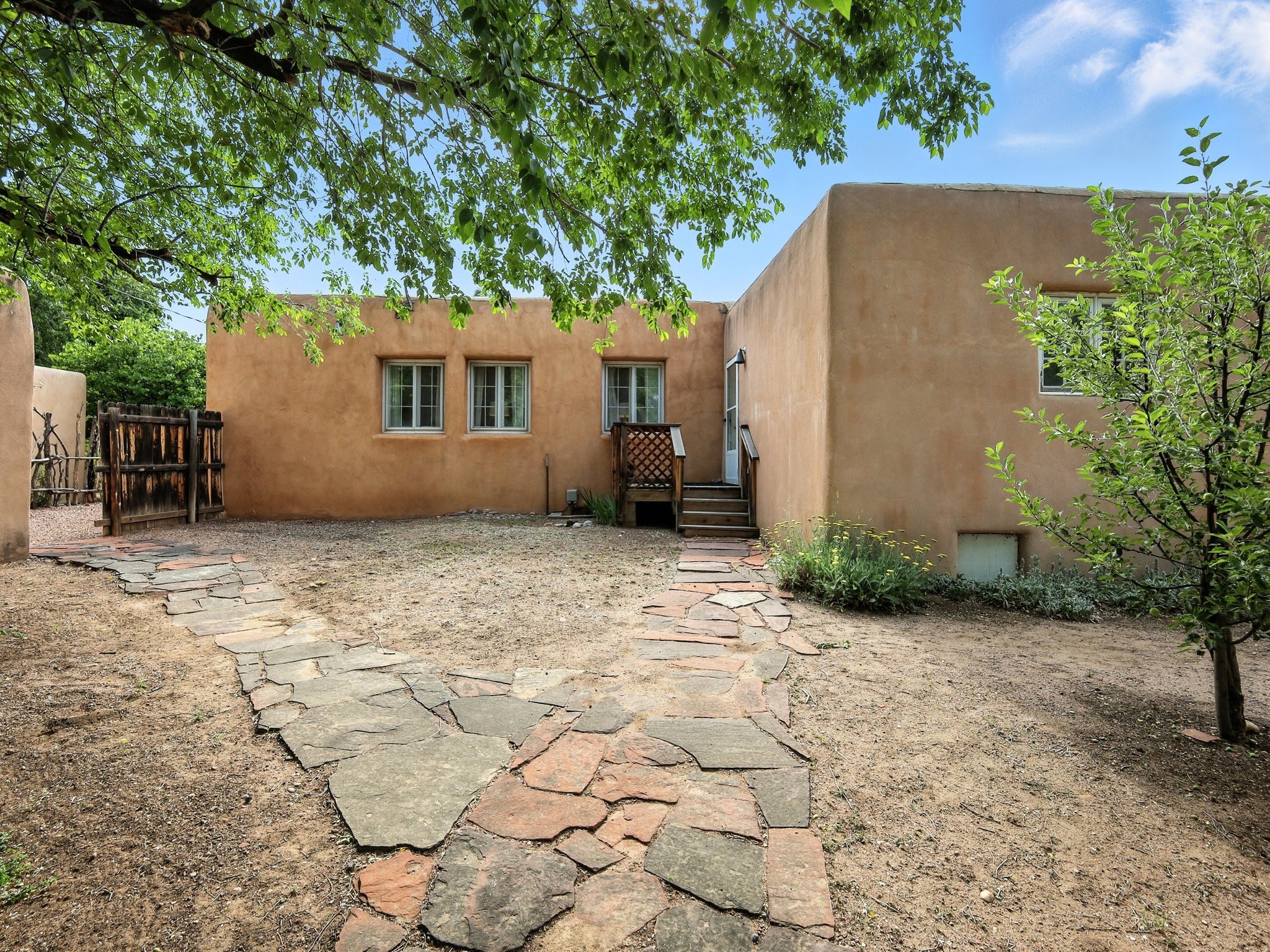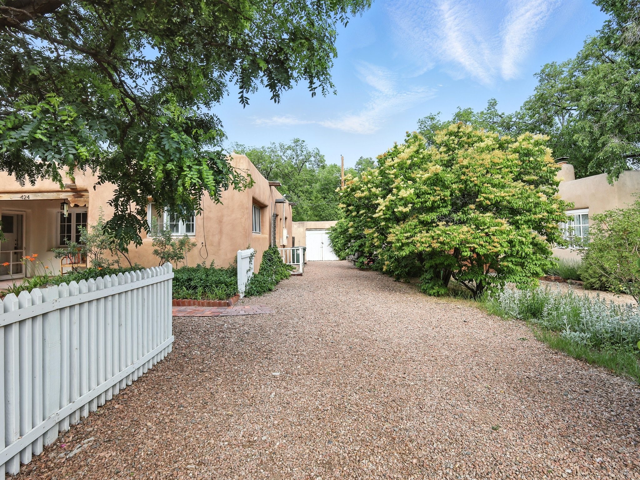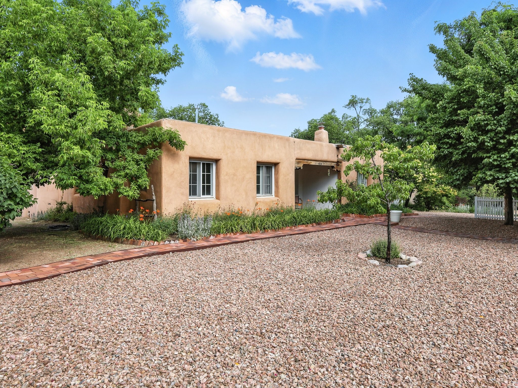 Step back in time and experience the charm and grace of authentic Santa Fe living at 424 San Antonio Street, nestled in the heart of the coveted Camino del Monte Sol Historic District. This enchanting Pueblo Revival-style adobe home, built in the 1920s, offers a rare opportunity to own a true piece of Santa Fe's architectural and cultural heritage.Set on a spacious 0.13-acre lot, the home features three generously sized bedrooms and two full bathrooms, with bright, cheerful interiors that reflect the warmth and soul of its historic roots. Thick adobe walls, timeless design elements, and large, light-filled rooms speak to a bygone era while offering comfortable living for today.The lush, mature landscaping frames both front and back yards, offering peaceful patios and tranquil outdoor living spaces. A detached garage provides excellent flexibility, ideal as a studio, workshop, or additional storage.Located just blocks from Canyon Road and a scenic 20-minute stroll to the Santa Fe Plaza along the historic Acequia Madre, this home is perfectly situated to enjoy the very best of Santa Fe's galleries, dining, and culture.Don't miss your chance to own this rare and remarkable historic residence in one of Santa Fe's most iconic neighborhoods. Schedule your private showing today.