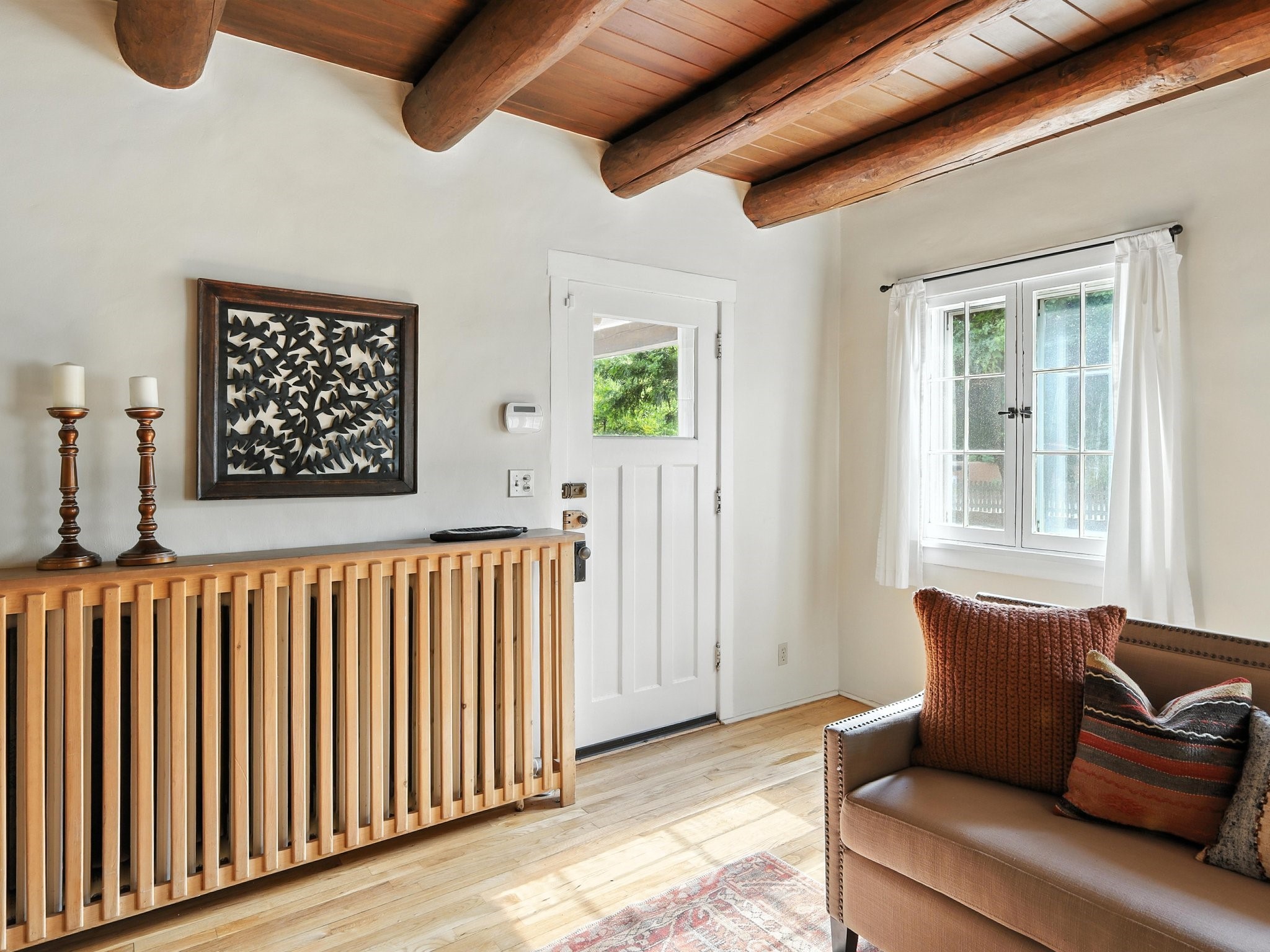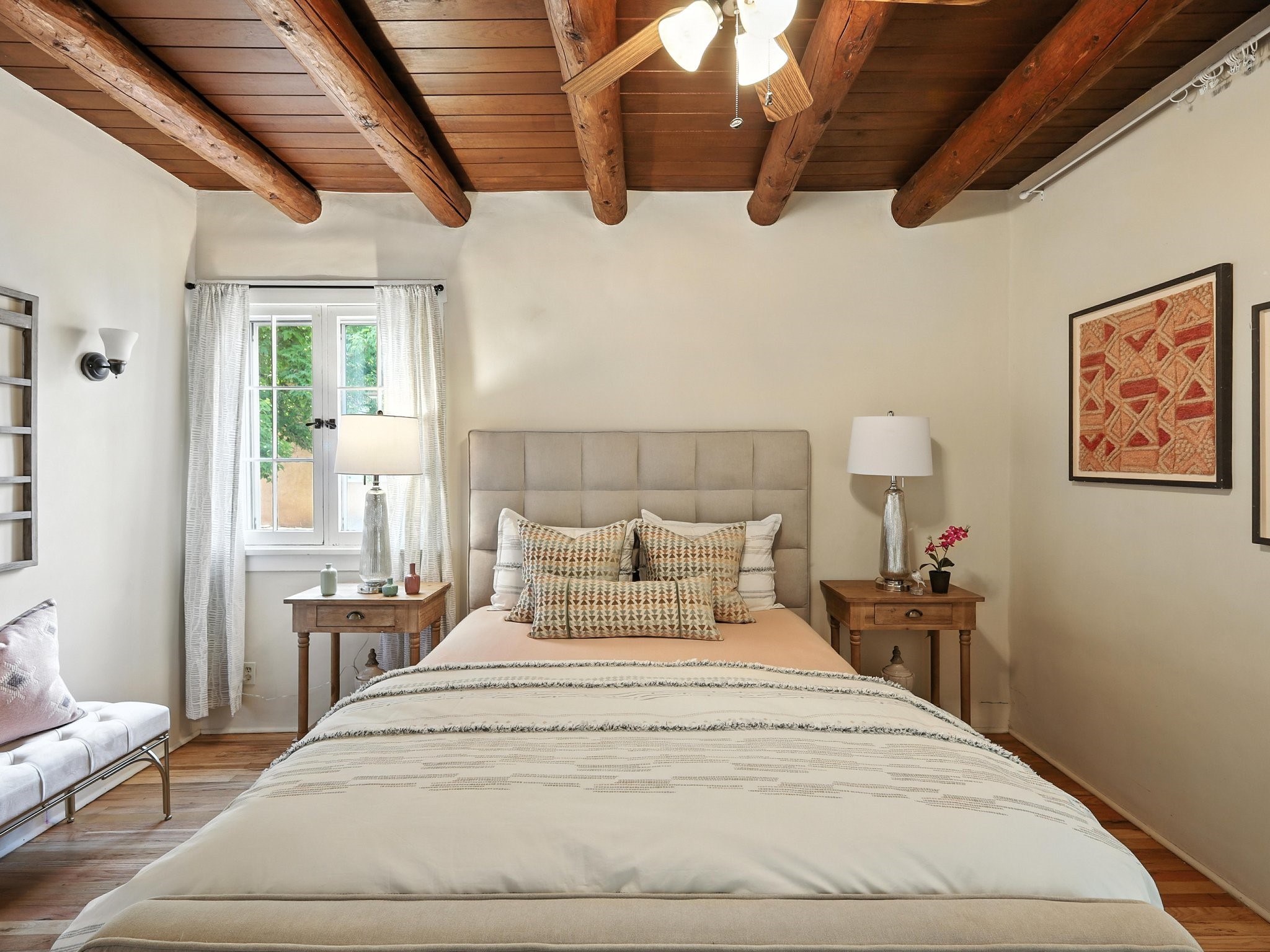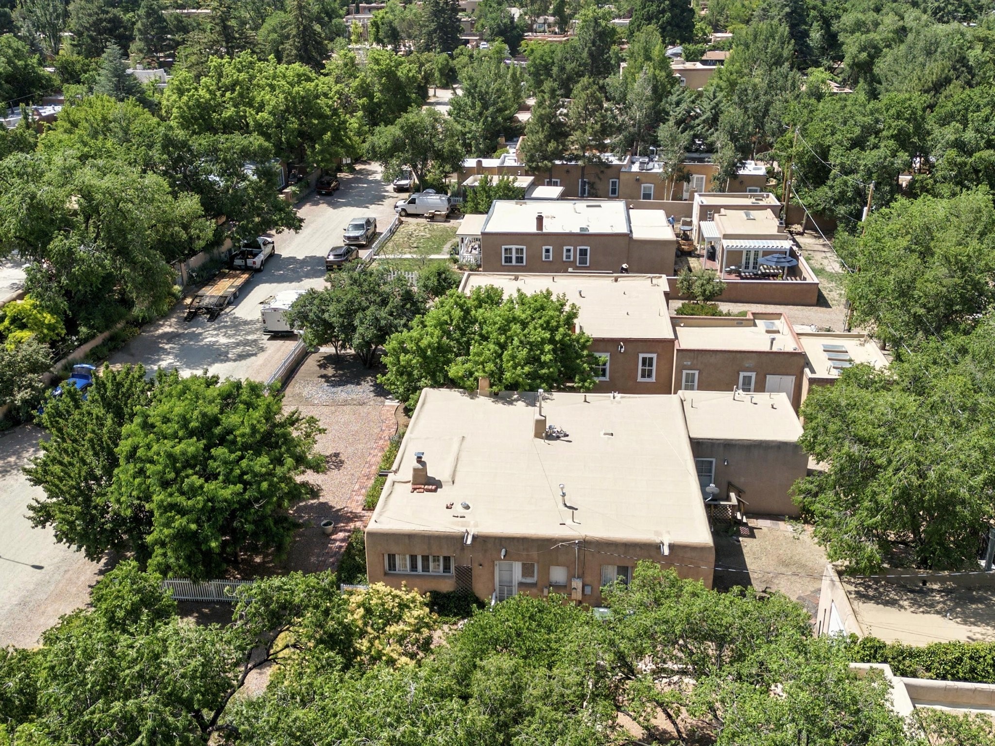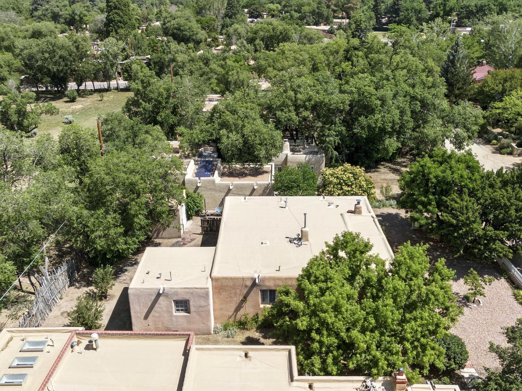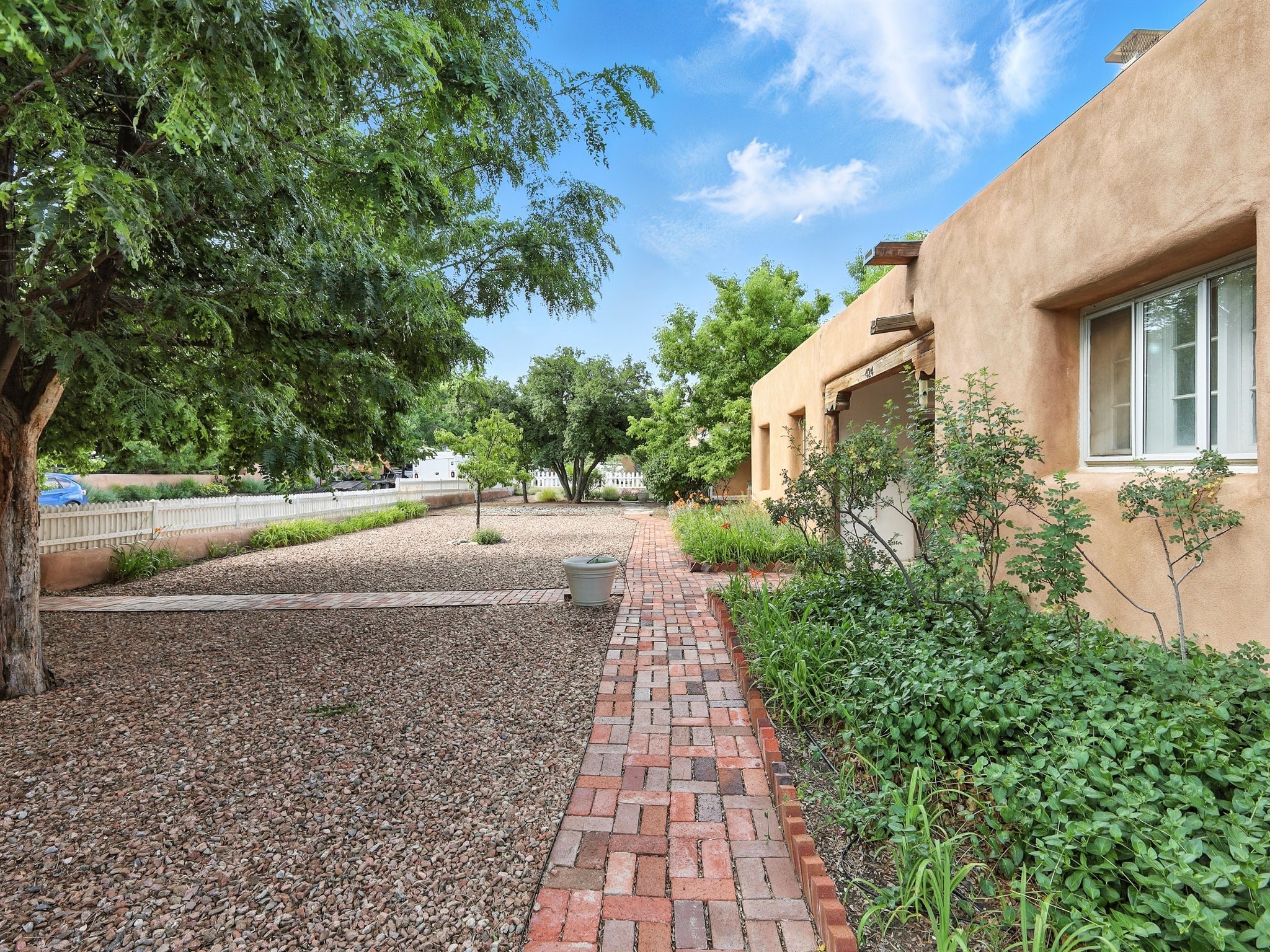 Step back in time and experience the charm and grace of authentic Santa Fe living at 424 San Antonio Street, nestled in the heart of the coveted Camino del Monte Sol Historic District. This enchanting Pueblo Revival-style adobe home, built in the 1920s, offers a rare opportunity to own a true piece of Santa Fe's architectural and cultural heritage.Set on a spacious 0.13-acre lot, the home features three generously sized bedrooms and two full bathrooms, with bright, cheerful interiors that reflect the warmth and soul of its historic roots. Thick adobe walls, timeless design elements, and large, light-filled rooms speak to a bygone era while offering comfortable living for today.The lush, mature landscaping frames both front and back yards, offering peaceful patios and tranquil outdoor living spaces. A detached garage provides excellent flexibility, ideal as a studio, workshop, or additional storage.Located just blocks from Canyon Road and a scenic 20-minute stroll to the Santa Fe Plaza along the historic Acequia Madre, this home is perfectly situated to enjoy the very best of Santa Fe's galleries, dining, and culture.Don't miss your chance to own this rare and remarkable historic residence in one of Santa Fe's most iconic neighborhoods. Schedule your private showing today.