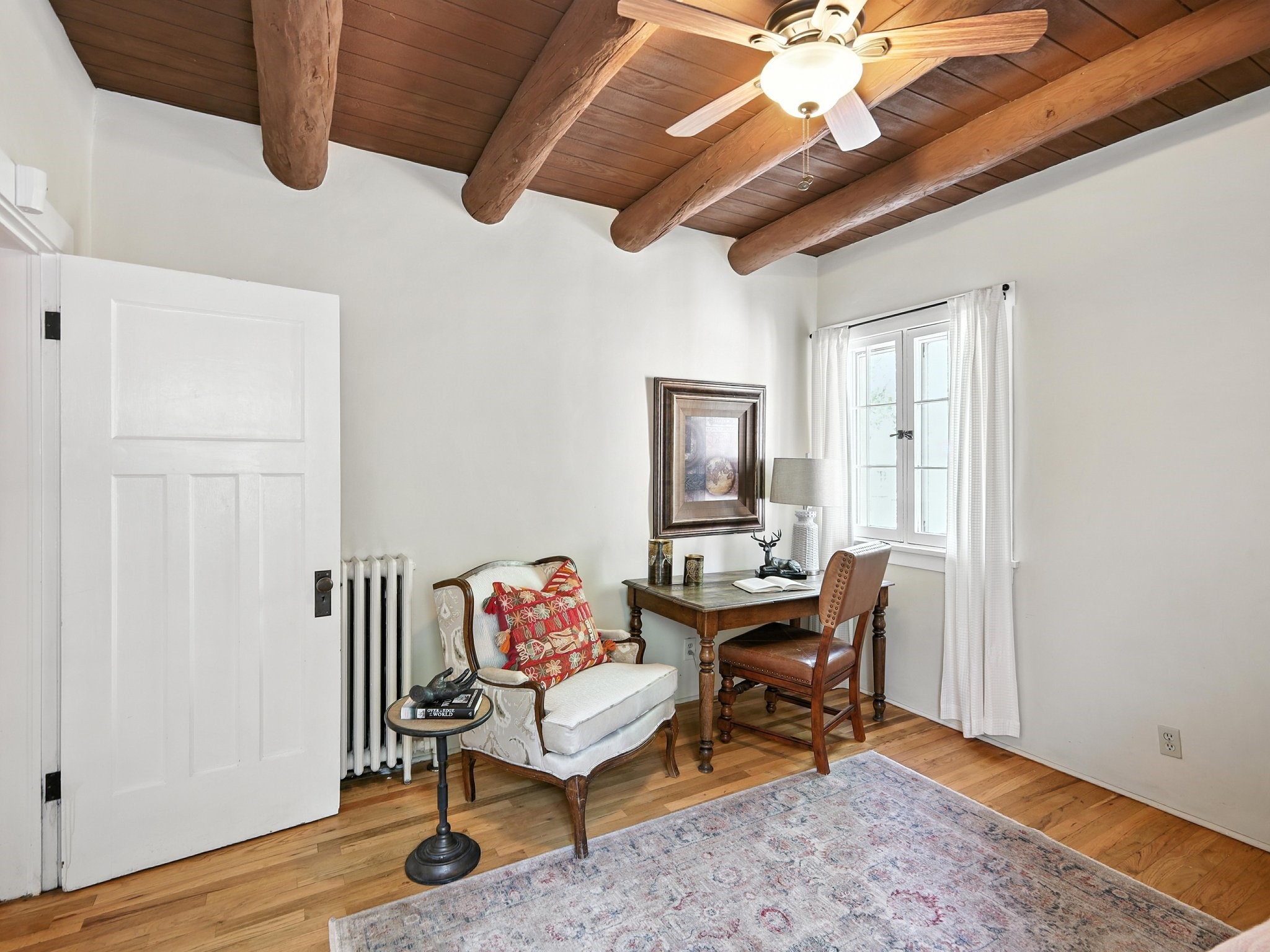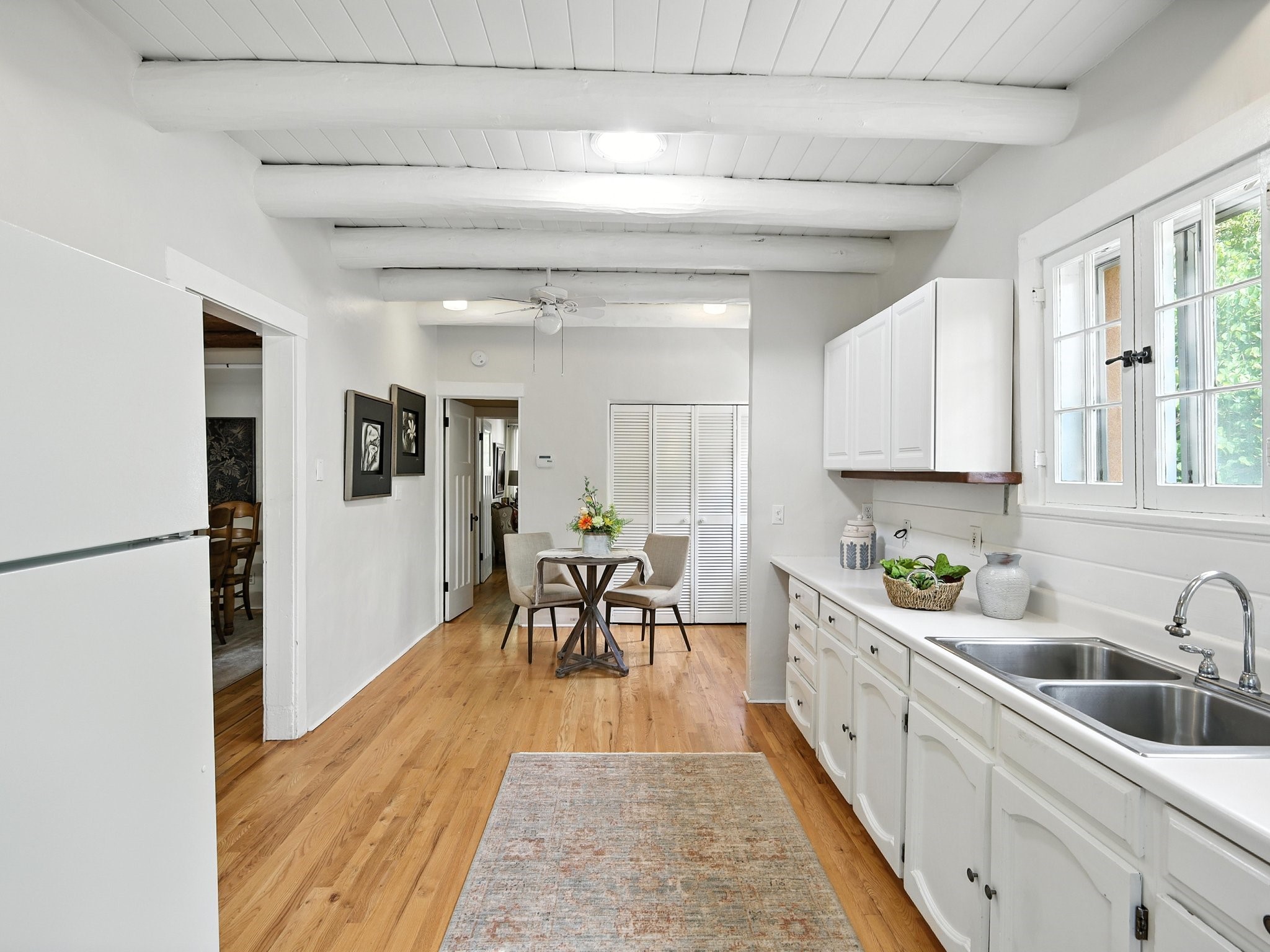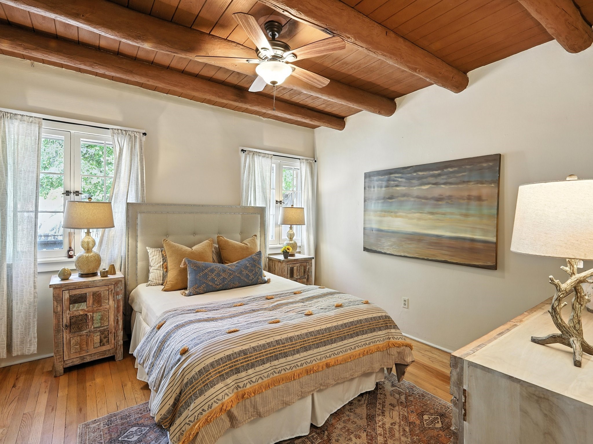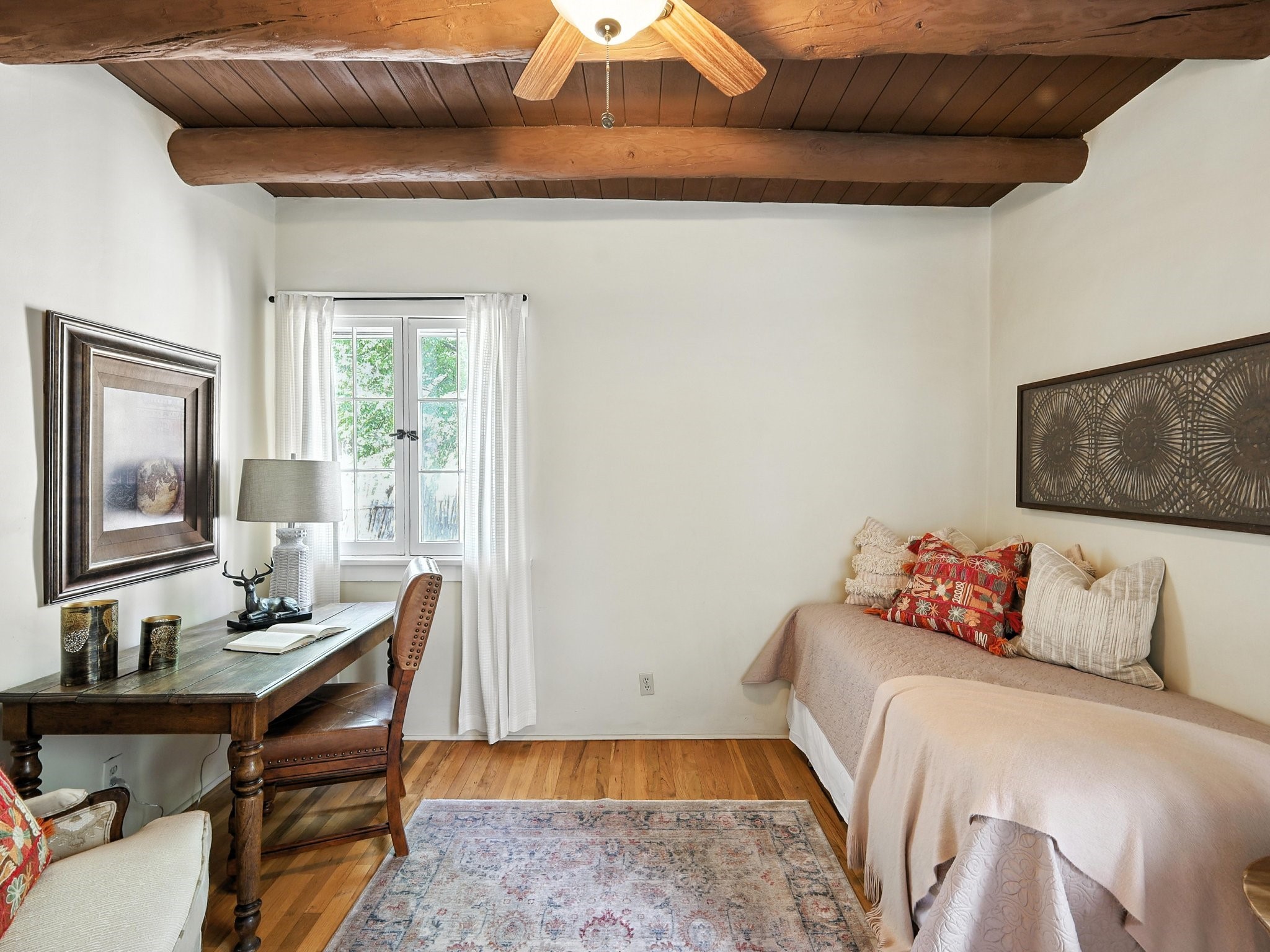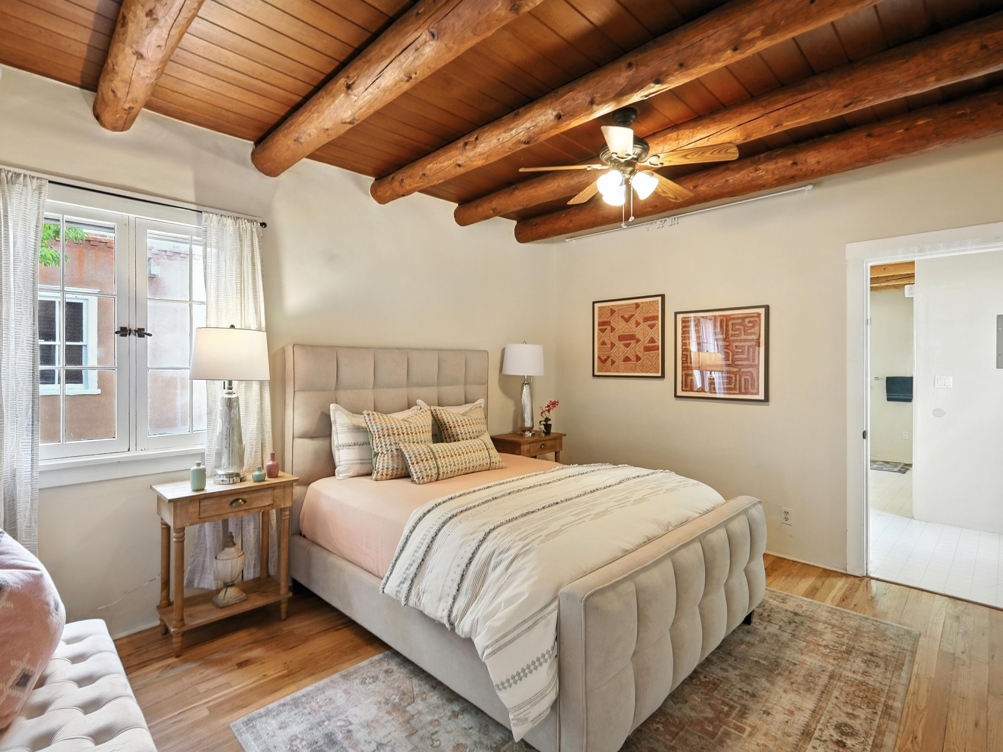 Step back in time and experience the charm and grace of authentic Santa Fe living at 424 San Antonio Street, nestled in the heart of the coveted Camino del Monte Sol Historic District. This enchanting Pueblo Revival-style adobe home, built in the 1920s, offers a rare opportunity to own a true piece of Santa Fe's architectural and cultural heritage.Set on a spacious 0.13-acre lot, the home features three generously sized bedrooms and two full bathrooms, with bright, cheerful interiors that reflect the warmth and soul of its historic roots. Thick adobe walls, timeless design elements, and large, light-filled rooms speak to a bygone era while offering comfortable living for today.The lush, mature landscaping frames both front and back yards, offering peaceful patios and tranquil outdoor living spaces. A detached garage provides excellent flexibility, ideal as a studio, workshop, or additional storage.Located just blocks from Canyon Road and a scenic 20-minute stroll to the Santa Fe Plaza along the historic Acequia Madre, this home is perfectly situated to enjoy the very best of Santa Fe's galleries, dining, and culture.Don't miss your chance to own this rare and remarkable historic residence in one of Santa Fe's most iconic neighborhoods. Schedule your private showing today.