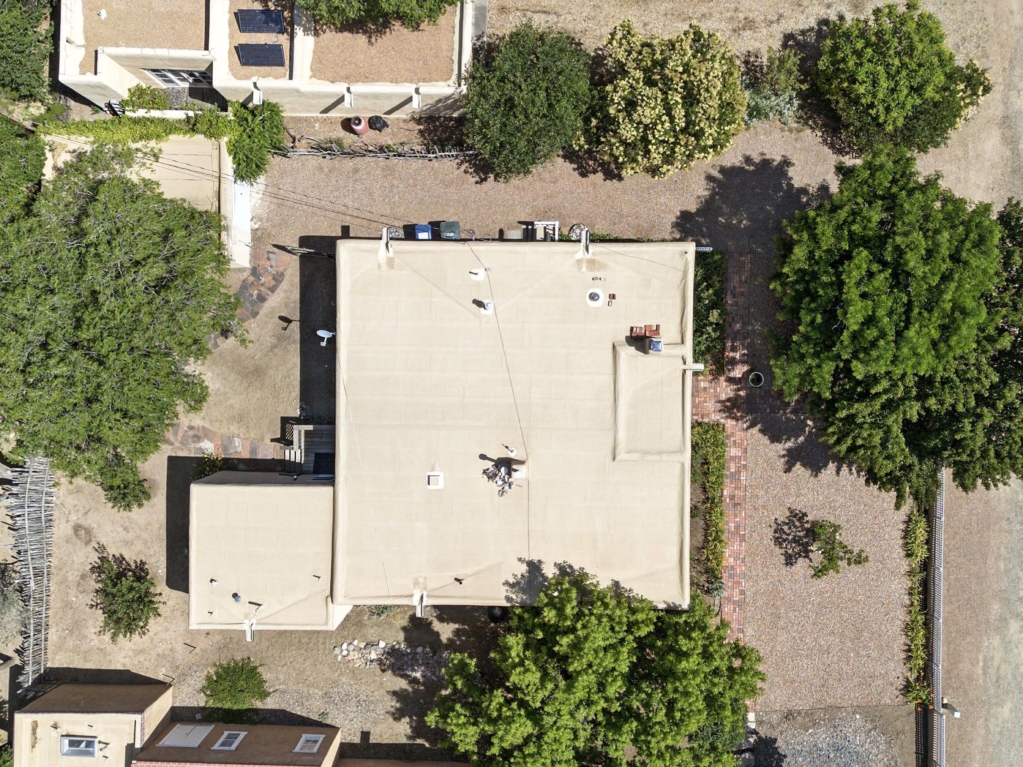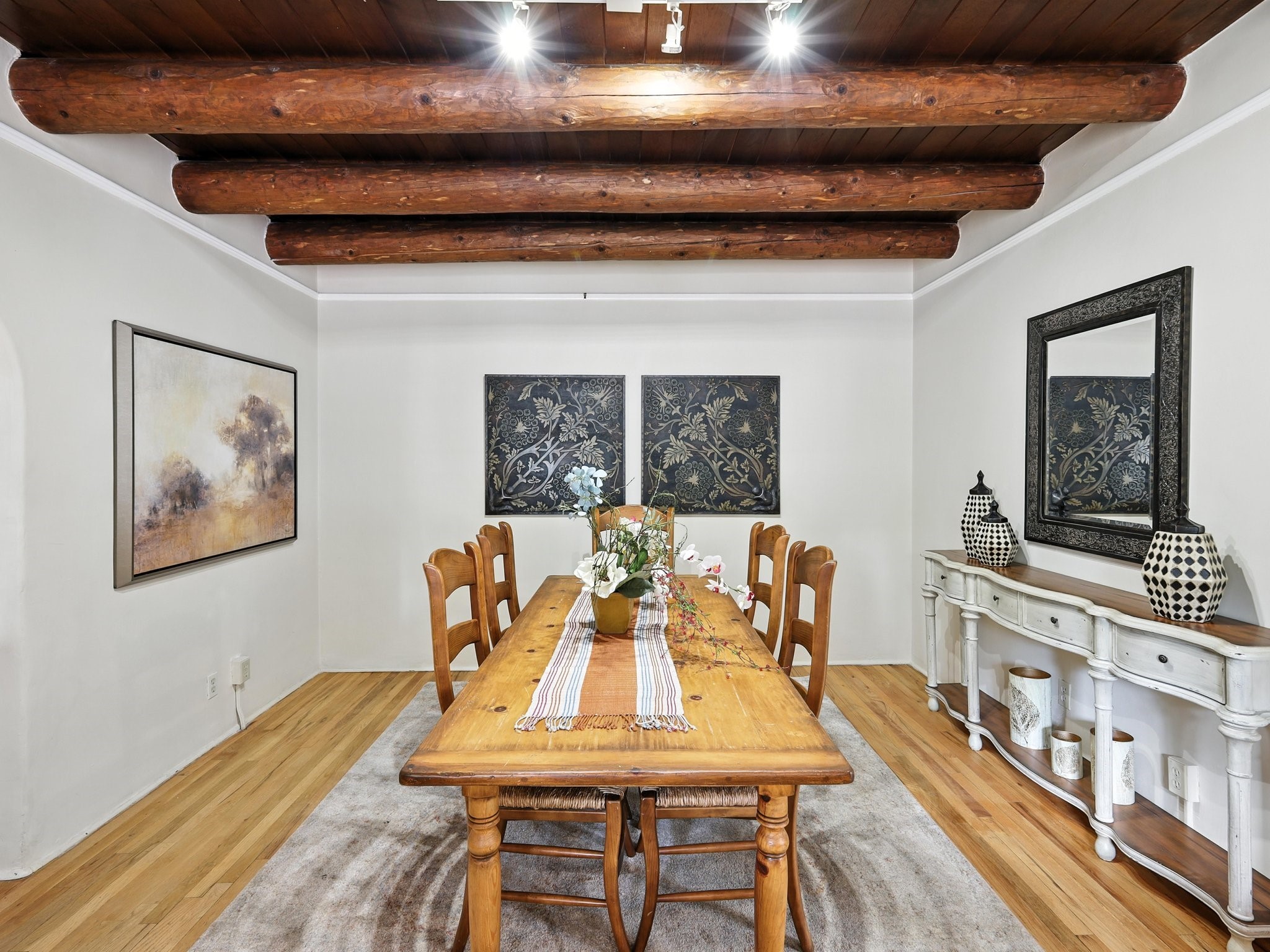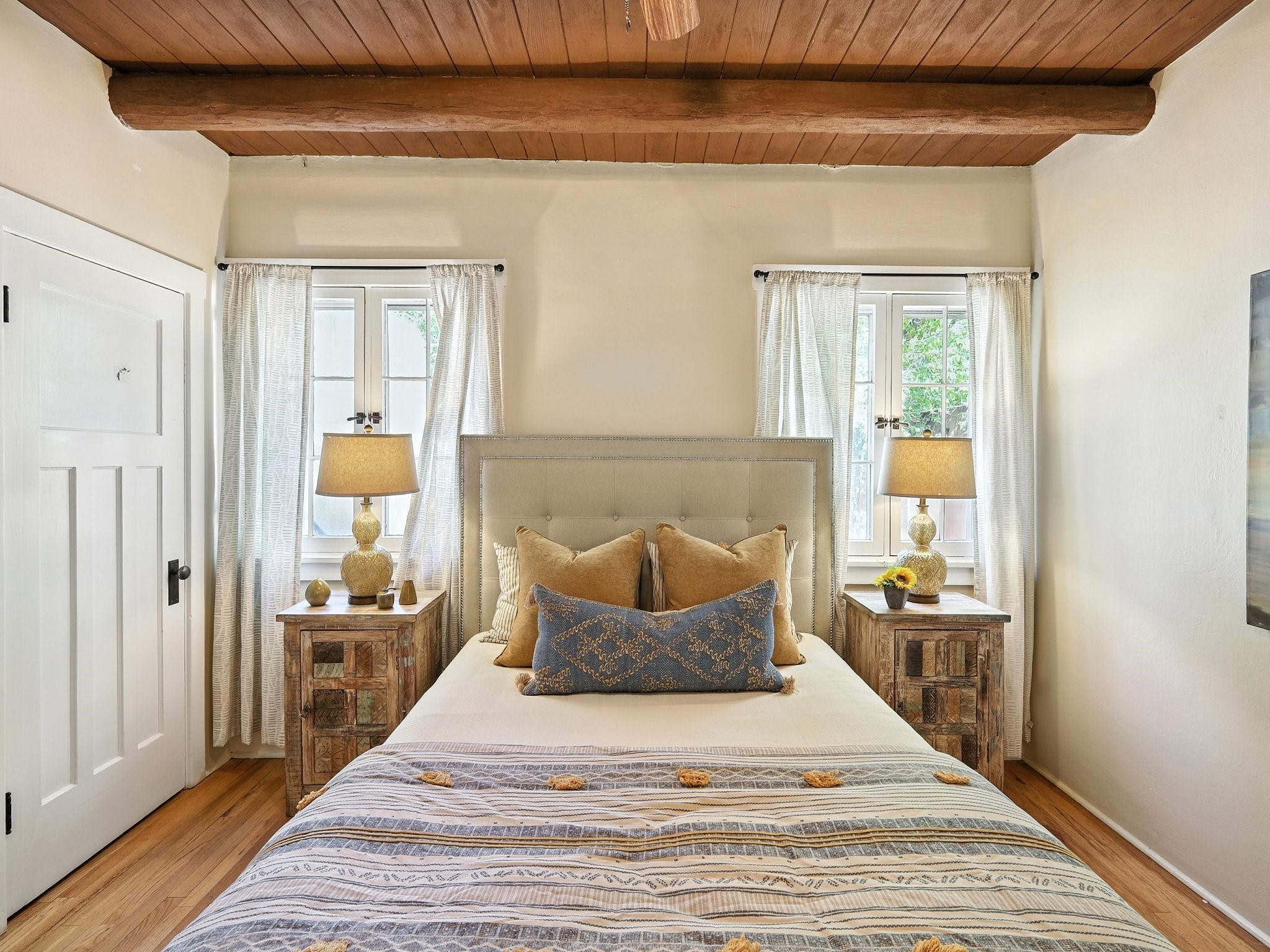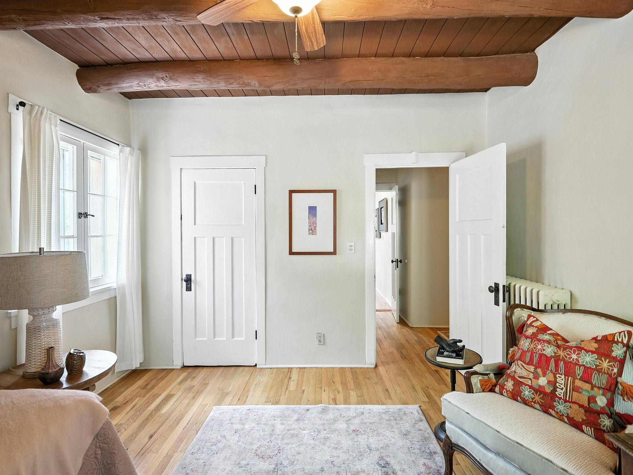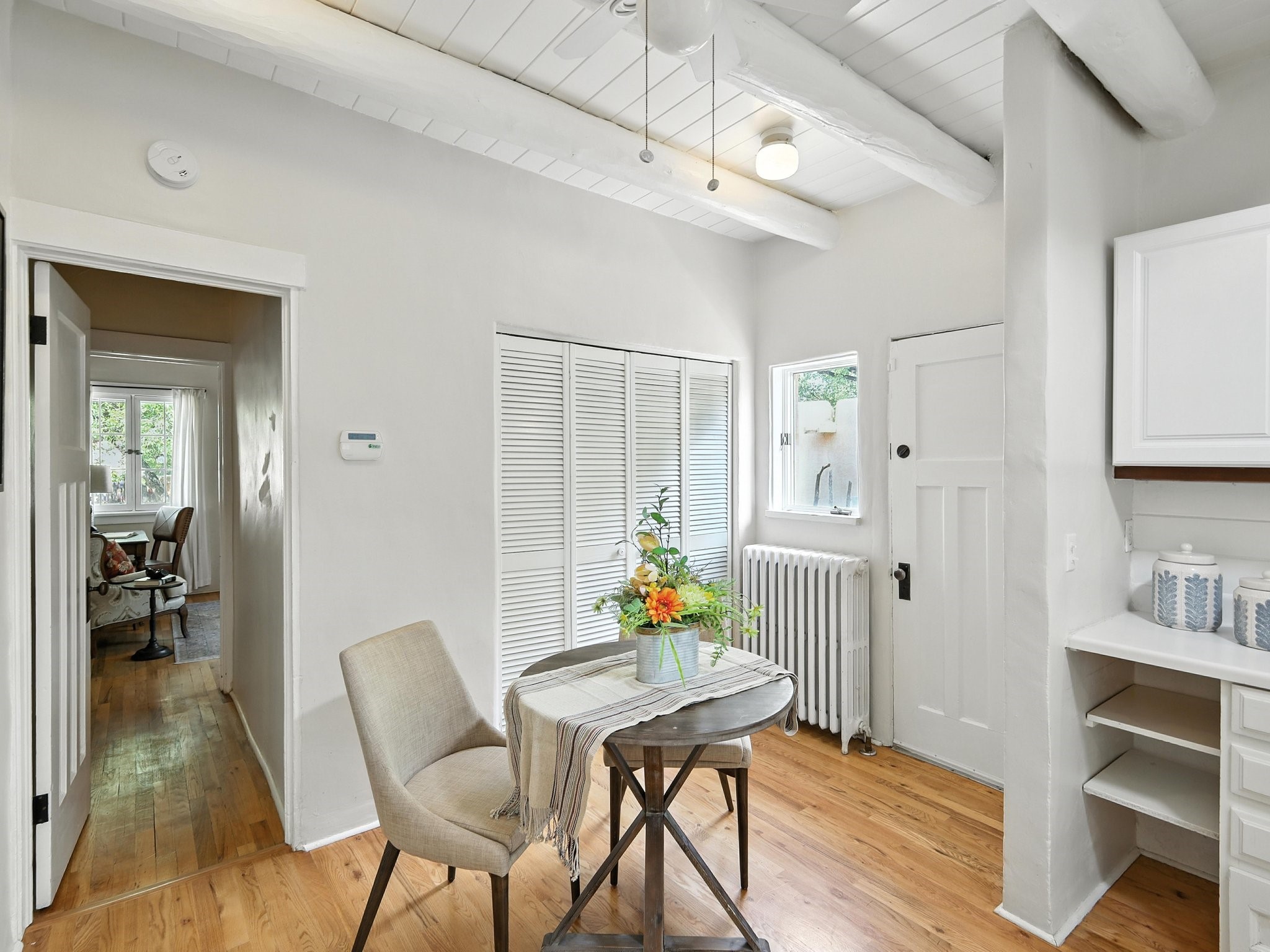 Step back in time and experience the charm and grace of authentic Santa Fe living at 424 San Antonio Street, nestled in the heart of the coveted Camino del Monte Sol Historic District. This enchanting Pueblo Revival-style adobe home, built in the 1920s, offers a rare opportunity to own a true piece of Santa Fe's architectural and cultural heritage.Set on a spacious 0.13-acre lot, the home features three generously sized bedrooms and two full bathrooms, with bright, cheerful interiors that reflect the warmth and soul of its historic roots. Thick adobe walls, timeless design elements, and large, light-filled rooms speak to a bygone era while offering comfortable living for today.The lush, mature landscaping frames both front and back yards, offering peaceful patios and tranquil outdoor living spaces. A detached garage provides excellent flexibility, ideal as a studio, workshop, or additional storage.Located just blocks from Canyon Road and a scenic 20-minute stroll to the Santa Fe Plaza along the historic Acequia Madre, this home is perfectly situated to enjoy the very best of Santa Fe's galleries, dining, and culture.Don't miss your chance to own this rare and remarkable historic residence in one of Santa Fe's most iconic neighborhoods. Schedule your private showing today.