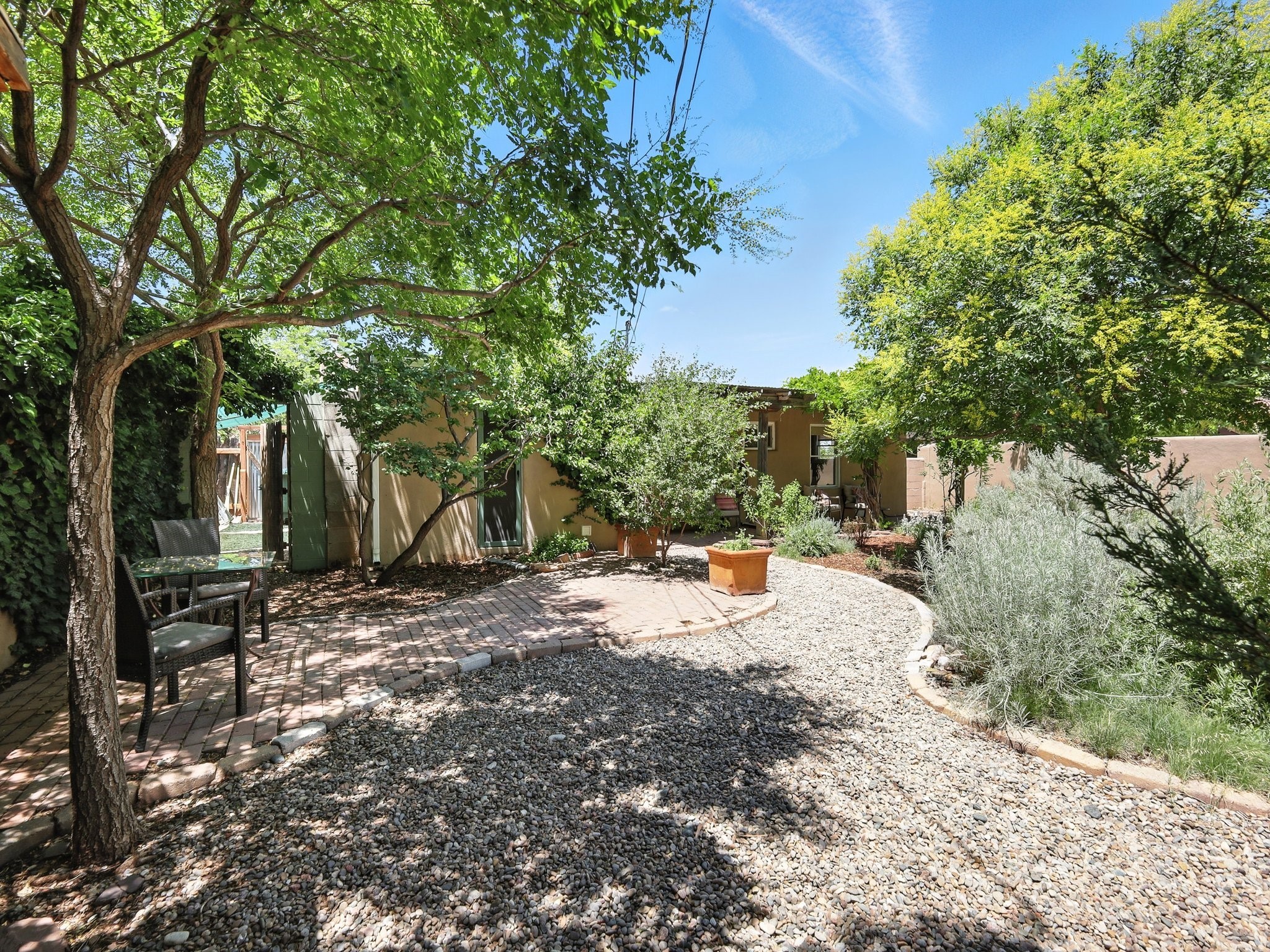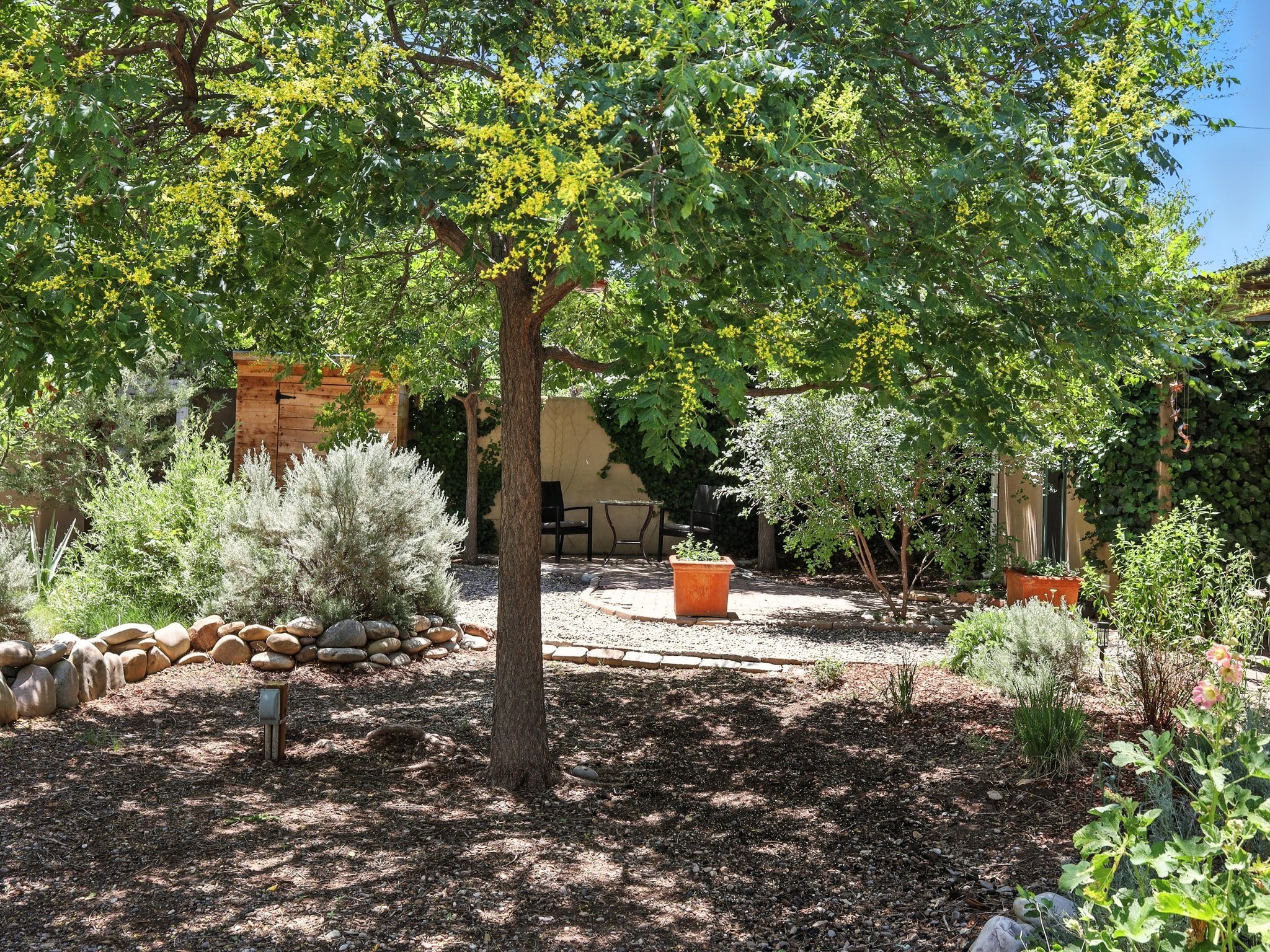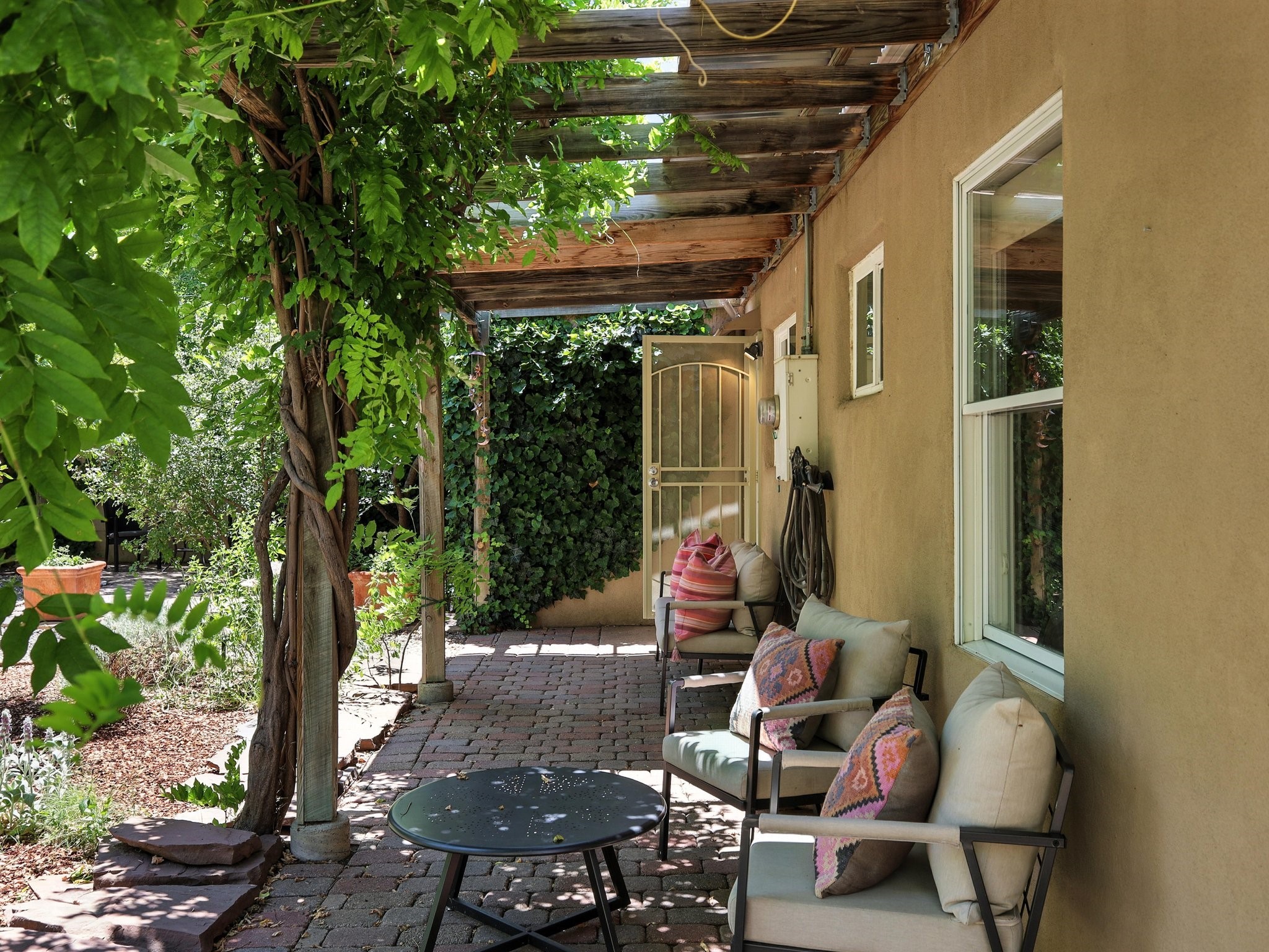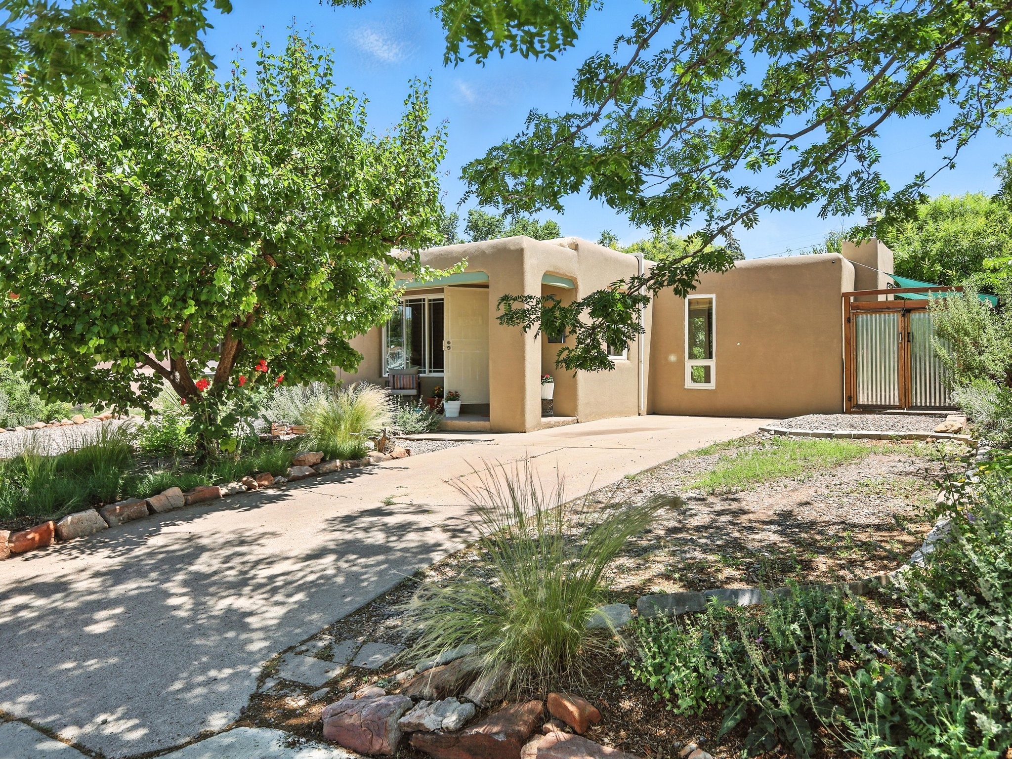 Welcome to your Urban Oasis! Beautiful and welcoming two bedroom, two bath 'Stamm-like' home with an open dining kitchen and living area. Hardwood floors throughout. Owners installed Mitsubishi Mini-Splits, a Regency Pellet Stove, Navien Tankless Water Heater and a Silicone Membrane roof (with a transferable warranty). Step out of the kitchen to a Wisteria covered pergola into a private, walled, treed, perennial, bee and butterfly filled backyard. The backyard also sports a 10x12 Studio with high speed cable internet, electricity and skylight. This home has been lovingly cared for and skillfully improved. Close to shopping and restaurants. Pre-Inspected, report available. Must see!Neither Listing Brokers nor Seller warrants the square footage of the home or lot. If the size of the home or lot is of material consideration to the Buyer, then the Buyer should have them measured. Tax Levy is from the Assessor.