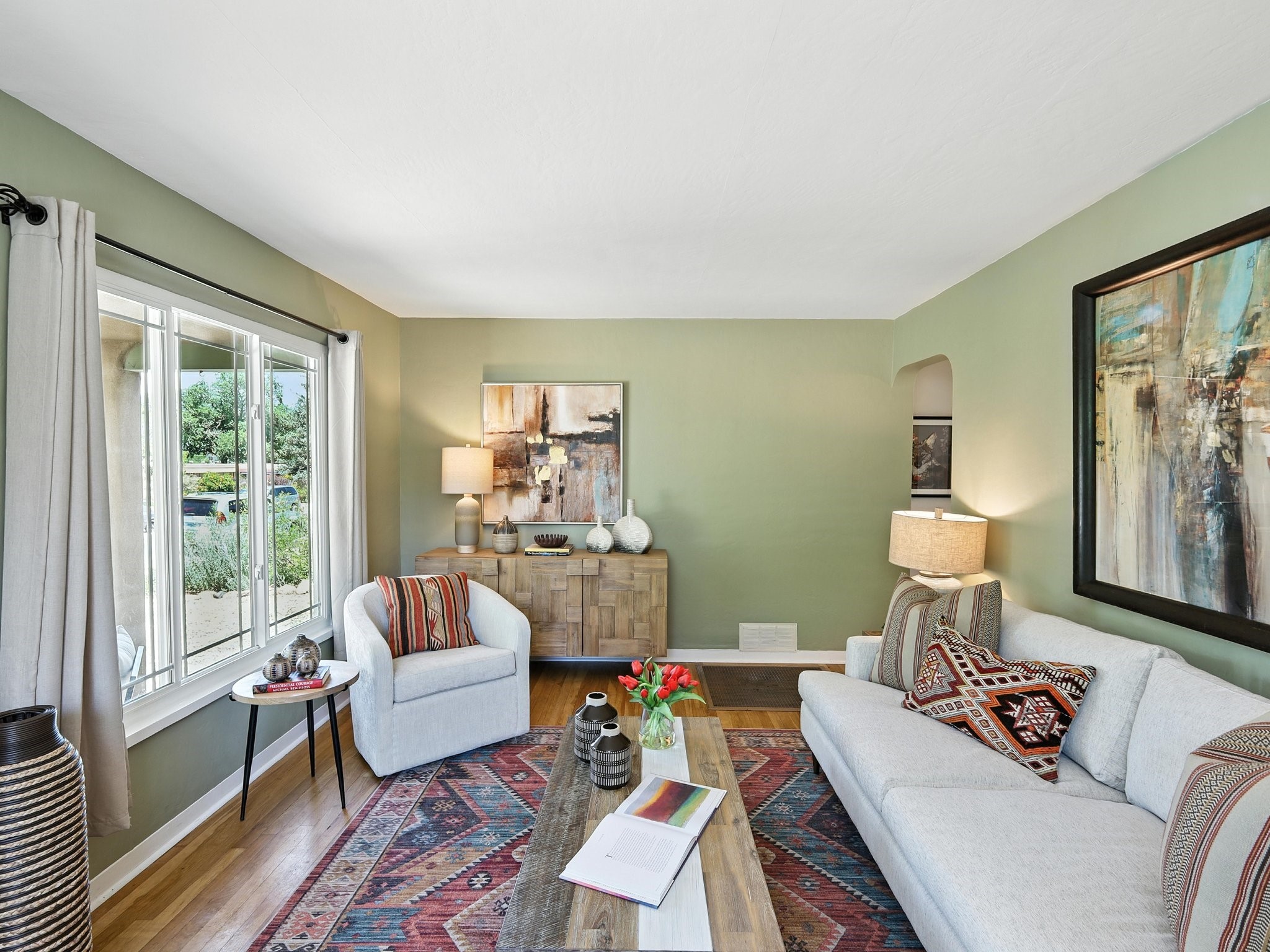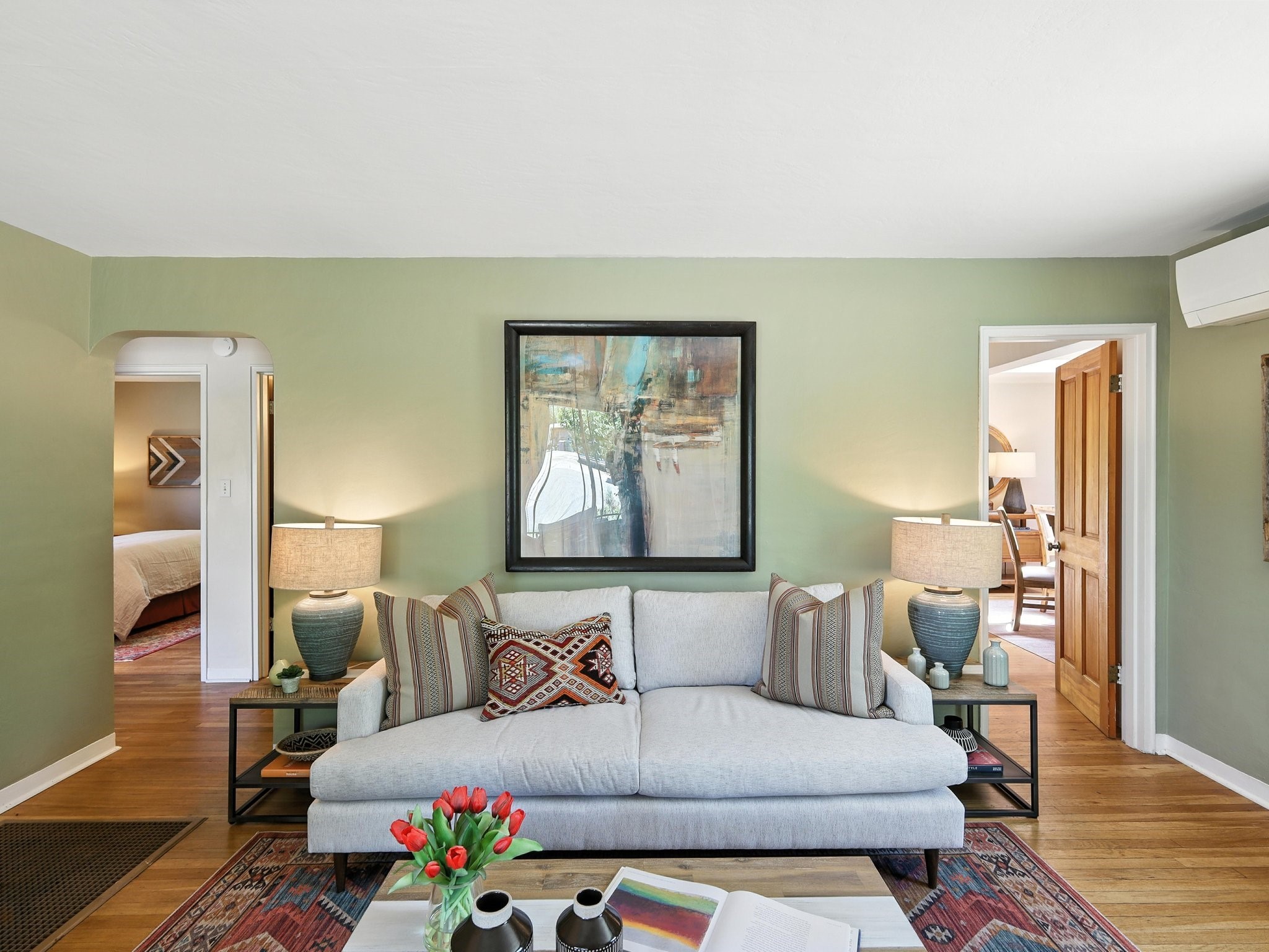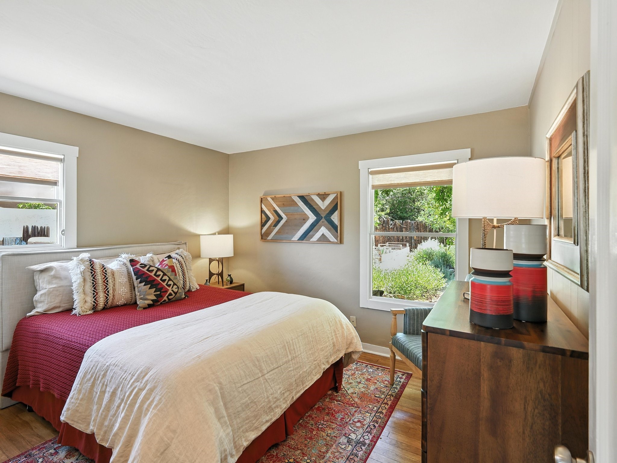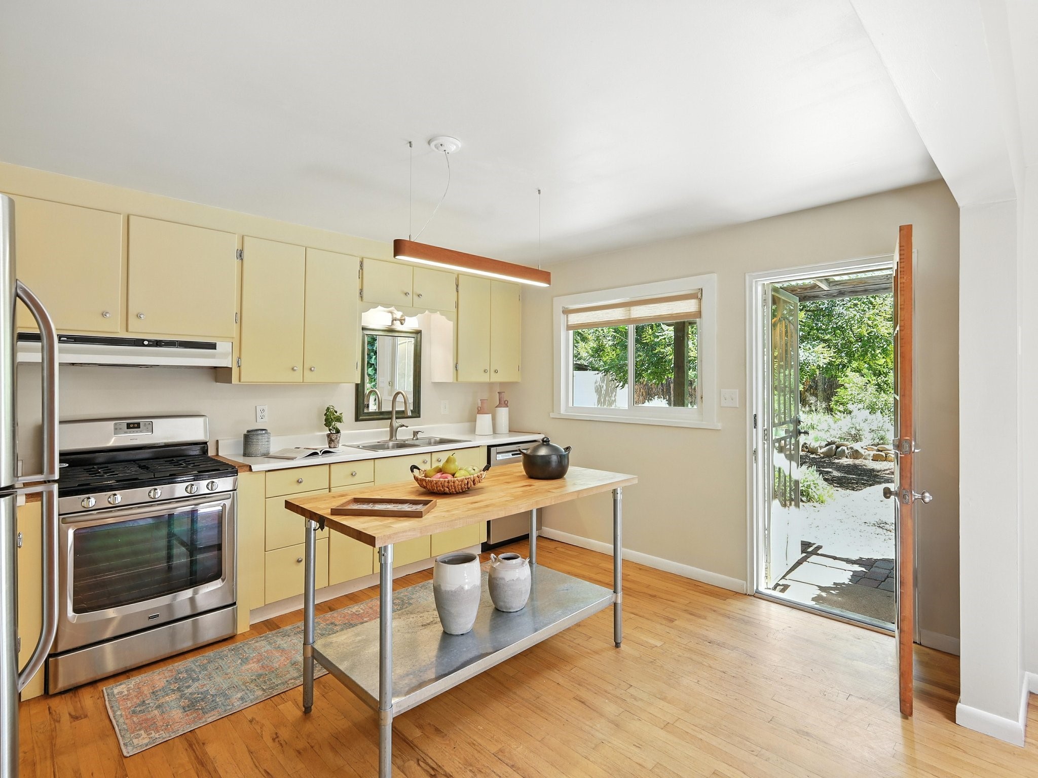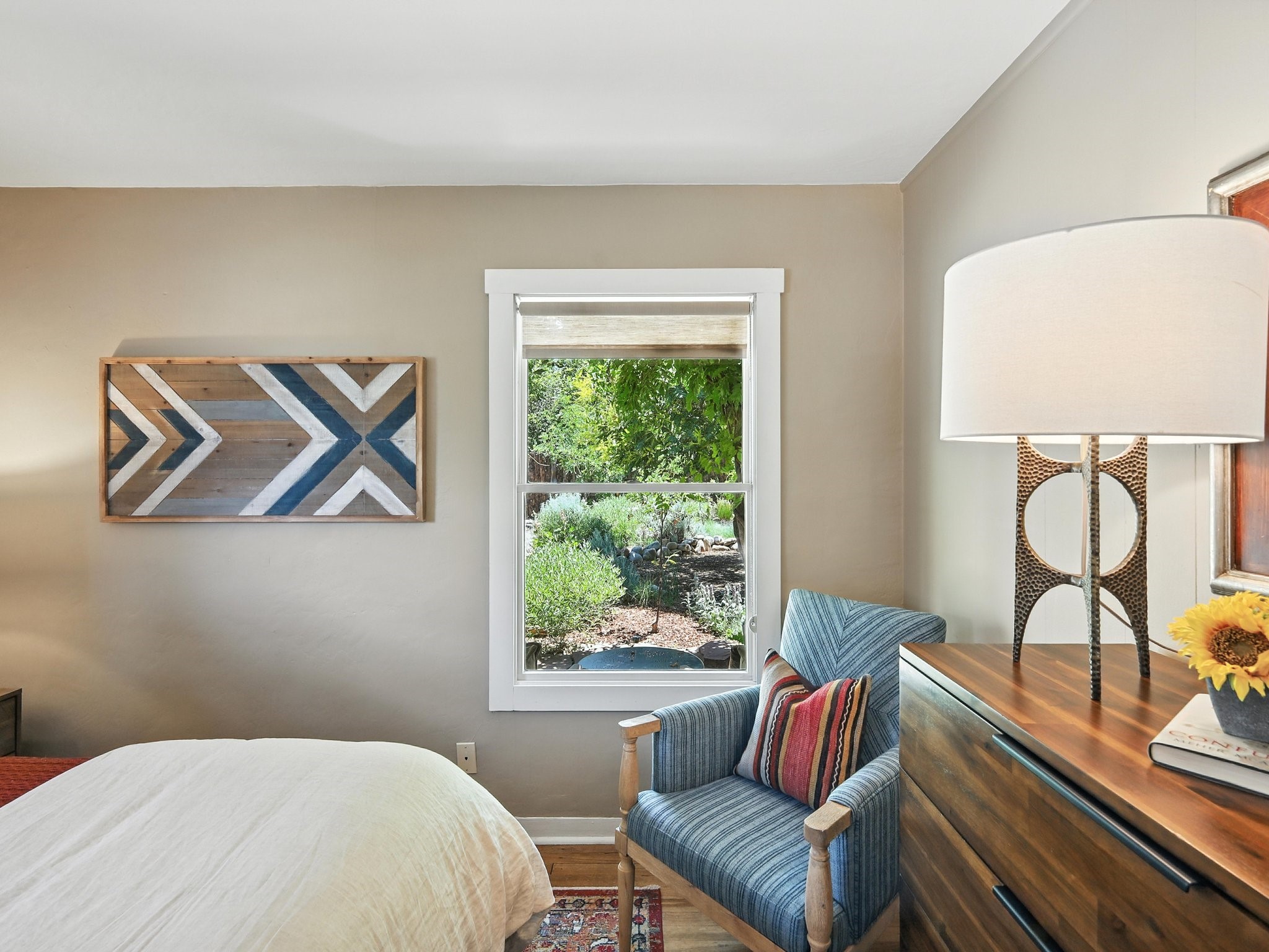 Welcome to your Urban Oasis! Beautiful and welcoming two bedroom, two bath 'Stamm-like' home with an open dining kitchen and living area. Hardwood floors throughout. Owners installed Mitsubishi Mini-Splits, a Regency Pellet Stove, Navien Tankless Water Heater and a Silicone Membrane roof (with a transferable warranty). Step out of the kitchen to a Wisteria covered pergola into a private, walled, treed, perennial, bee and butterfly filled backyard. The backyard also sports a 10x12 Studio with high speed cable internet, electricity and skylight. This home has been lovingly cared for and skillfully improved. Close to shopping and restaurants. Pre-Inspected, report available. Must see!Neither Listing Brokers nor Seller warrants the square footage of the home or lot. If the size of the home or lot is of material consideration to the Buyer, then the Buyer should have them measured. Tax Levy is from the Assessor.