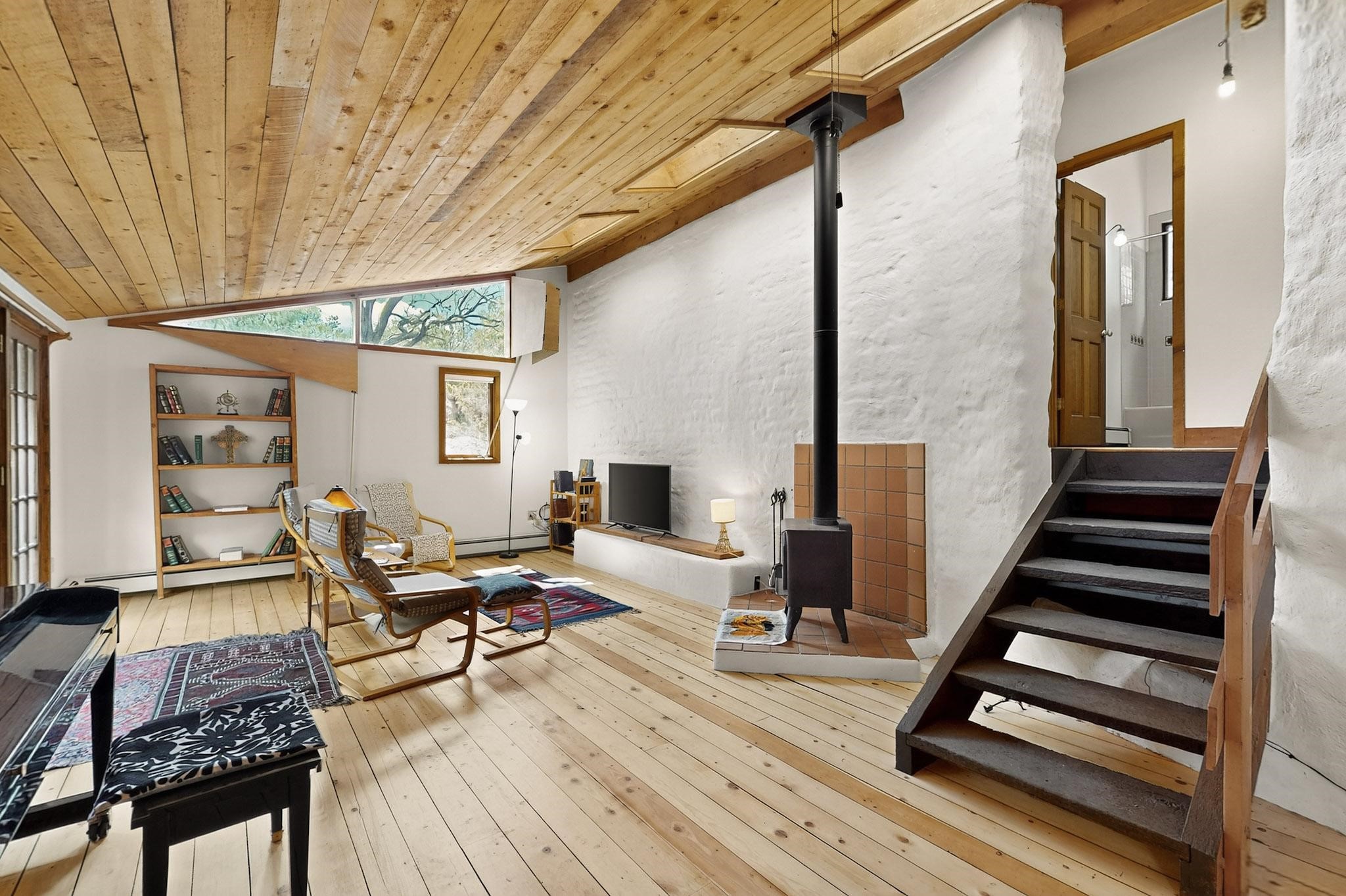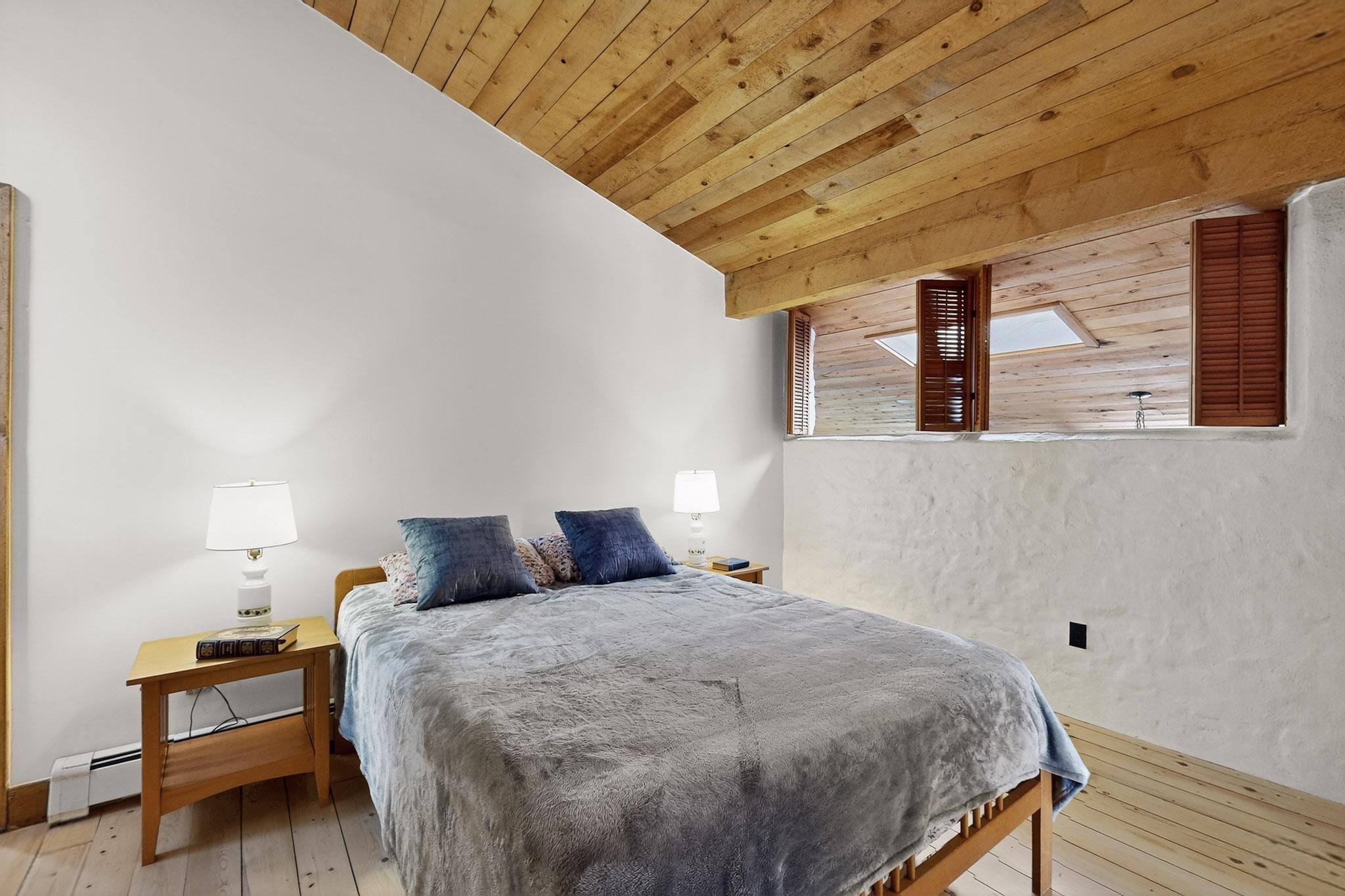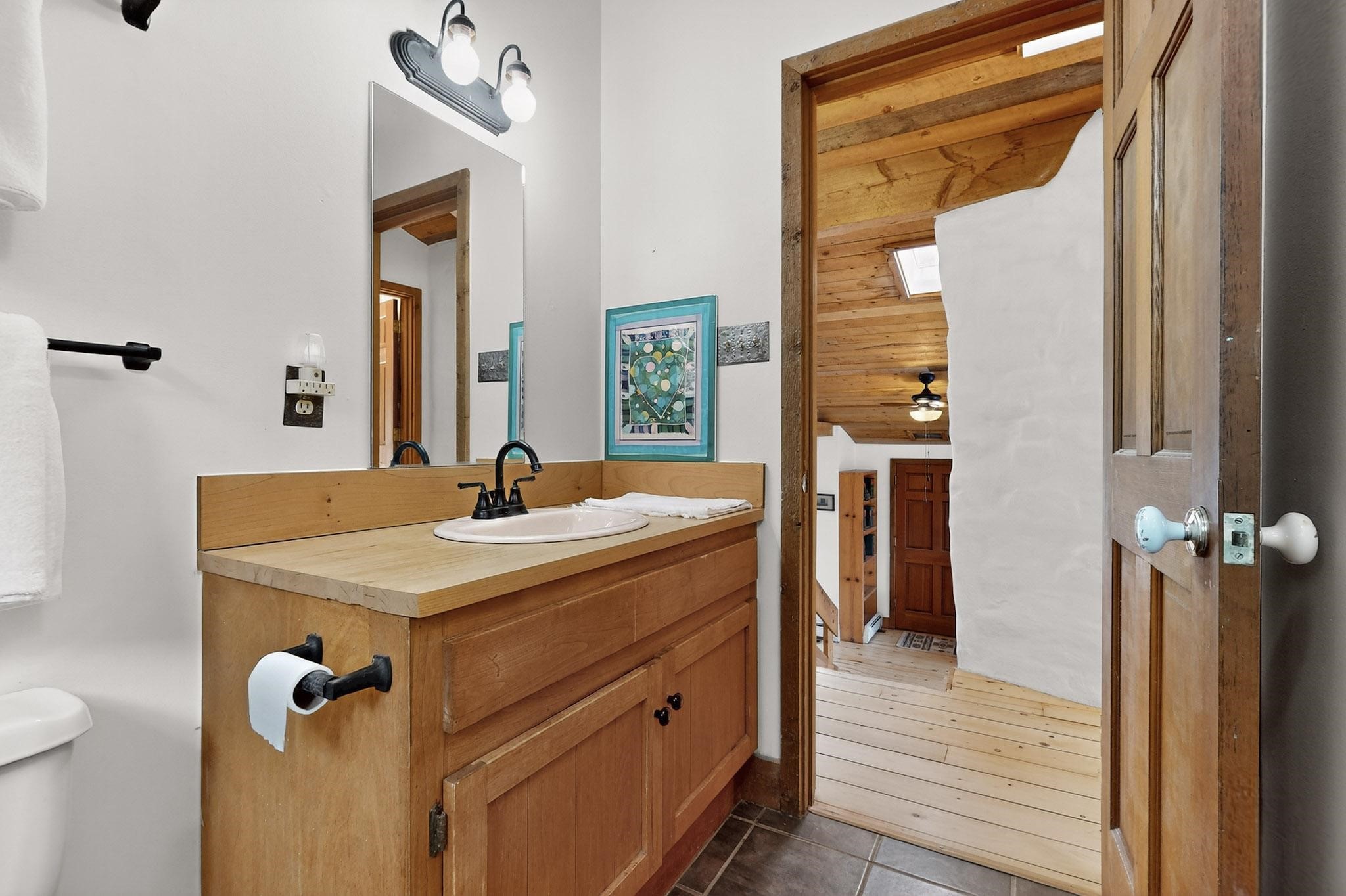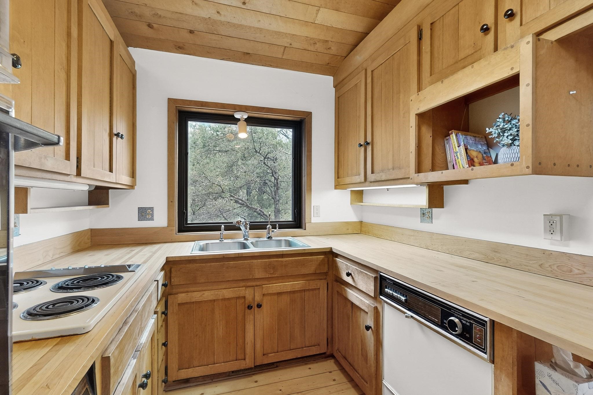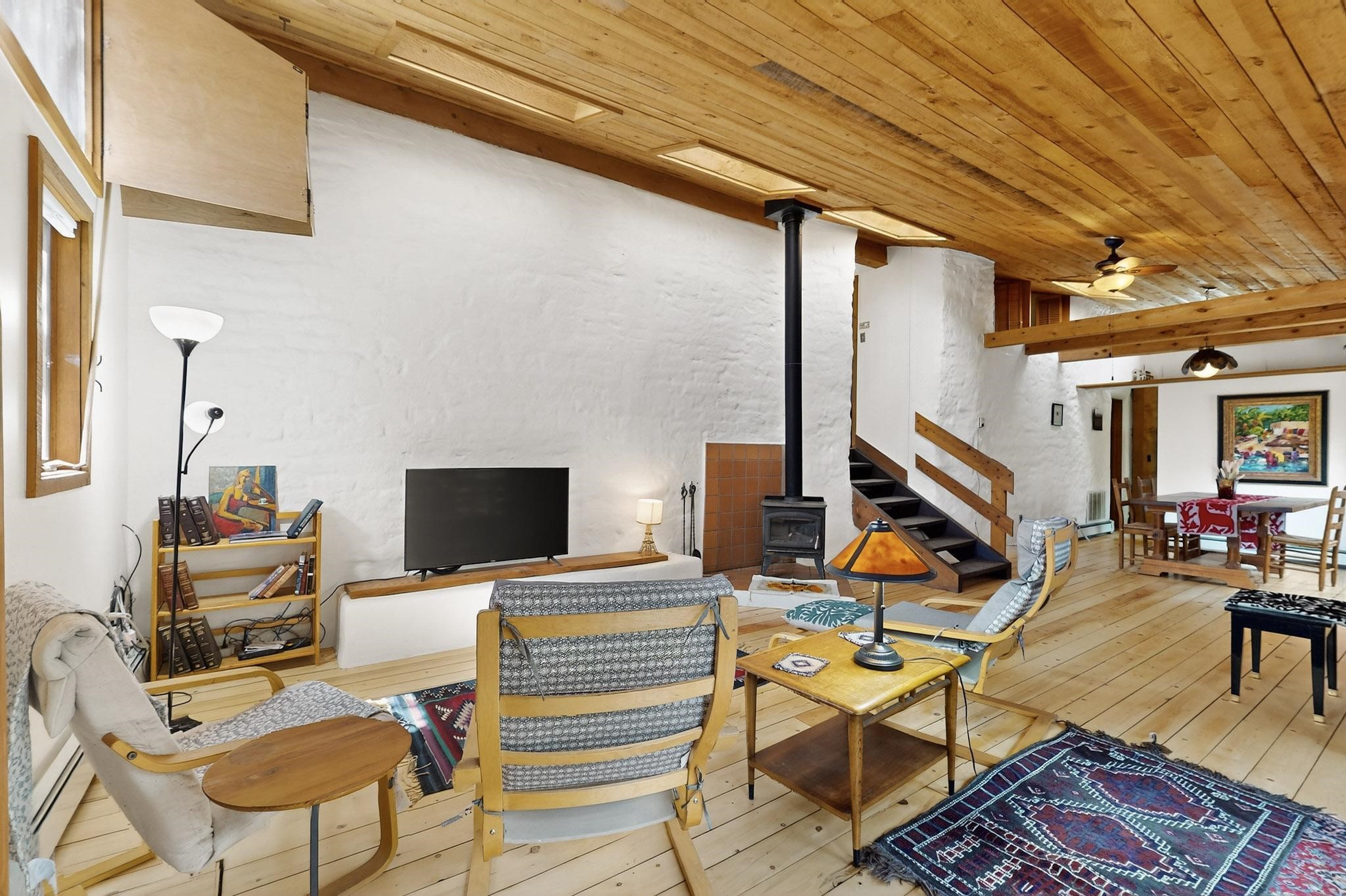 This architect designed 2 bedroom 2 bath mountain residence in Hyde Park Estates sits well within a treed hillside landscape on a 1.021 acre lot. With interior exposed adobe walls for solar energy efficiency, wide plank floors and a set of expansive outside decks, it delivers seclusion and convenience of a get-away for hiking, biking and skiing. It is only 3 miles from the Santa Fe Plaza, walking distance from Ten Thousand Waves and a short drive to Ski Santa Fe.