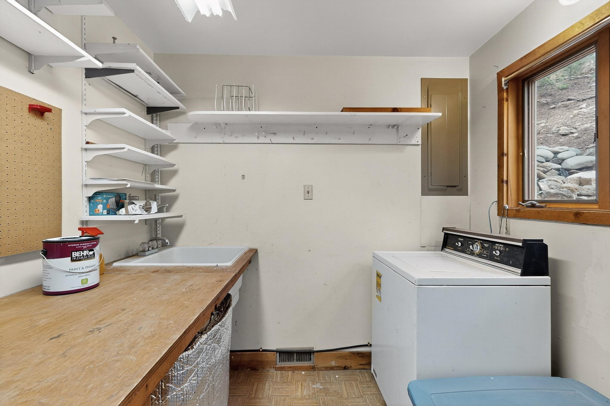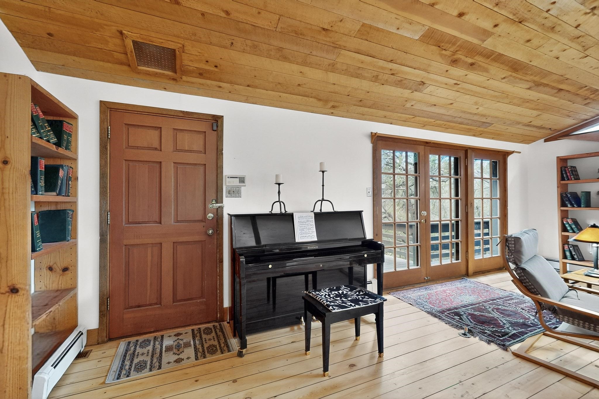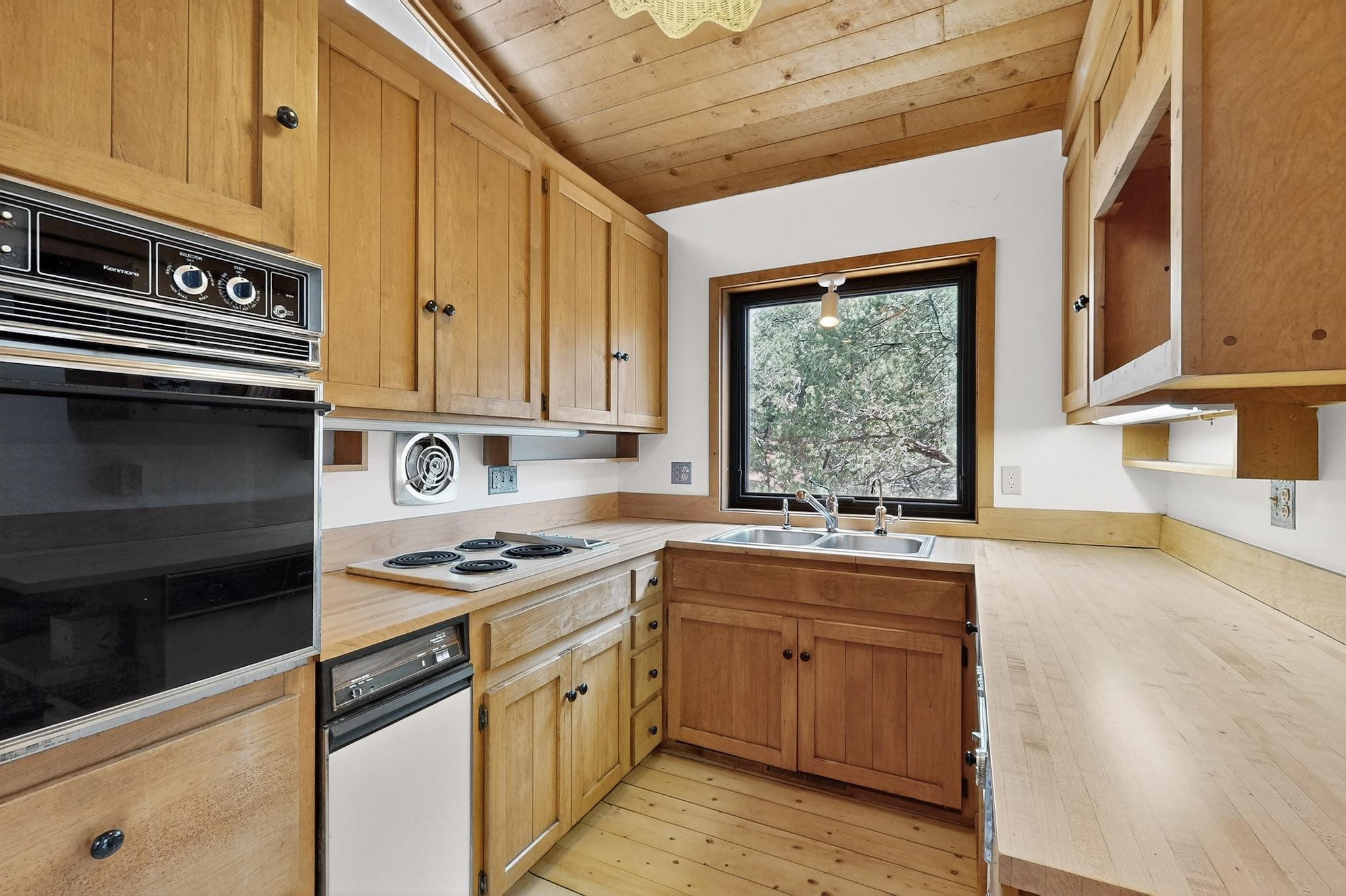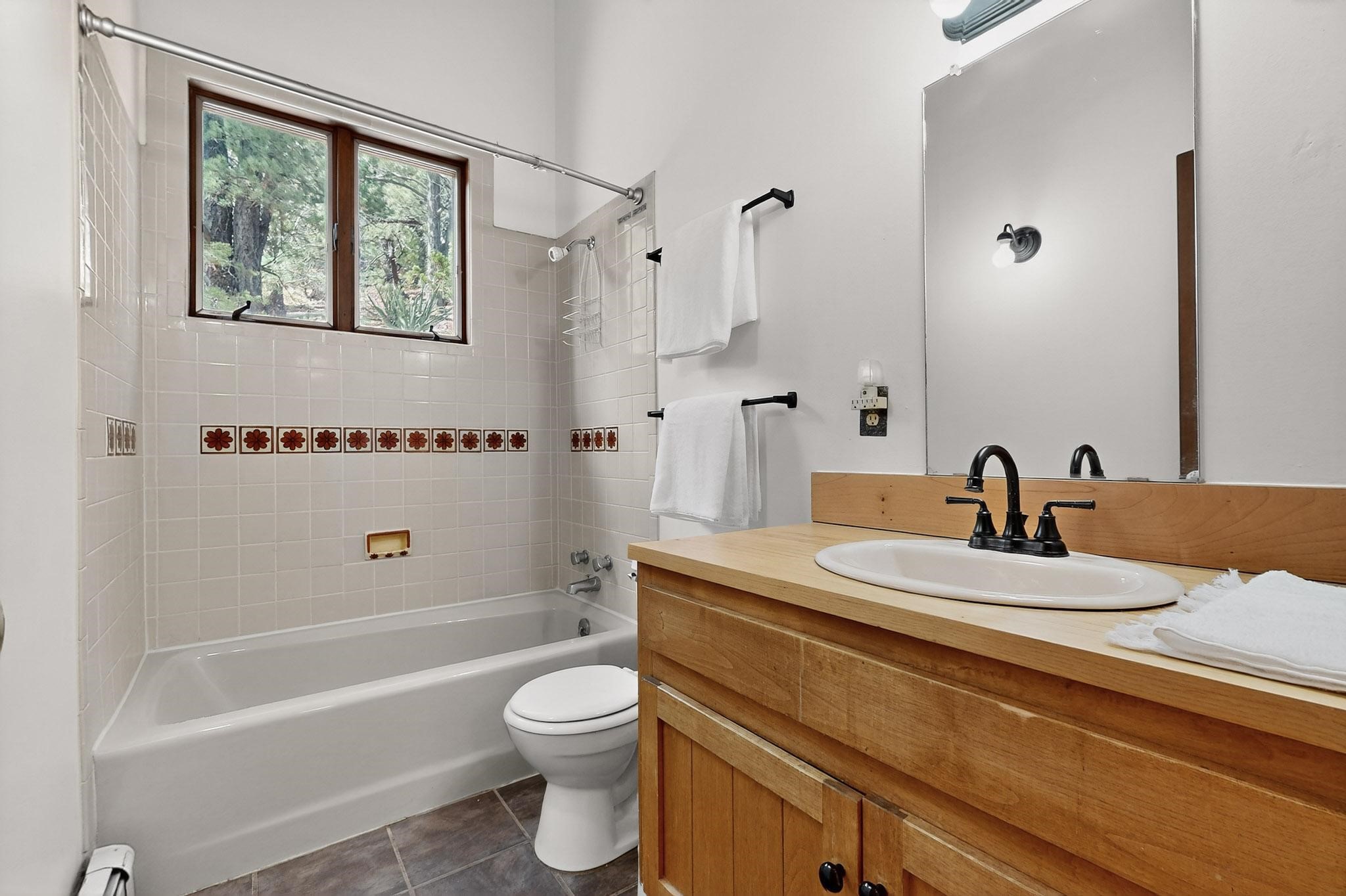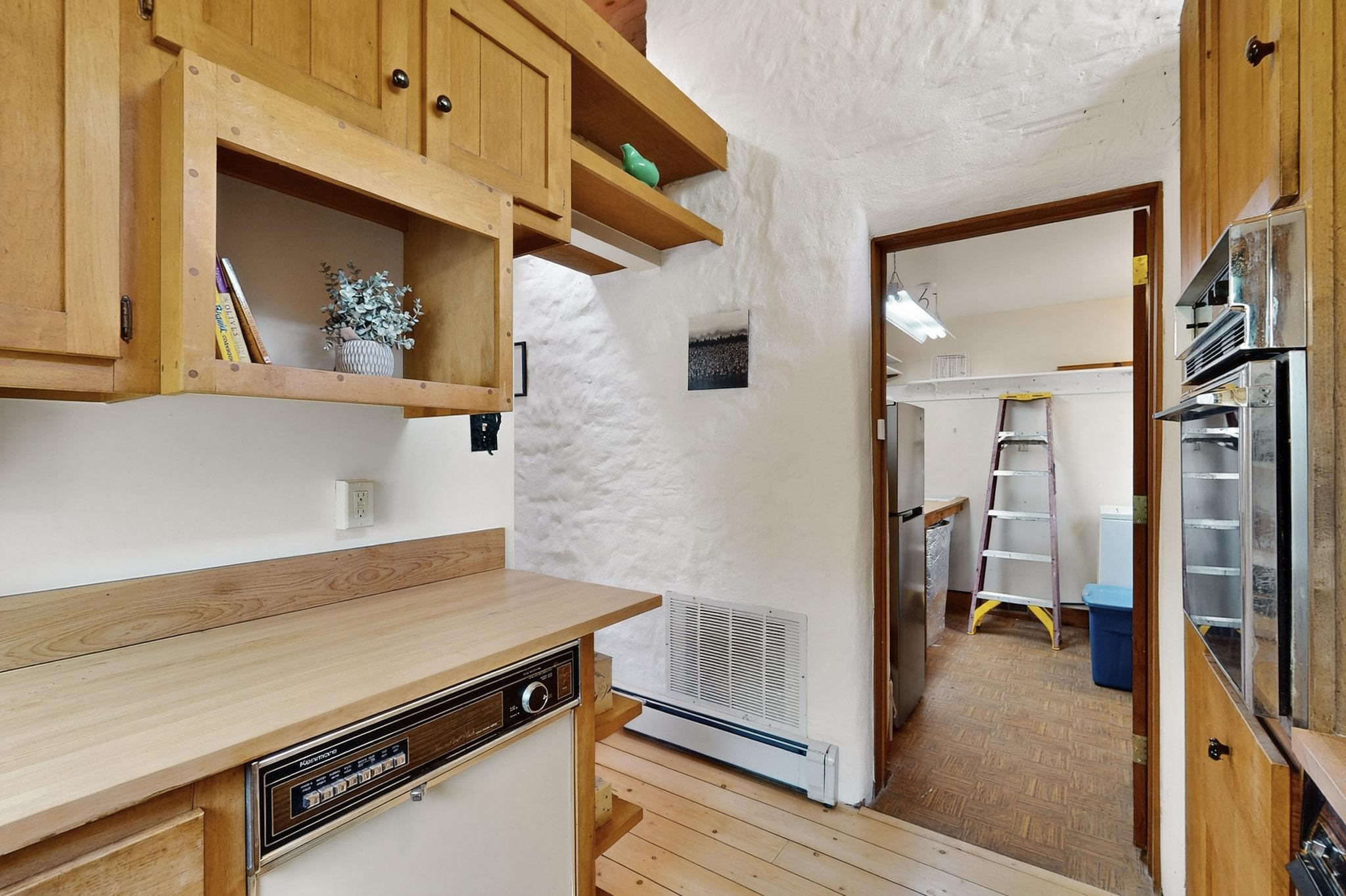 This architect designed 2 bedroom 2 bath mountain residence in Hyde Park Estates sits well within a treed hillside landscape on a 1.021 acre lot. With interior exposed adobe walls for solar energy efficiency, wide plank floors and a set of expansive outside decks, it delivers seclusion and convenience of a get-away for hiking, biking and skiing. It is only 3 miles from the Santa Fe Plaza, walking distance from Ten Thousand Waves and a short drive to Ski Santa Fe.