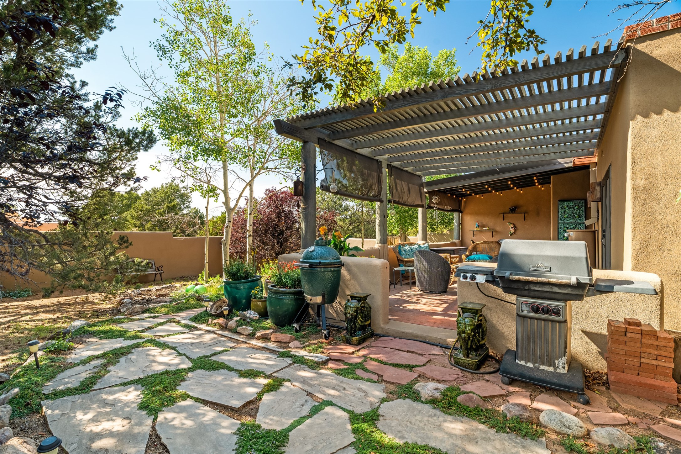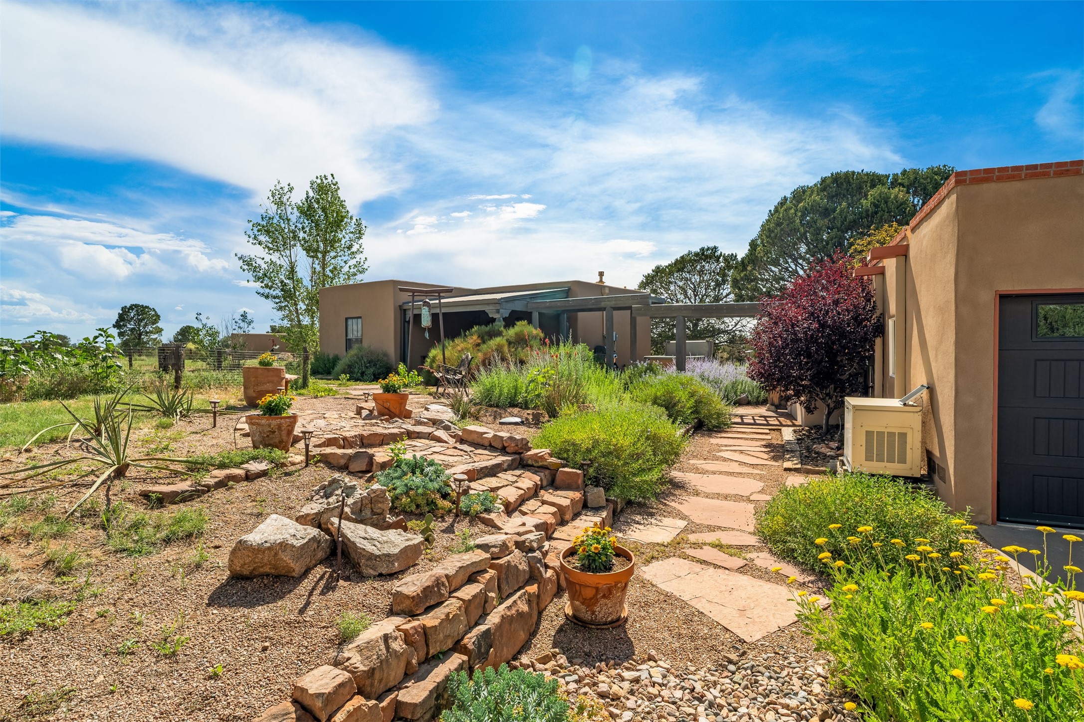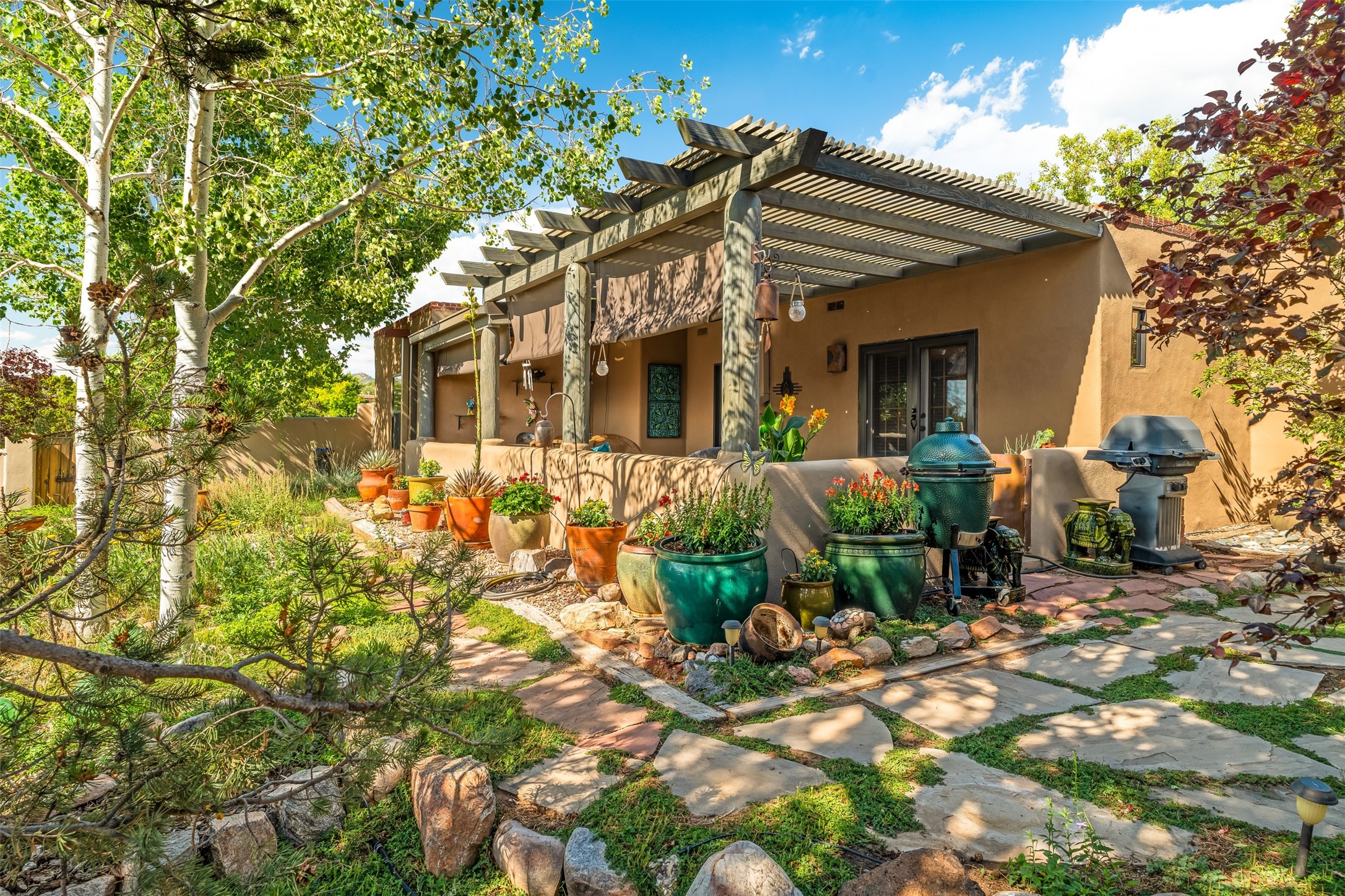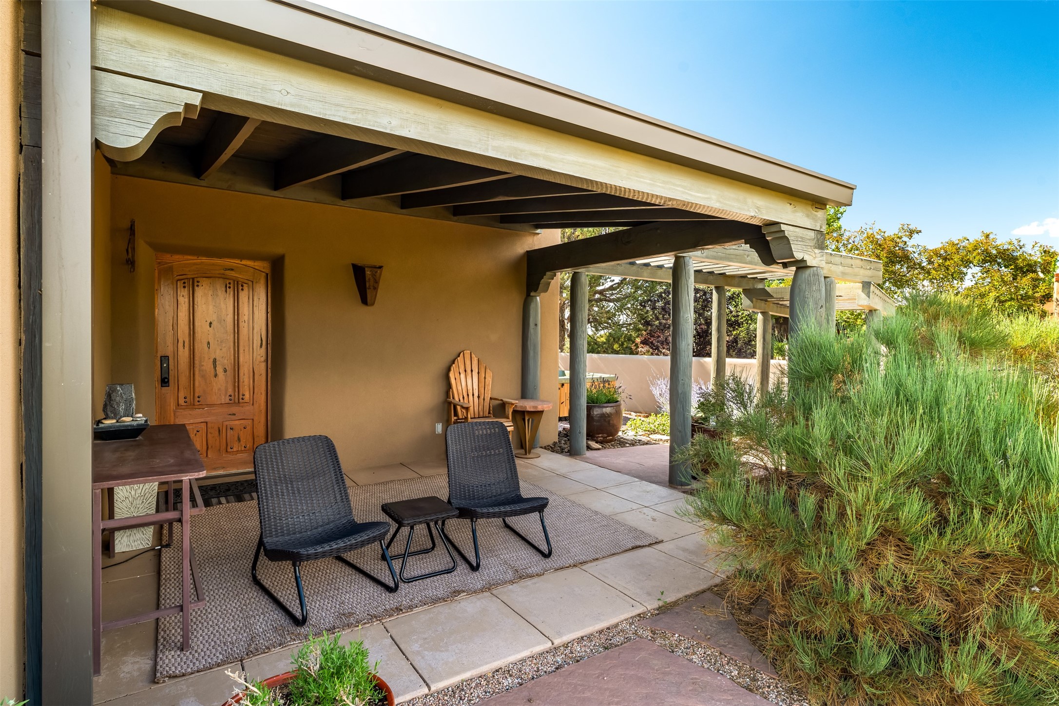 Welcome to this beautifully remodeled & meticulously maintained property featuring a 1,568-square-foot main home & a spacious 780-square-foot studio/casita. Recently re-stuccoed & there is a silicone roof upgrade with a warranty until 2027. This property offers style & peace of mind.The 3-bedroom, 2-bath main home is a delight. The kitchen is efficient--complete with stainless steel appliances, a gas stove, electric oven, pantry, and well designed pull-out drawers. Two completely updated bathrooms include luxe finishes such as Brazilian granite, a deep soaking tub with sliding glass doors, & a primary suite bath with granite counters, a generous glass-enclosed shower, & ample cabinet and closet space.Enjoy the Saltillo tile floors and the hand-troweled plaster ceilings. The living room features a cozy fireplace with an electric insert and flows into a lovely dining room with inset lighting and abundant natural light. The guest bedroom is inviting & well-appointed, while the third bedroom/office features built-in shelving for function & flexibility.Step outside to find front & back portals with handcrafted gates & light fixtures designed by artist Frank Seckler with lush landscaping--ideal for relaxing or entertaining. Don't miss the private hot tub between the main house & casita.The studio is a gem of its own--built with rastra construction, featuring radiant in-floor heat, stained concrete floors, a coved ceiling with vigas, hand-troweled plaster walls, a bathroom, & great natural light. It's equipped with its own septic, boiler, water heater, and a window A/C unit. With forced air heat & refrigerated A/C in the main house, as well as a generator which activates, should the power go out. Every detail is cared for in this truly exceptional property--beautiful, functional, & ready to enjoy. Eldorado has a Community Center, pool, tennis, pickle ball, playgrounds, miles of trails & a large nature preserveThis is an opportunity you don't want to miss!