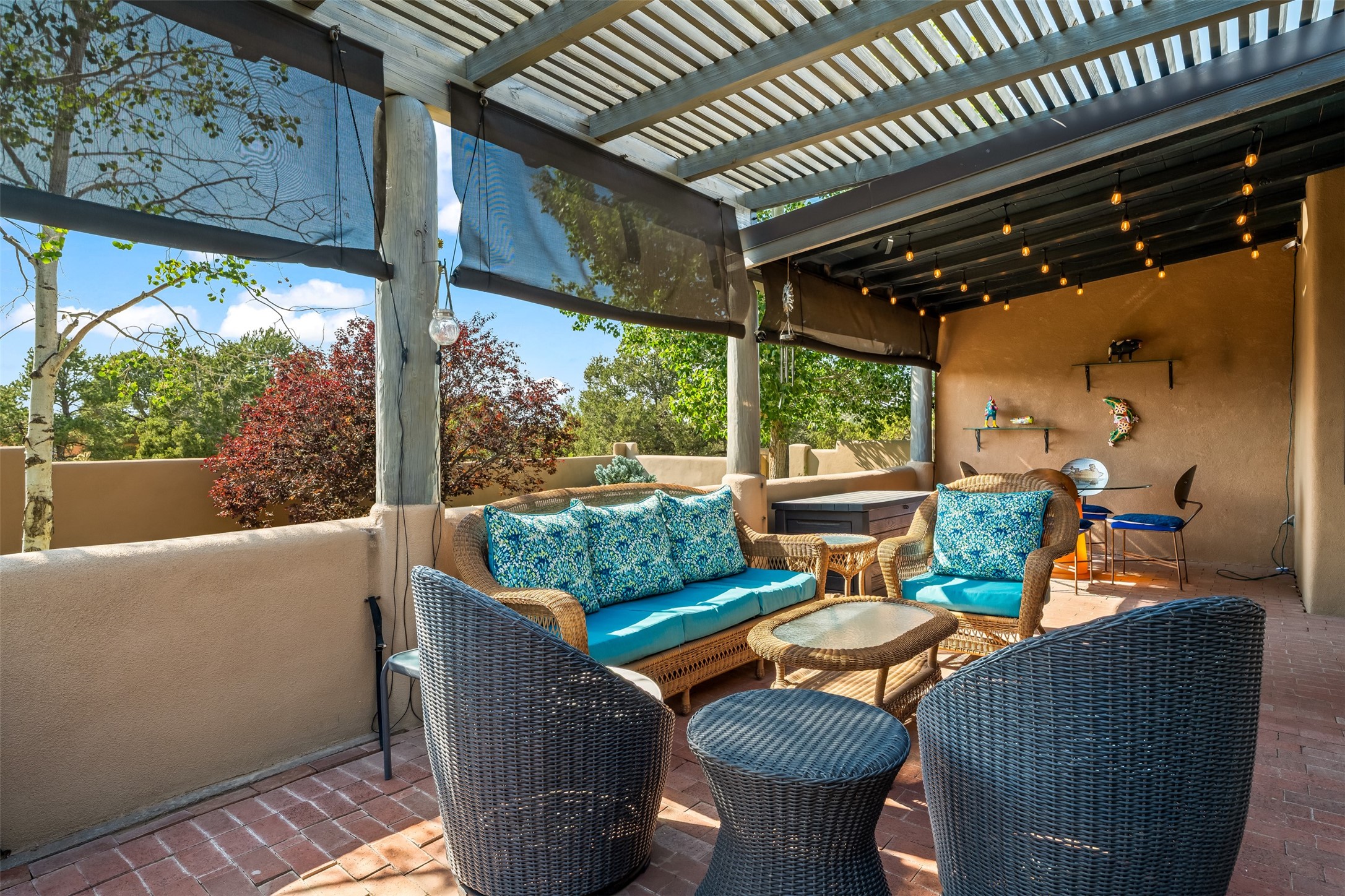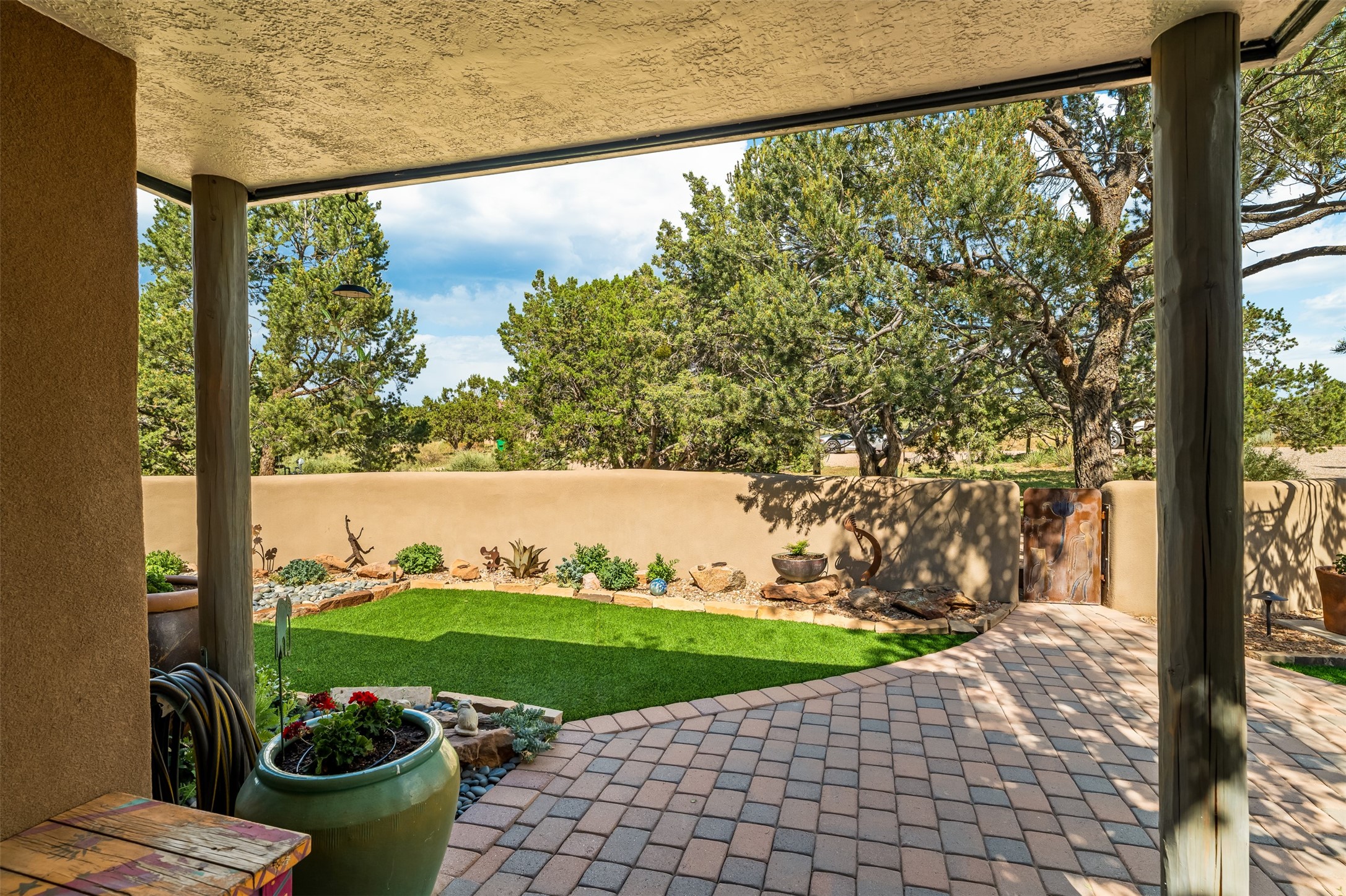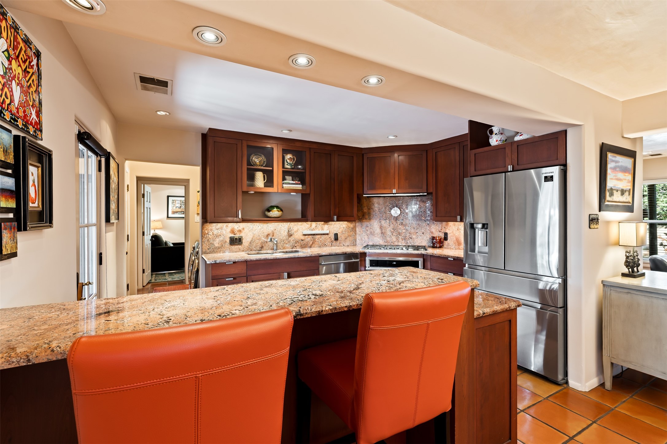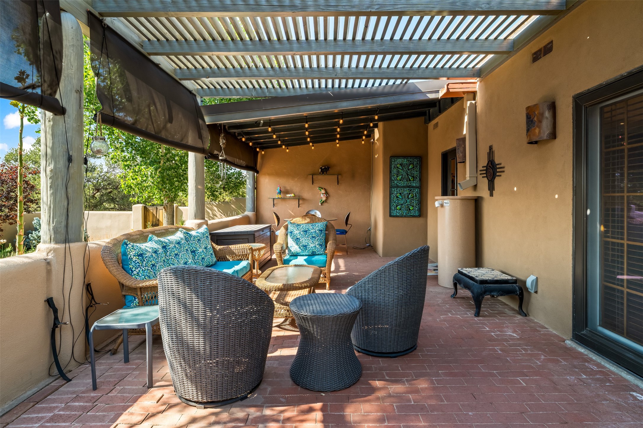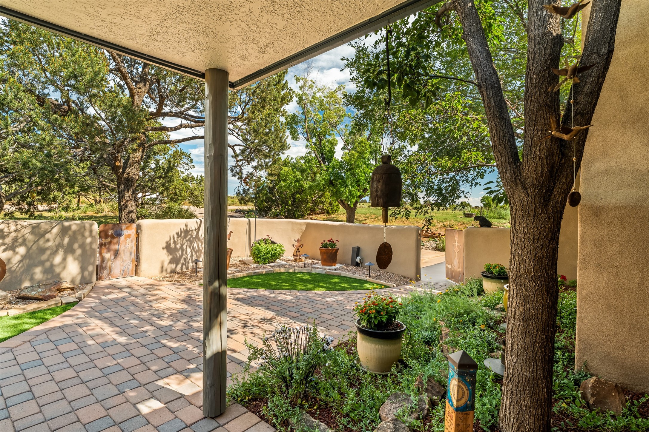 Welcome to this beautifully remodeled & meticulously maintained property featuring a 1,568-square-foot main home & a spacious 780-square-foot studio/casita. Recently re-stuccoed & there is a silicone roof upgrade with a warranty until 2027. This property offers style & peace of mind.The 3-bedroom, 2-bath main home is a delight. The kitchen is efficient--complete with stainless steel appliances, a gas stove, electric oven, pantry, and well designed pull-out drawers. Two completely updated bathrooms include luxe finishes such as Brazilian granite, a deep soaking tub with sliding glass doors, & a primary suite bath with granite counters, a generous glass-enclosed shower, & ample cabinet and closet space.Enjoy the Saltillo tile floors and the hand-troweled plaster ceilings. The living room features a cozy fireplace with an electric insert and flows into a lovely dining room with inset lighting and abundant natural light. The guest bedroom is inviting & well-appointed, while the third bedroom/office features built-in shelving for function & flexibility.Step outside to find front & back portals with handcrafted gates & light fixtures designed by artist Frank Seckler with lush landscaping--ideal for relaxing or entertaining. Don't miss the private hot tub between the main house & casita.The studio is a gem of its own--built with rastra construction, featuring radiant in-floor heat, stained concrete floors, a coved ceiling with vigas, hand-troweled plaster walls, a bathroom, & great natural light. It's equipped with its own septic, boiler, water heater, and a window A/C unit. With forced air heat & refrigerated A/C in the main house, as well as a generator which activates, should the power go out. Every detail is cared for in this truly exceptional property--beautiful, functional, & ready to enjoy. Eldorado has a Community Center, pool, tennis, pickle ball, playgrounds, miles of trails & a large nature preserveThis is an opportunity you don't want to miss!