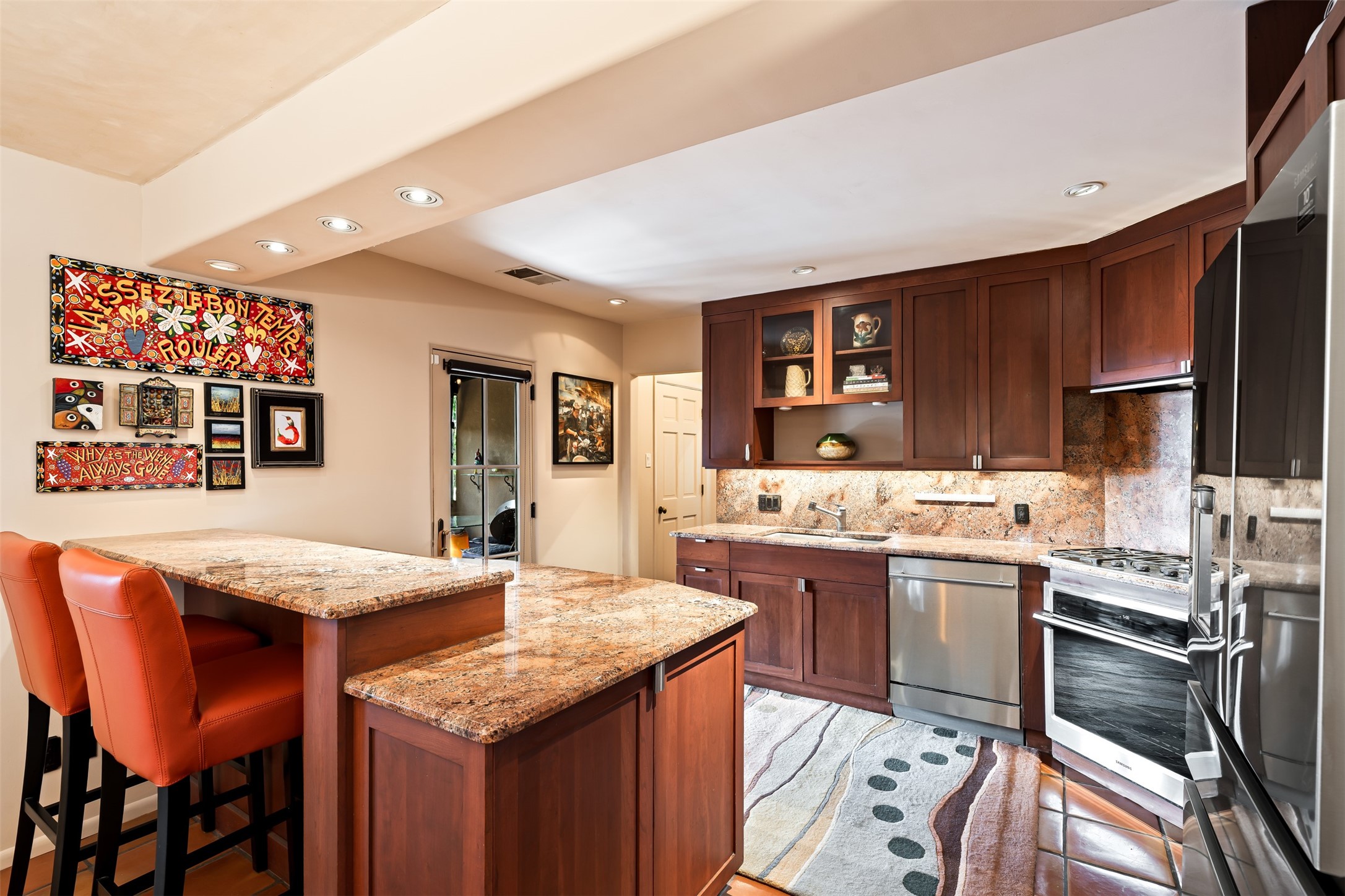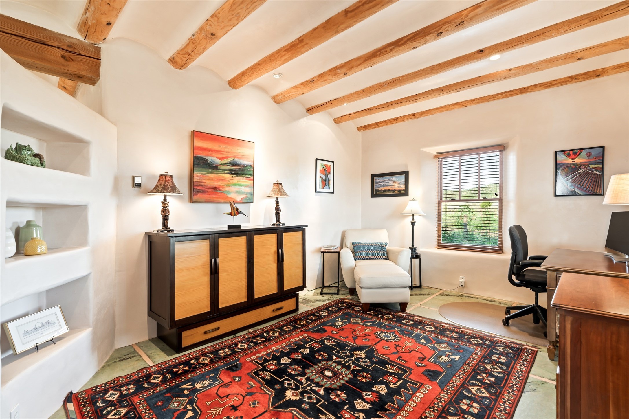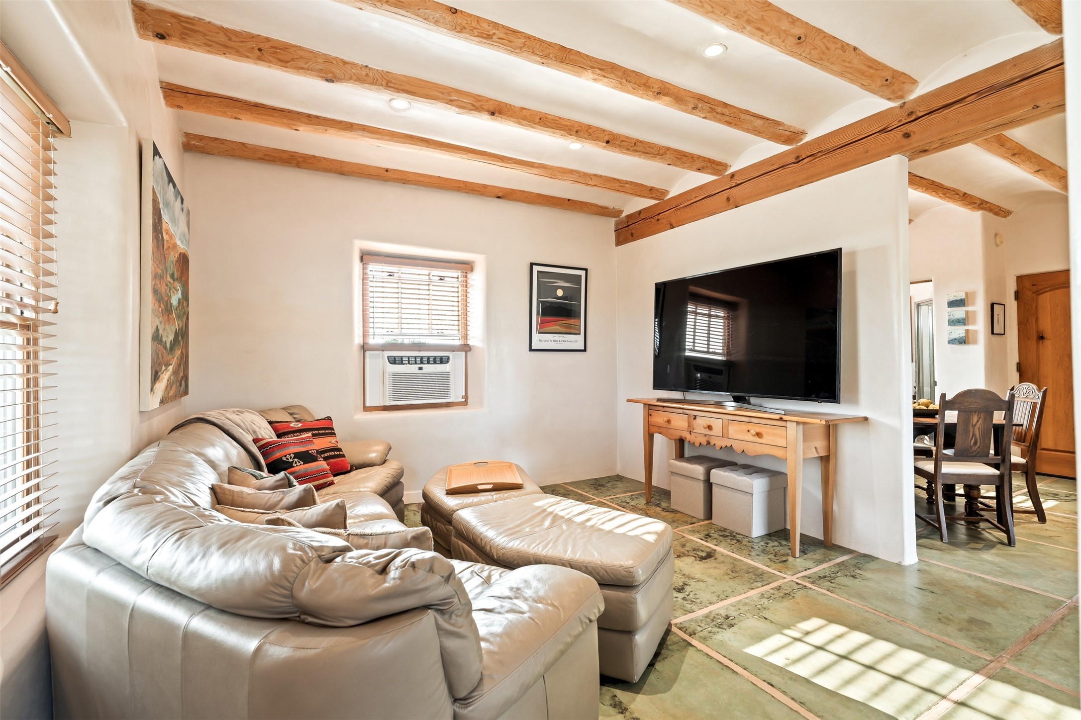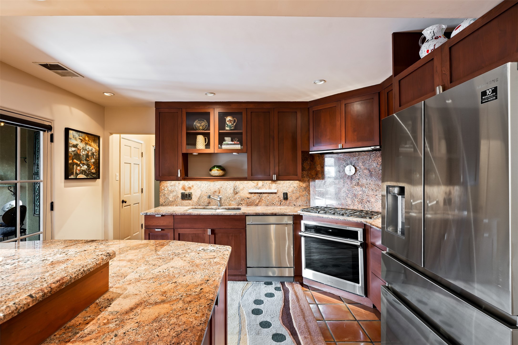 Welcome to this beautifully remodeled & meticulously maintained property featuring a 1,568-square-foot main home & a spacious 780-square-foot studio/casita. Recently re-stuccoed & there is a silicone roof upgrade with a warranty until 2027. This property offers style & peace of mind.The 3-bedroom, 2-bath main home is a delight. The kitchen is efficient--complete with stainless steel appliances, a gas stove, electric oven, pantry, and well designed pull-out drawers. Two completely updated bathrooms include luxe finishes such as Brazilian granite, a deep soaking tub with sliding glass doors, & a primary suite bath with granite counters, a generous glass-enclosed shower, & ample cabinet and closet space.Enjoy the Saltillo tile floors and the hand-troweled plaster ceilings. The living room features a cozy fireplace with an electric insert and flows into a lovely dining room with inset lighting and abundant natural light. The guest bedroom is inviting & well-appointed, while the third bedroom/office features built-in shelving for function & flexibility.Step outside to find front & back portals with handcrafted gates & light fixtures designed by artist Frank Seckler with lush landscaping--ideal for relaxing or entertaining. Don't miss the private hot tub between the main house & casita.The studio is a gem of its own--built with rastra construction, featuring radiant in-floor heat, stained concrete floors, a coved ceiling with vigas, hand-troweled plaster walls, a bathroom, & great natural light. It's equipped with its own septic, boiler, water heater, and a window A/C unit. With forced air heat & refrigerated A/C in the main house, as well as a generator which activates, should the power go out. Every detail is cared for in this truly exceptional property--beautiful, functional, & ready to enjoy. Eldorado has a Community Center, pool, tennis, pickle ball, playgrounds, miles of trails & a large nature preserveThis is an opportunity you don't want to miss!