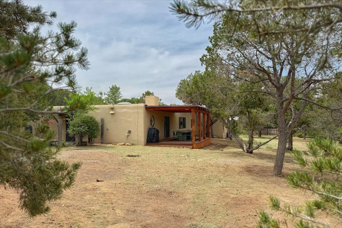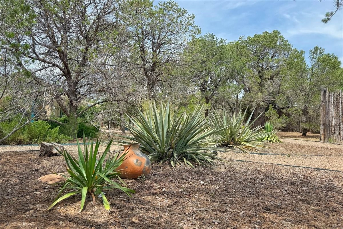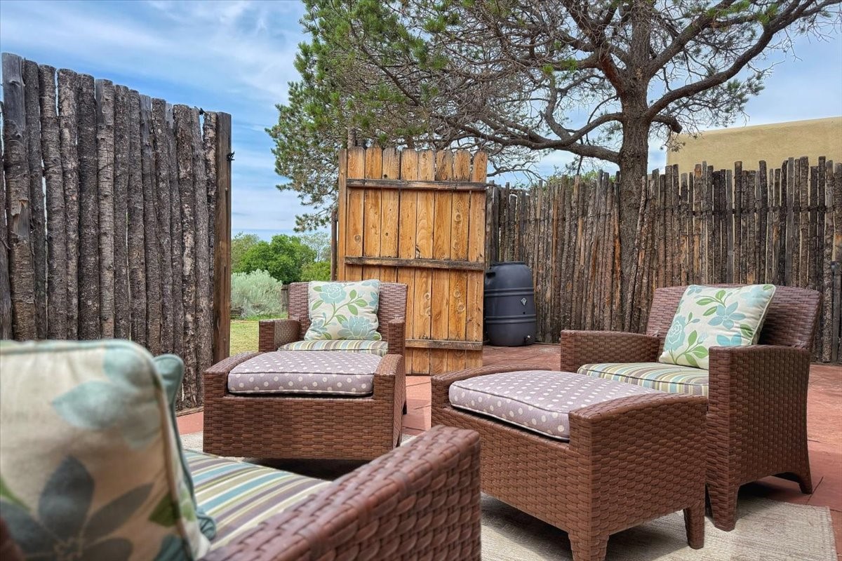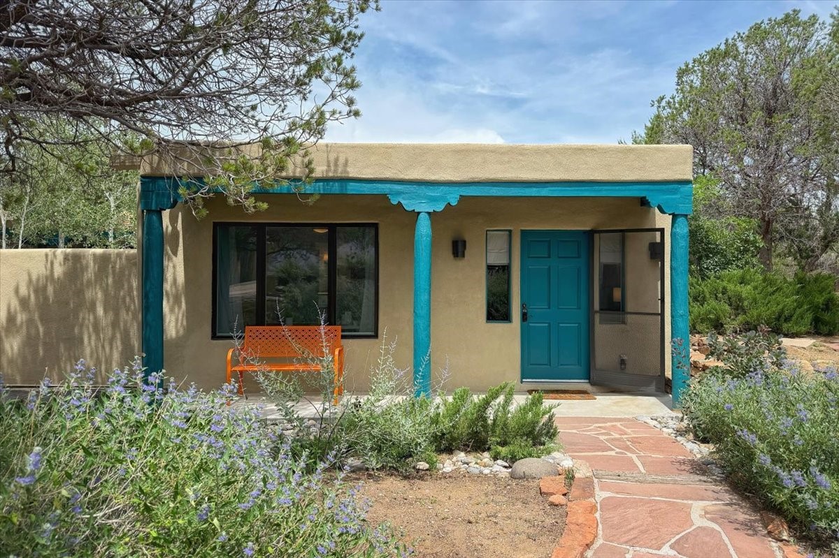 Tucked away in the highly sought-after Sol Y Lomas neighborhood, this peaceful property with mature landscaping on over an acre of land with a fenced-in backyard offers flexible living, exceptional privacy, and a sense of serenity--minutes from the Plaza, restaurants, and I-25.The 3 bed / 2.5 bath main house features a spacious living room with a fireplace and an excellent view of old-growth trees in your fenced-in backyard, an additional sitting room or lounge off the kitchen, and a generous primary suite with a large walk-in closet, soaking tub, and private patio. Nearly every window offers beautiful views of mature trees, giving the home a tranquil, retreat-like feel.Ideal for multigenerational living, rental income, or a home office, the 1 bed / 1 bath casita, with a separate entrance, includes its own washer and dryer, kitchenette, and sits adjacent to a charming courtyard framed by aspens. There is also a separate studio/flex space/arts and crafts room in the back of the main home with its own entrance. And a storage shed! Entertain with ease both indoors and out--whether you're gathering in the inviting living spaces or unwinding in one of the many outdoor areas perfect for gardening, dining, or soaking in the natural beauty. Additional features include a newer all-in-one on-demand hot water heater and boiler(c. 2023), new lighting in the kitchen and primary bedroom walk-in closet. An unbeatable location on a dead-end street just off Old Pecos Trail with quick access to all that Santa Fe has to offer such as Canyon Road, the Historic Plaza, Fine Dining, World-Class Galleries, Museum Hill, and so much more.