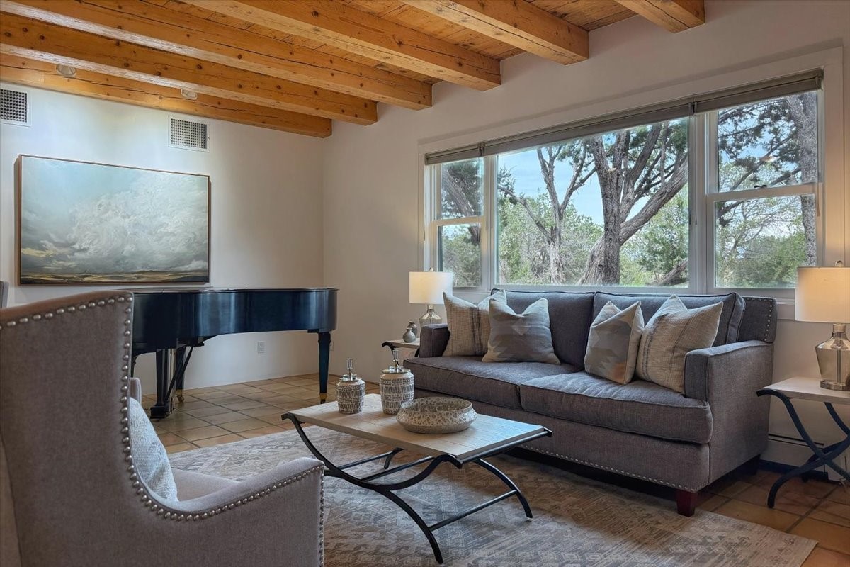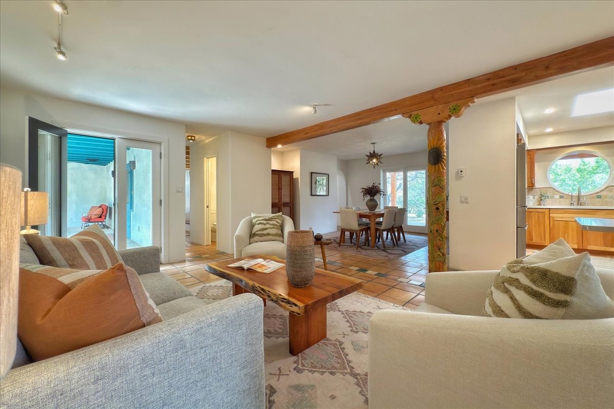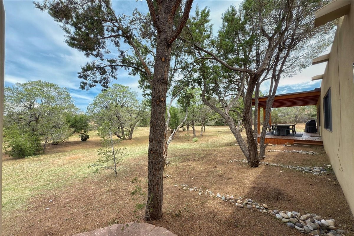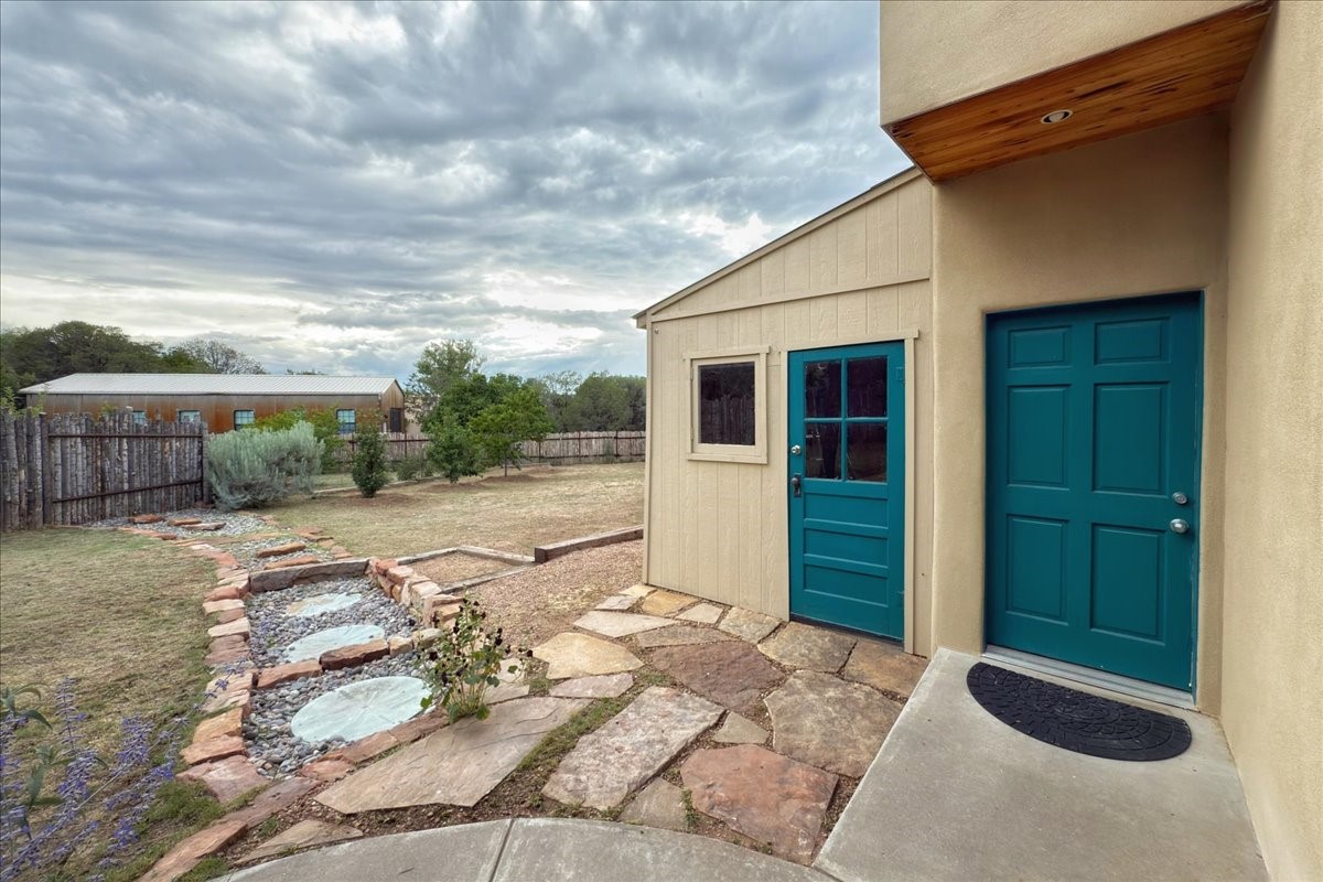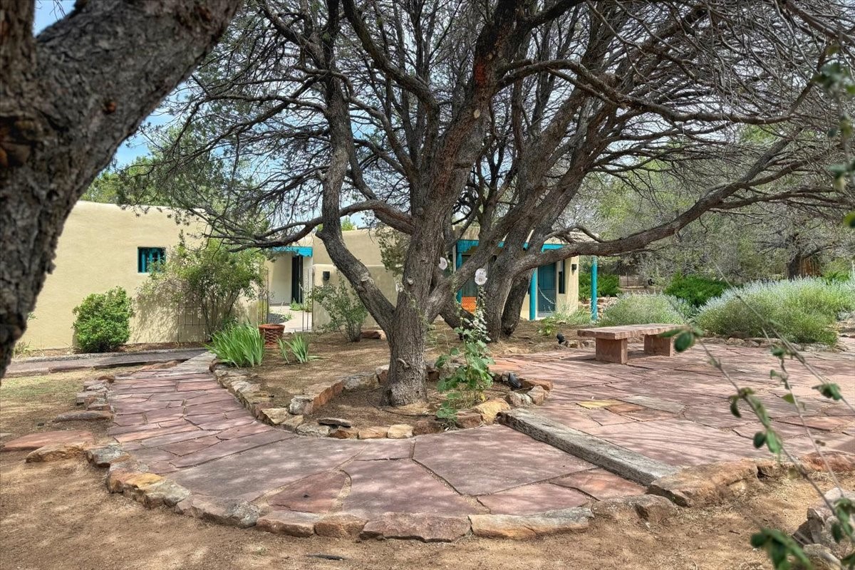 Tucked away in the highly sought-after Sol Y Lomas neighborhood, this peaceful property with mature landscaping on over an acre of land with a fenced-in backyard offers flexible living, exceptional privacy, and a sense of serenity--minutes from the Plaza, restaurants, and I-25.The 3 bed / 2.5 bath main house features a spacious living room with a fireplace and an excellent view of old-growth trees in your fenced-in backyard, an additional sitting room or lounge off the kitchen, and a generous primary suite with a large walk-in closet, soaking tub, and private patio. Nearly every window offers beautiful views of mature trees, giving the home a tranquil, retreat-like feel.Ideal for multigenerational living, rental income, or a home office, the 1 bed / 1 bath casita, with a separate entrance, includes its own washer and dryer, kitchenette, and sits adjacent to a charming courtyard framed by aspens. There is also a separate studio/flex space/arts and crafts room in the back of the main home with its own entrance. And a storage shed! Entertain with ease both indoors and out--whether you're gathering in the inviting living spaces or unwinding in one of the many outdoor areas perfect for gardening, dining, or soaking in the natural beauty. Additional features include a newer all-in-one on-demand hot water heater and boiler(c. 2023), new lighting in the kitchen and primary bedroom walk-in closet. An unbeatable location on a dead-end street just off Old Pecos Trail with quick access to all that Santa Fe has to offer such as Canyon Road, the Historic Plaza, Fine Dining, World-Class Galleries, Museum Hill, and so much more.