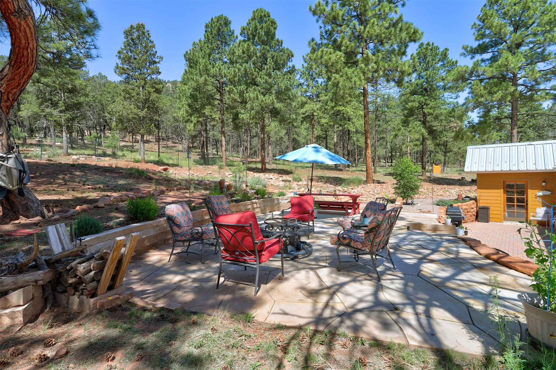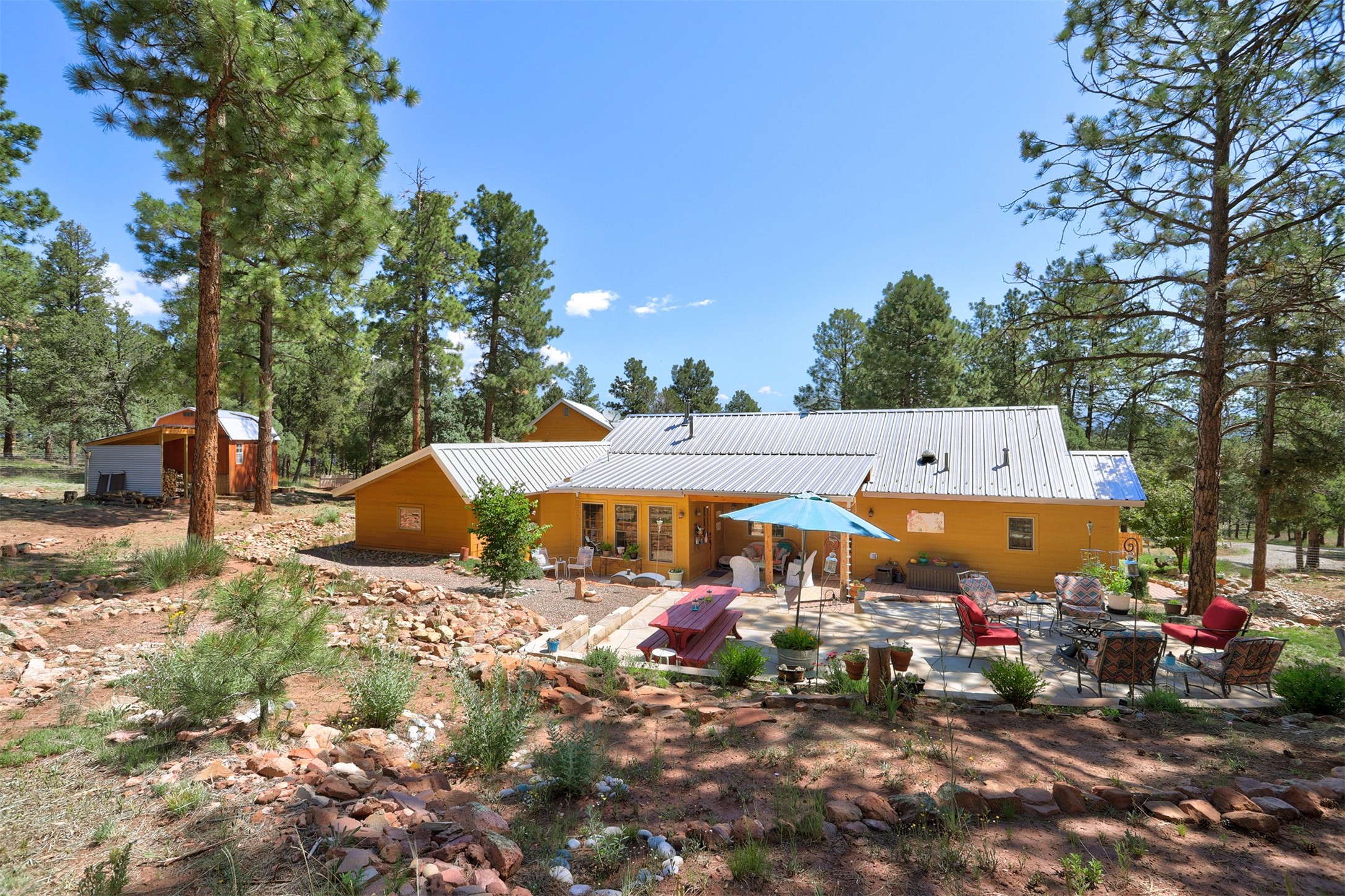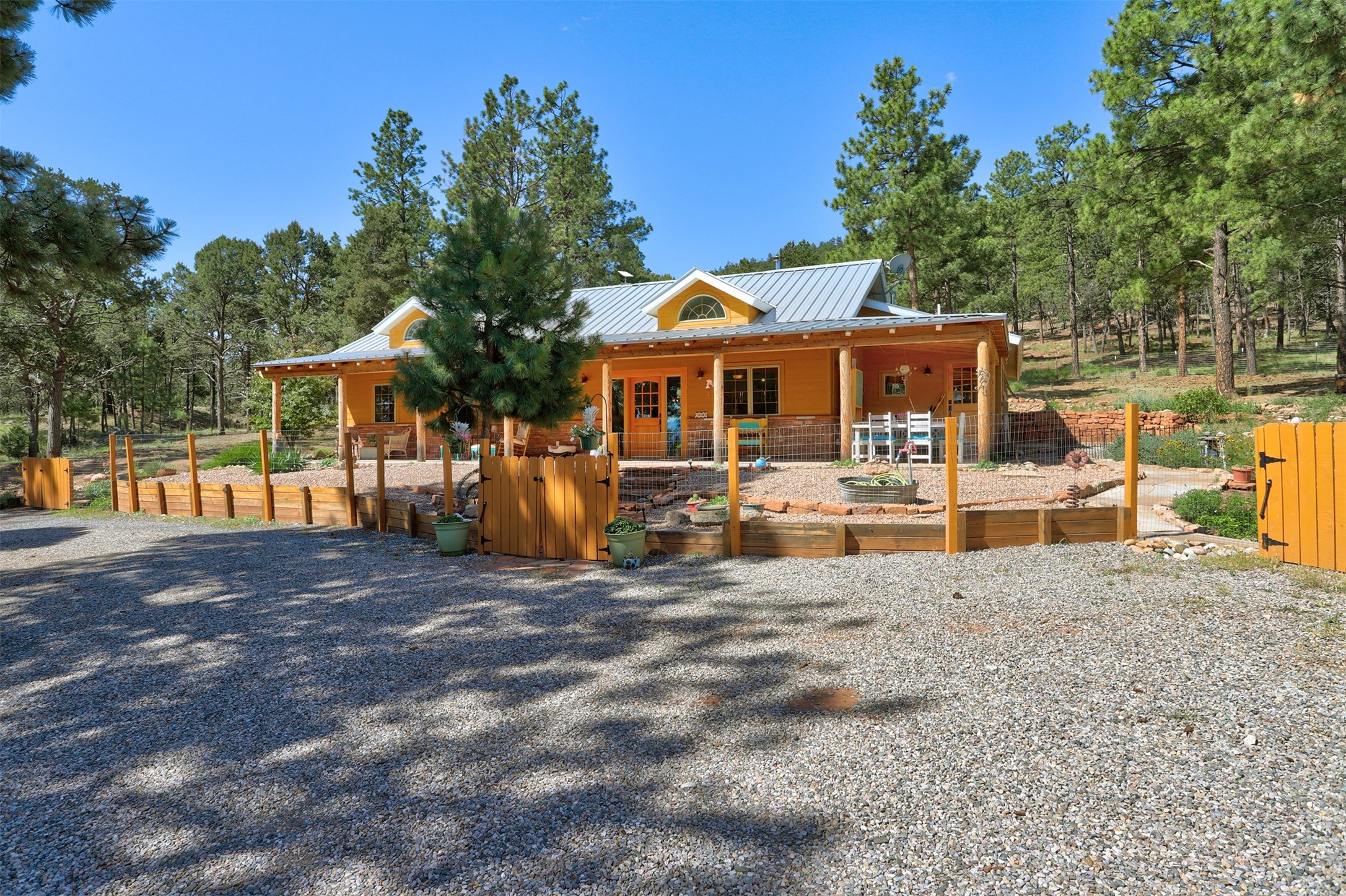 Attention Mountain Bikers and Horse Enthusiasts! Serene 12.5-Acre Retreat with mountain views! Main house and guest casita over garage is just 25 minutes from downtown Santa Fe. Nestled at the base of the stunning Glorieta Mesa this exceptional property with private well offers access to miles of scenic trails perfect for mountain biking and horseback riding. Located across the highway from the famous Glorieta Mountain Biking Trails, this property is ideally located for outdoor lovers. The main home blends rustic charm with modern comfort, featuring a spacious living area, two primary suites, a dedicated office, and a convenient dog bath. The tranquil, private setting makes it ideal for full-time living or a weekend getaway. Step outside to the elevated sandstone terrace--a perfect space for dining, relaxing, or taking in the panoramic mountain views. A standout feature is the 800 sq. ft. casita above the garage, complete with a strong rental history--ideal as an income-producing long-term rental or a welcoming guest suite.Additional highlights include a fully fenced yard, ample RV parking, direct access to the Santa Fe National Forest, and horse-friendly property making it easy to enjoy trail riding and open space right from your property.Whether you're seeking a serene lifestyle, an investment opportunity, or proximity to Santa Fe's rich cultural and outdoor offerings, this unique property delivers on all fronts.