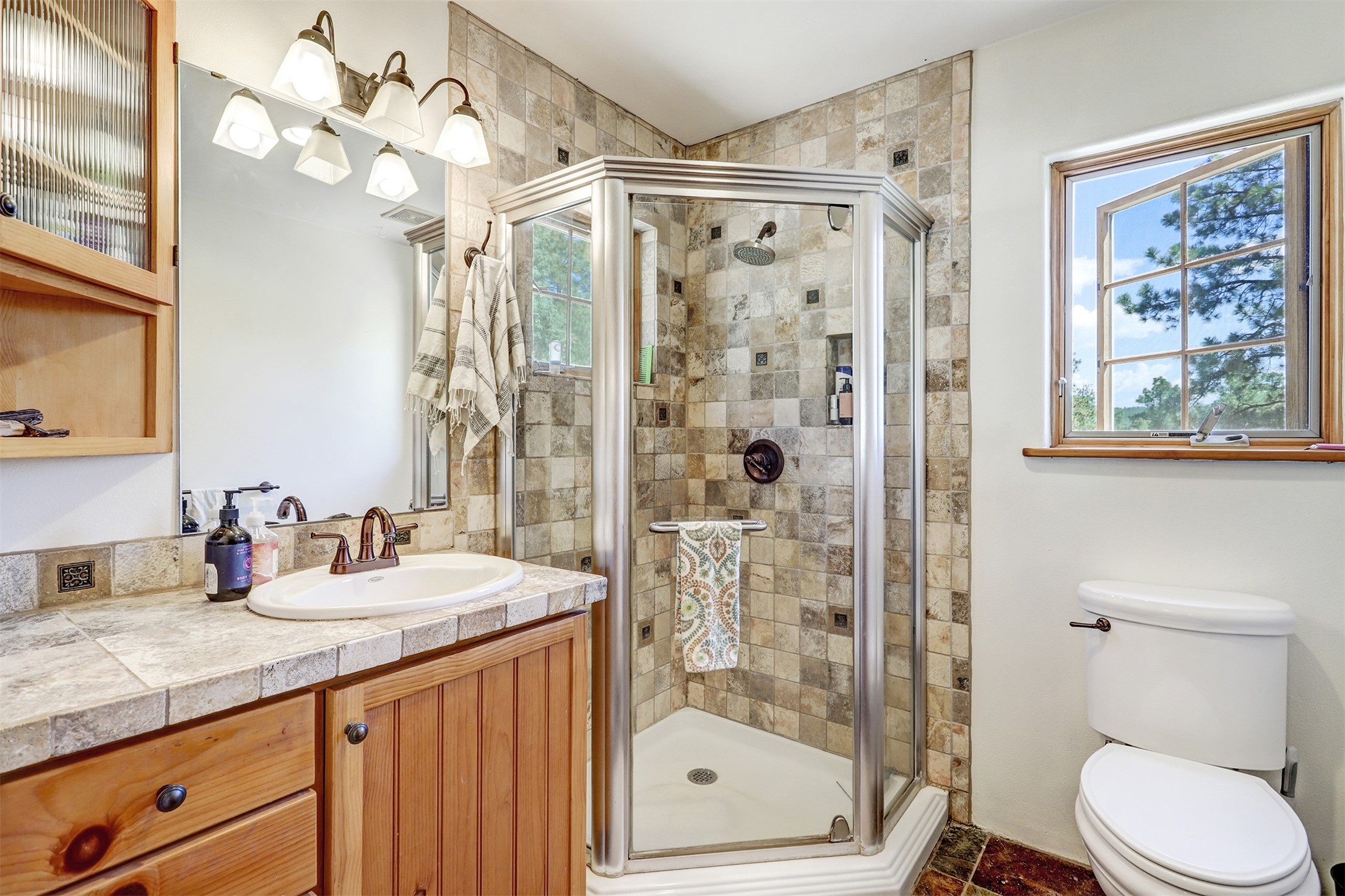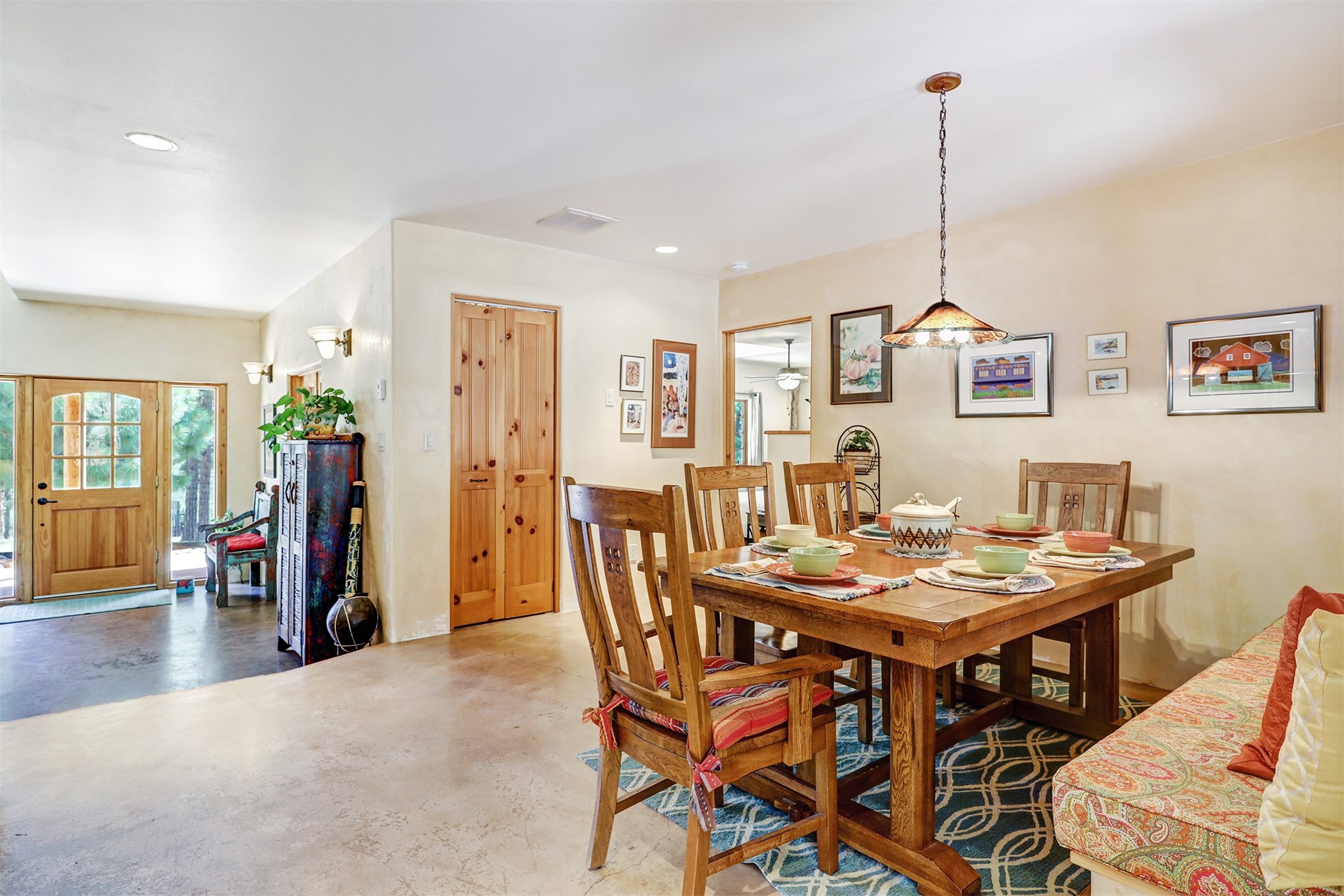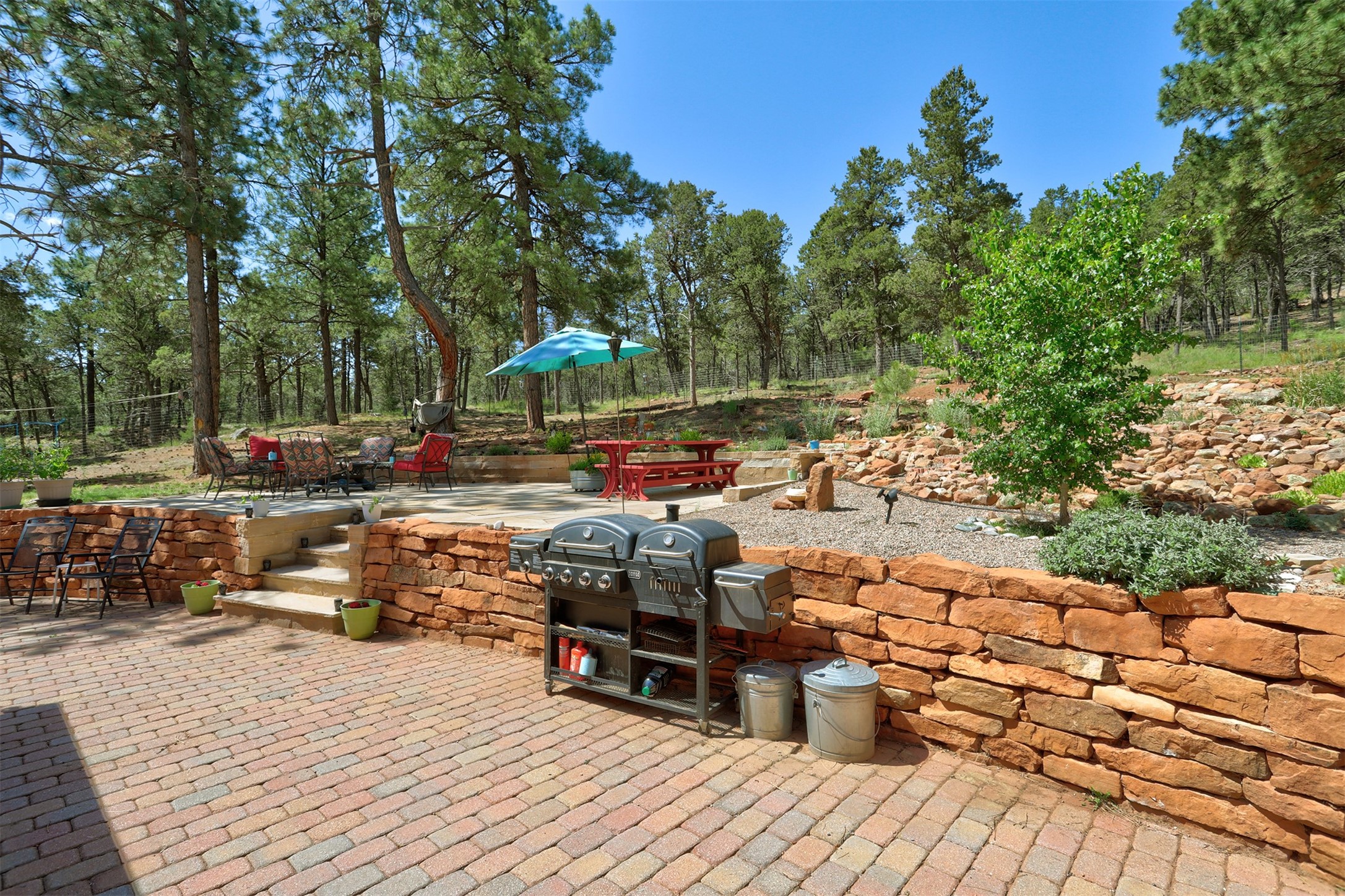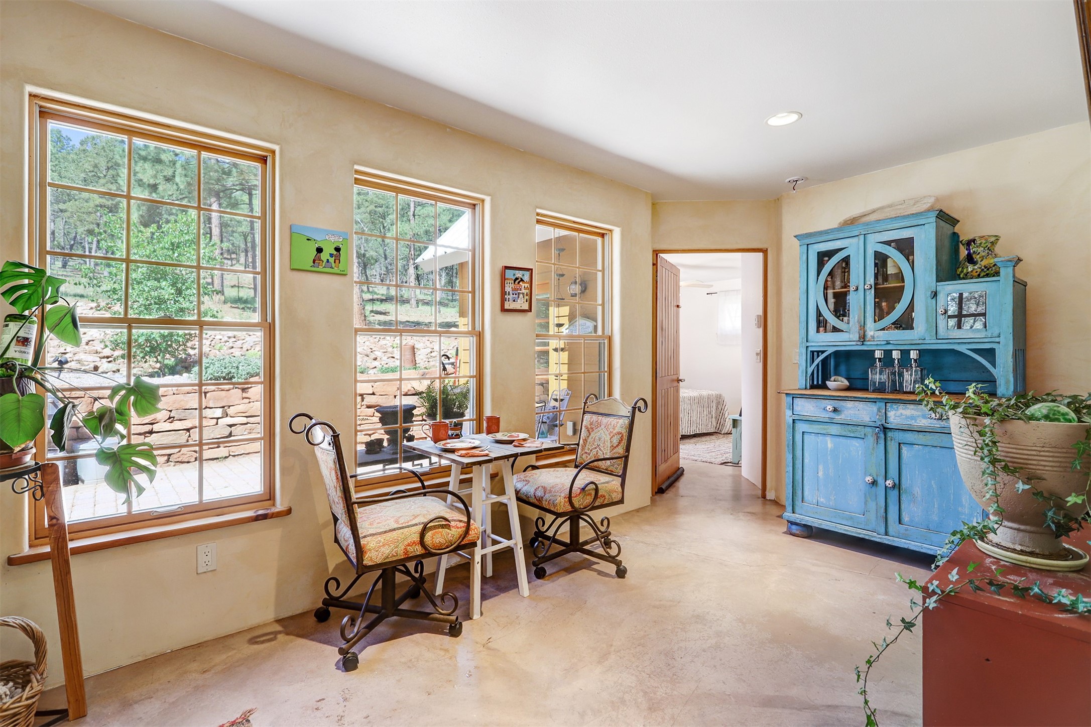 Attention Mountain Bikers and Horse Enthusiasts! Serene 12.5-Acre Retreat with mountain views! Main house and guest casita over garage is just 25 minutes from downtown Santa Fe. Nestled at the base of the stunning Glorieta Mesa this exceptional property with private well offers access to miles of scenic trails perfect for mountain biking and horseback riding. Located across the highway from the famous Glorieta Mountain Biking Trails, this property is ideally located for outdoor lovers. The main home blends rustic charm with modern comfort, featuring a spacious living area, two primary suites, a dedicated office, and a convenient dog bath. The tranquil, private setting makes it ideal for full-time living or a weekend getaway. Step outside to the elevated sandstone terrace--a perfect space for dining, relaxing, or taking in the panoramic mountain views. A standout feature is the 800 sq. ft. casita above the garage, complete with a strong rental history--ideal as an income-producing long-term rental or a welcoming guest suite.Additional highlights include a fully fenced yard, ample RV parking, direct access to the Santa Fe National Forest, and horse-friendly property making it easy to enjoy trail riding and open space right from your property.Whether you're seeking a serene lifestyle, an investment opportunity, or proximity to Santa Fe's rich cultural and outdoor offerings, this unique property delivers on all fronts.