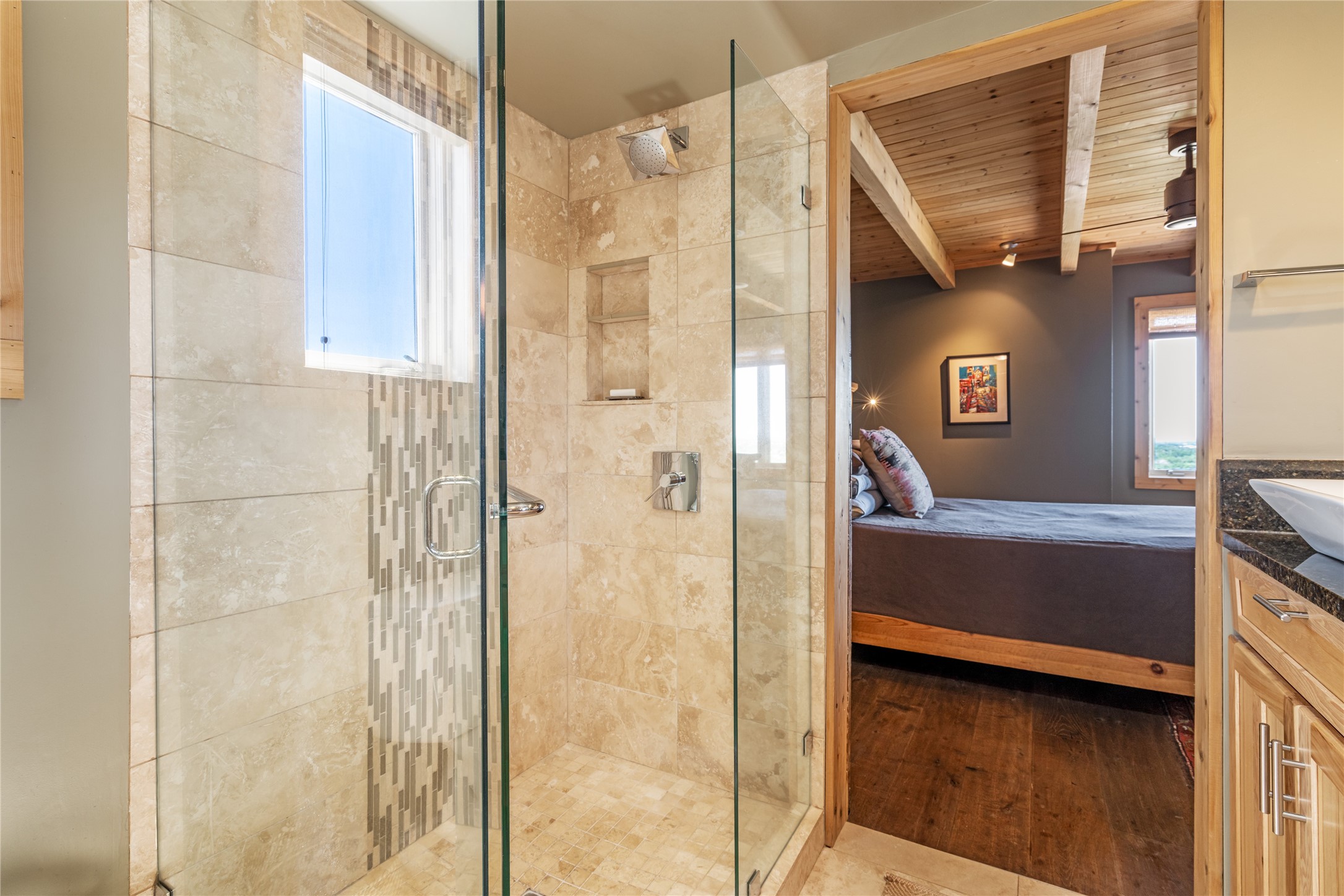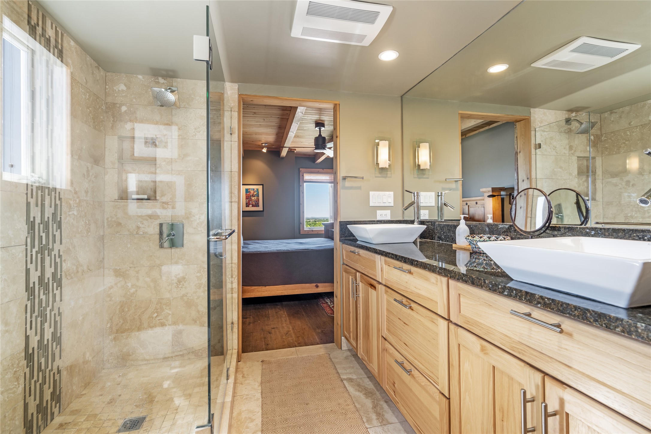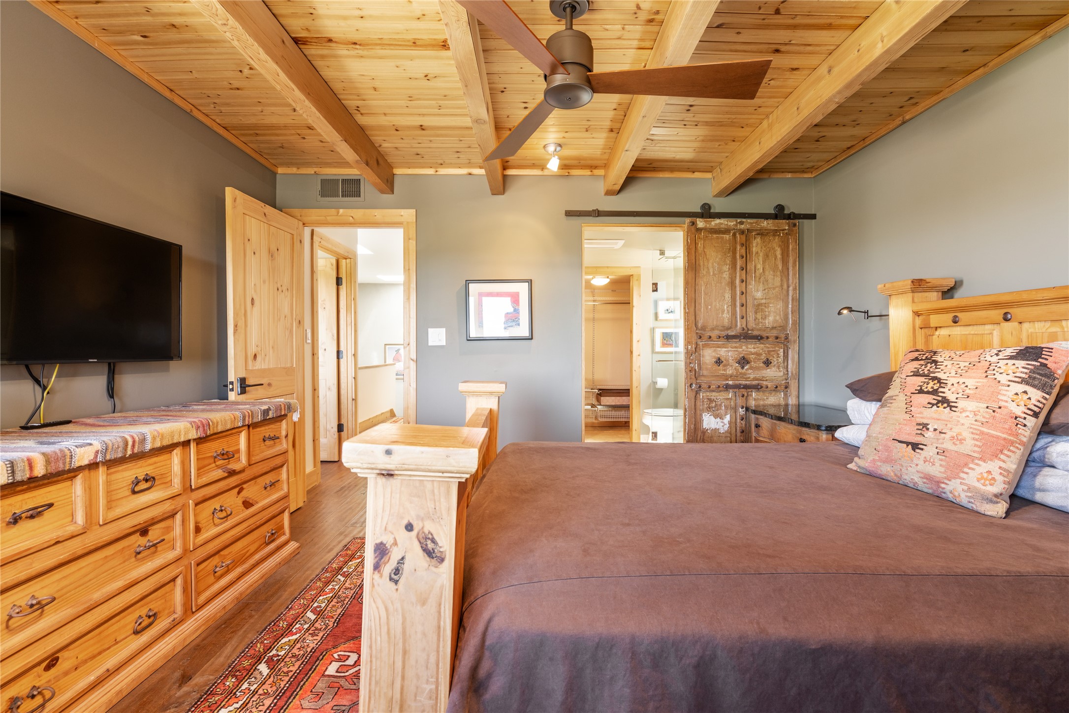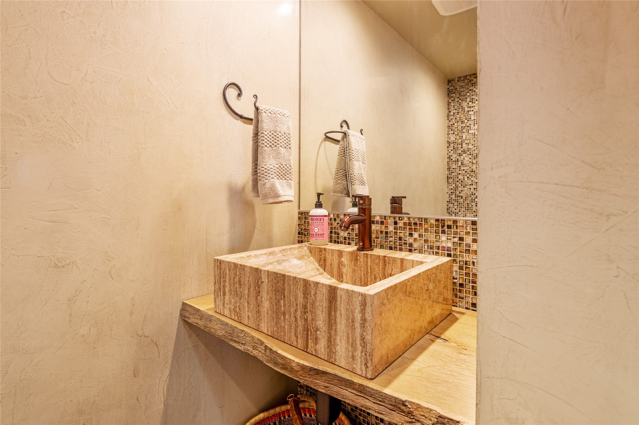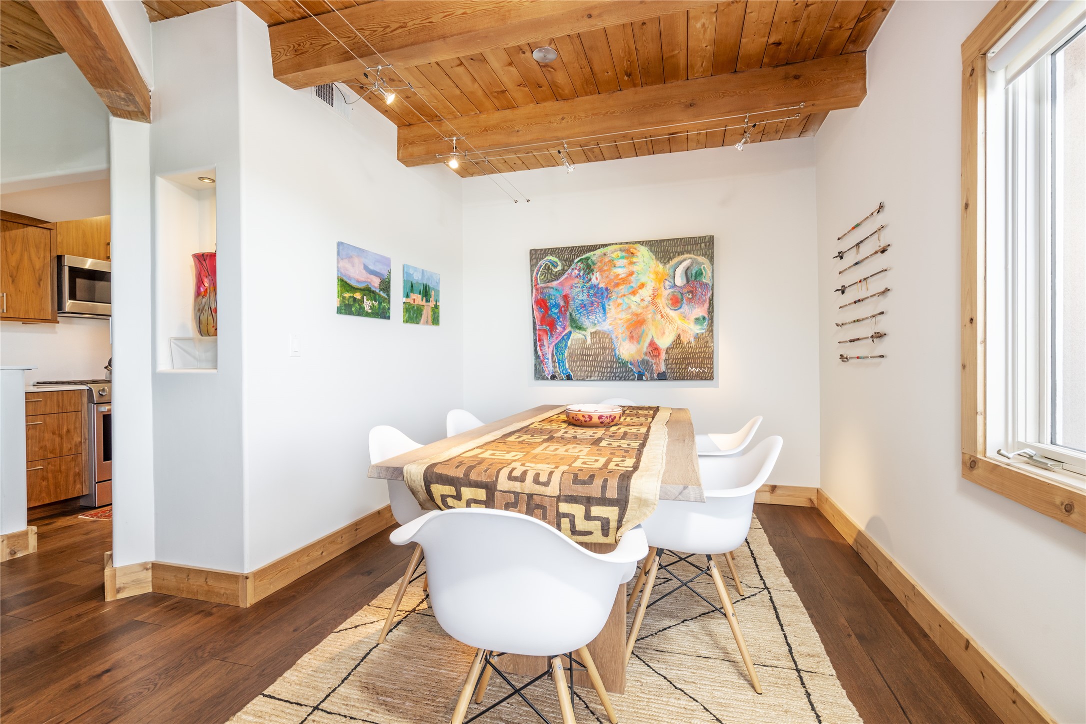 Wonderful VIEWS from this Pueblo de Rosario condo near the Santa Fe Plaza. This two story, two bedroom; 2 1/2 bath condo was remodeled with a fresh look about 10 years ago. Brand new membrane roof in April 2025. Engineered wood flooring, walnut kitchen cabinets, and newer interior pine doors. Stainless Bosch kitchen appliances with a Liebherr refrigerator and quartz countertops. Full bathroom upstairs features teak cabinets and marble. Primary bathroom has hickory cabintets, granite counter tops and travertine flooring. Half bath downstairs has a stone sink, venetian plaster walls, glass mosaic tile and travertine flooring. Stackable washer/dryer upstairs. One kiva fireplace in the living area. Lovely front area with views of the Cathedral and an outdoor deck off the dining area to enjoy the big Sandia - western views. Detached one car garage with cabinet storage. Community pool to enjoy the Santa Fe summers and a year around community hot tub. This unit is perfect for a "lock and leave" situation. Wonderful location and just less than one mile to the Santa Fe Plaza, restaurants, shops, galleries and an easy drive to the Santa Fe Ski Basin.