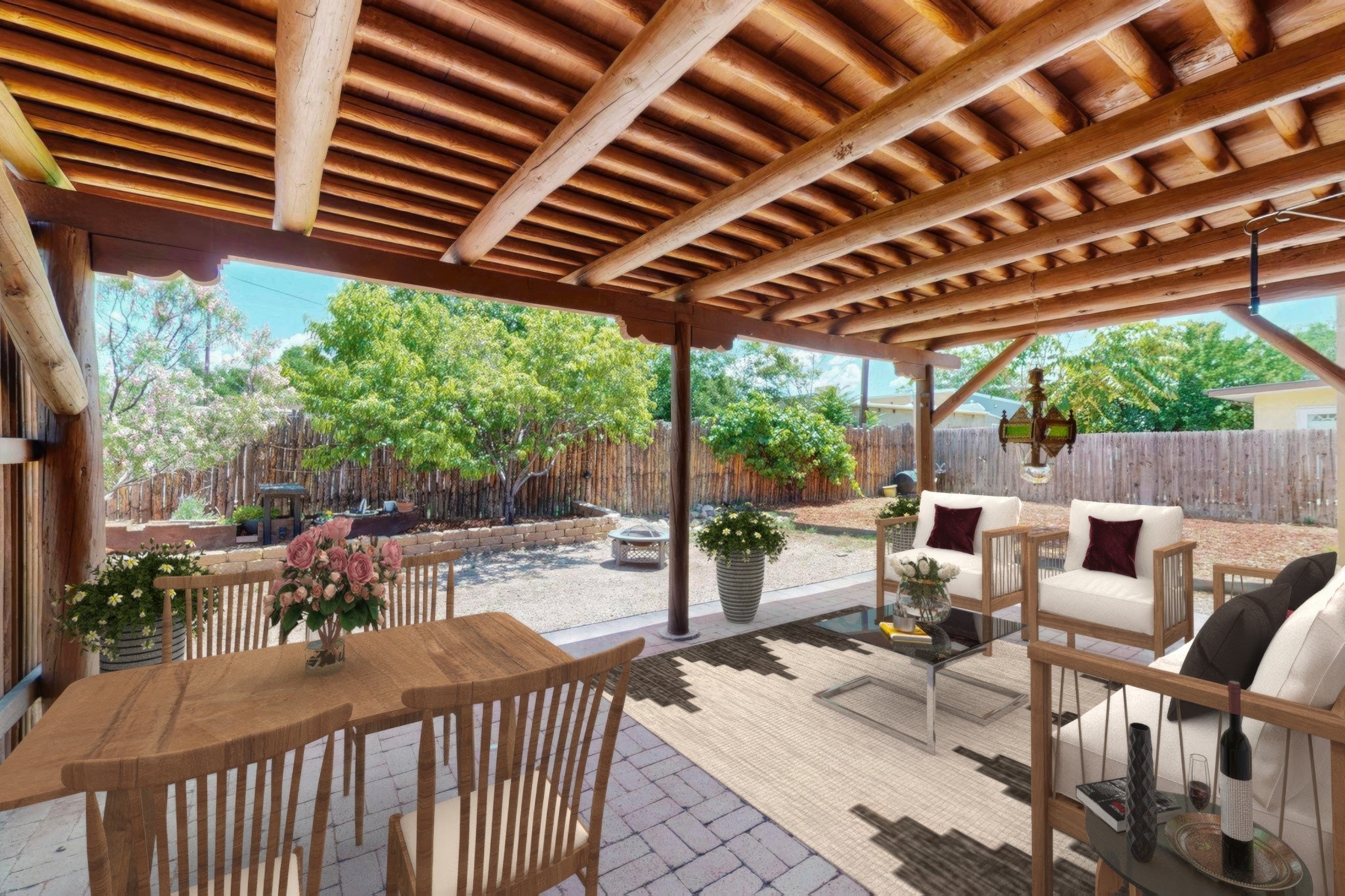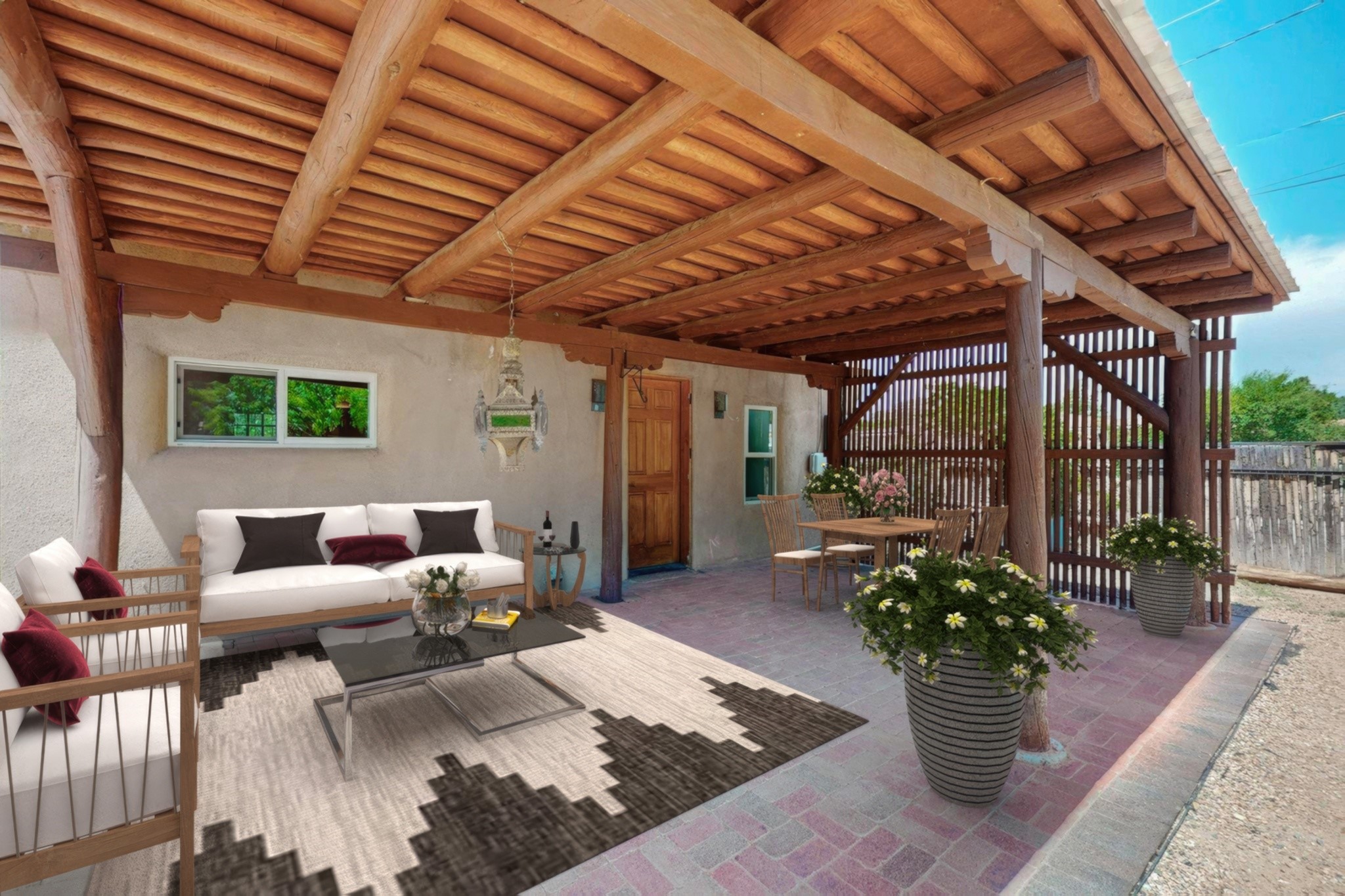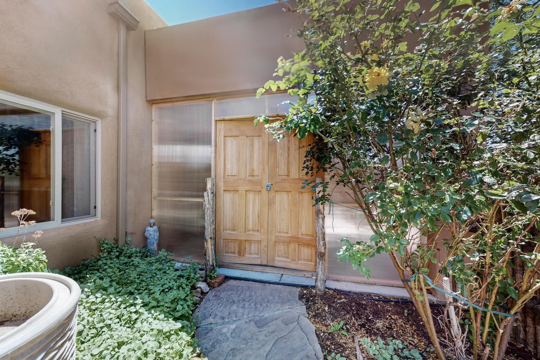 Located in a hip Midtown neighborhood on an ample corner lot, this charming 1594 s.f. home is in like new condition and move-in ready. Details include wood and tile floors throughout, a gas fireplace and an open floorplan with great separation of bedrooms and baths. The irrigated grounds are well established and maintained with mature trees, lilacs, rosebushes and a prolific peach tree. Enjoy living outside in the spacious covered portal and entirely fenced backyard. This wonderful and very livable home, also includes a 253 s.f. Studio, not heated and could be retrofit to a closed in garage or open carport. The furnishings depicted are virtually staged.