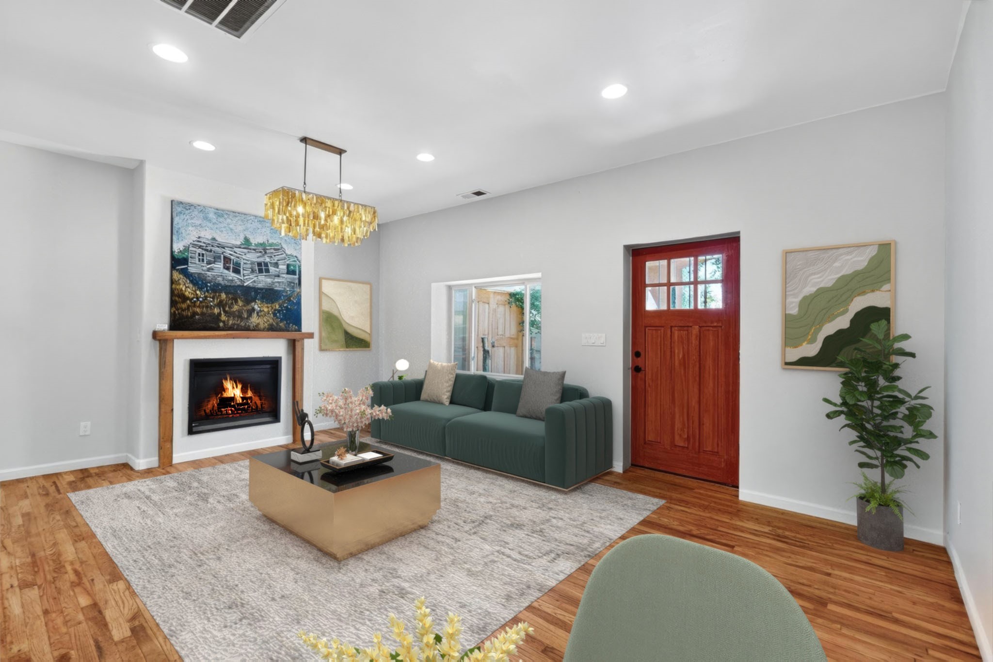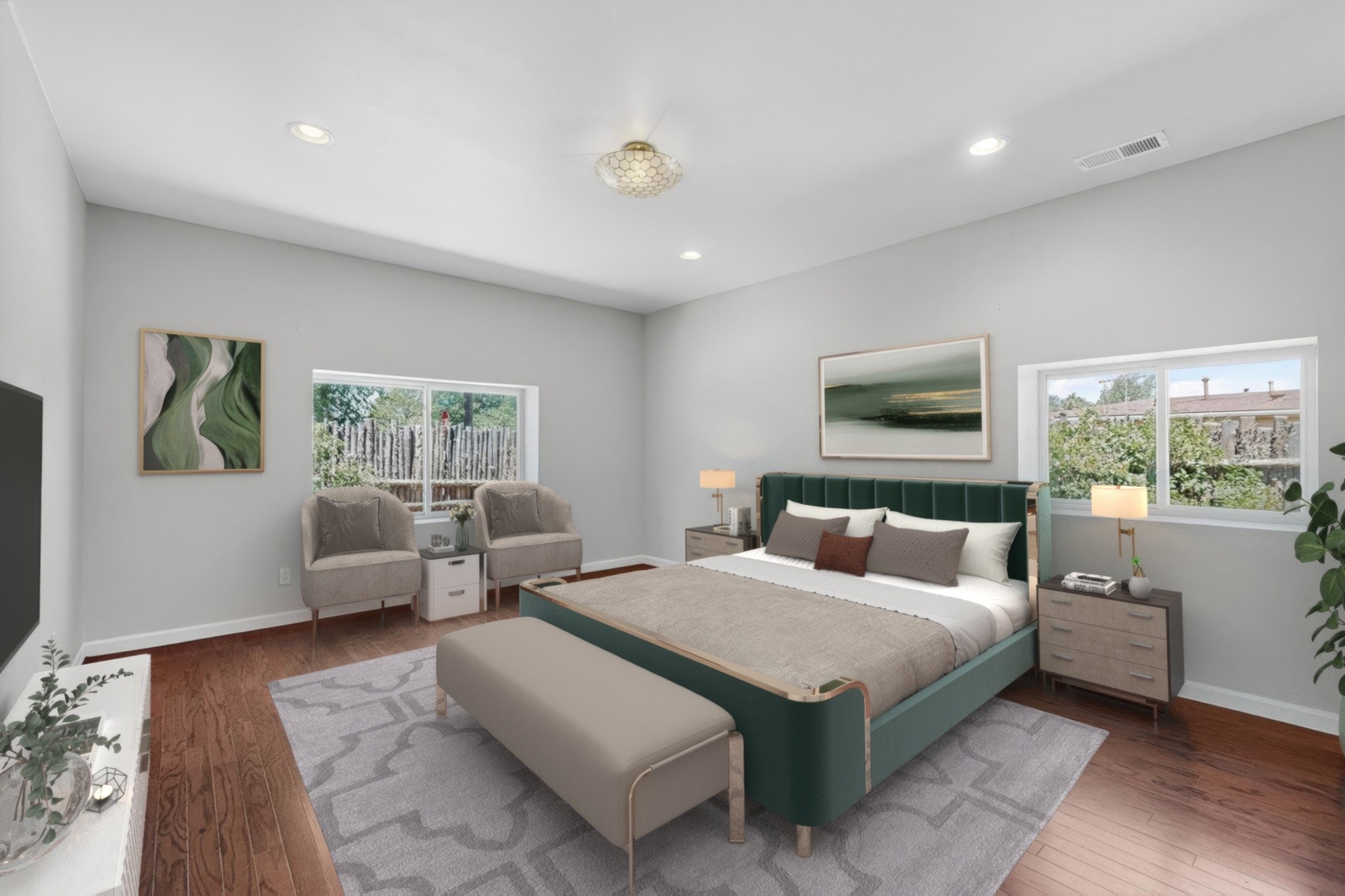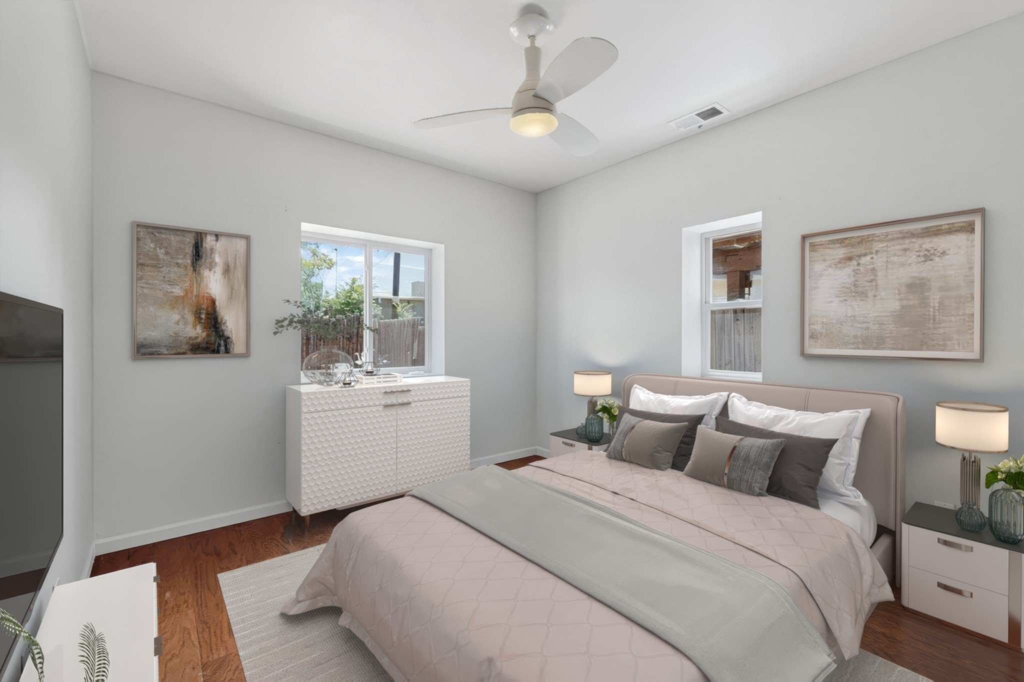 Located in a hip Midtown neighborhood on an ample corner lot, this charming 1594 s.f. home is in like new condition and move-in ready. Details include wood and tile floors throughout, a gas fireplace and an open floorplan with great separation of bedrooms and baths. The irrigated grounds are well established and maintained with mature trees, lilacs, rosebushes and a prolific peach tree. Enjoy living outside in the spacious covered portal and entirely fenced backyard. This wonderful and very livable home, also includes a 253 s.f. Studio, not heated and could be retrofit to a closed in garage or open carport. The furnishings depicted are virtually staged.