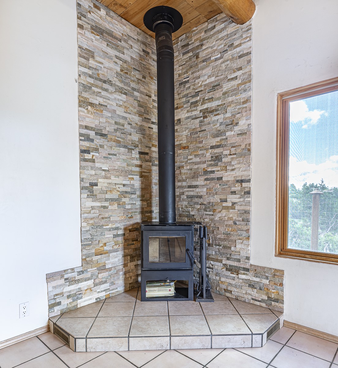 This Eldorado home is Located on a quiet cul-de-sac which backs up to greenbelt for lots of privacy. The great room has high ceilings with vigas as well as a wood burning stove that heats the house. The open floor plan allows for entertaining and plenty of light and space. There is a walk-in pantry off the kitchen with additional cabinets and storage, and access to the garage for added convenience. The heated studio/family room beyond the garage is ideal for art, hobbies, or a private gym. With central heat, natural gas and a wood burning stove, this home is both efficient and comfortable. There are views to the Ortiz mountains and lots of outdoor room for gardening, projects, with a large fenced dog run. This home is well priced for a residence or a rental property and with some TLC, you can make it your own.