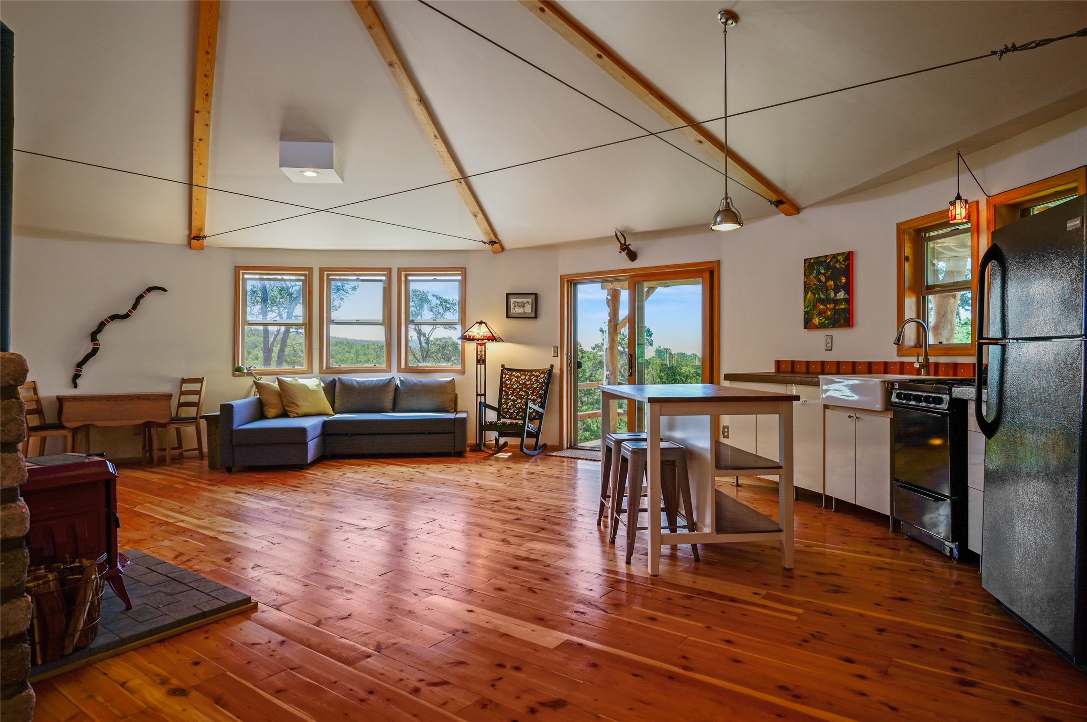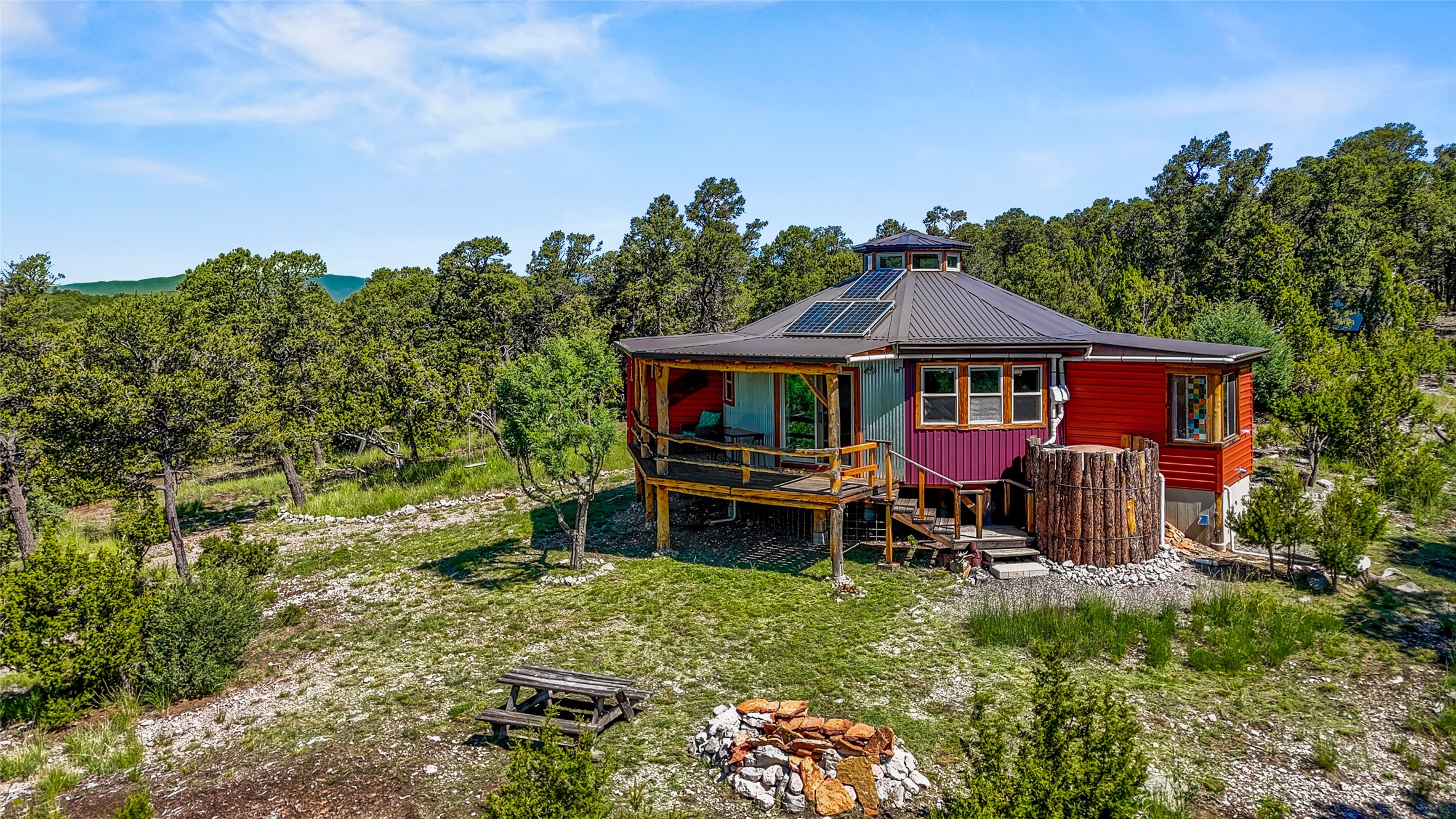 Tucked away in the Santa Fe National Forest is where a peaceful off grid retreat awaits you! 40 acres of mature pinon, ponderosa & juniper surrounded by thousands of acres of untouched forest creates the ultimate setting to relax, recreate & get away from it all. Enjoy your newer off grid home, featuring a 2200 gallon water collection system with multi step filtration system. Solar power with brand new lithium batteries, composting toilet and a Vermont castings wood stove completes your comfortable get away in the woods! Locally milled wood floors, fully insulated framed walls and roof, low maintenance metal siding. Views of Rowe mesa. Peace & quiet is calling! Will you answer? Owner financing considered.