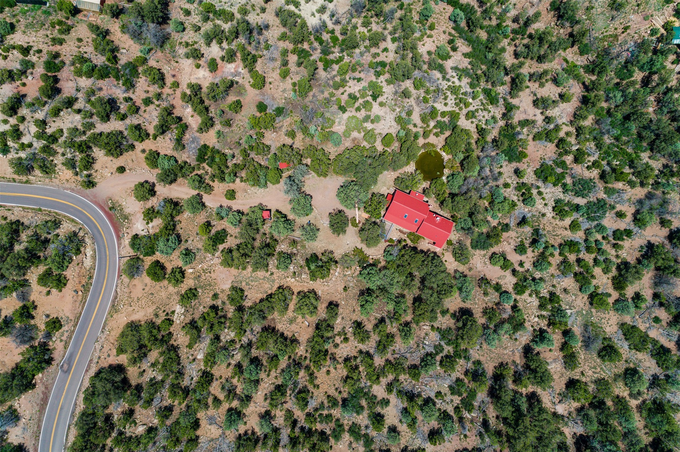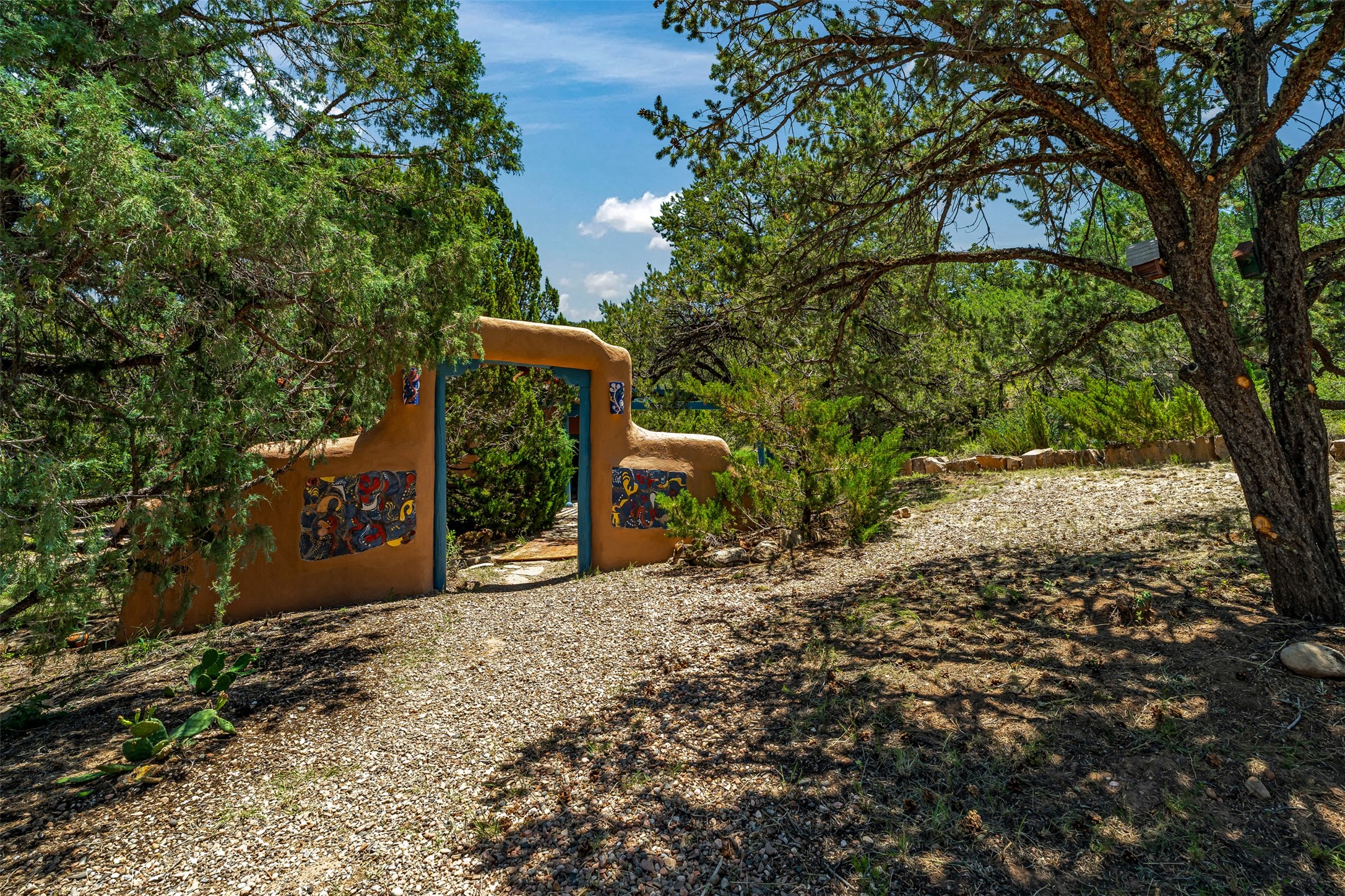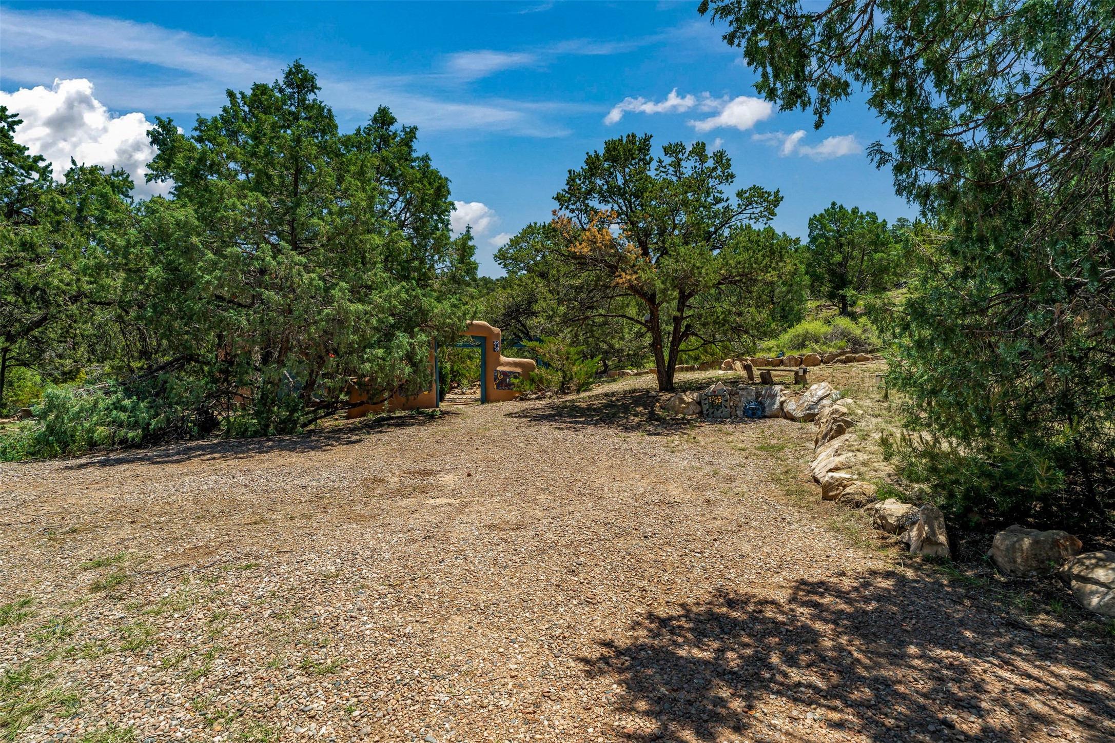 Nestled in the serene hills of Caoncito, this 3-bed, 2-bath Rastra home sits on 5.99 private wooded acres with a thriving koi pond, private well, and sweeping Sangre de Cristo views -- offering a rare value-add opportunity.Owner-built and on the market for the first time since 1998, this home blends craftsmanship and artistic detail throughout. Soaring ceilings, a striking fireplace, and expansive windows define the main living space, while a lofted study/library offers a quiet retreat. The home was intentionally designed to be divided into two living areas, with pre-installed utility connections ready to support the setup.A workroom with slop sink, two storage sheds -- including one with an electrical backup generator -- add functionality. With a new septic system recently installed and an updated well system, this property offers a strong infrastructure base to build upon.Just 10 minutes to Eldorado and 25 to downtown Santa Fe, with nearby trails and 100 mbps internet available. A peaceful retreat and a rare chance to add real value.
