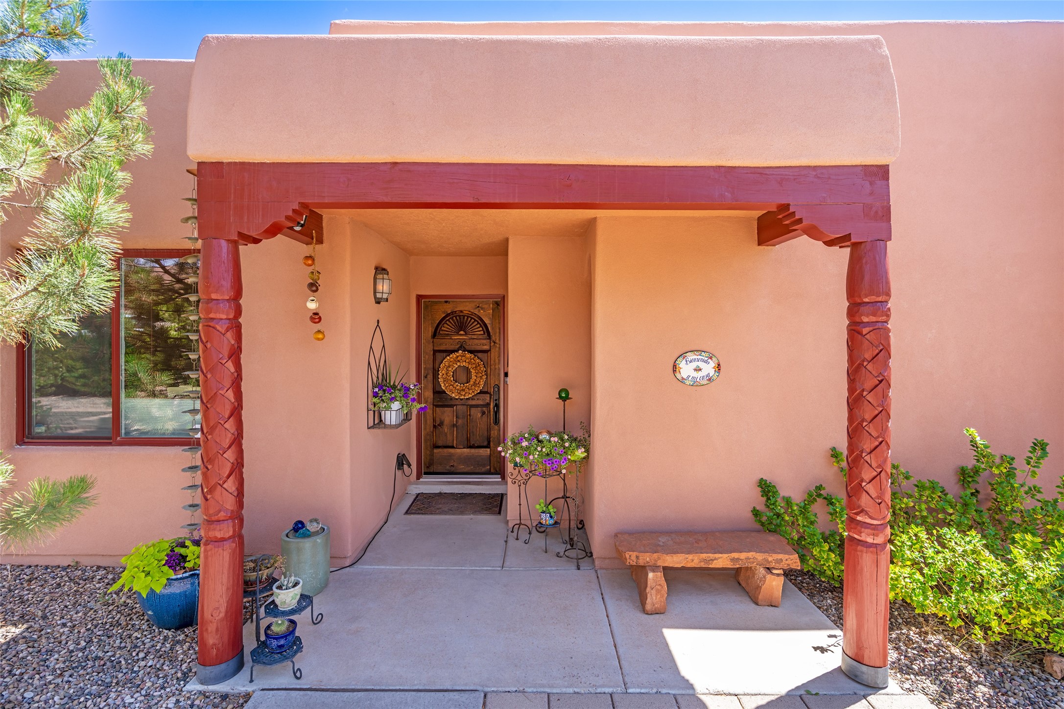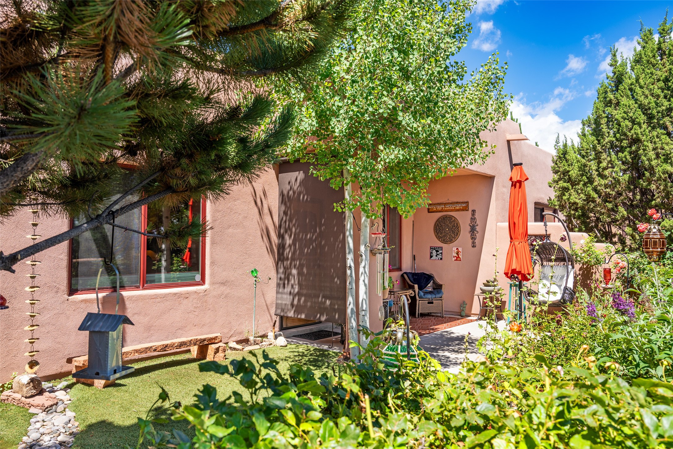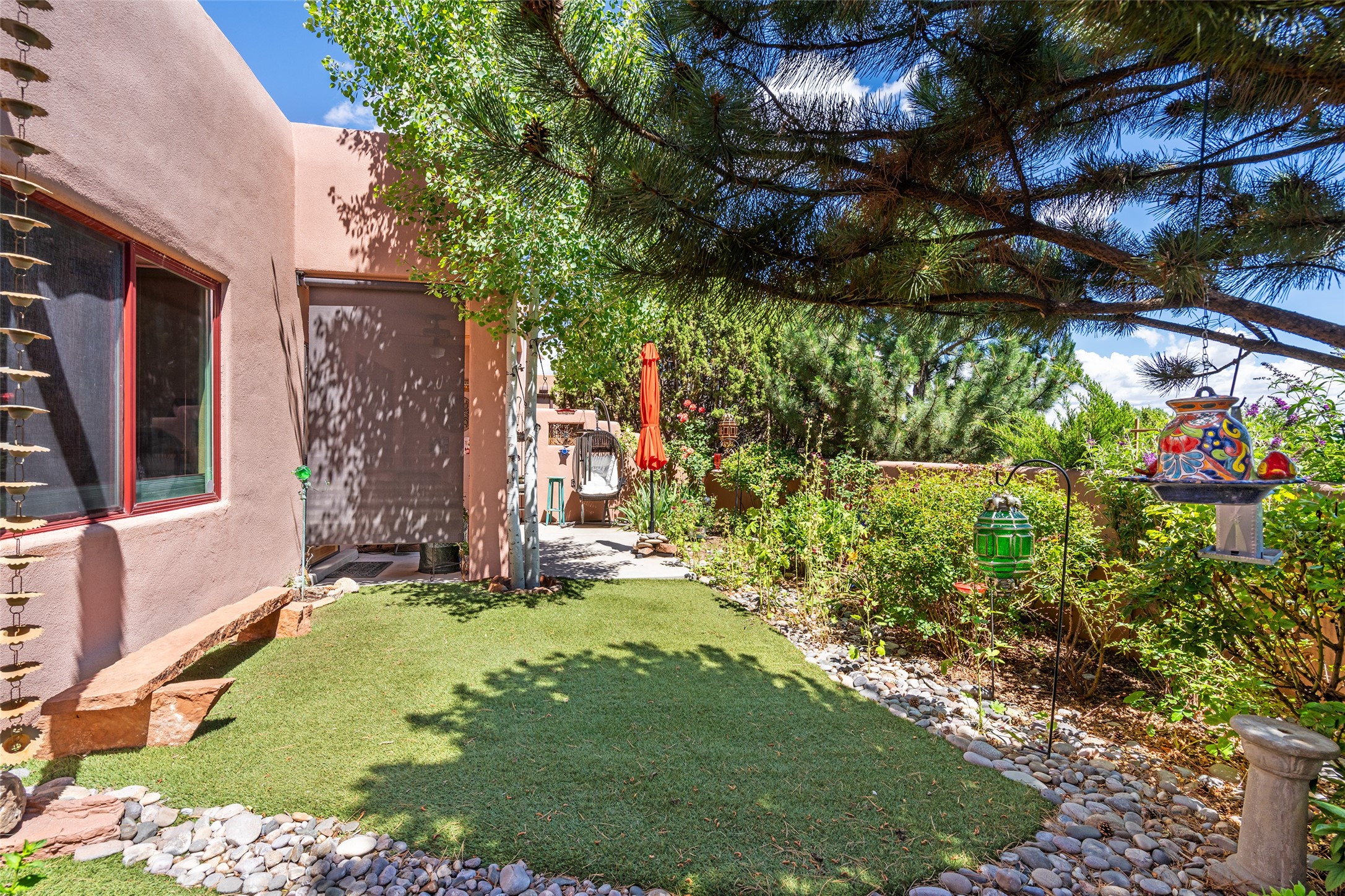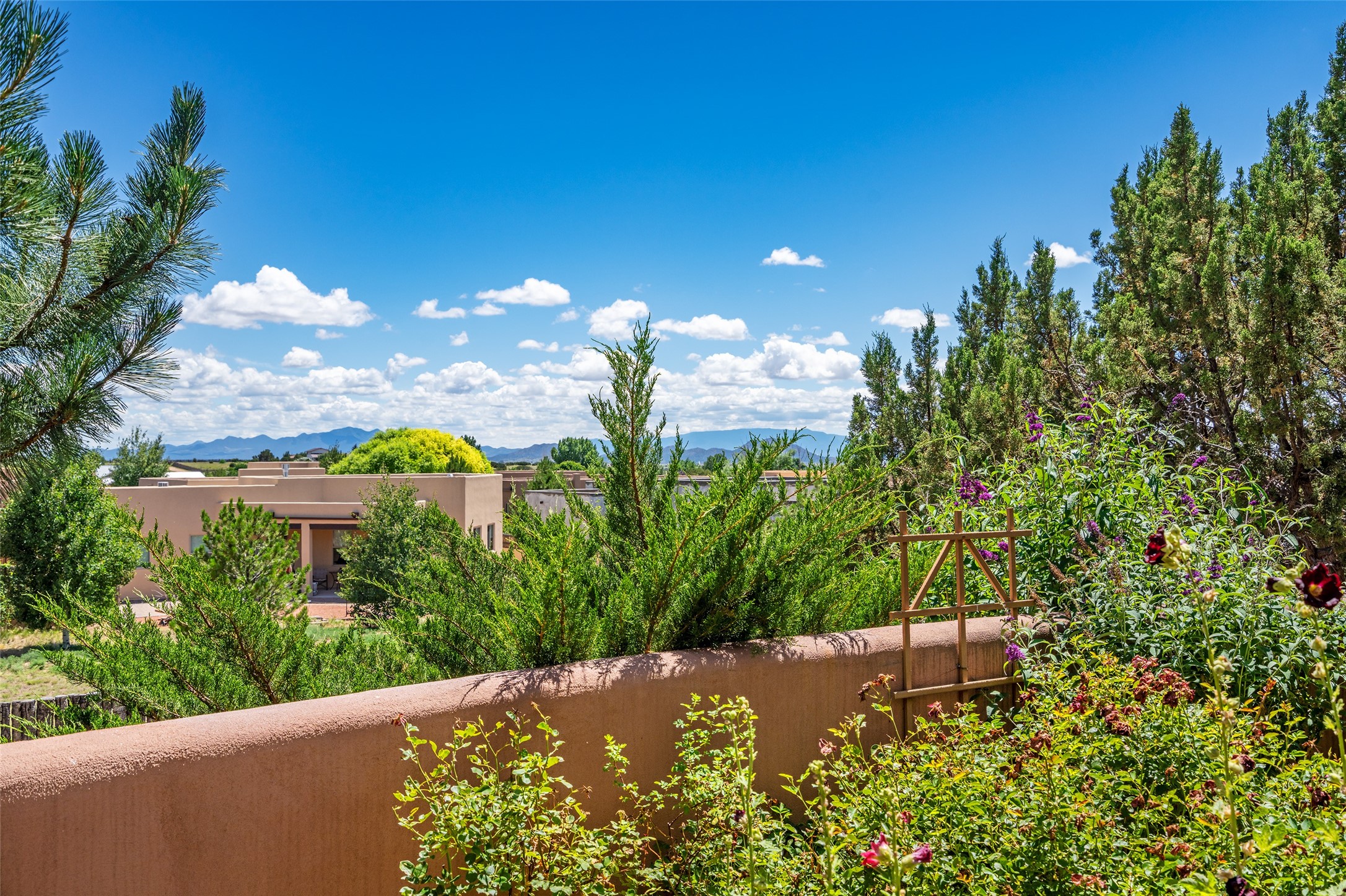 This is a beautifully maintained and loved home. It has that magical feel of Santa Fe without the super high price.There are views out the back of the Sandia Mountains, and it feels very private. The backyard is separated into two areas for easier care. There are lots of flowers! The living room is spacious and had Vigas added to enhance the appeal of the room. The Primary Bedroom is separate from the other bedrooms for added privacy. There are fantastic views of the backyard and beyond in the Primary as well as the Primary Bathroom. Beautiful Spanish tiles throughout the wet areas add a colorful and classic style. There are also vinyl (dark wood style) floors that look fantastic, will last for a very long time and are easy to care for. Drainage plan designed by builder - Garage concrete pad is raised 2 inches for drainage protection from driveway. Water is routed to the right of the property and drains away. Current owner has lived in the house for 8 years and through some major rainstorms with no issues. Come see this beautiful home today!