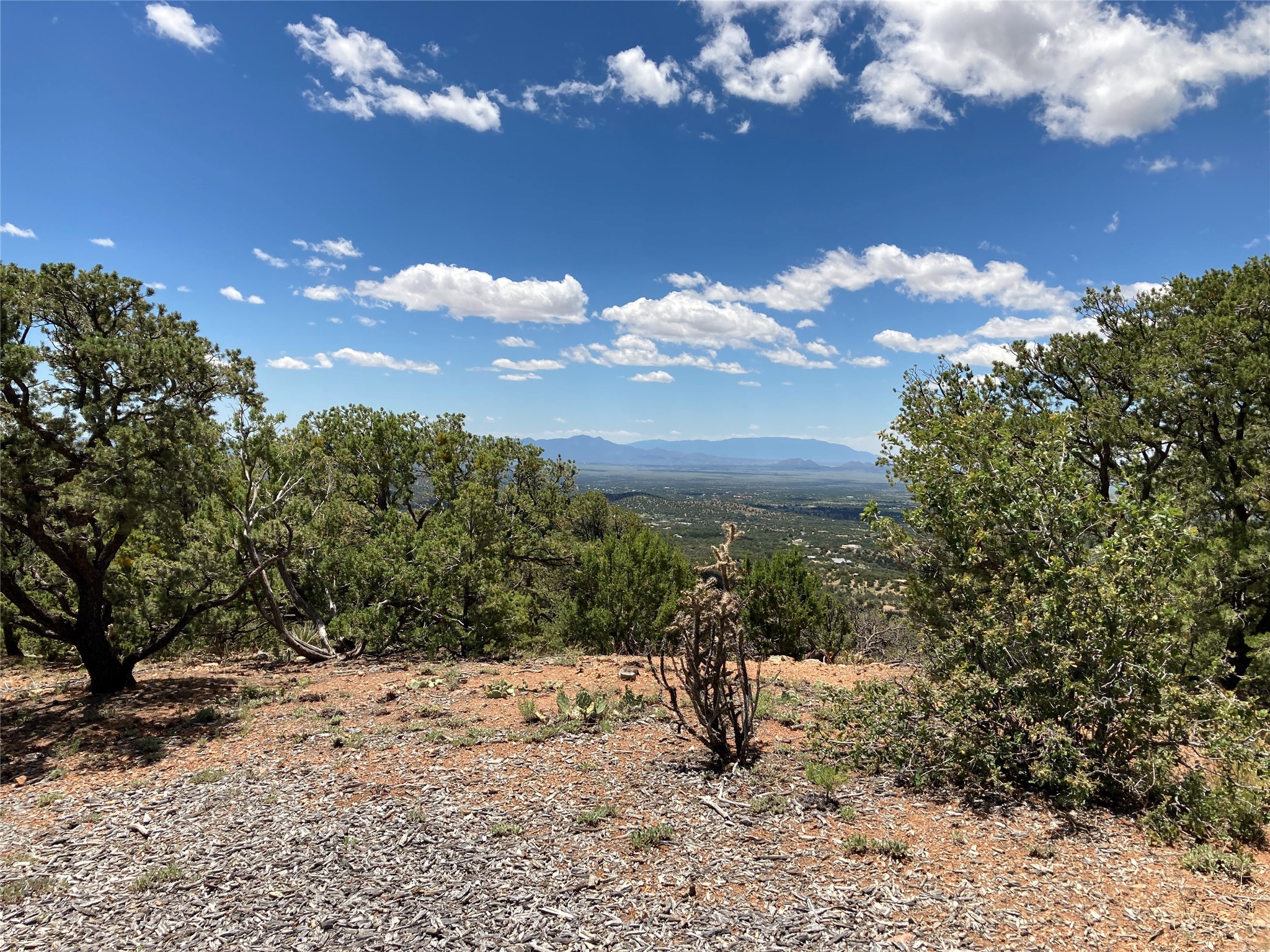 Located in the gated community of the Los Cerros Subdivision on Double Arrow Road off of the Old Santa Fe Trail. 5.68 acres of breathtaking views in every direction from the Sangre de Cristos to the Ortiz Mountains. This lot is ready to go with community water and electrical utilities with a PNM transformer located near the property. There is a flat building envelope. The land is populated with Pinon, Ponderosa Pine, Scrub Oak and a variety of cactus. One of the most beautiful locations just 6 miles to town. Double Arrow Road comprises a high-end community. The subdivision, where the property is located, is comprised of nine lots with five high-end homes currently built. Some of the homes have been here since the 1980s. The road is paved leading to the property and it is maintained by the Los Cerros HOA. Check the location and neighborhood on Google Maps.The land high in the Sangre de Cristo foothills, located just off the Old Santa Fe Trail, yet it is only 12 minutes from the Plaza in the center of Santa Fe. By just stepping out your future front door, you can hike or mountain bike the Ponderosa Ridge to Hidden Valley Road down to Wilderness Gate Road and right into town via Canyon Road. Atalaya Mountain trails are also accessible from the property. If you are lucky, you may spot coyotes, mule deer, and a variety of songbirds and birds of prey while you are out exploring.